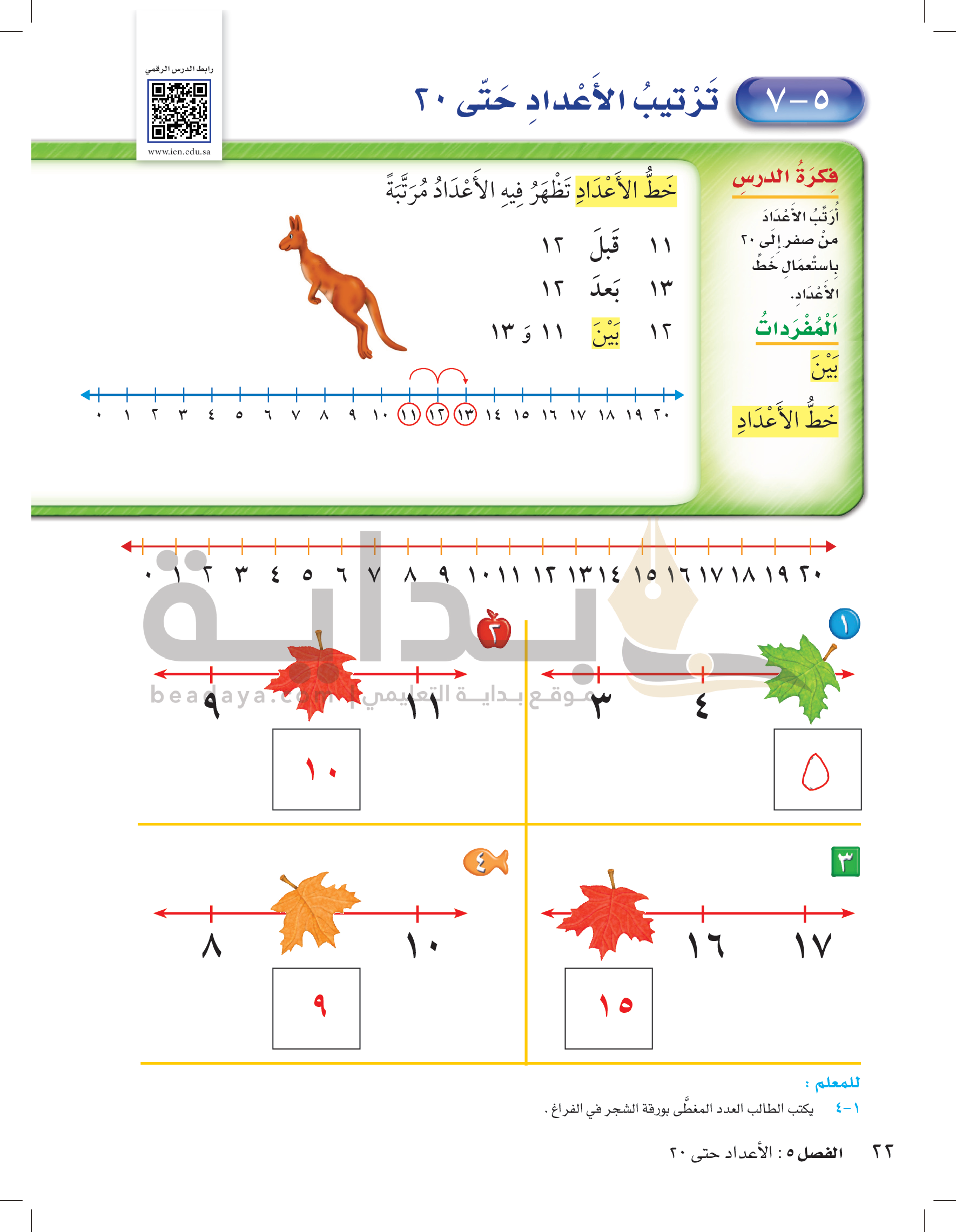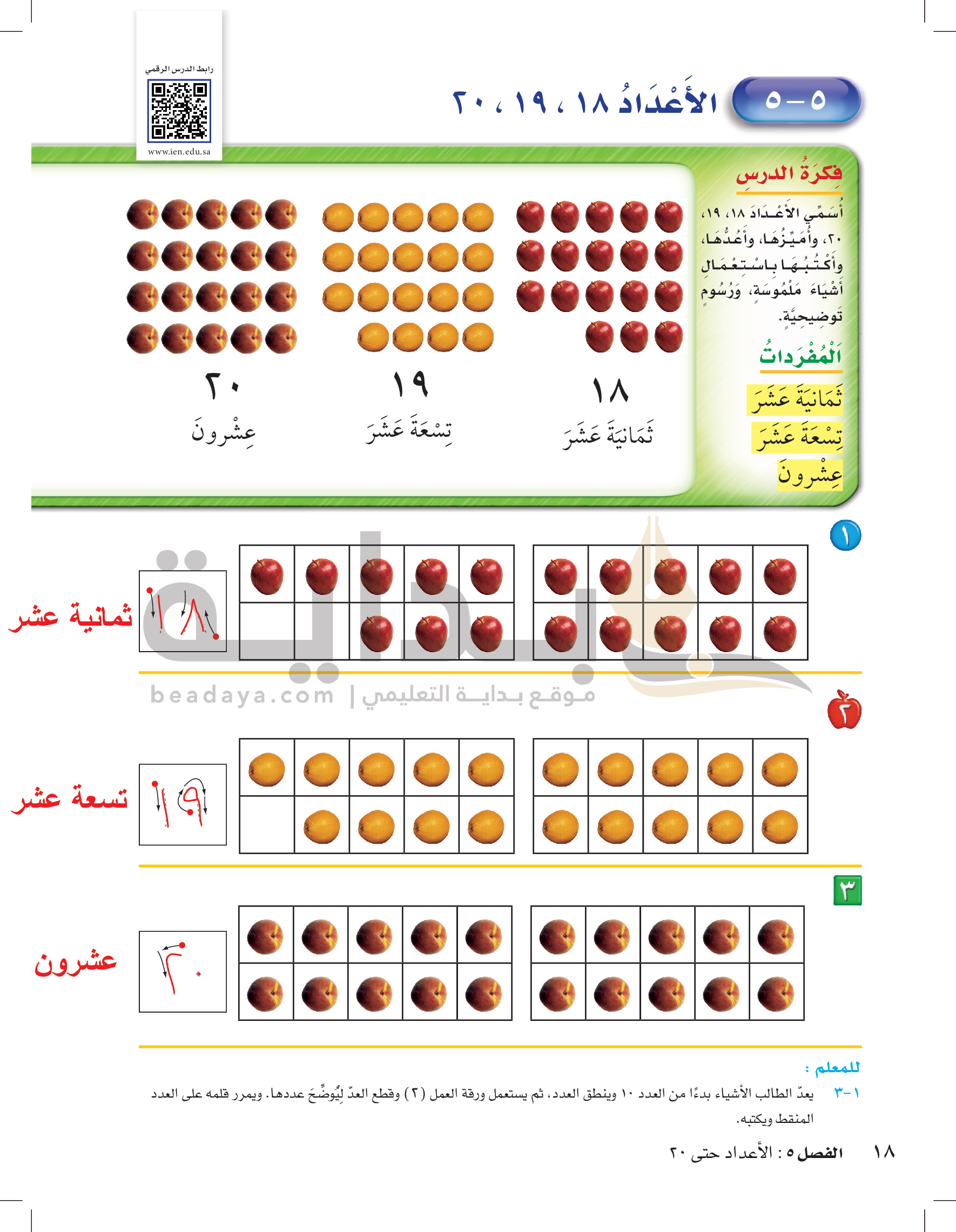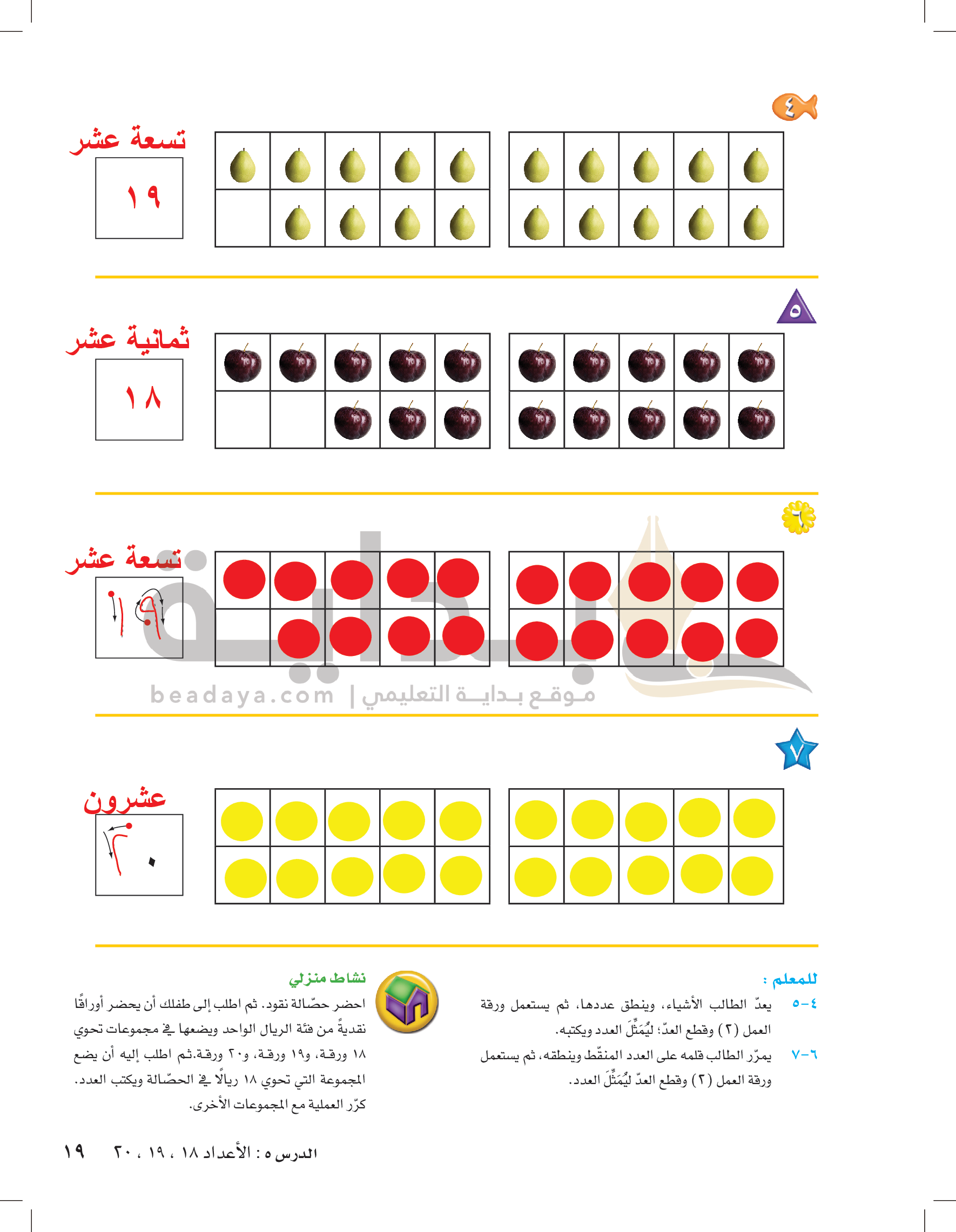 الفصل الخامس: الأعداد حتى 20
