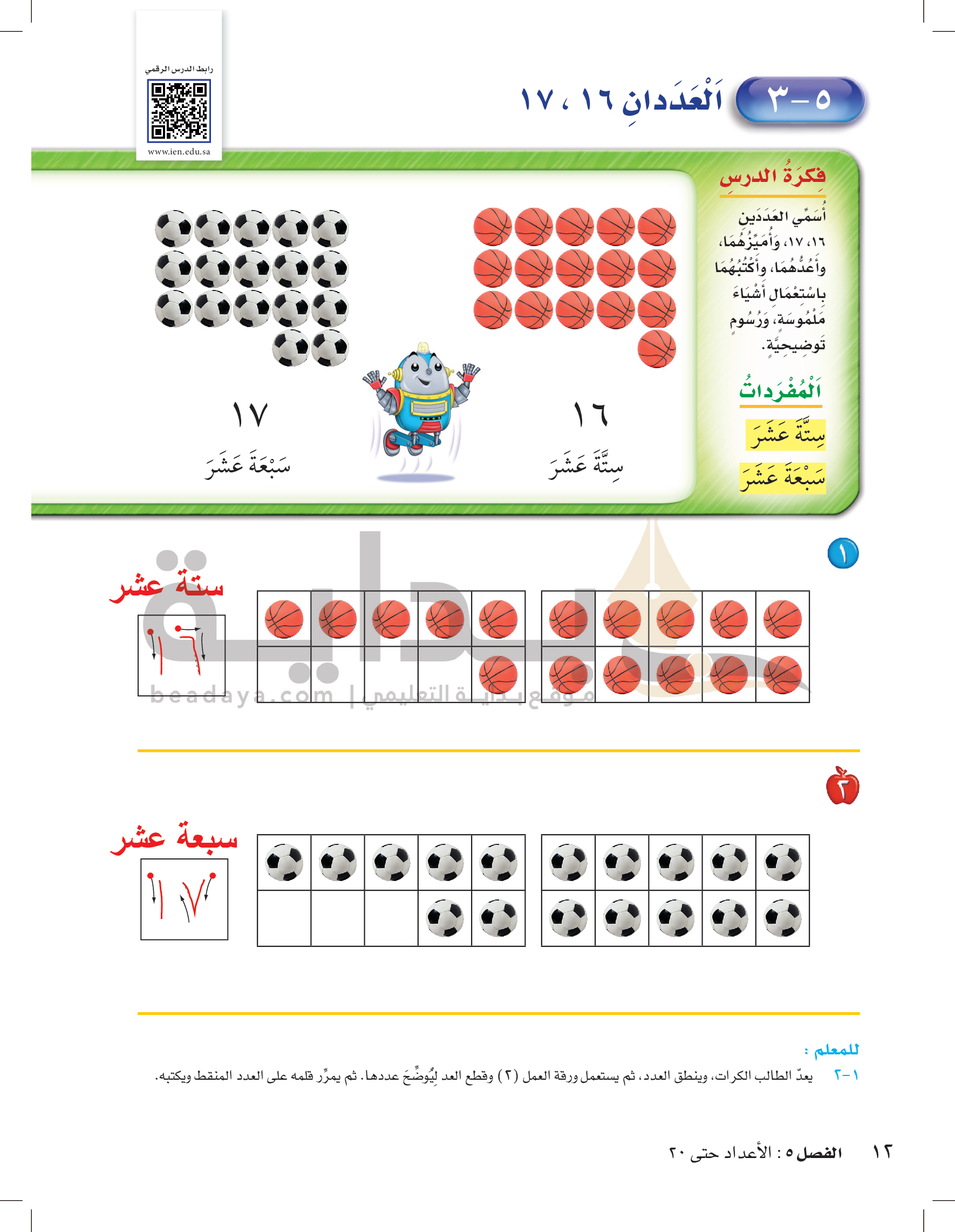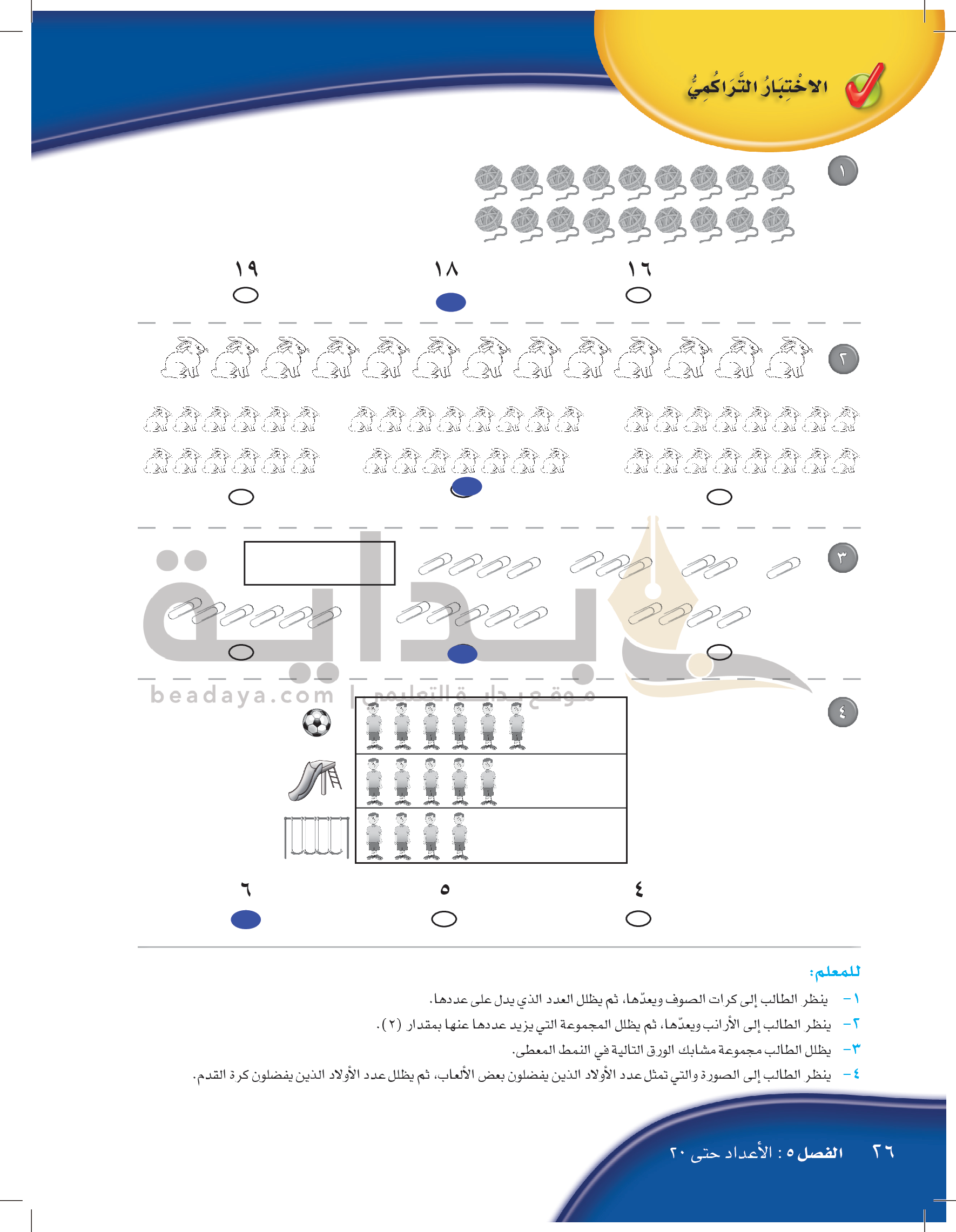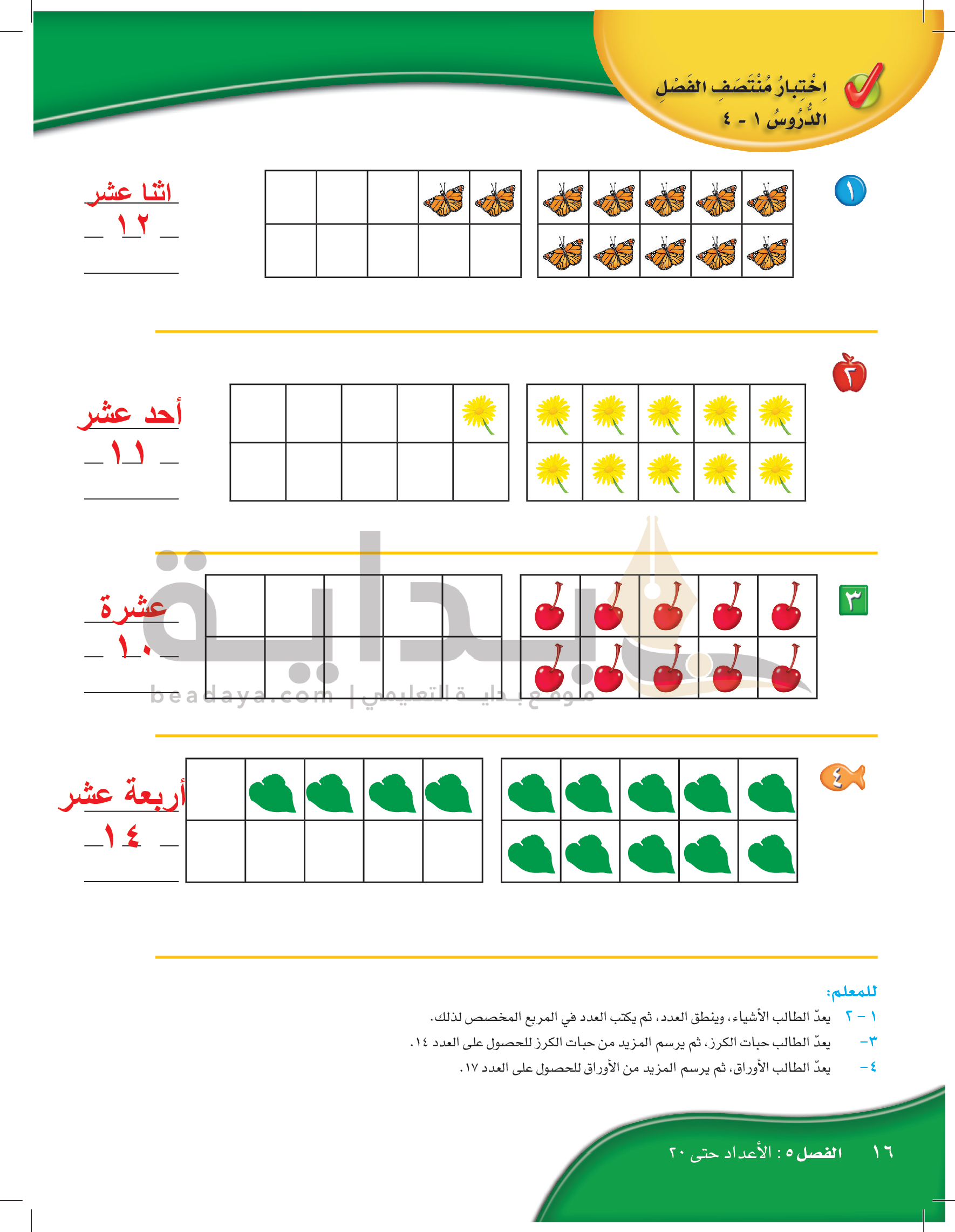 الفصل الخامس: الأعداد حتى 20