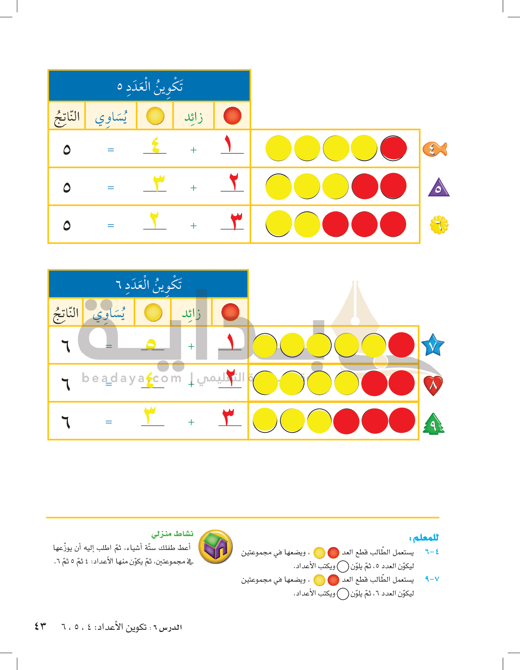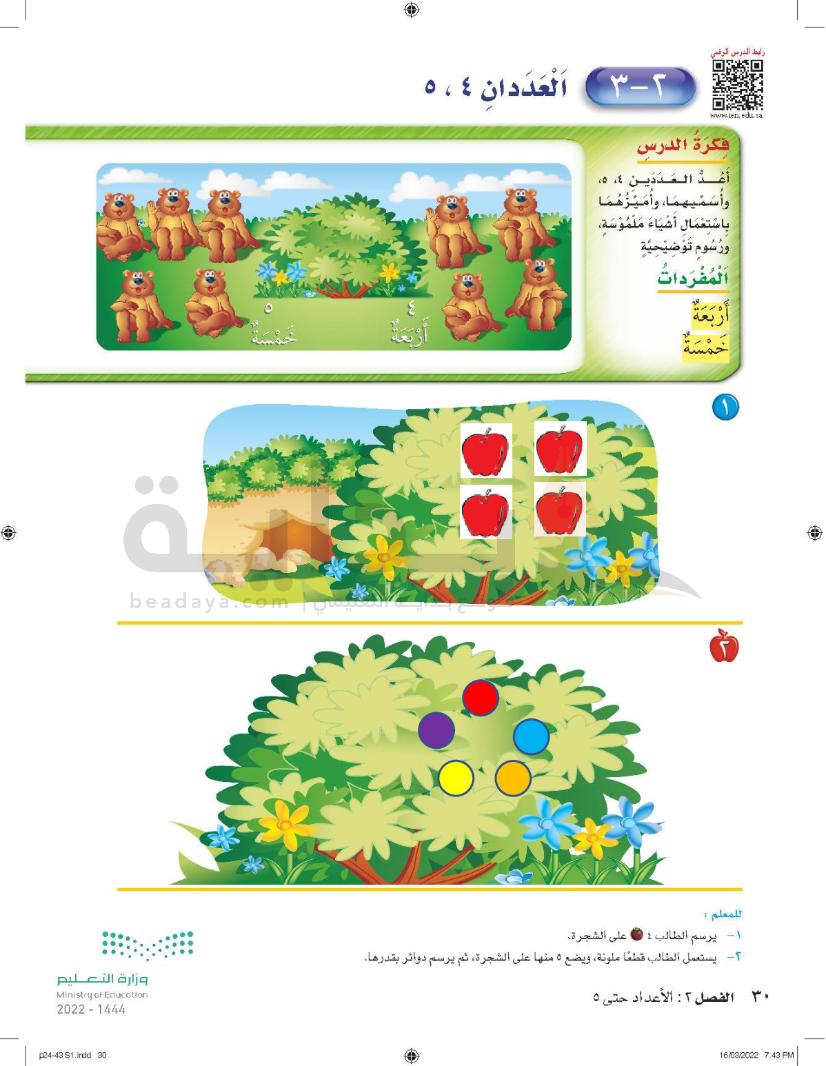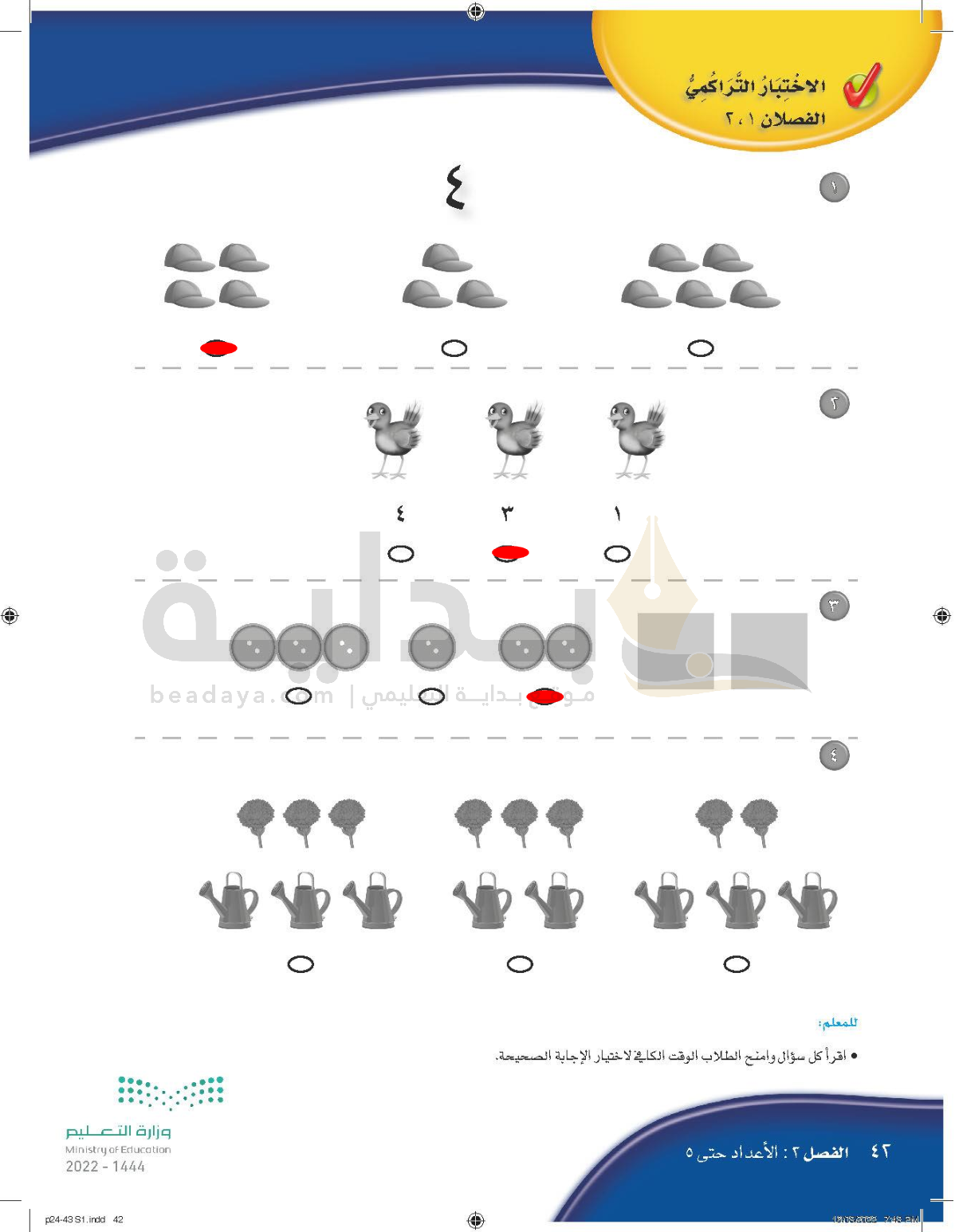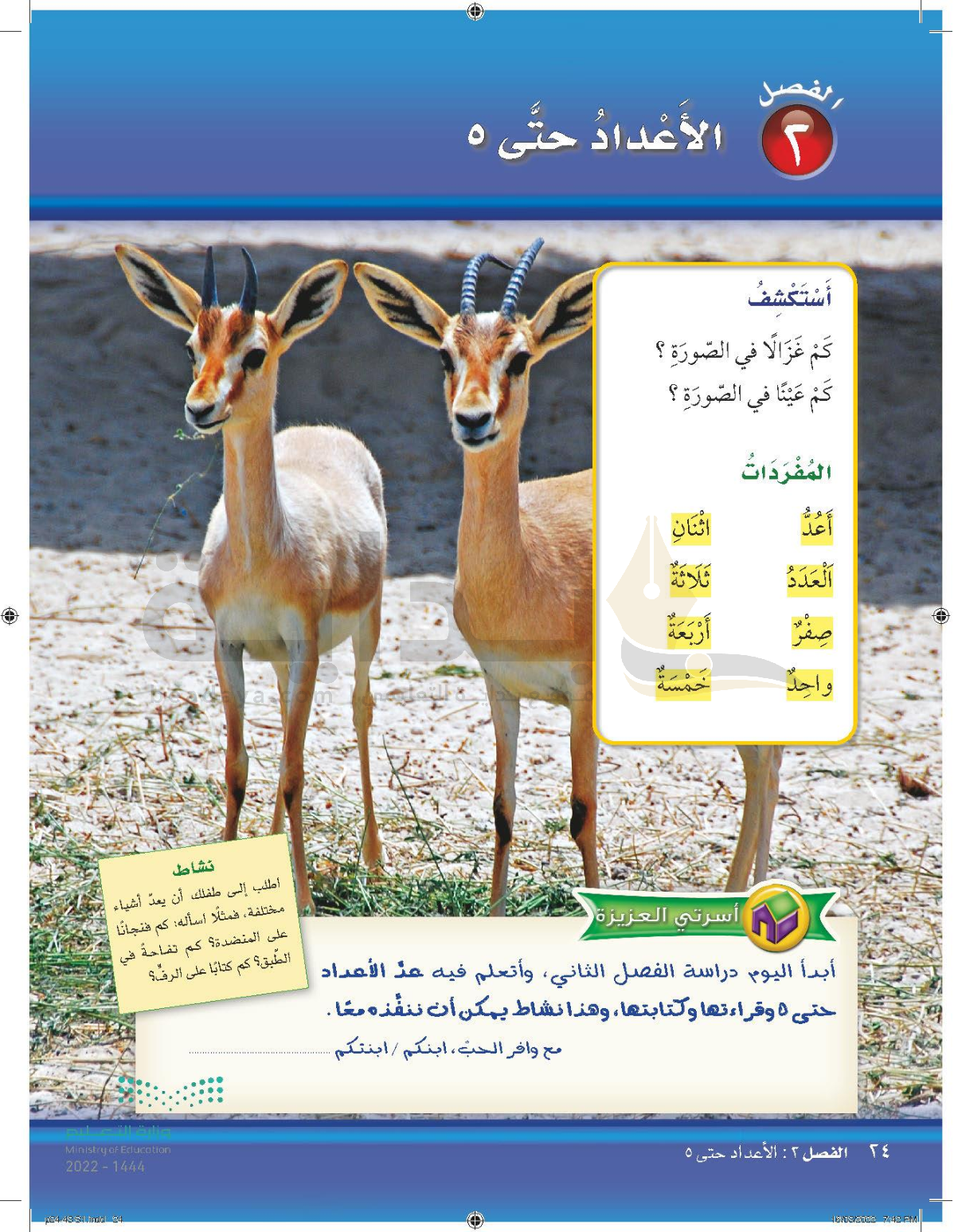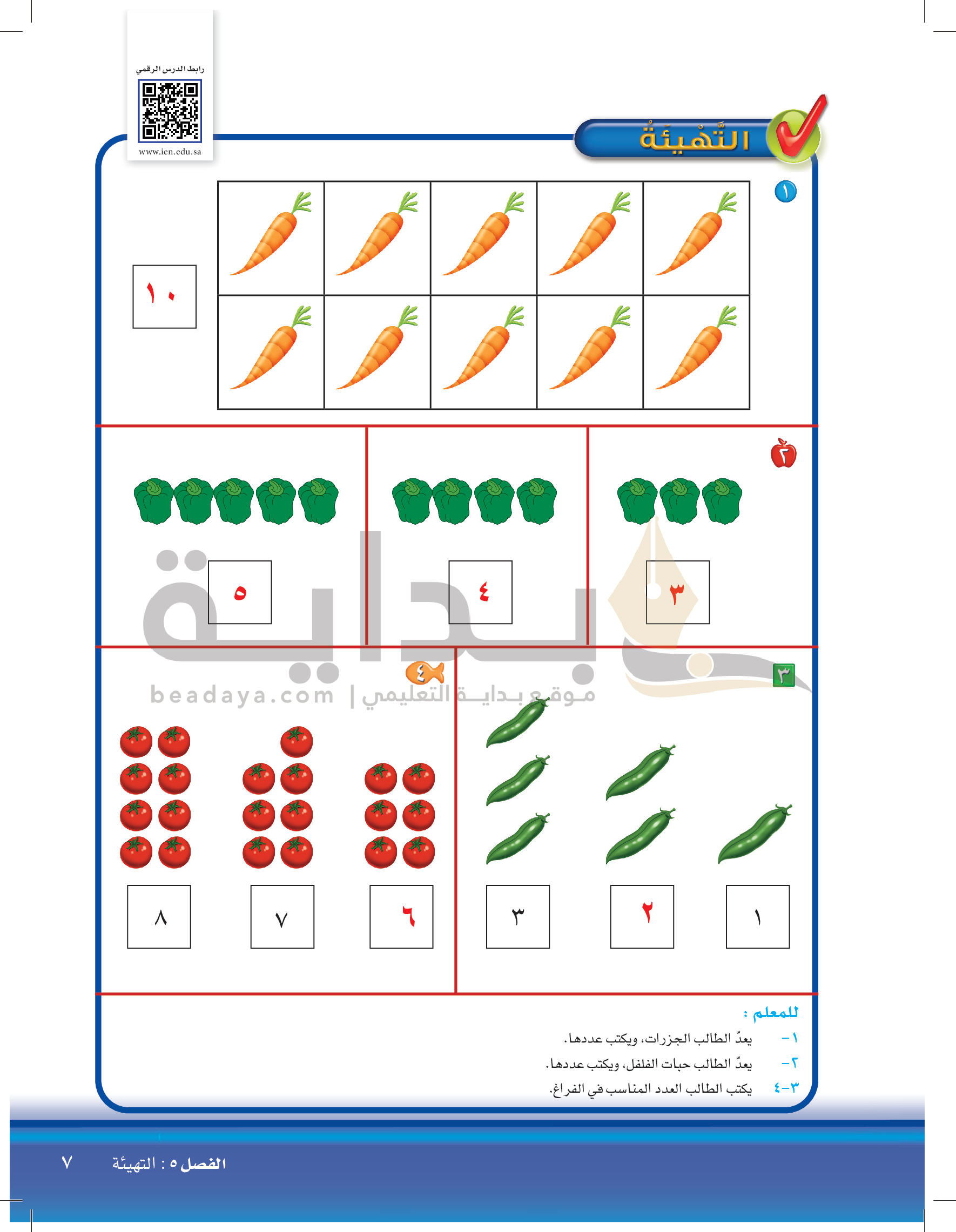 الفصل الثاني: الأعداد حتى 5