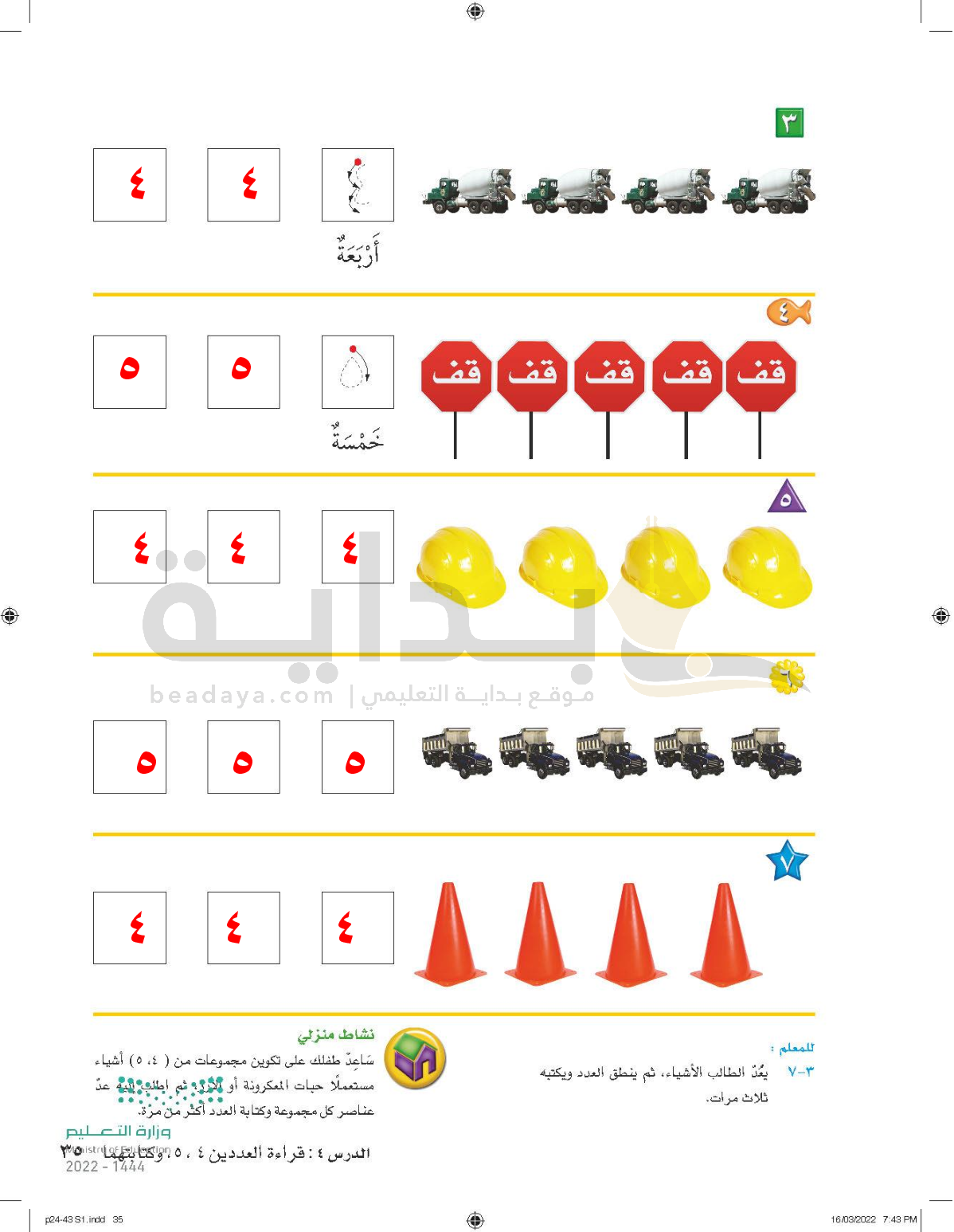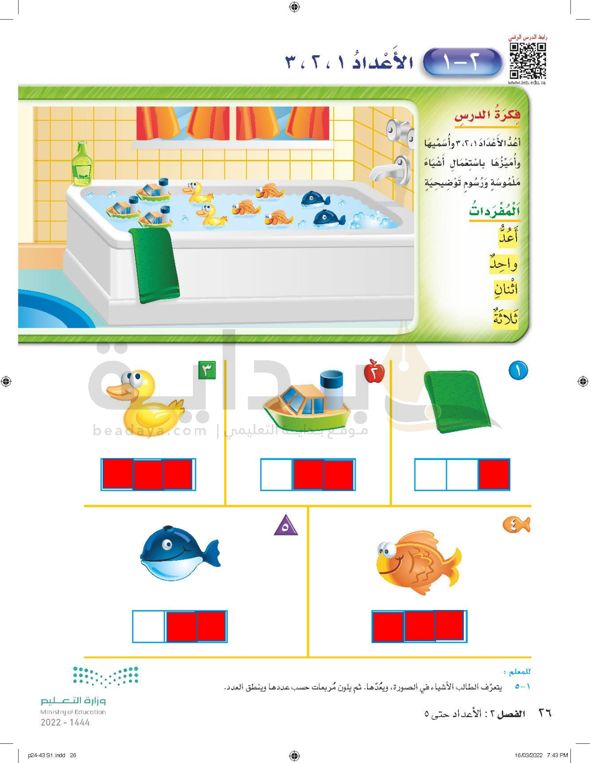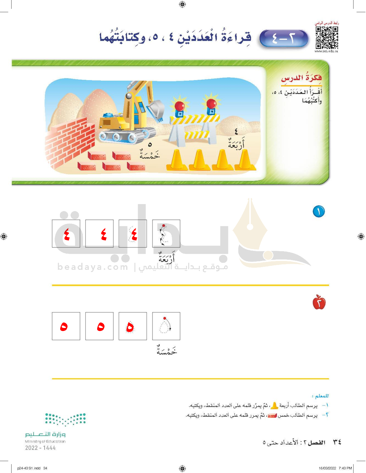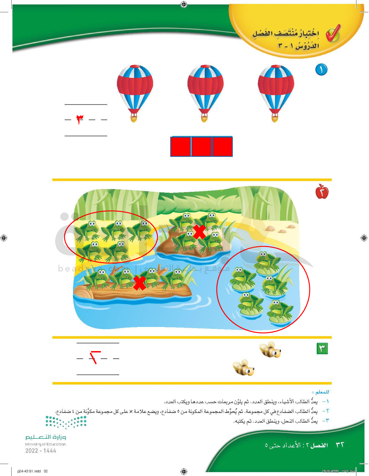 الفصل الثاني: الأعداد حتى 5