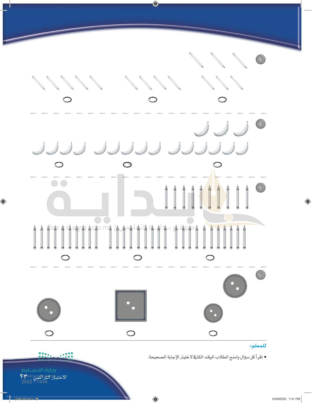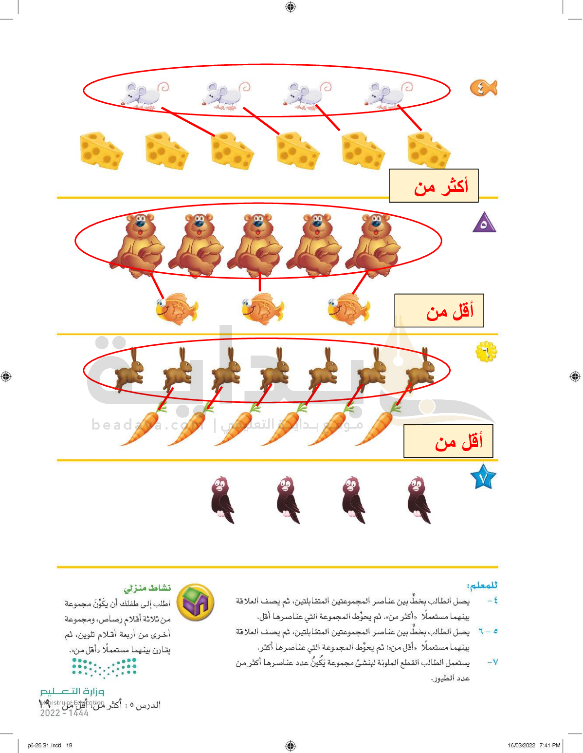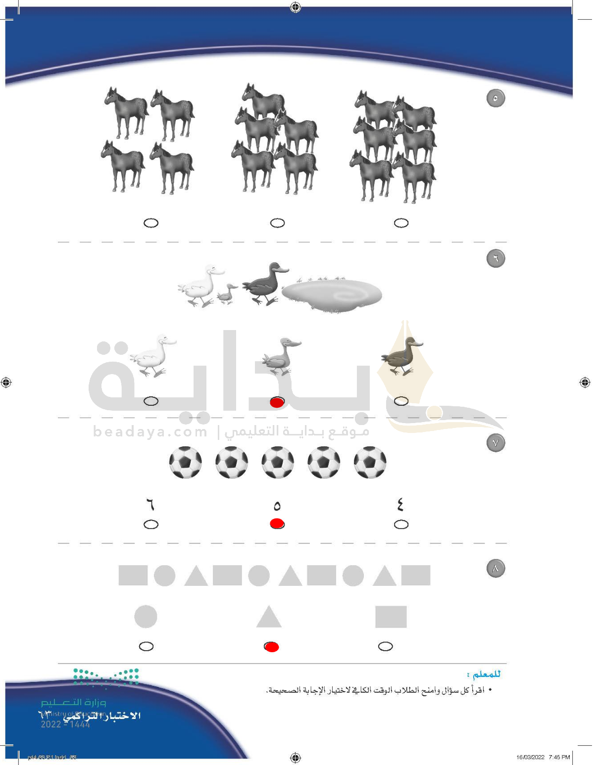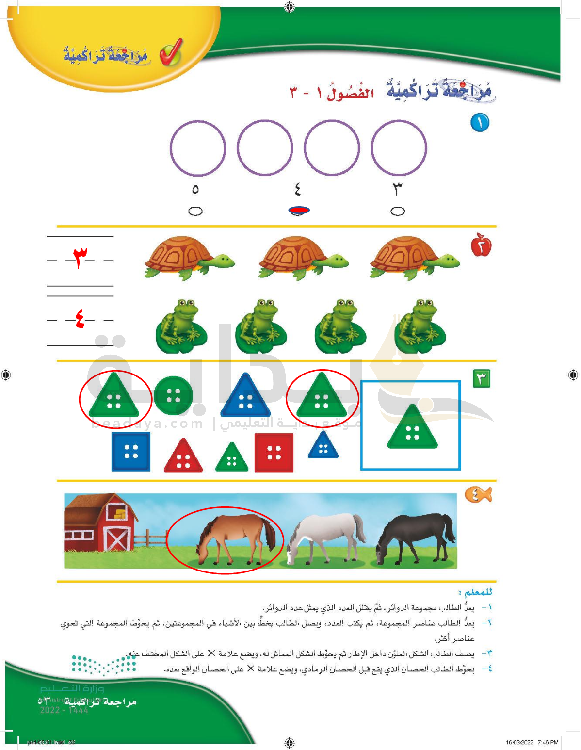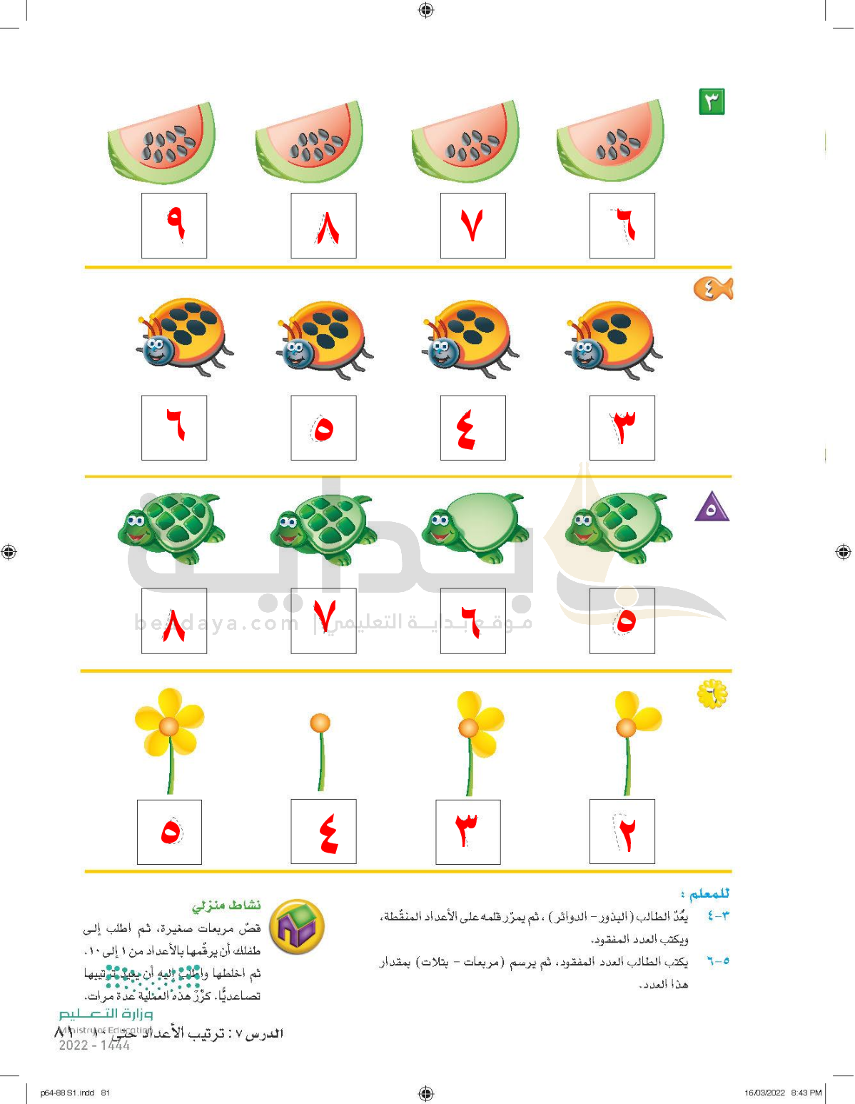 الفصل الثاني: الأعداد حتى 5