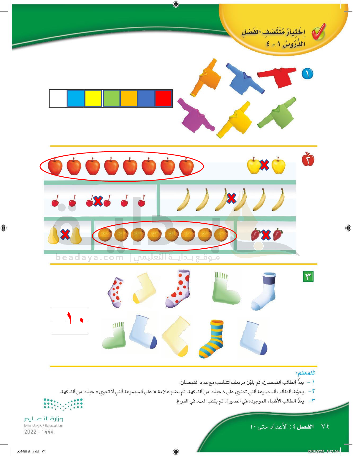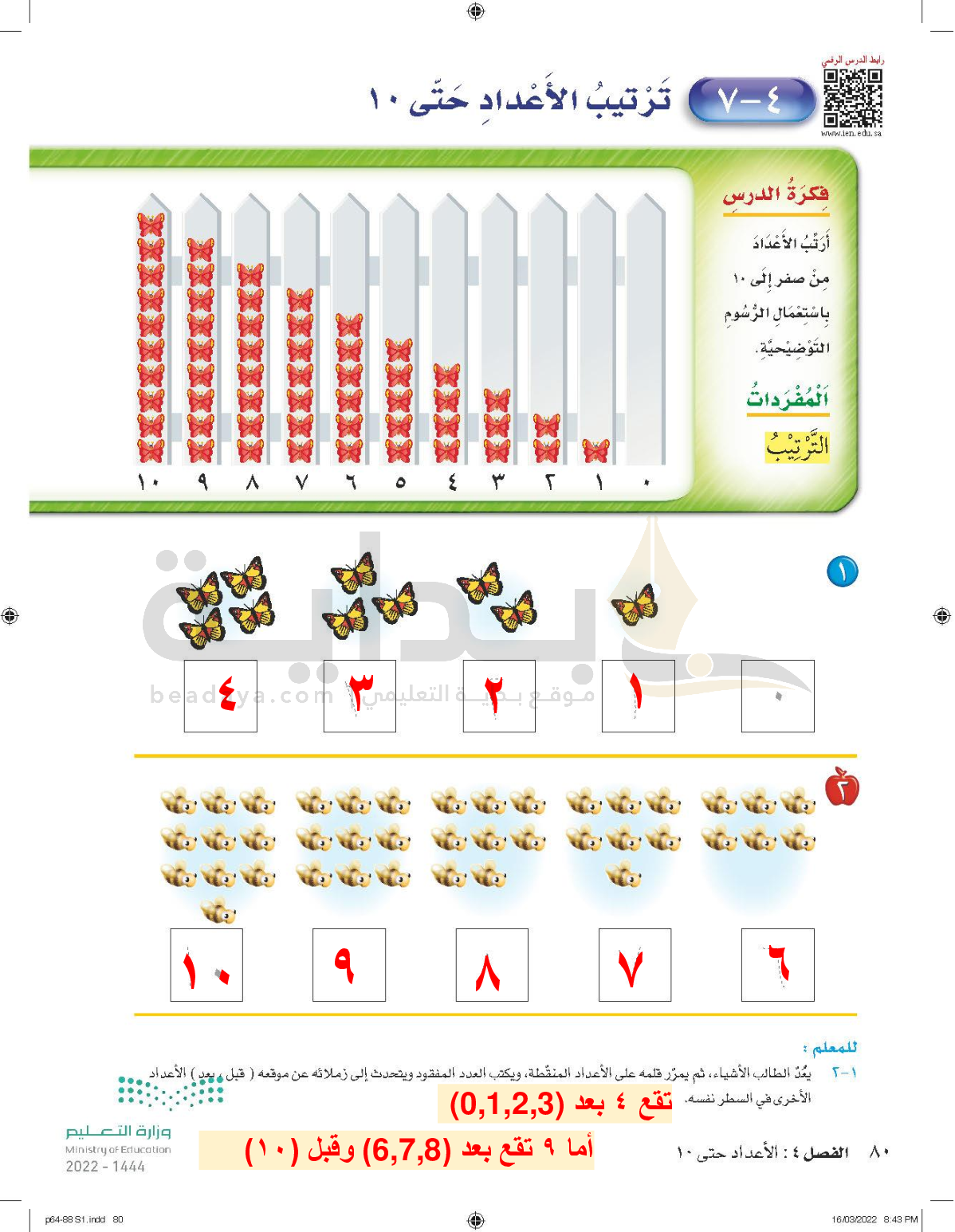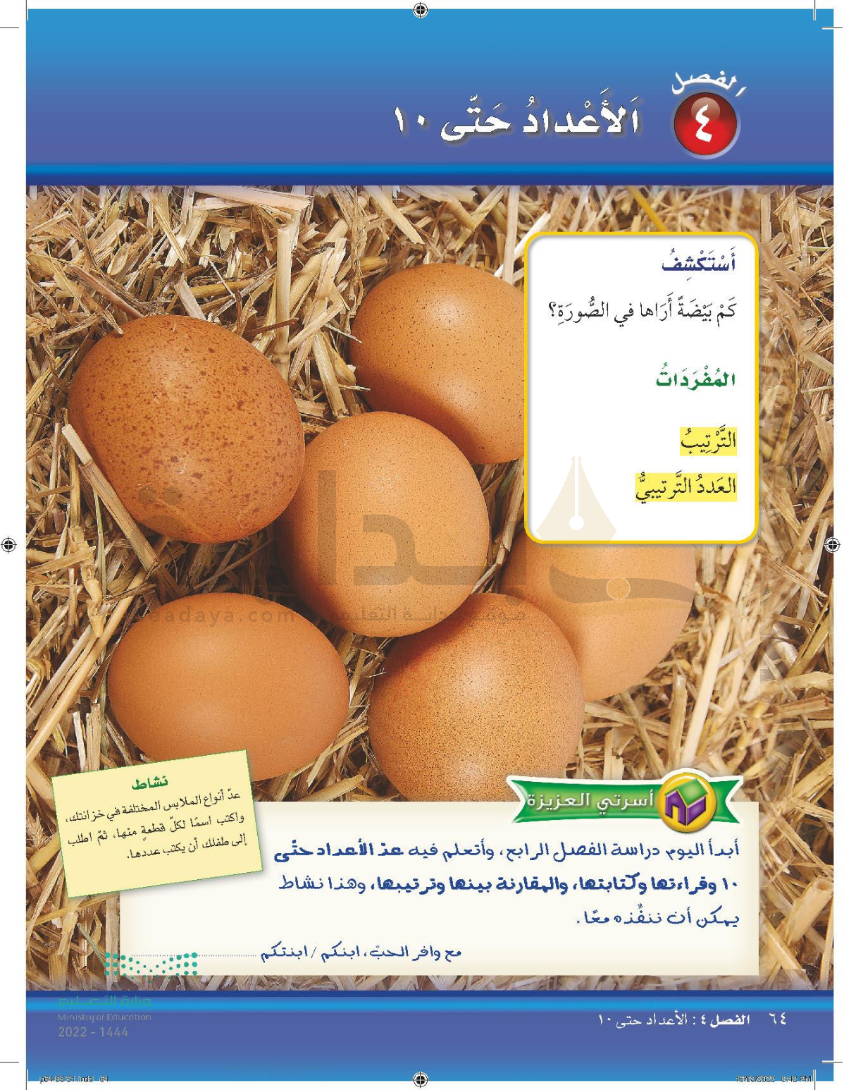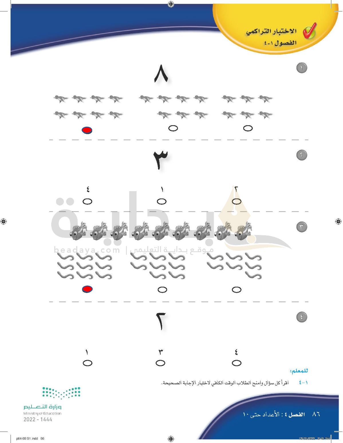 الفصل الرابع: الأعداد حتى 10