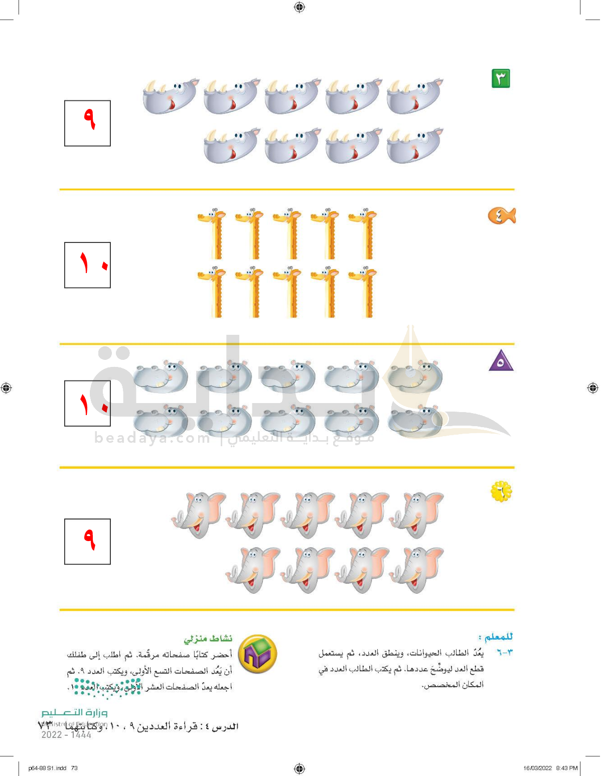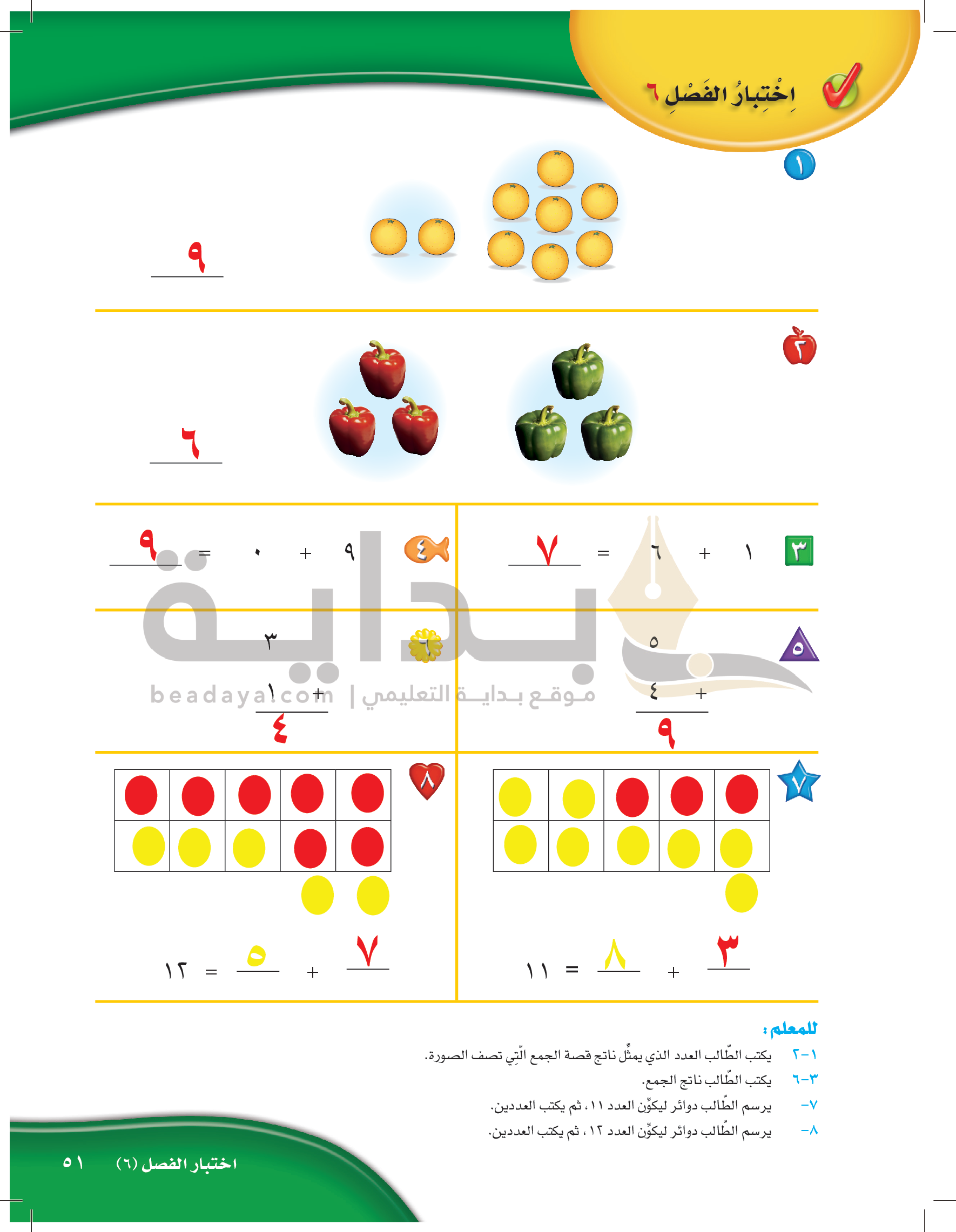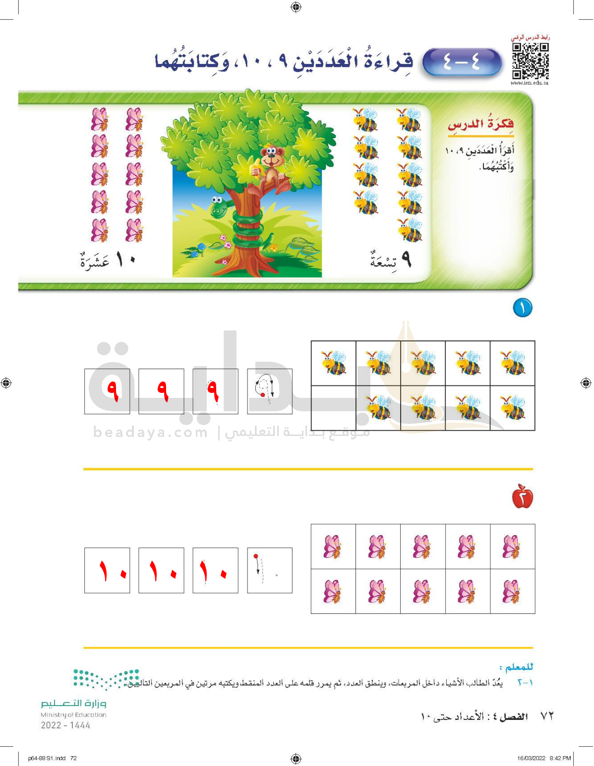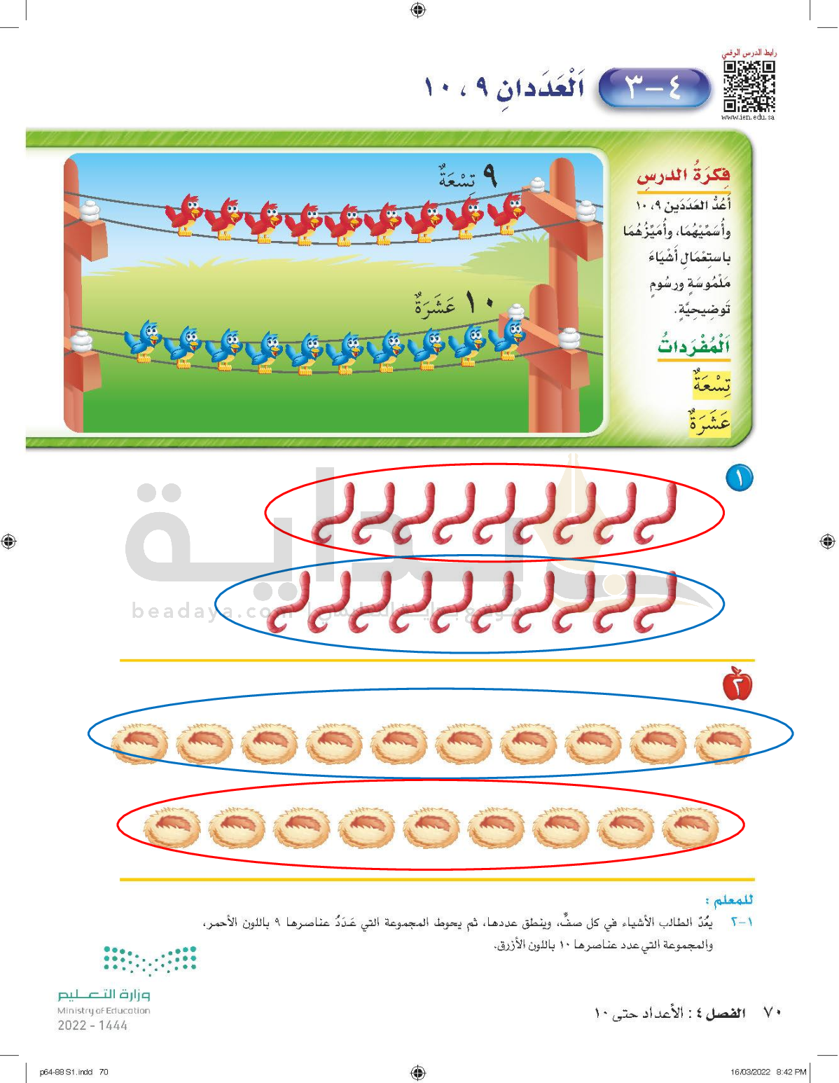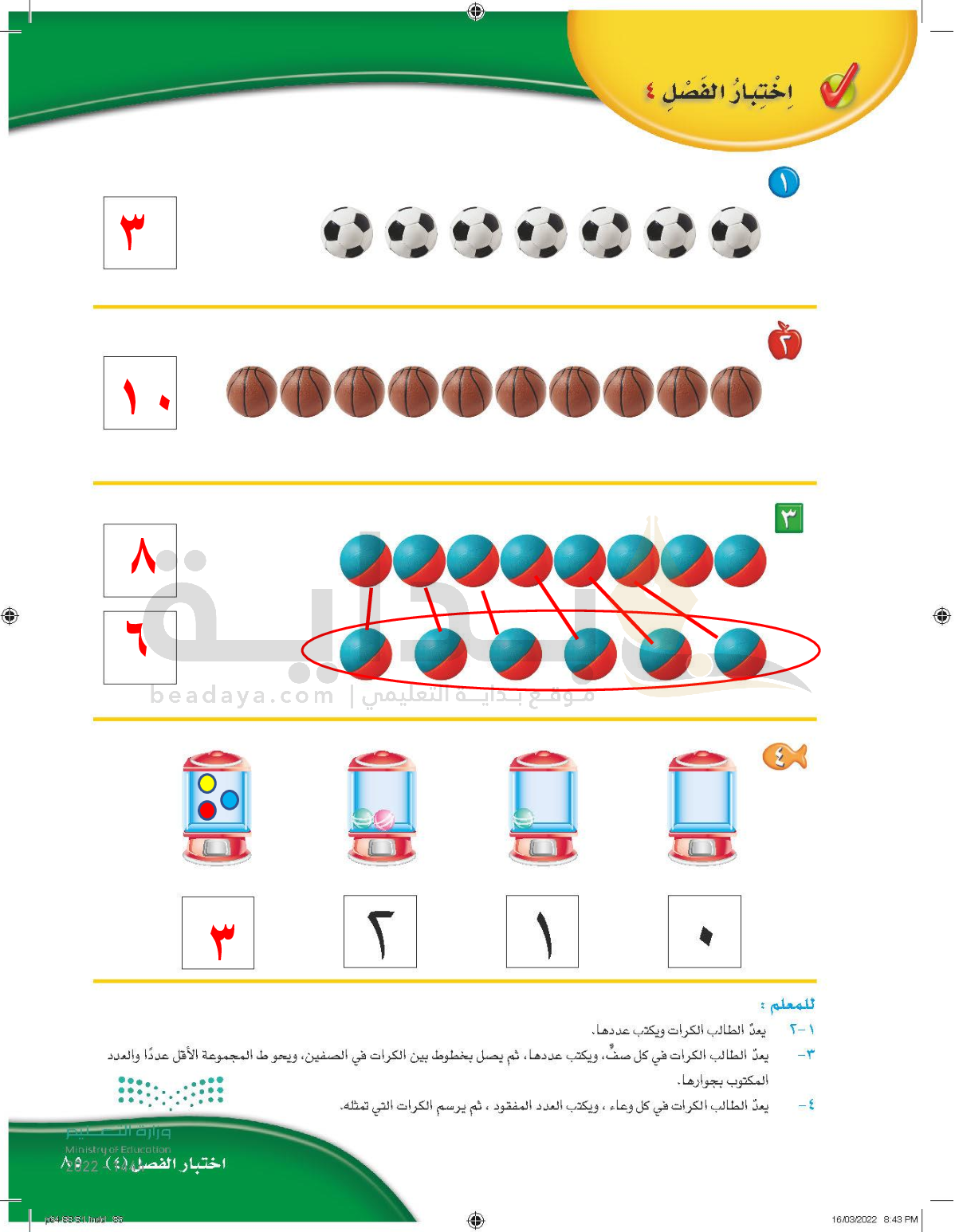 الفصل الرابع: الأعداد حتى 10