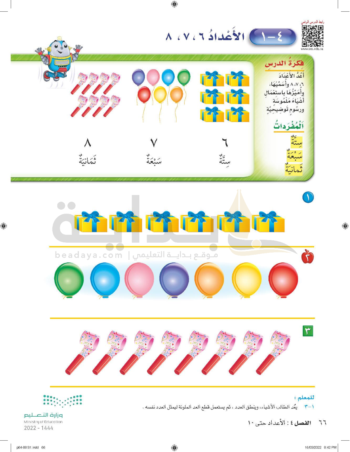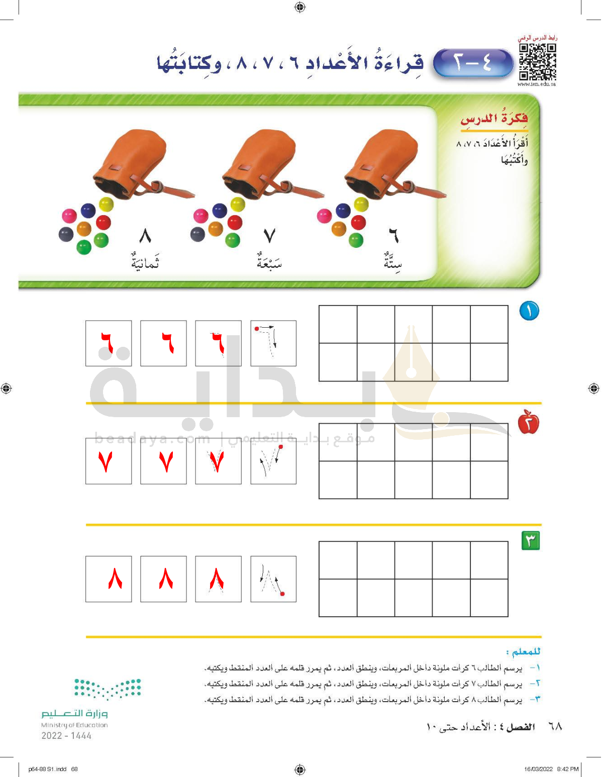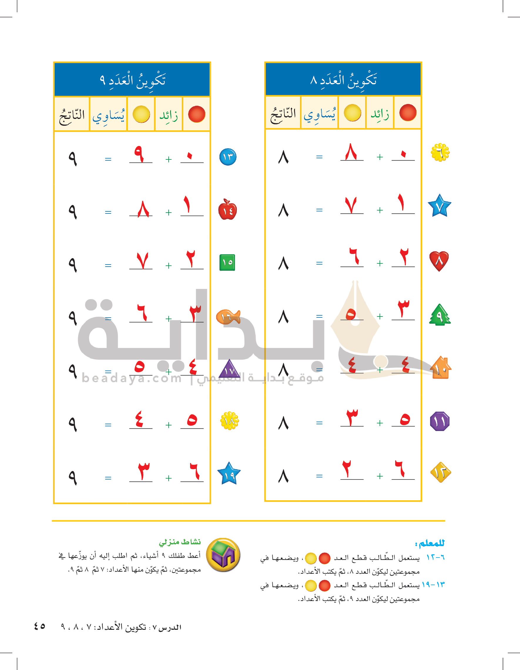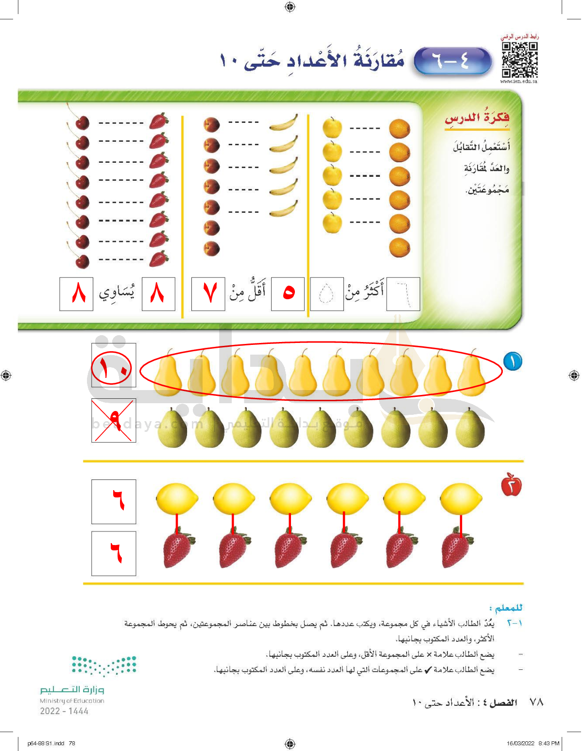 الفصل الرابع: الأعداد حتى 10