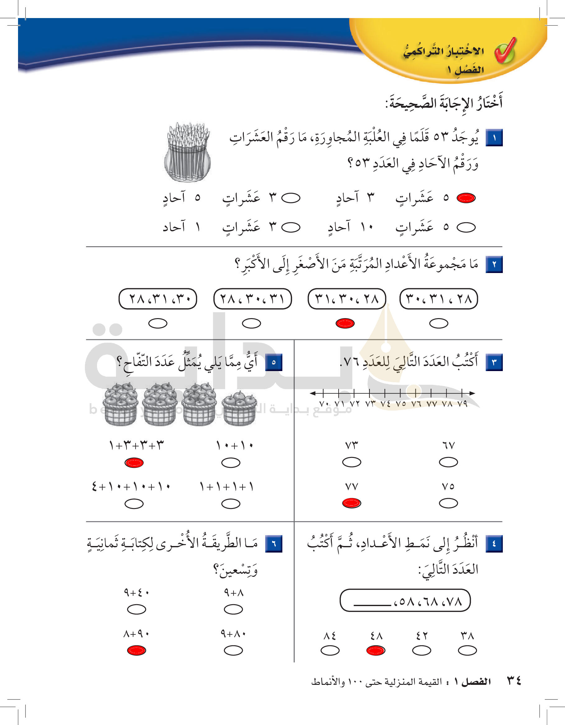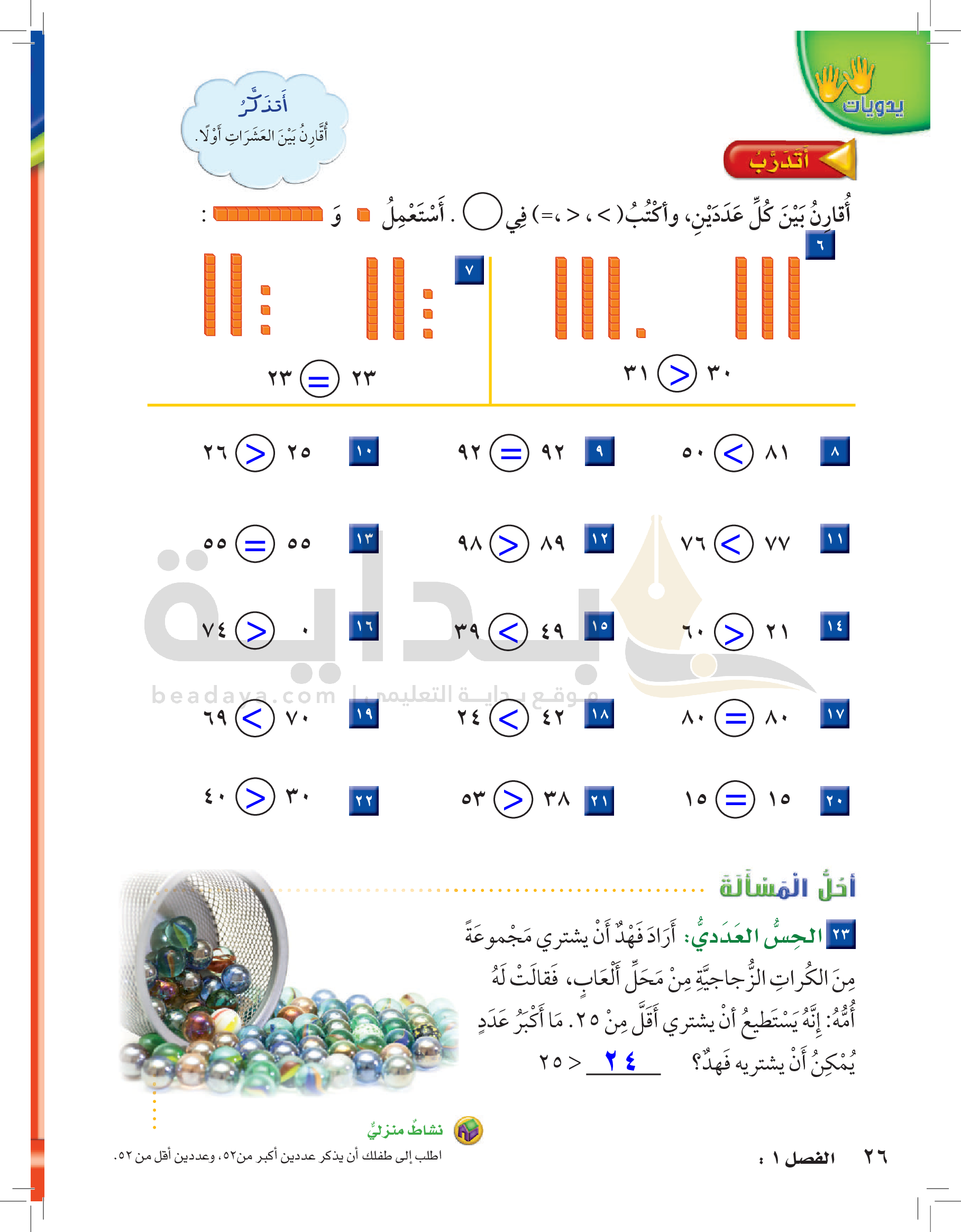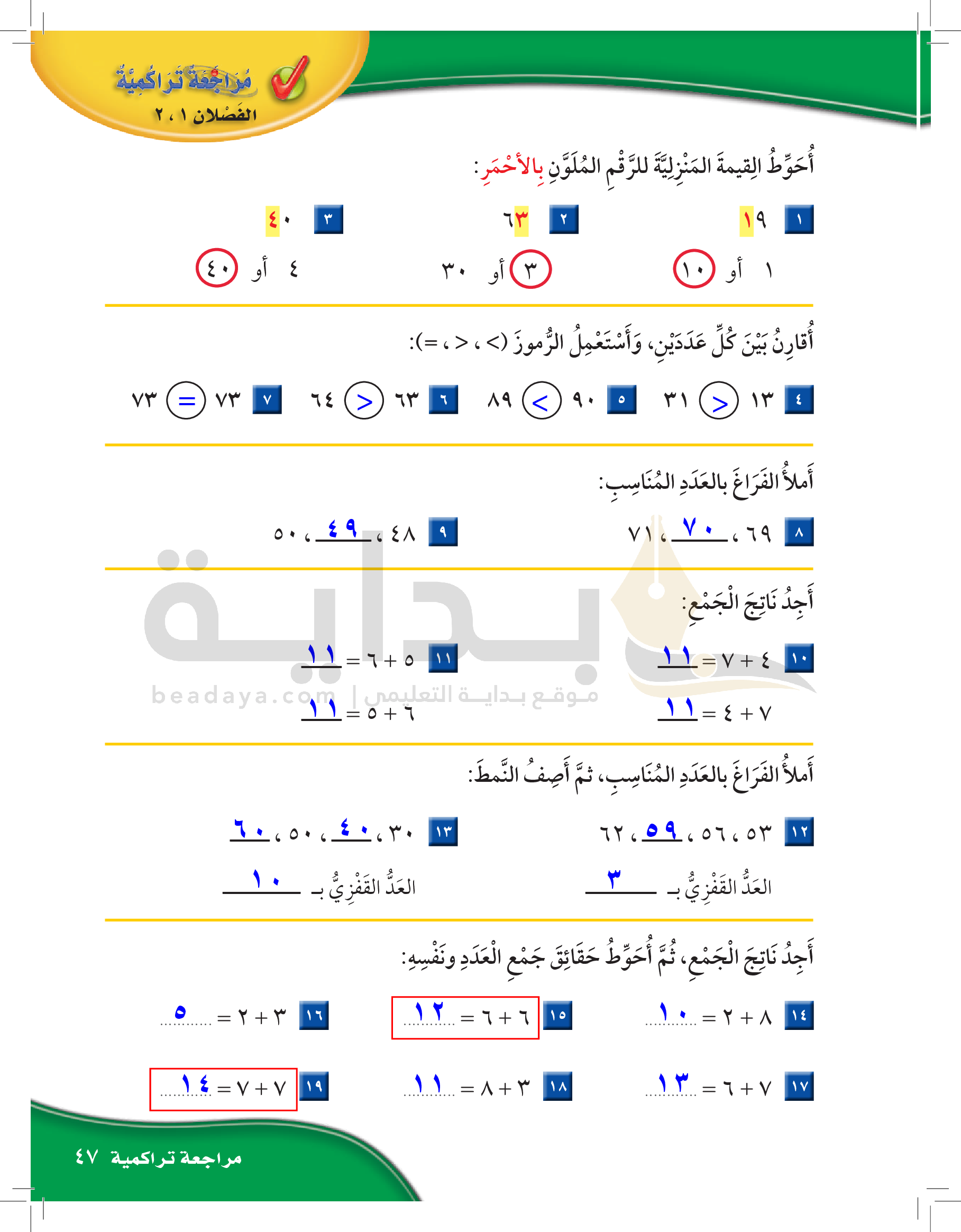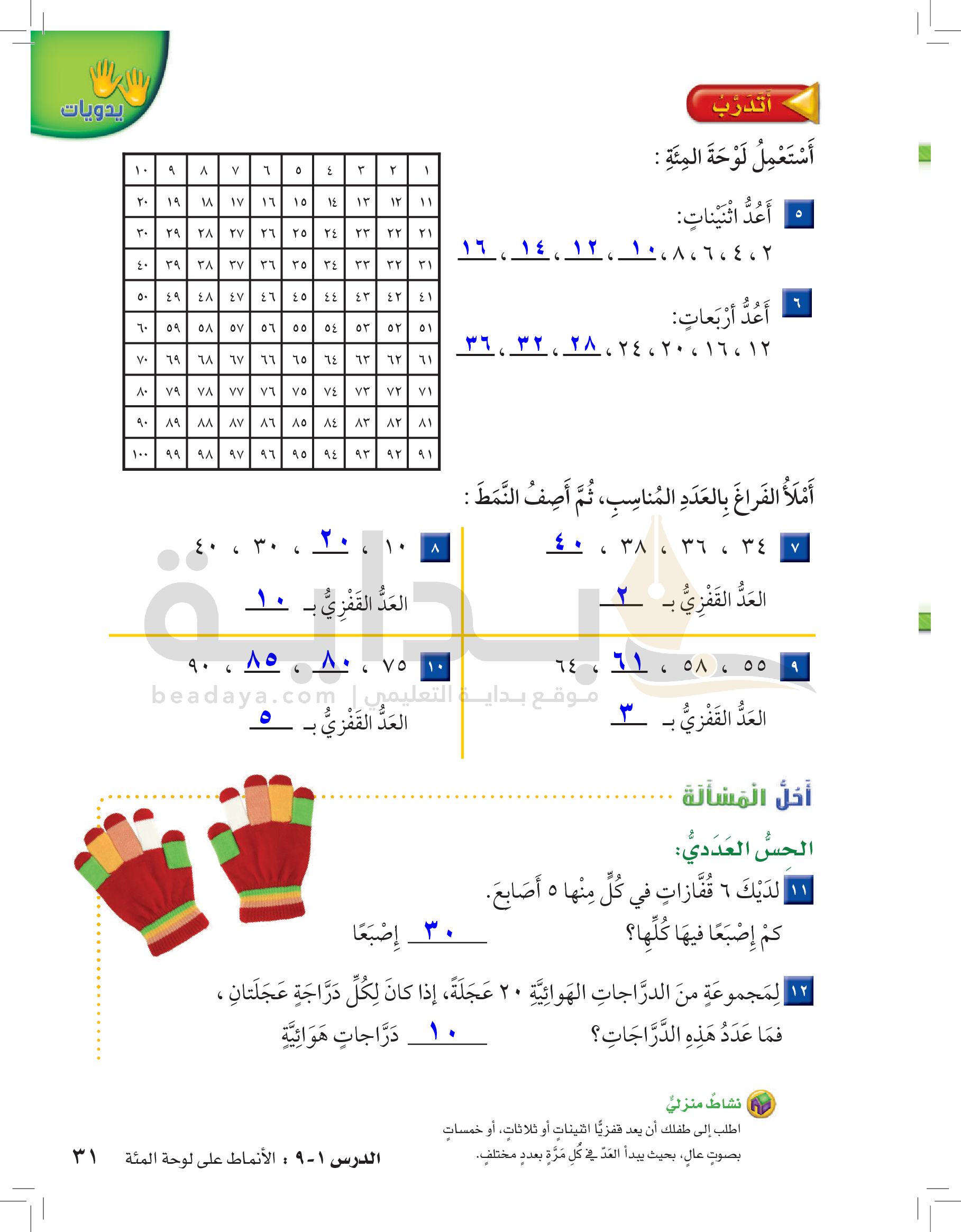 الفصل الأول: القيمة المنزلية حتى 100 والأنماط