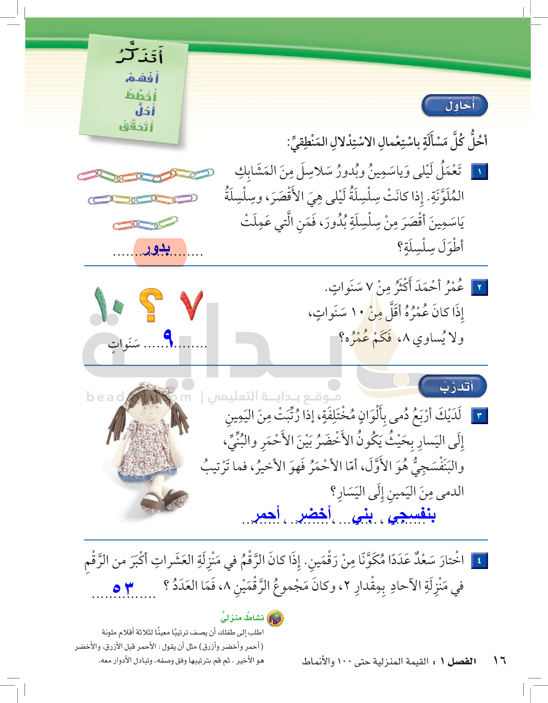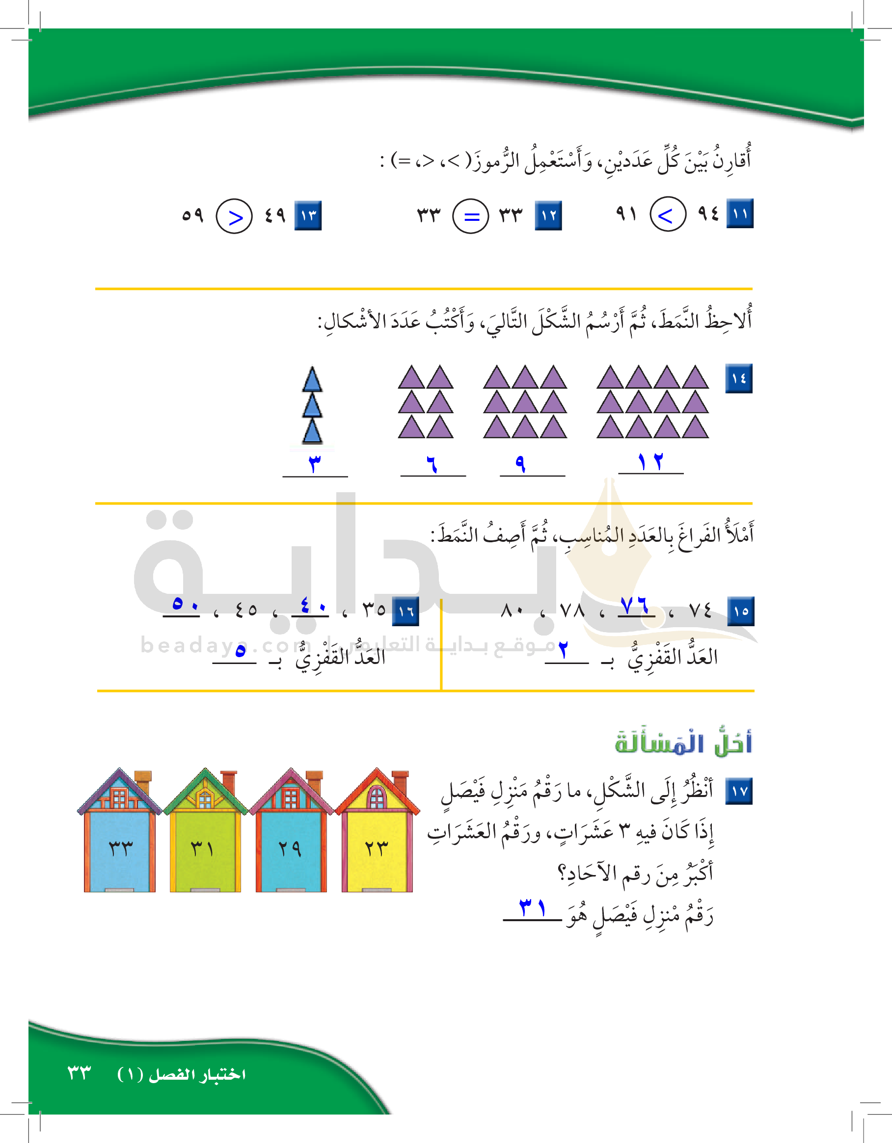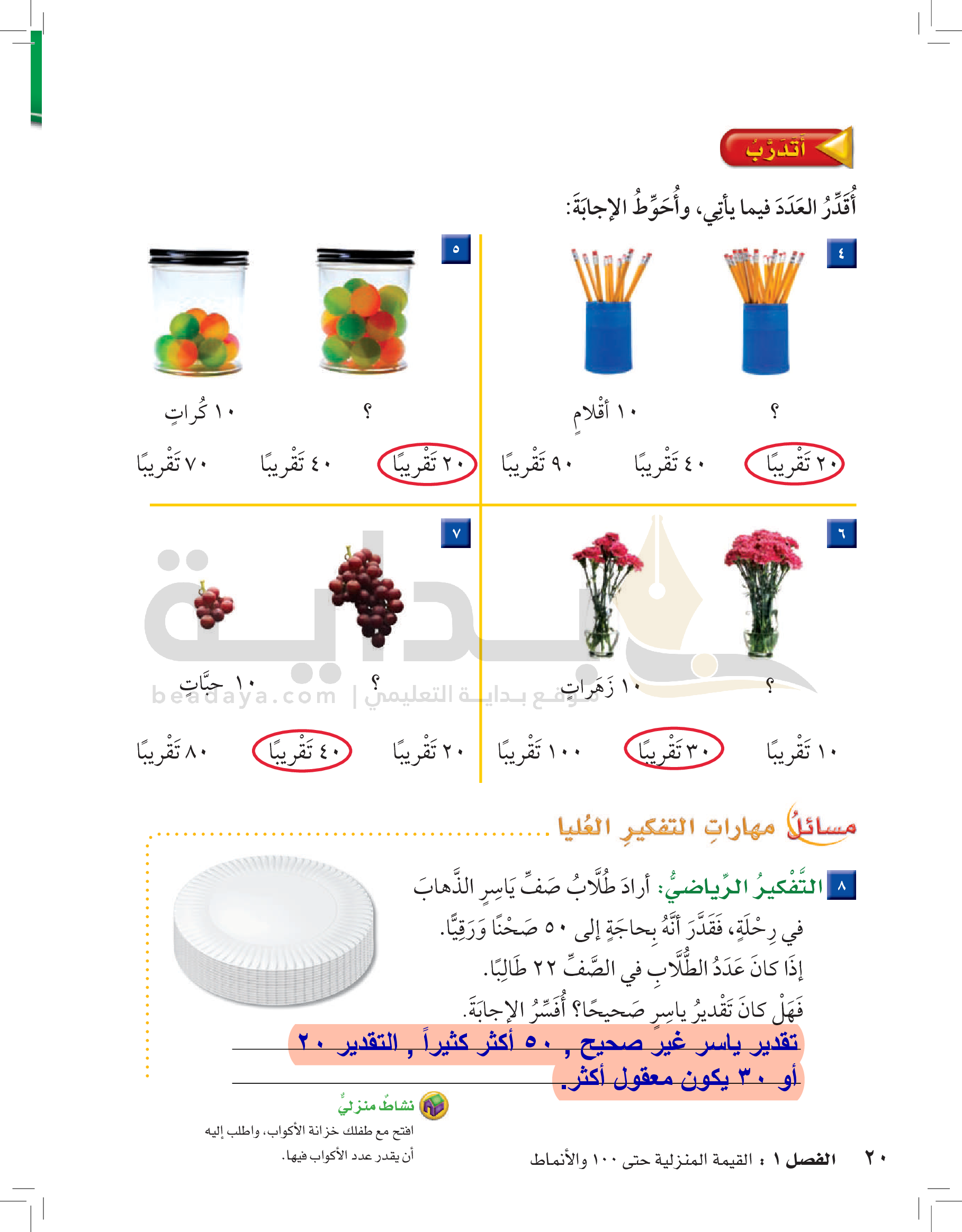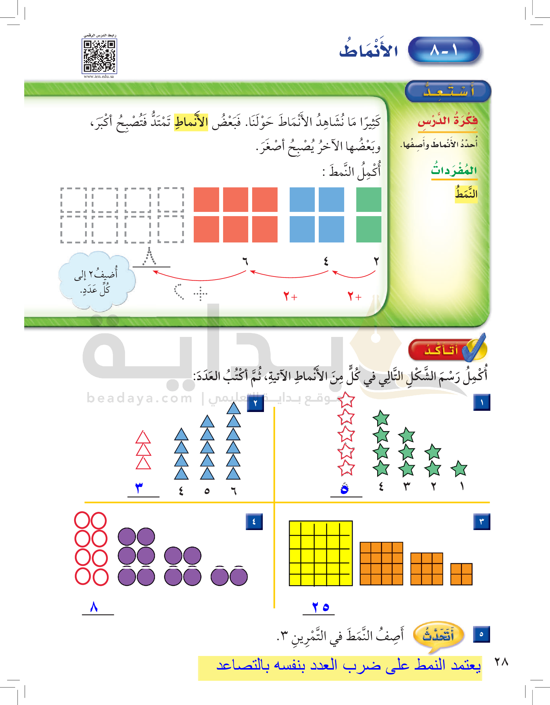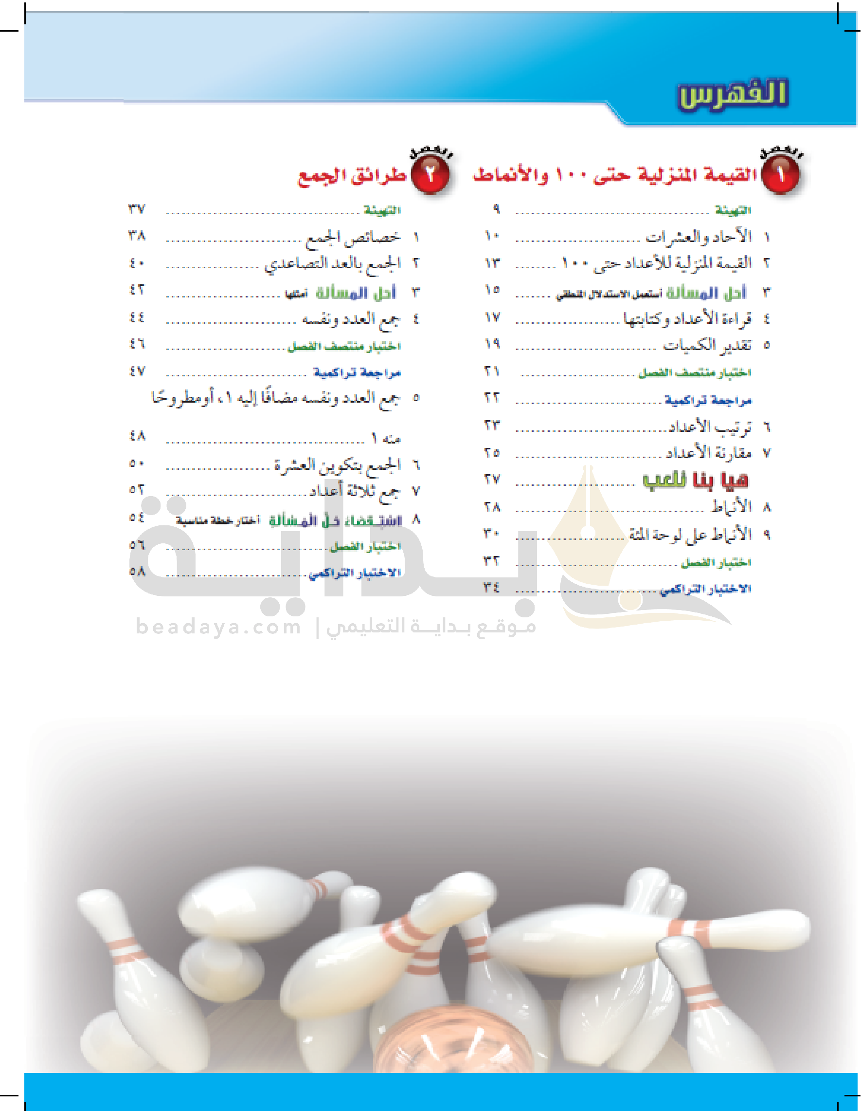 الفصل الأول: القيمة المنزلية حتى 100 والأنماط