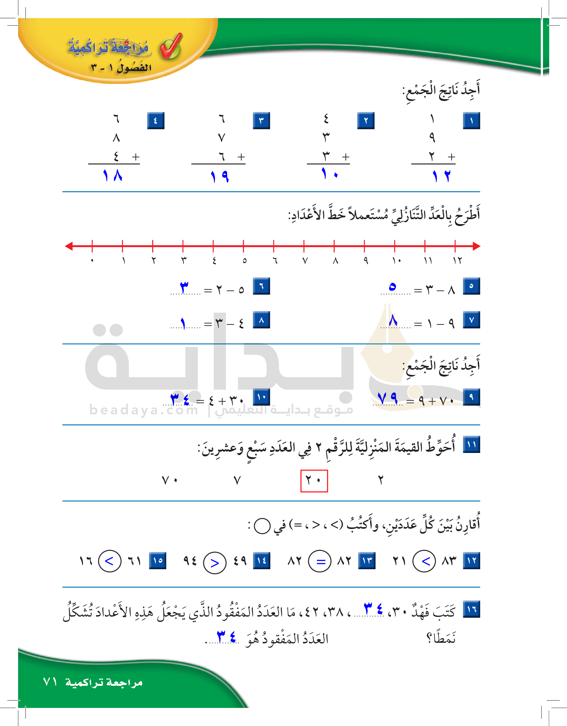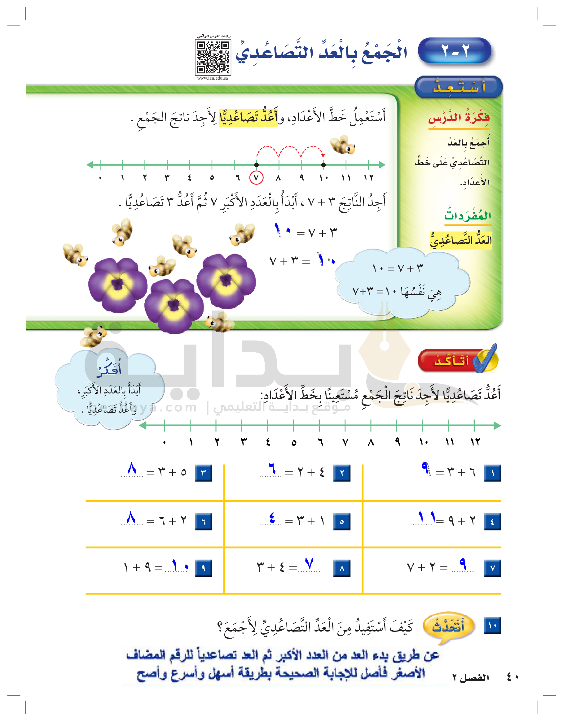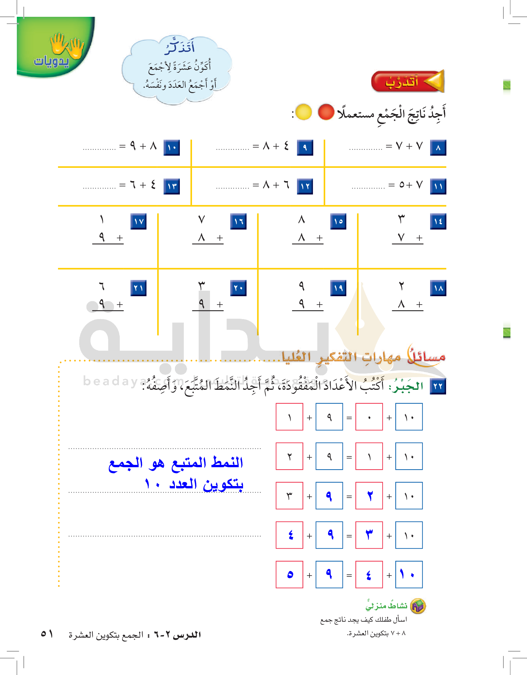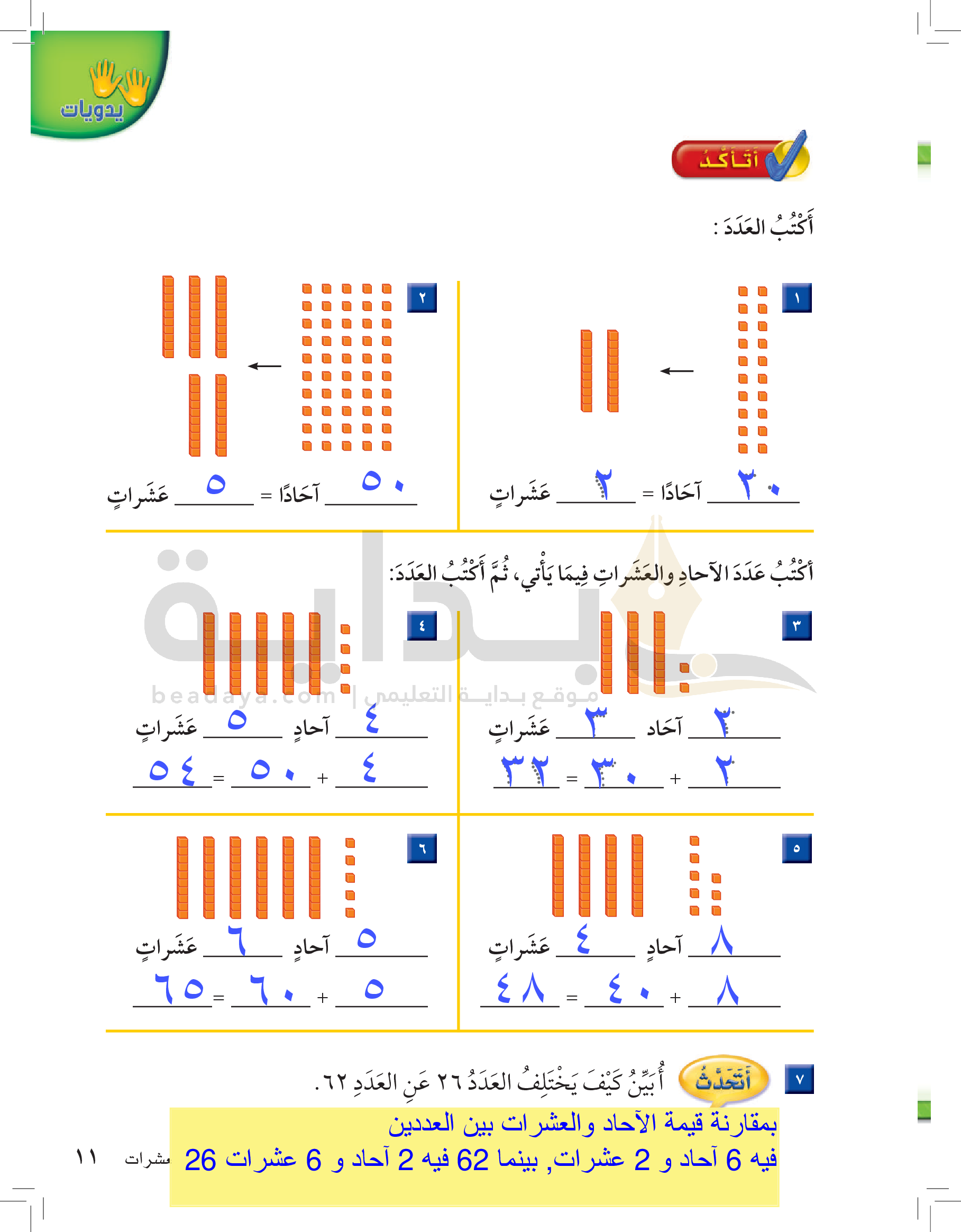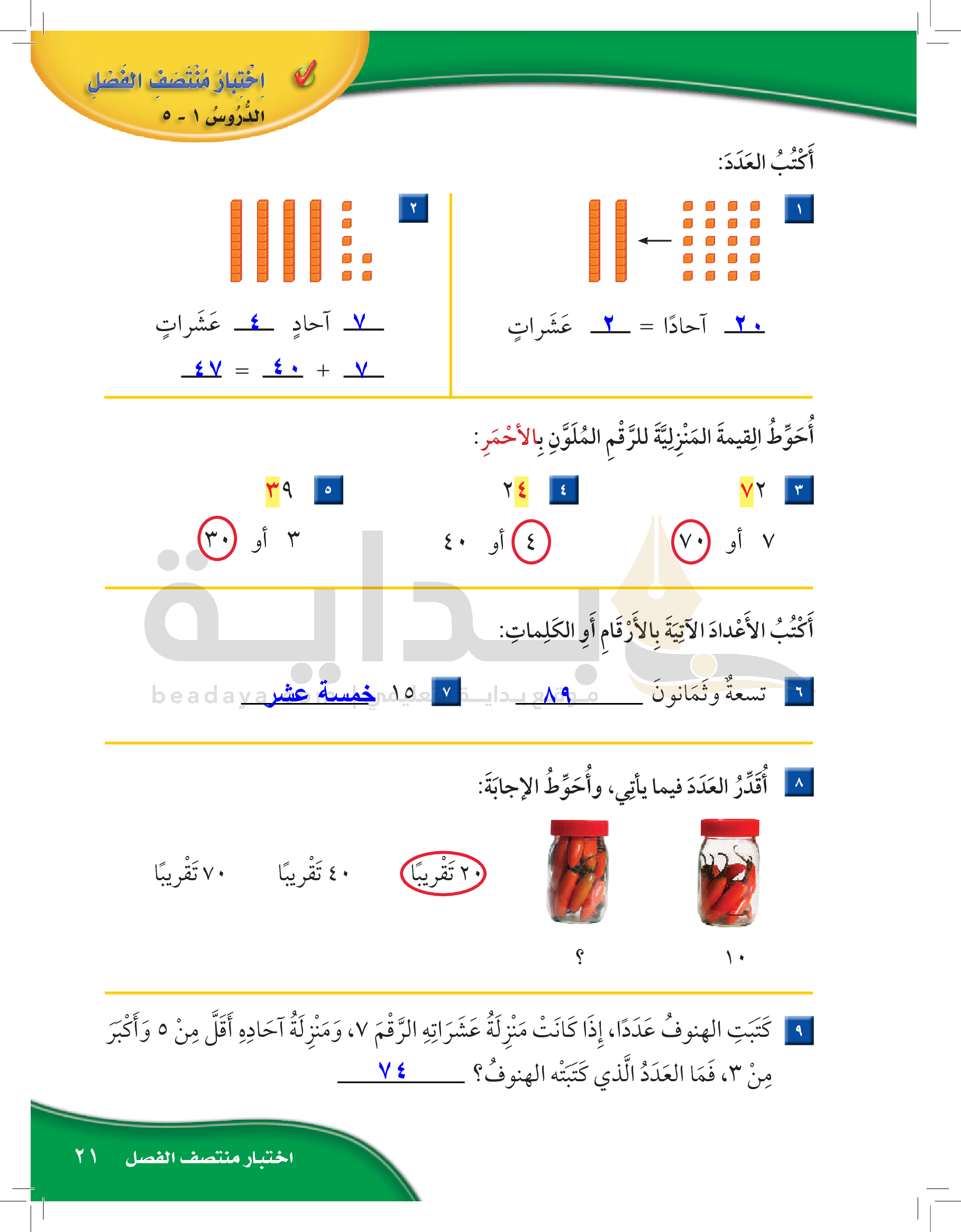 الفصل الأول: القيمة المنزلية حتى 100 والأنماط
