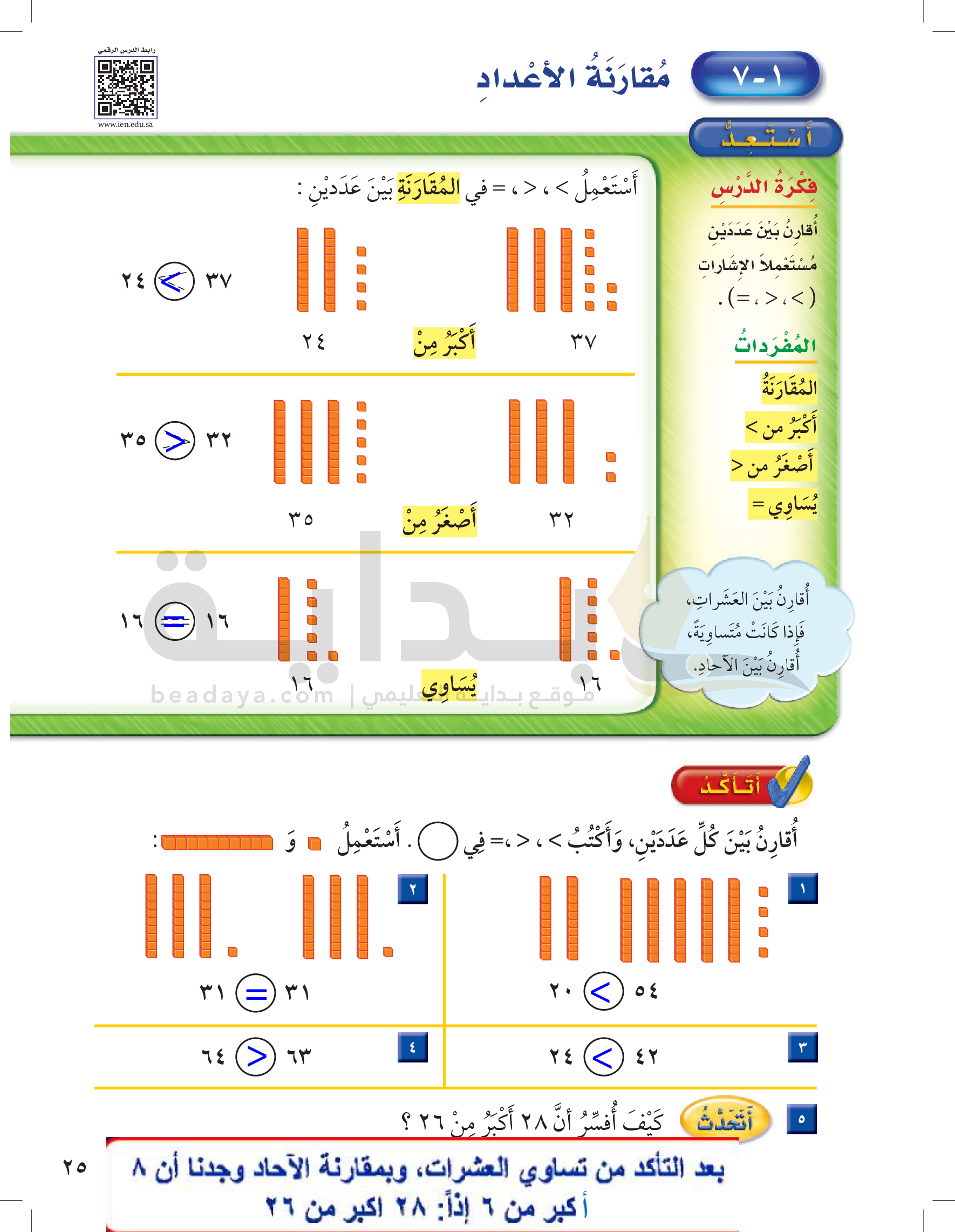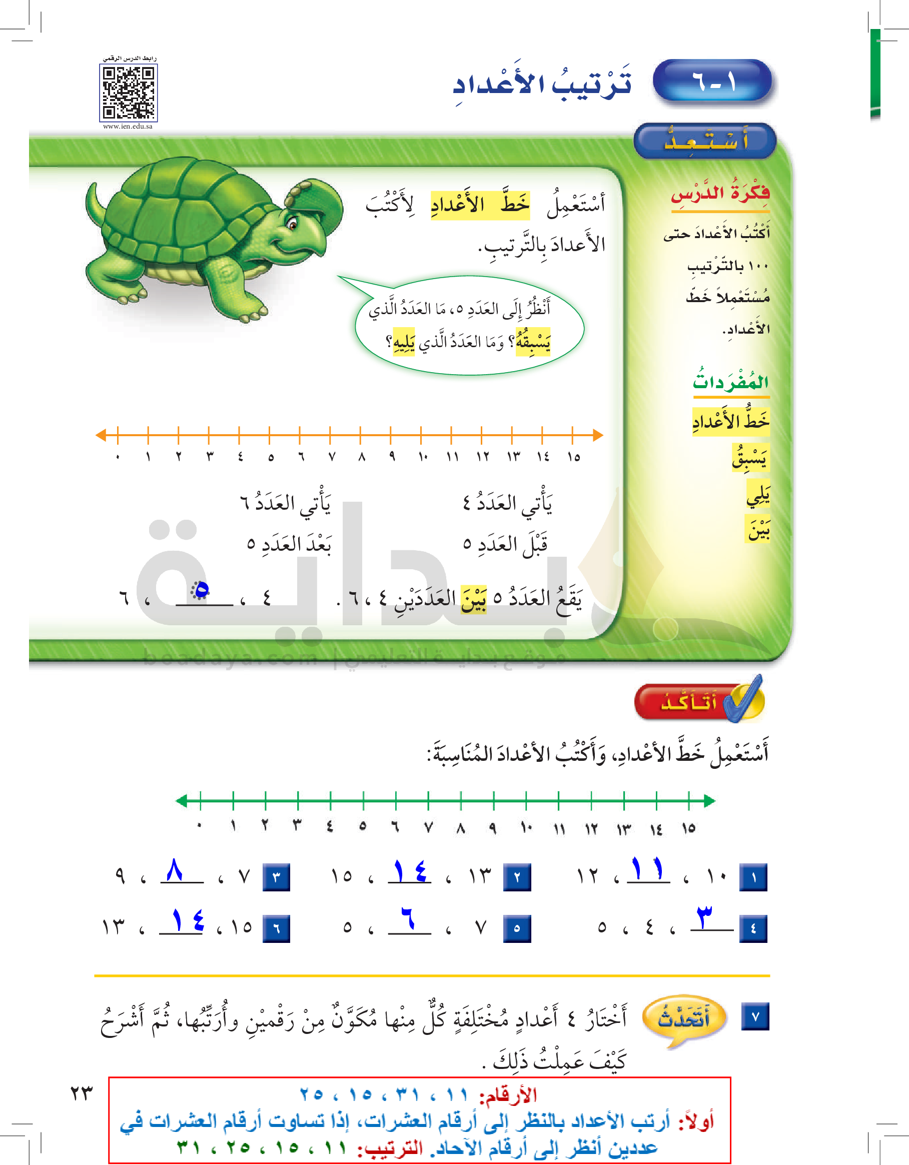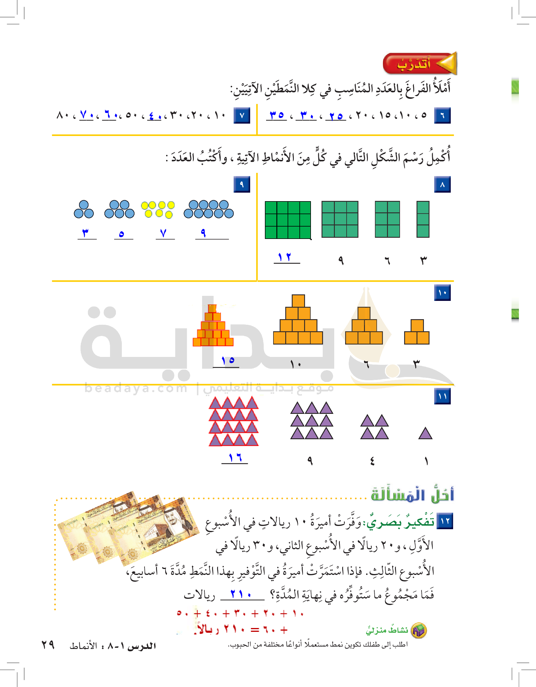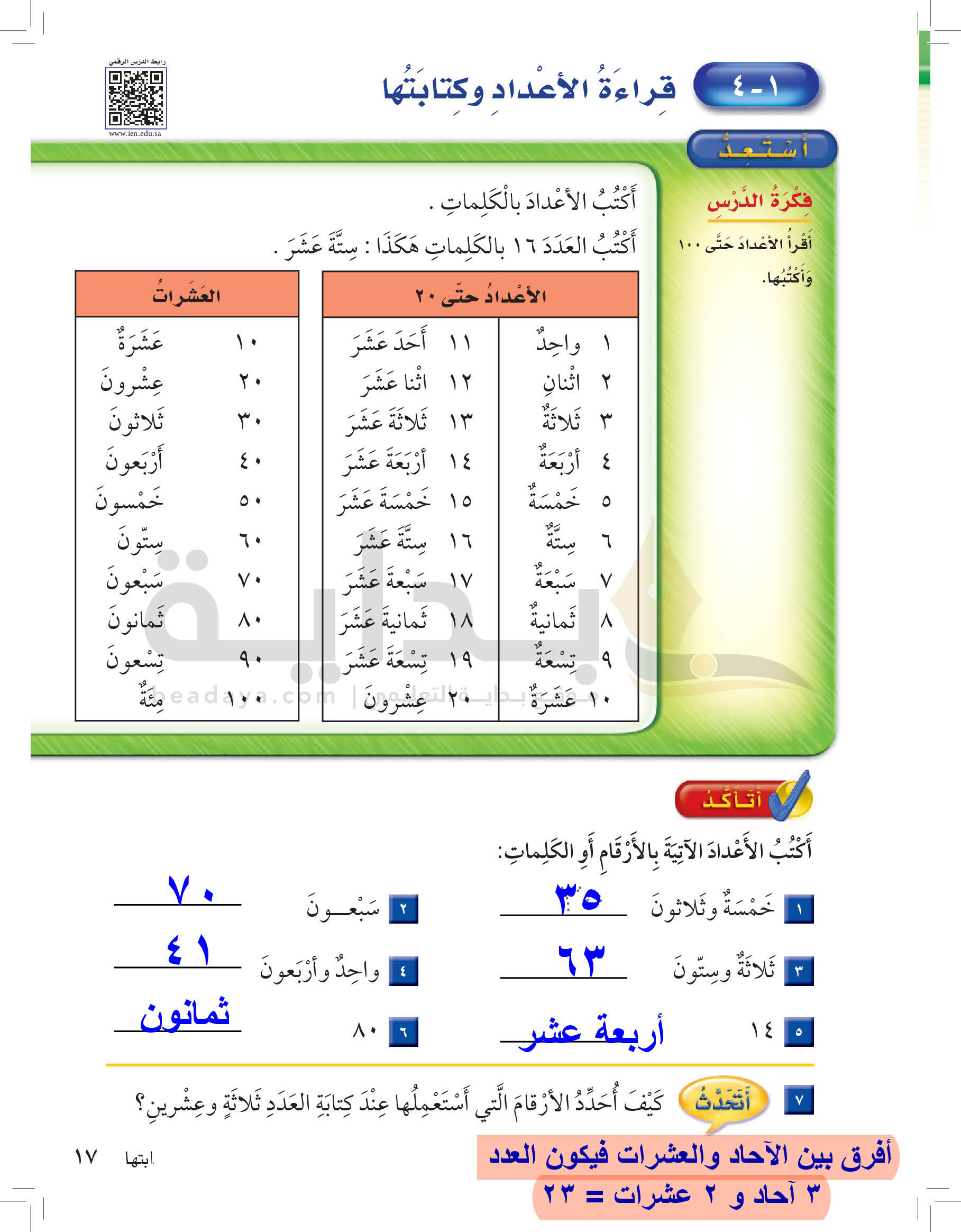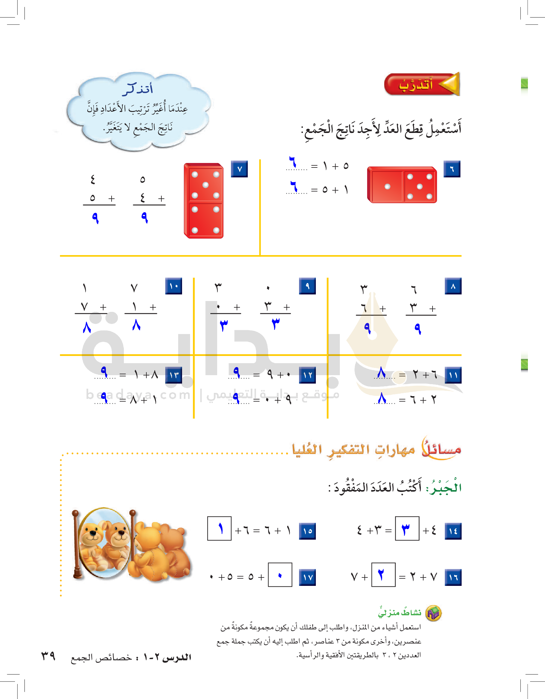الفصل الأول: القيمة المنزلية حتى 100 والأنماط