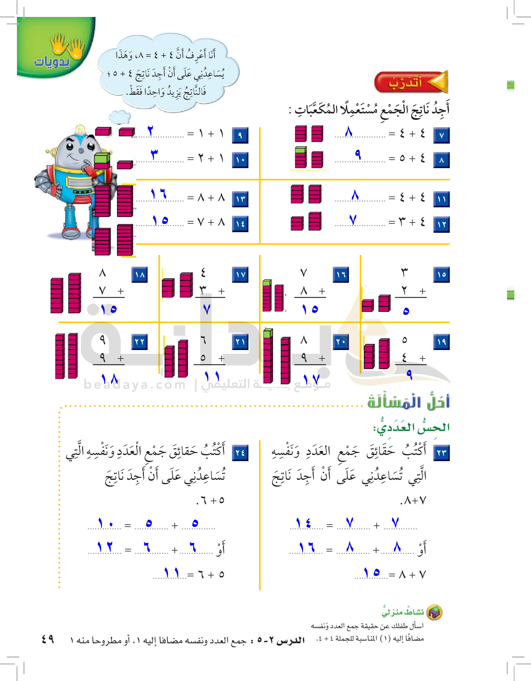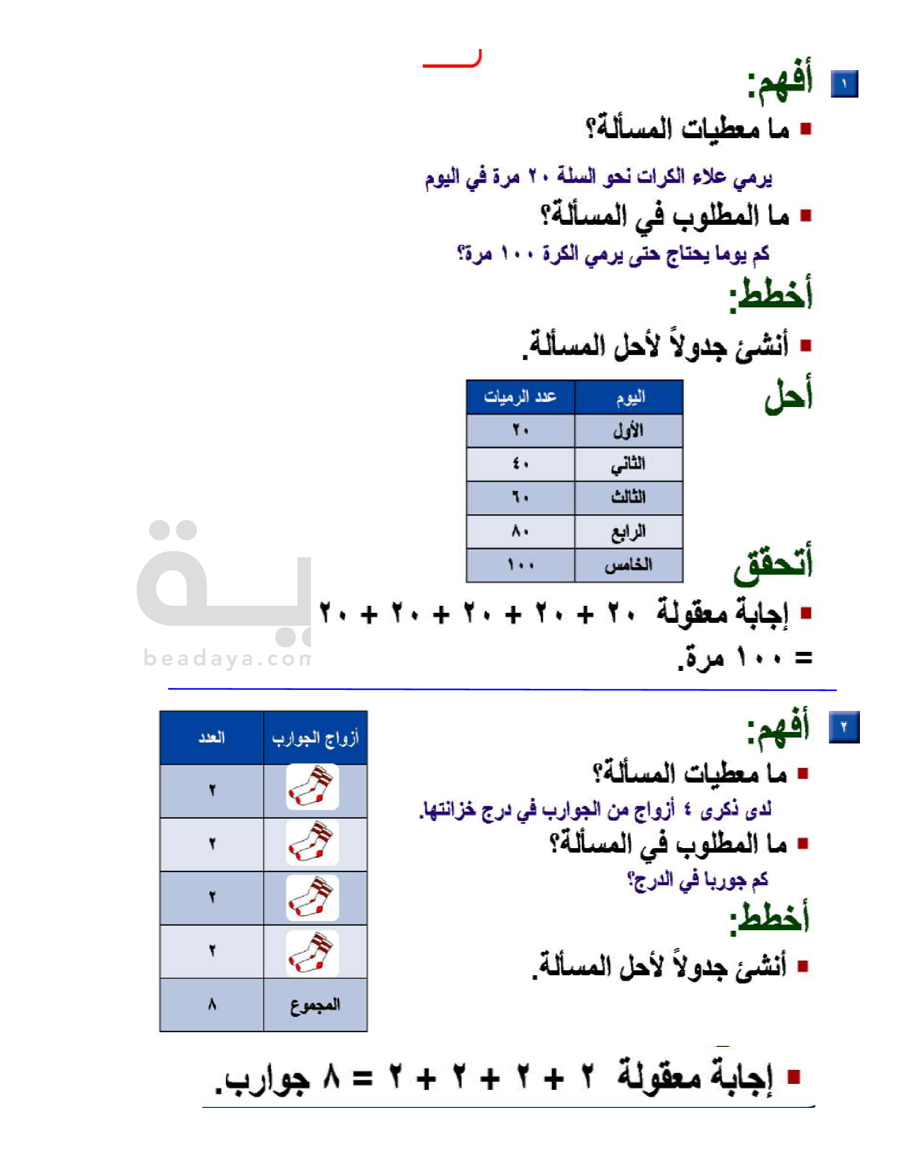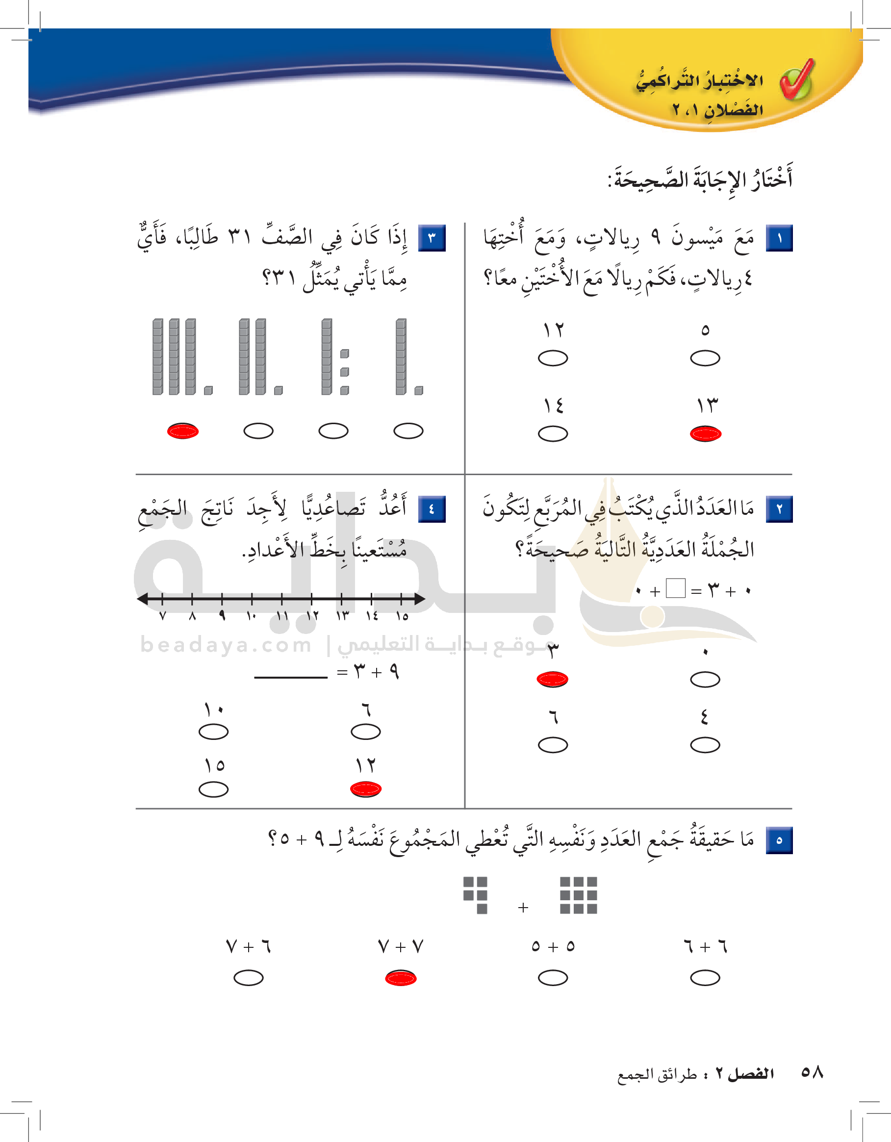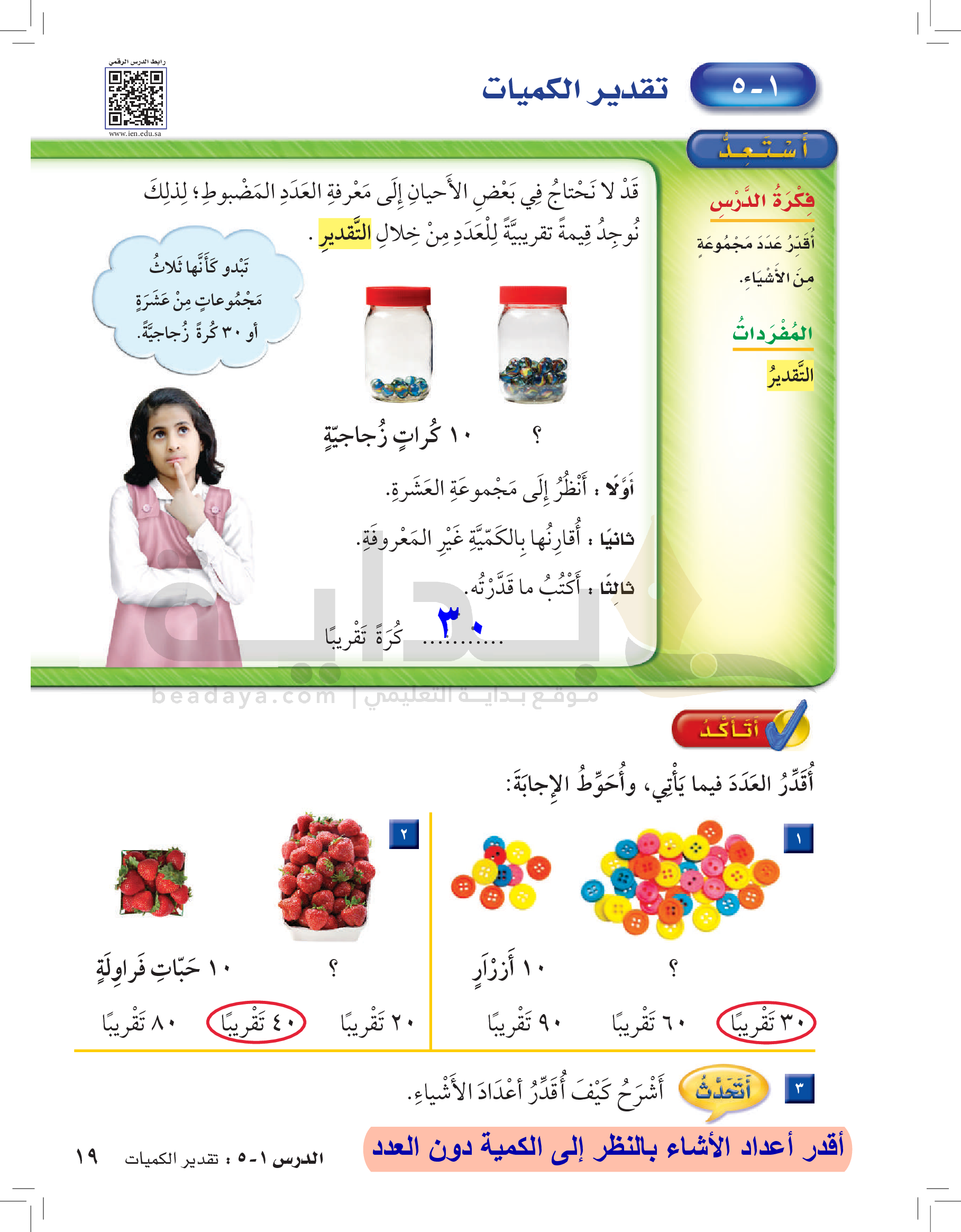 الفصل الأول: القيمة المنزلية حتى 100 والأنماط