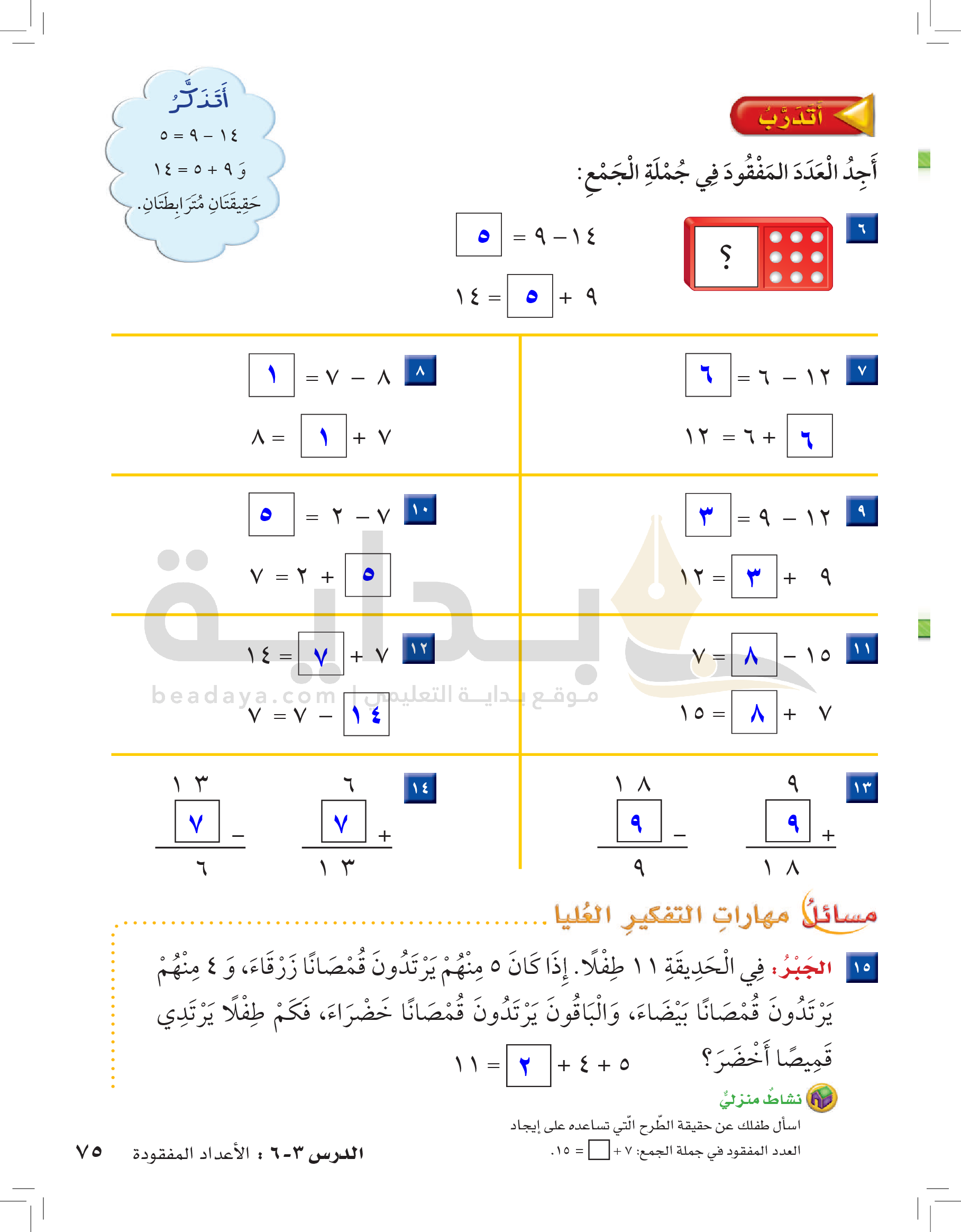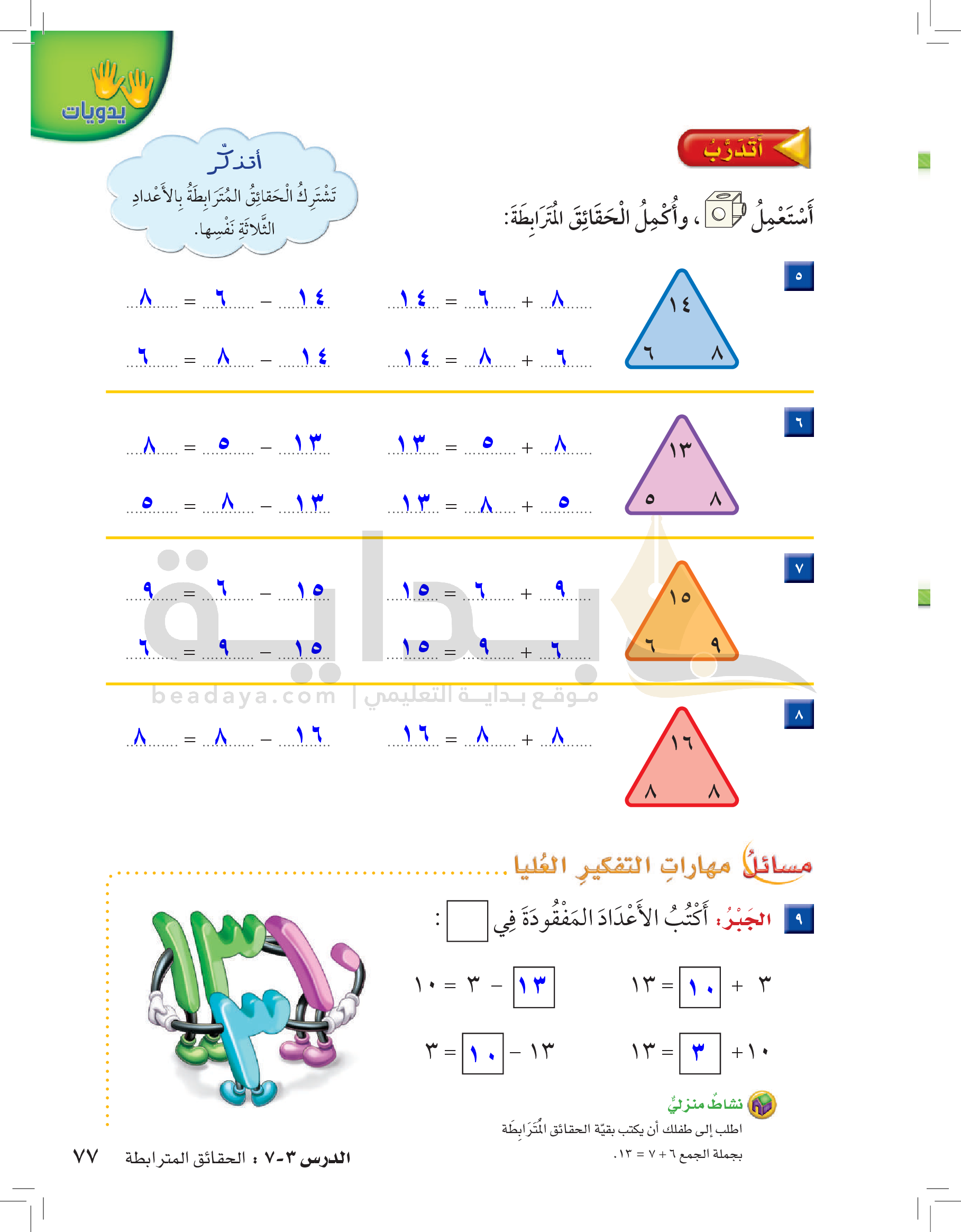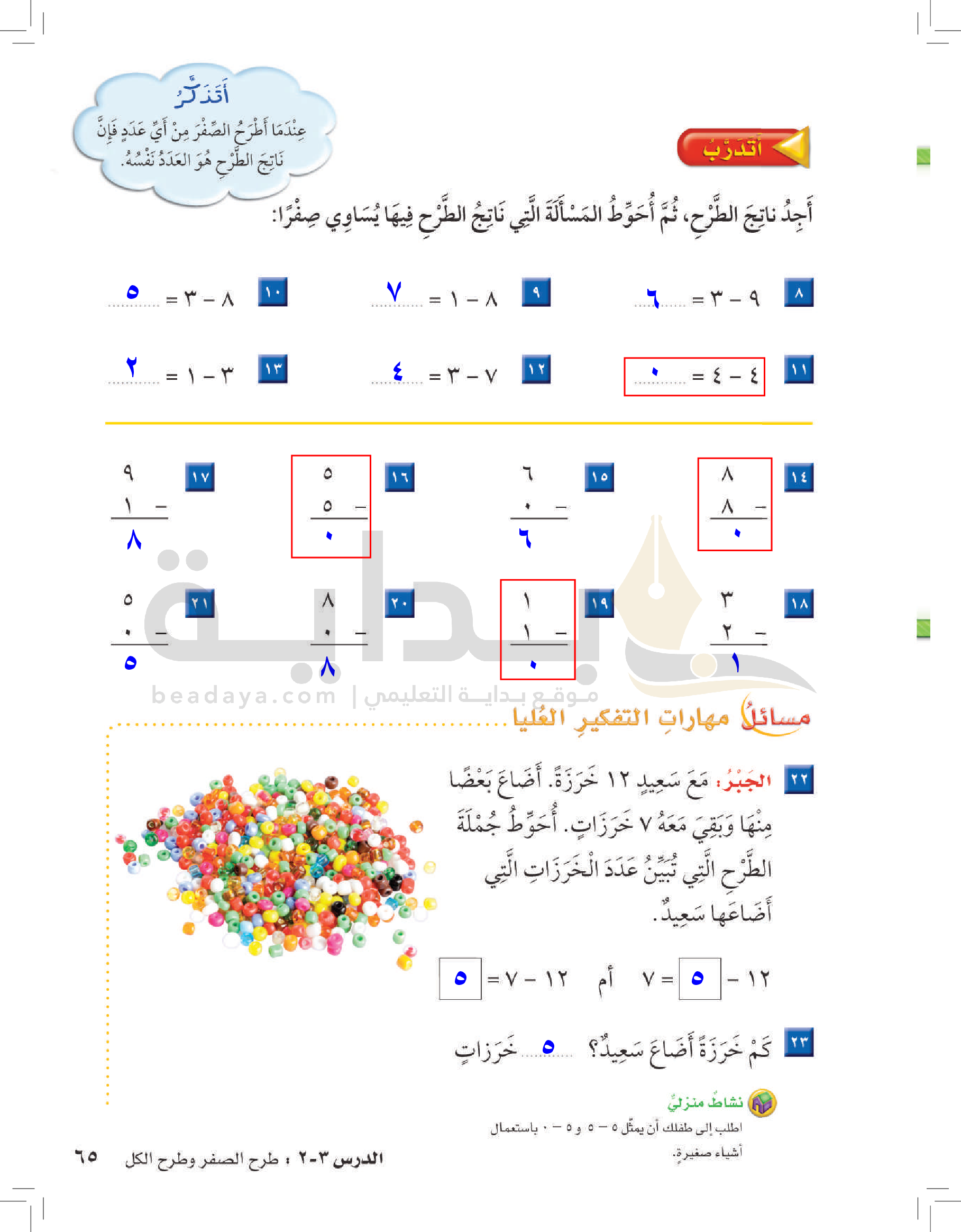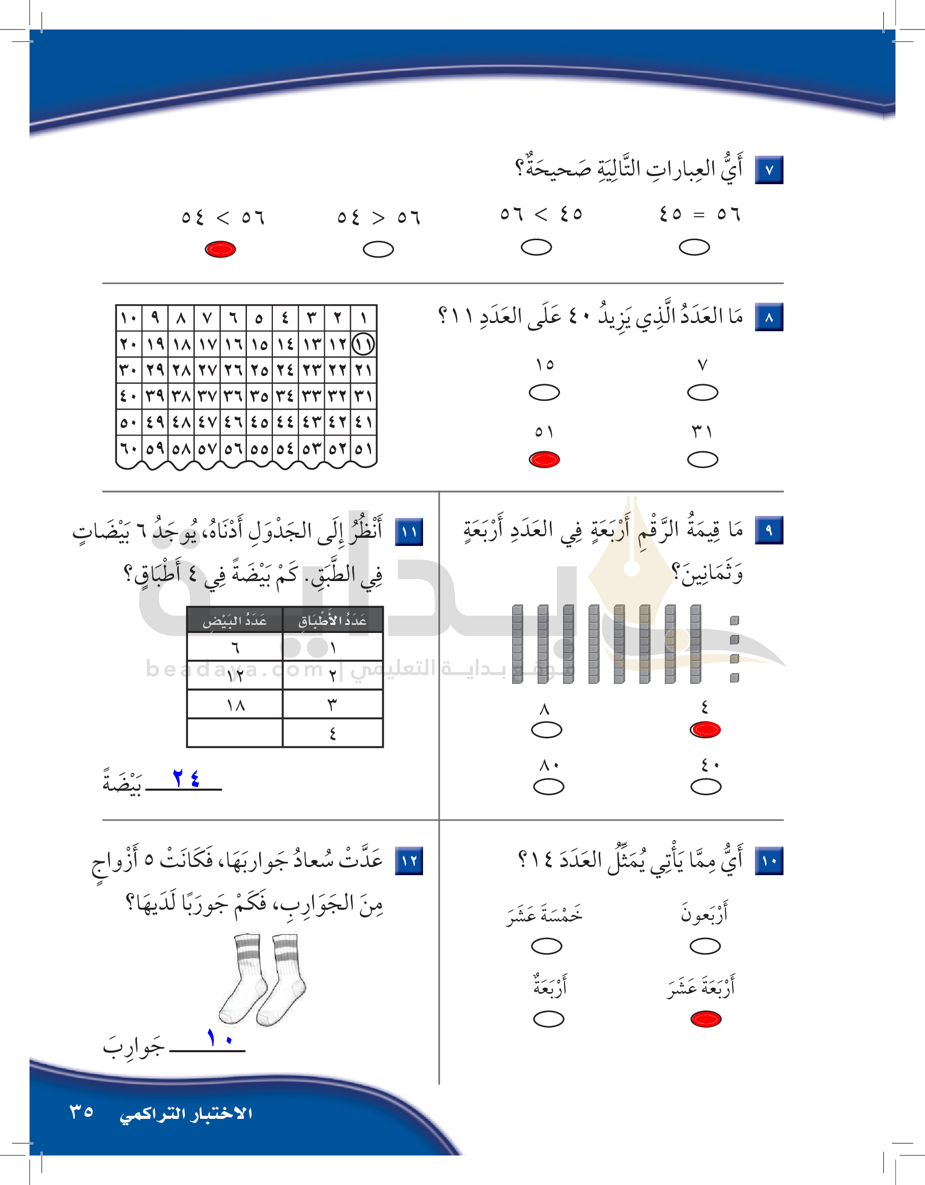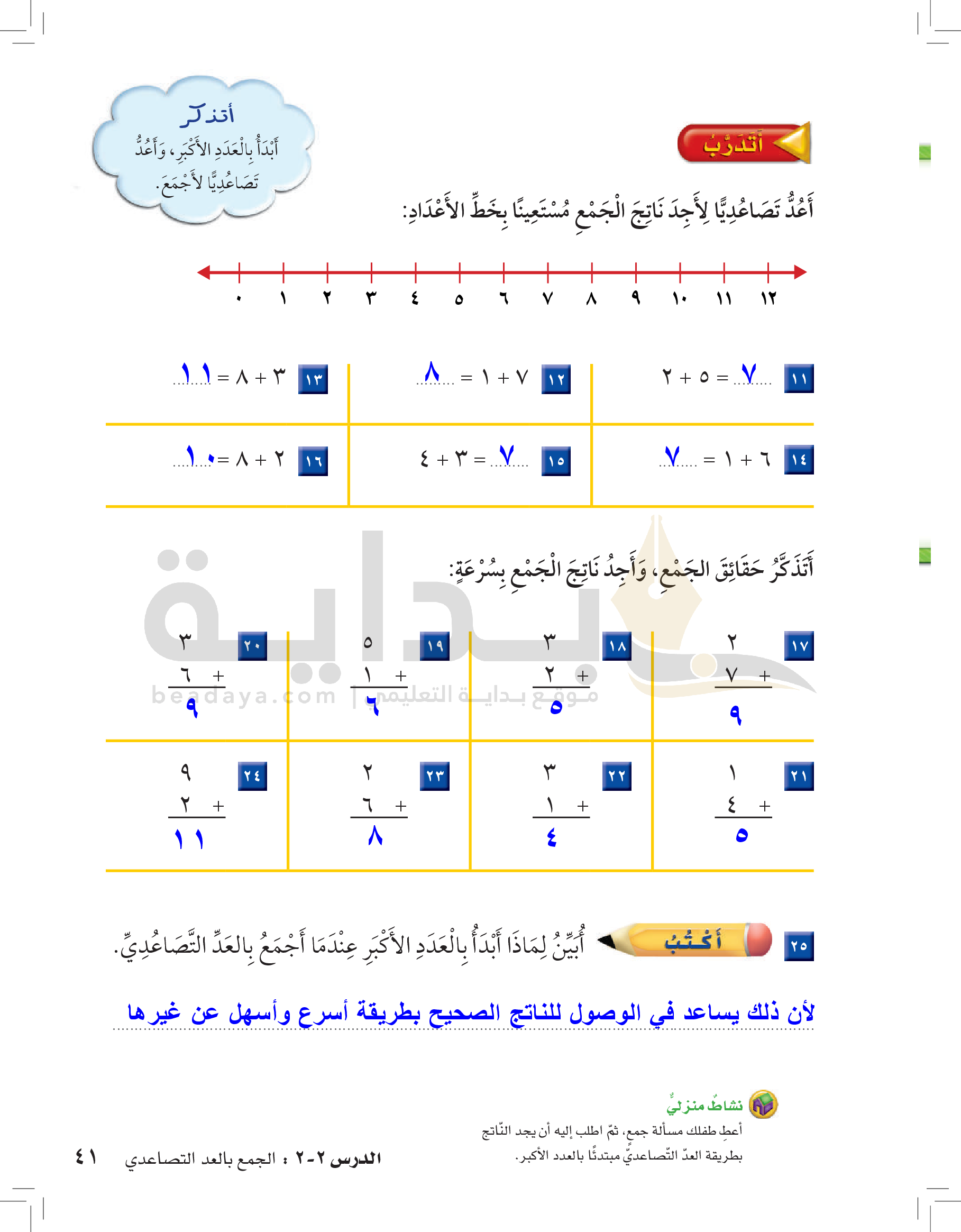 الفصل الأول: القيمة المنزلية حتى 100 والأنماط