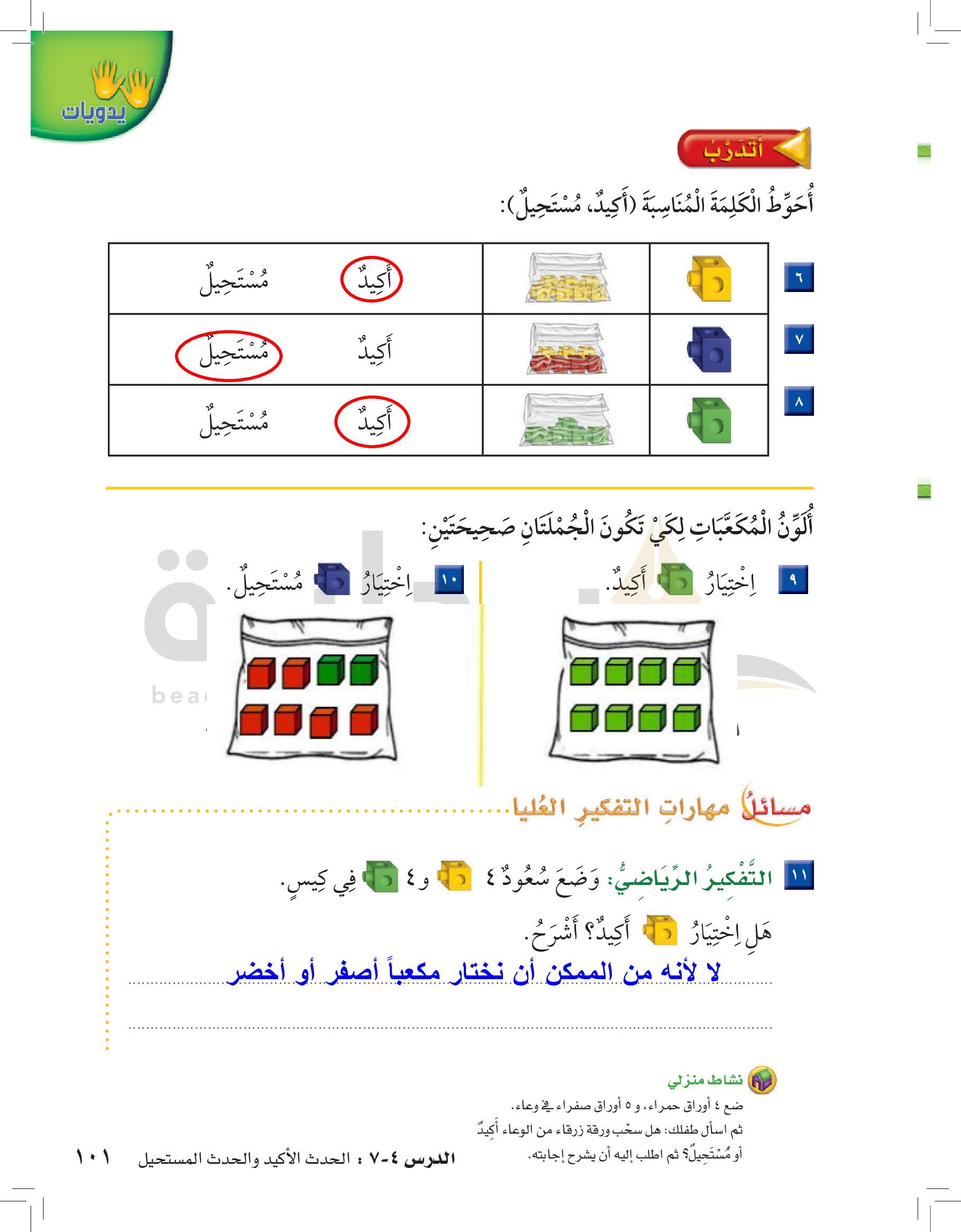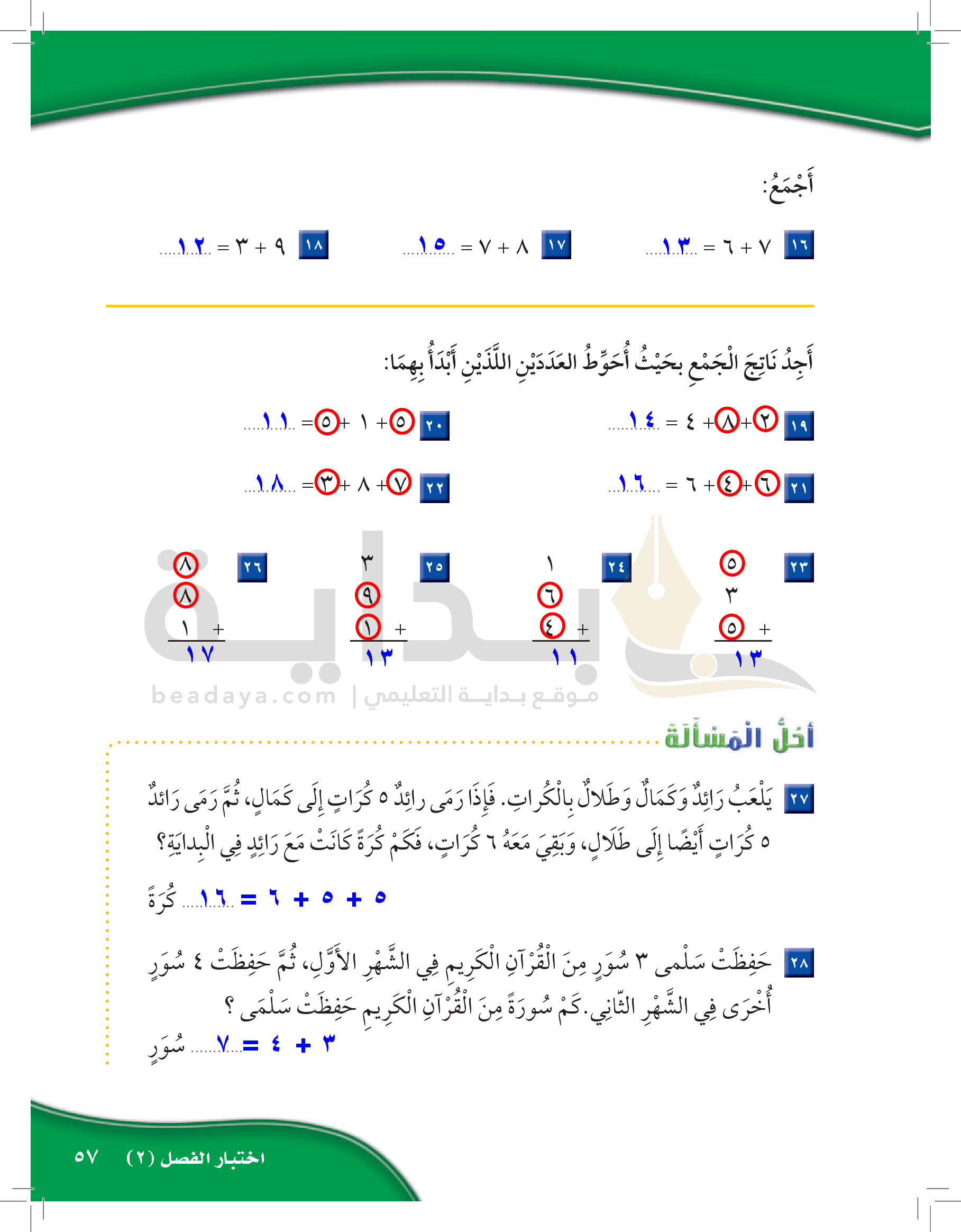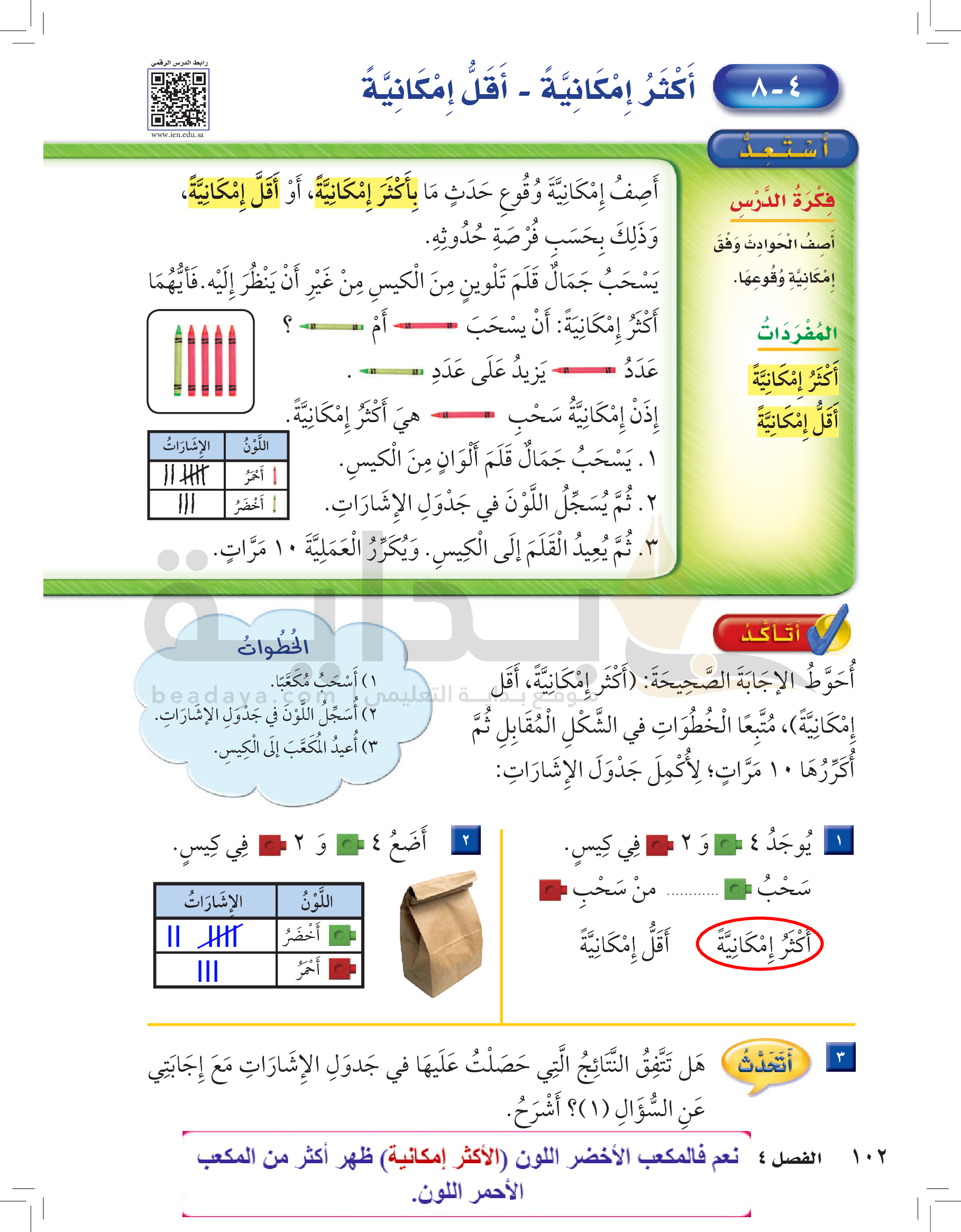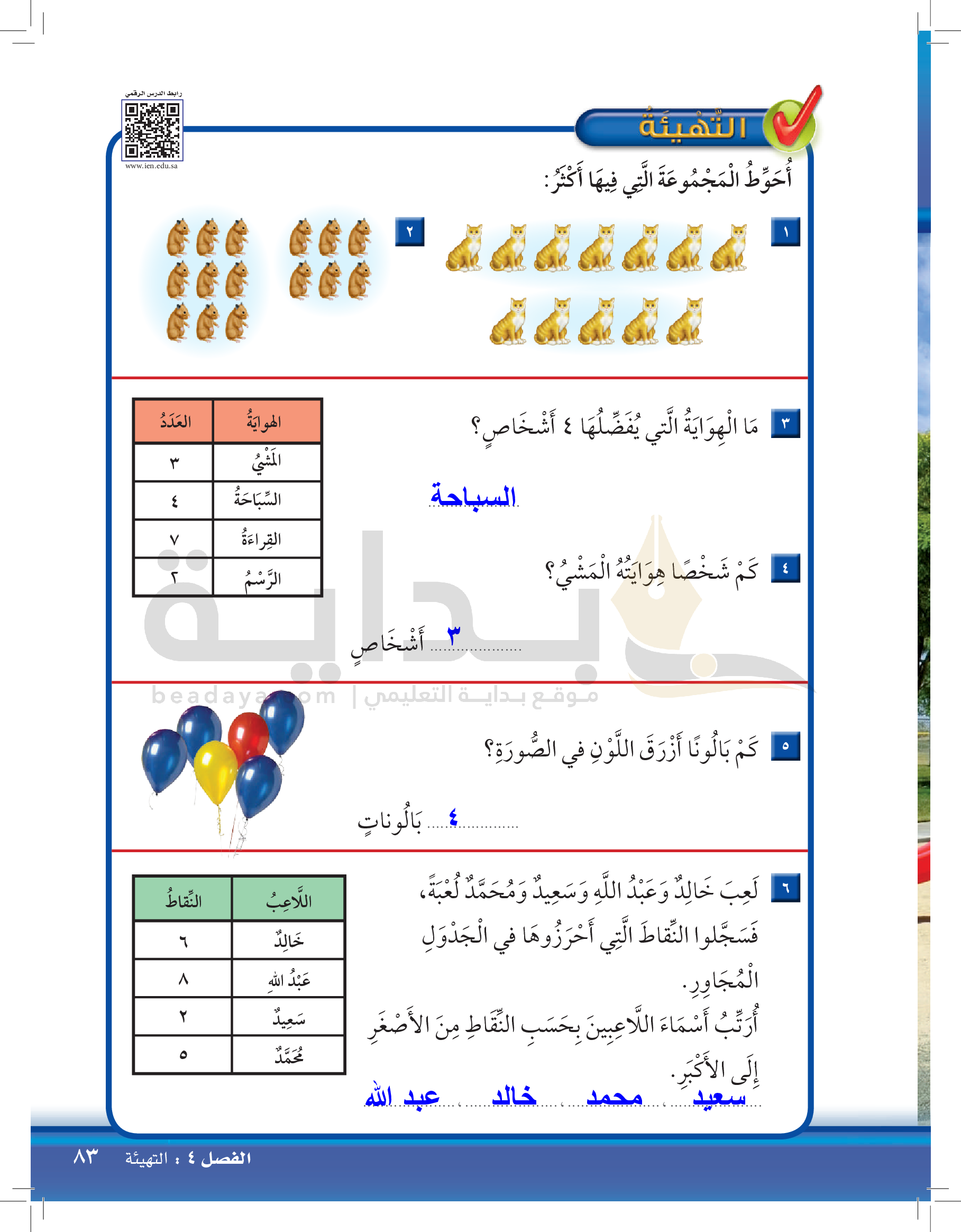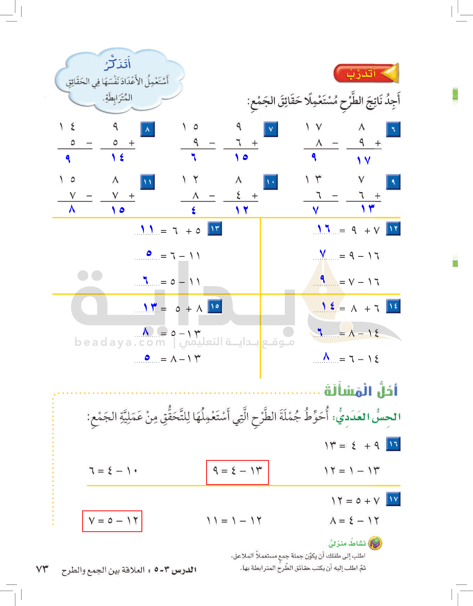 الفصل الأول: القيمة المنزلية حتى 100 والأنماط