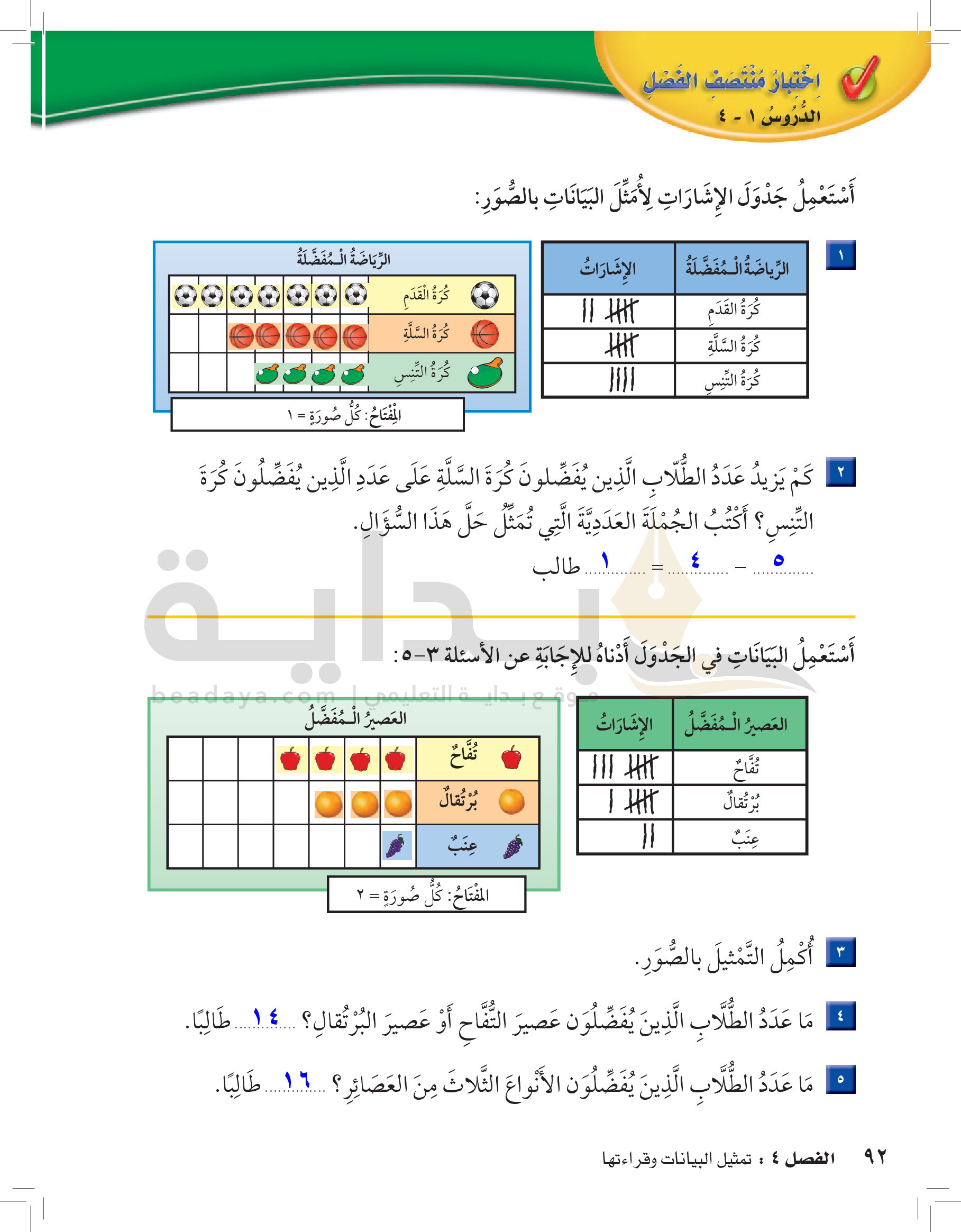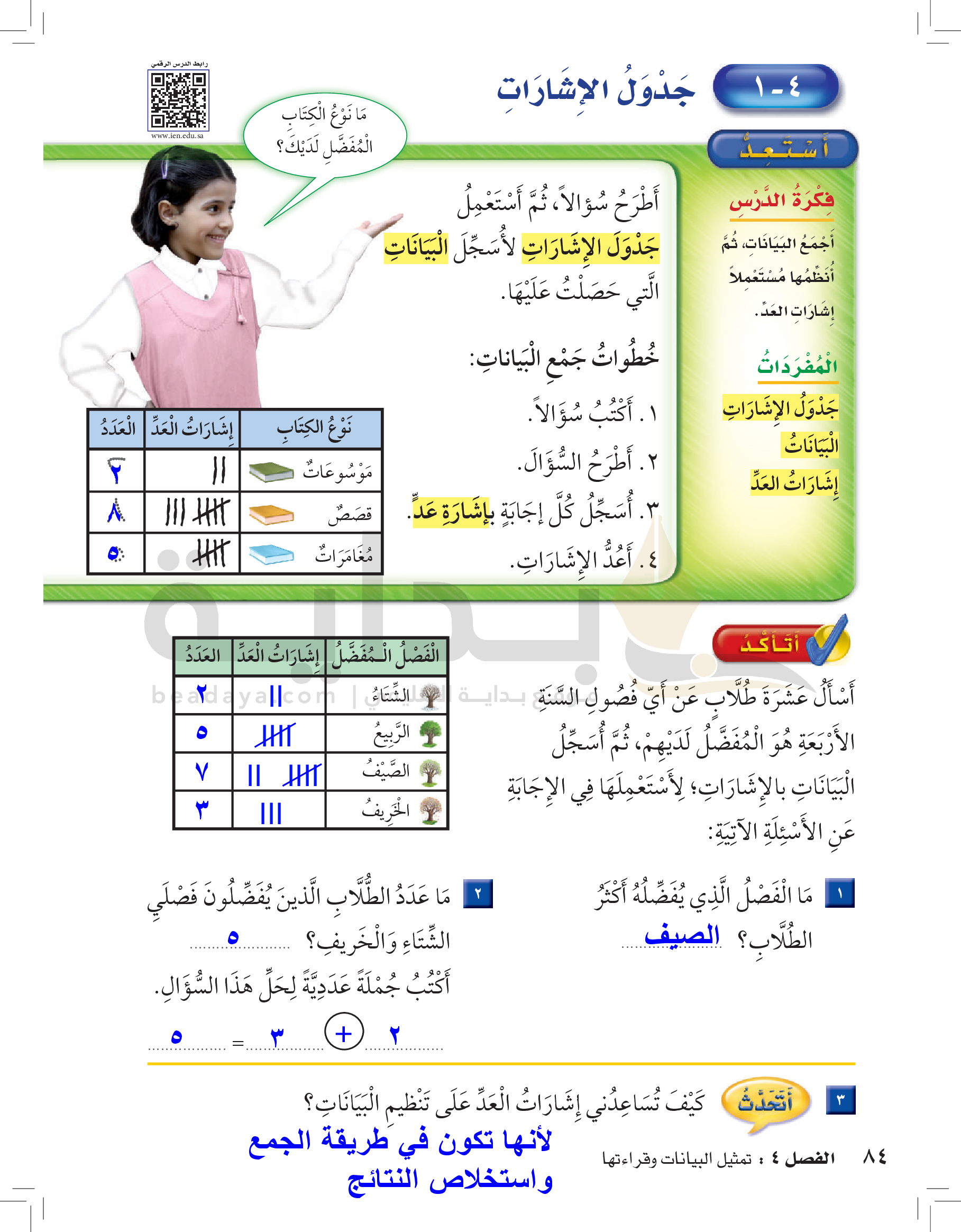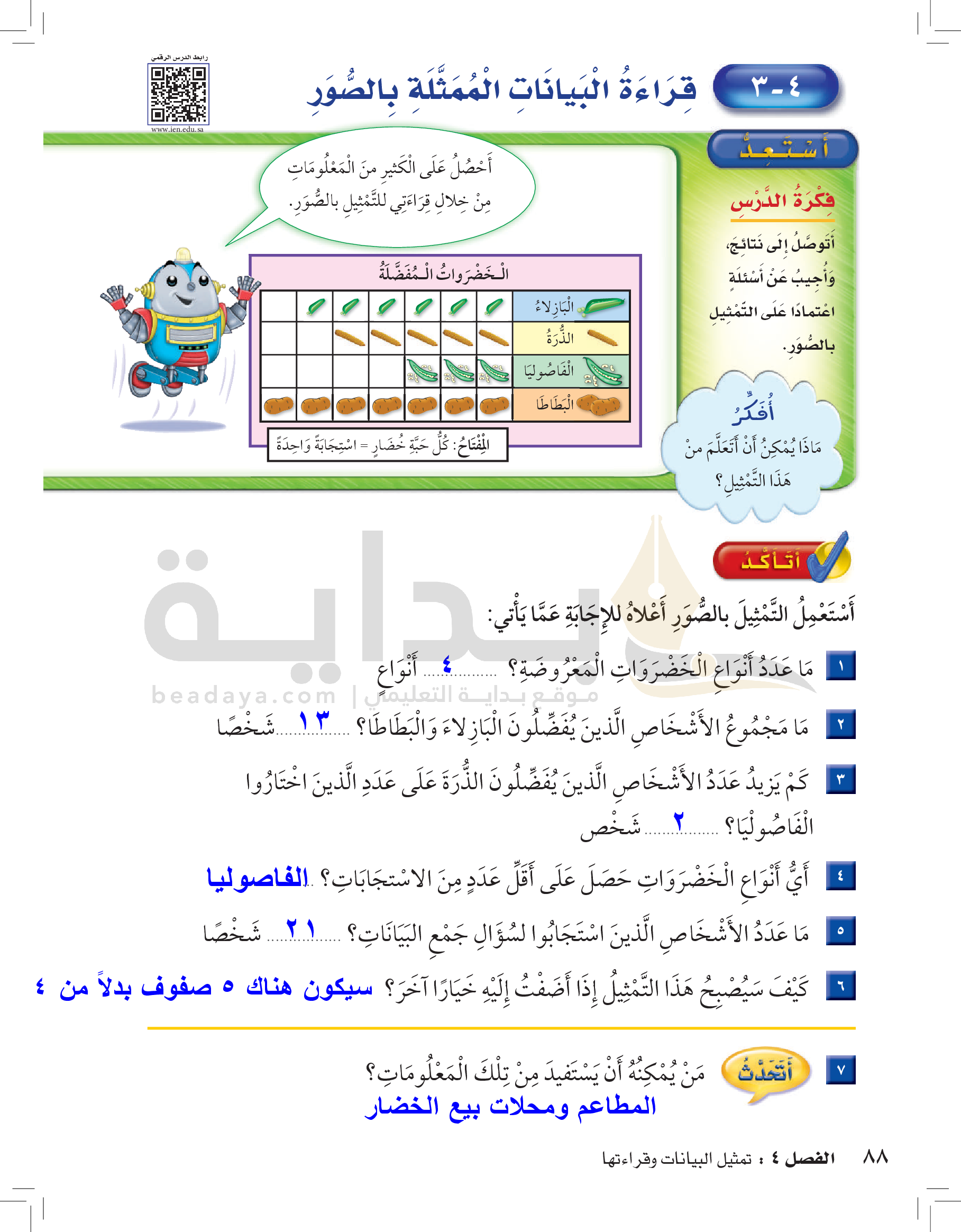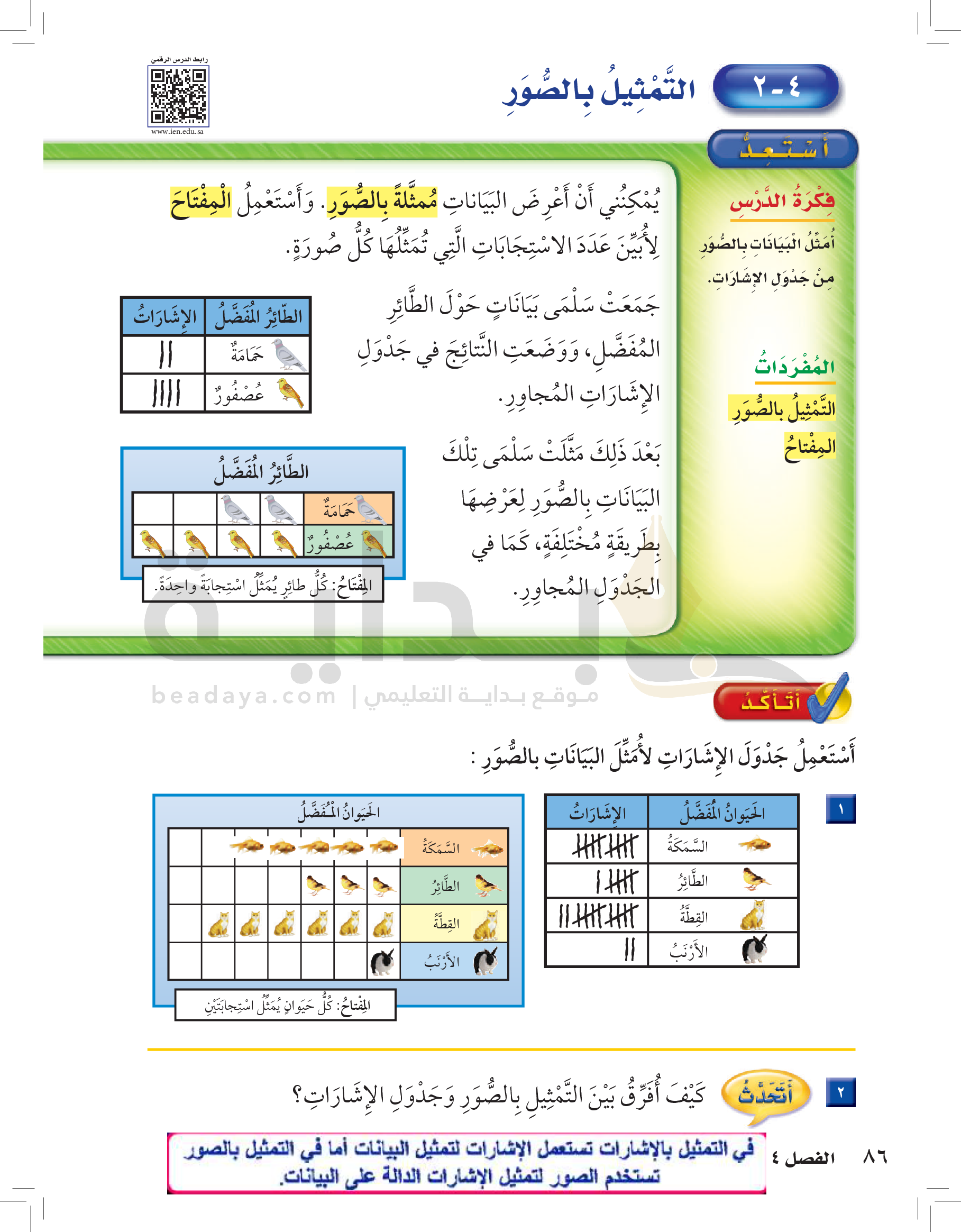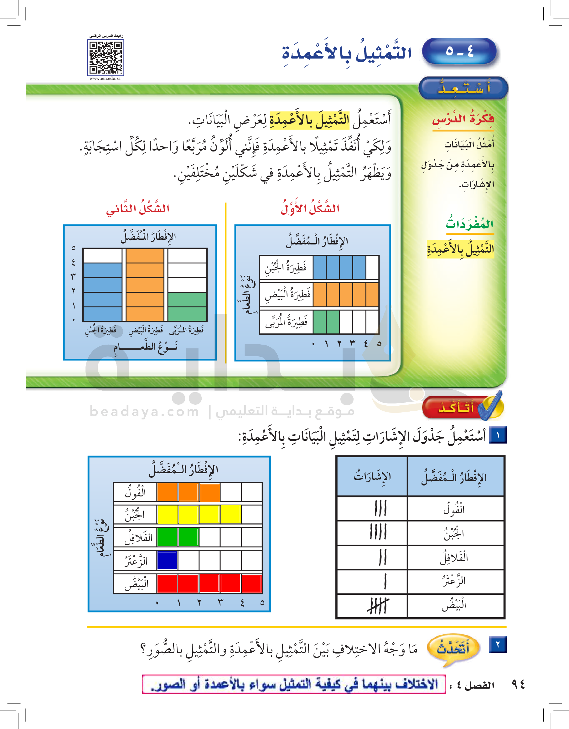 الفصل الرابع: تمثيل البيانات وقراءتها