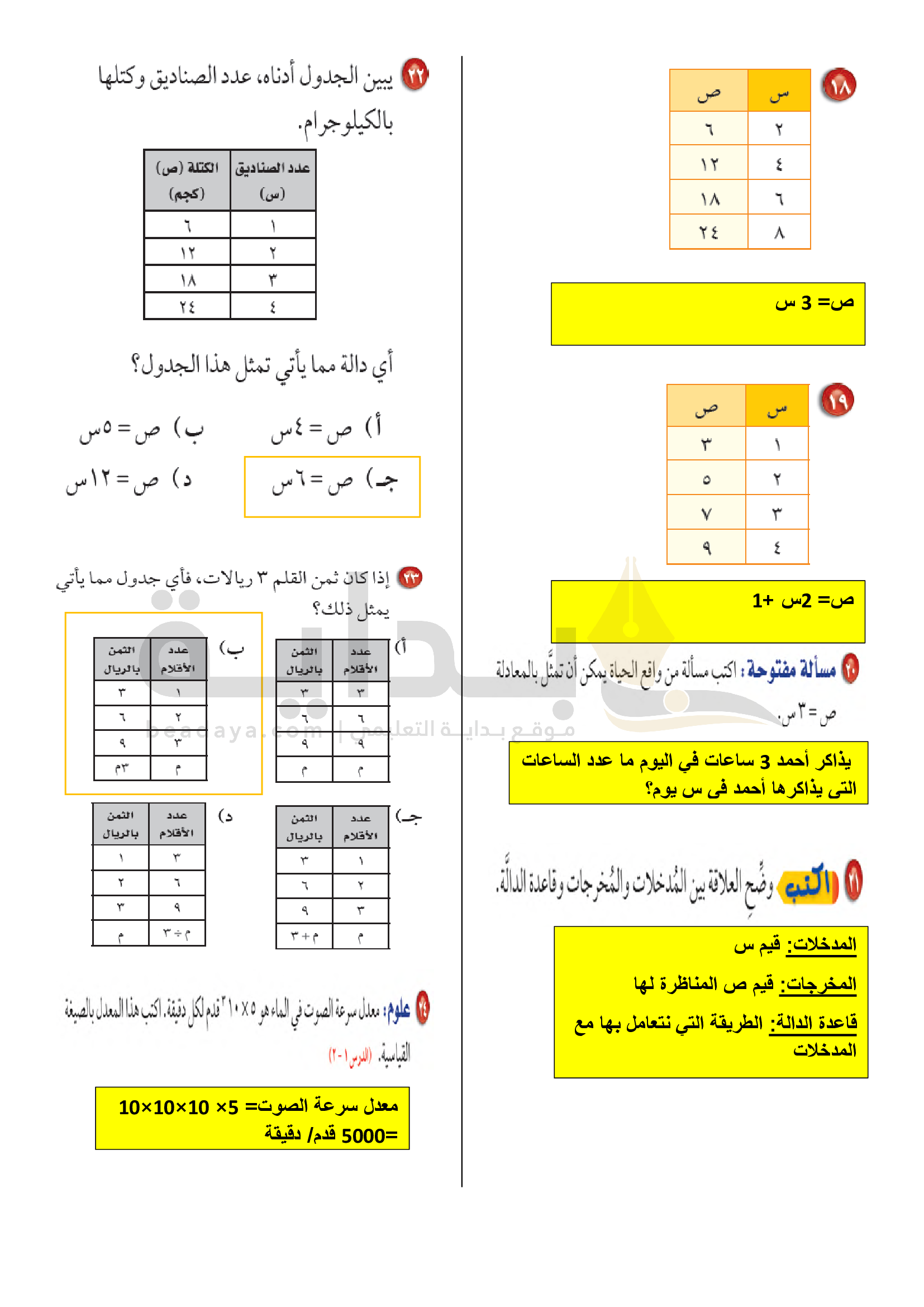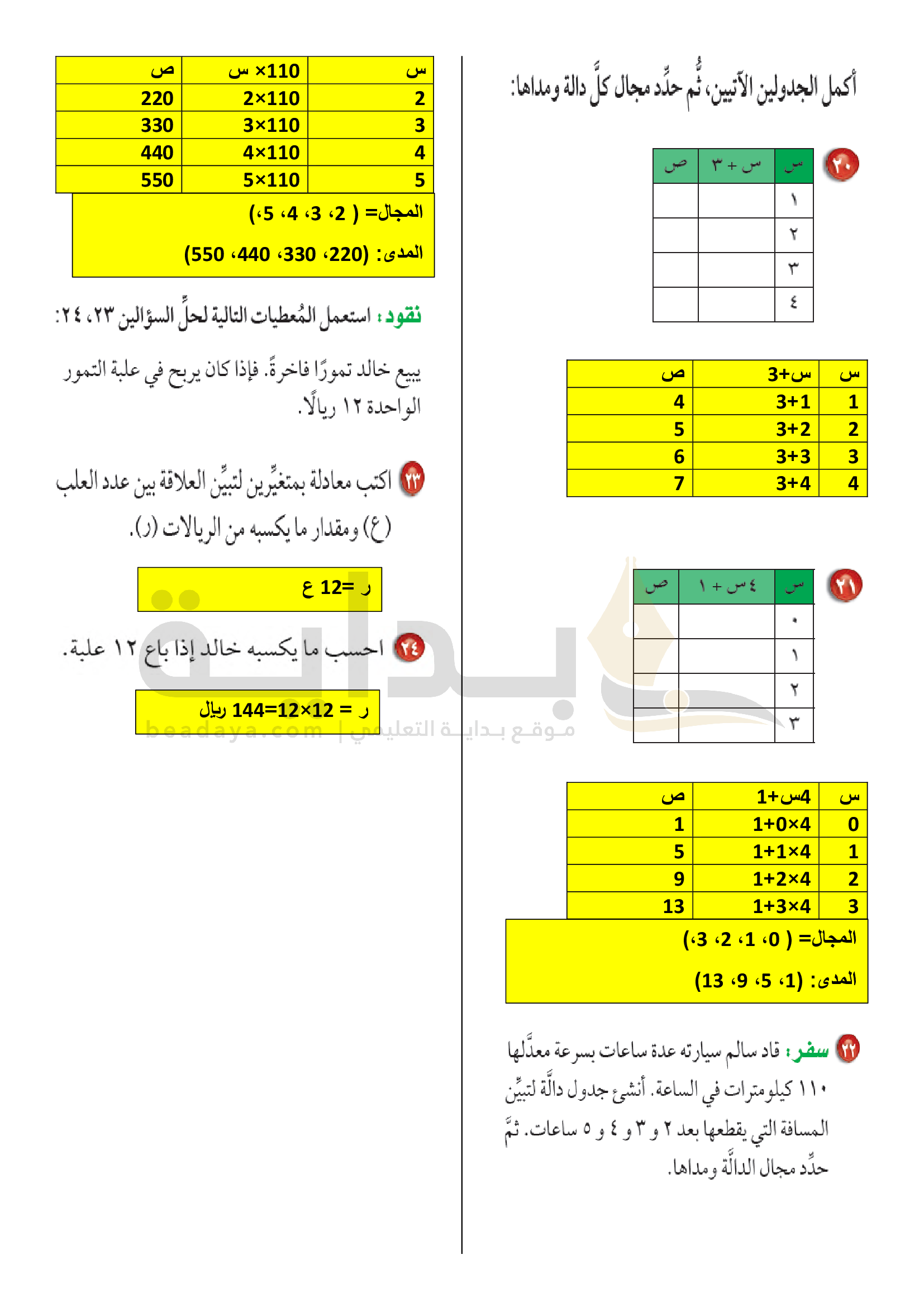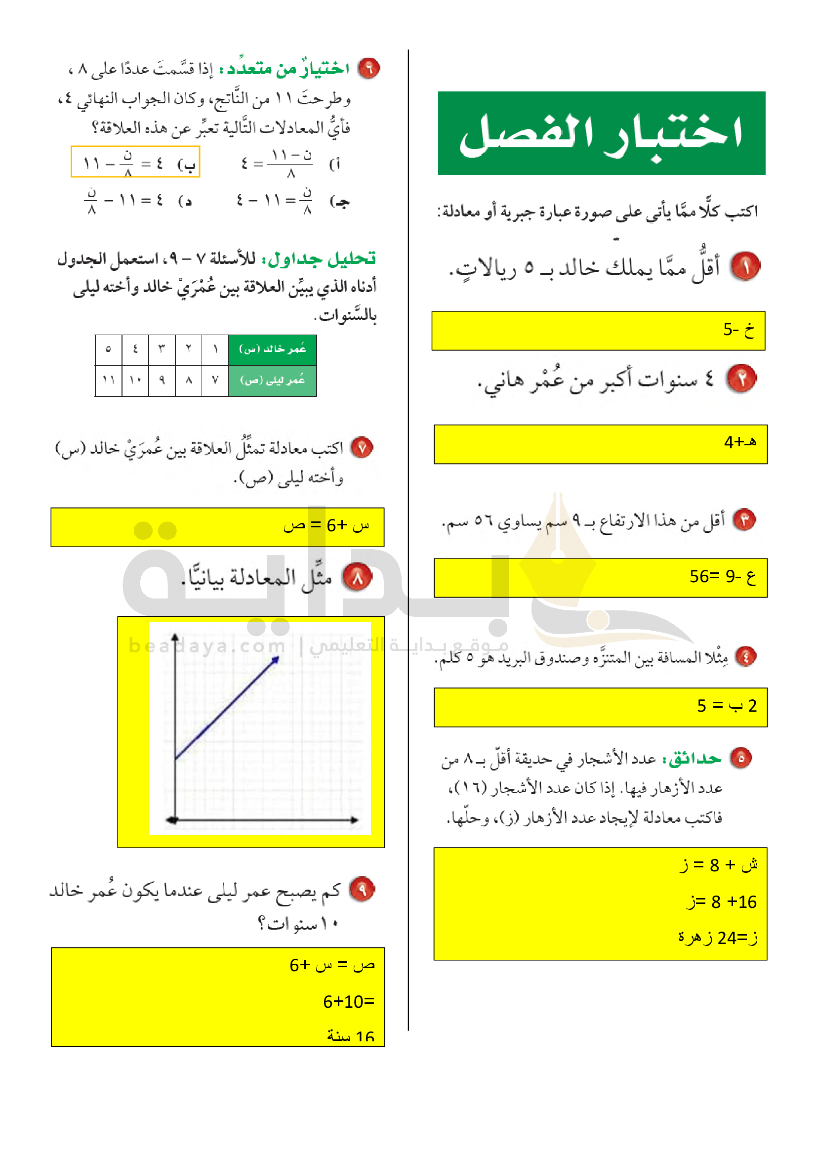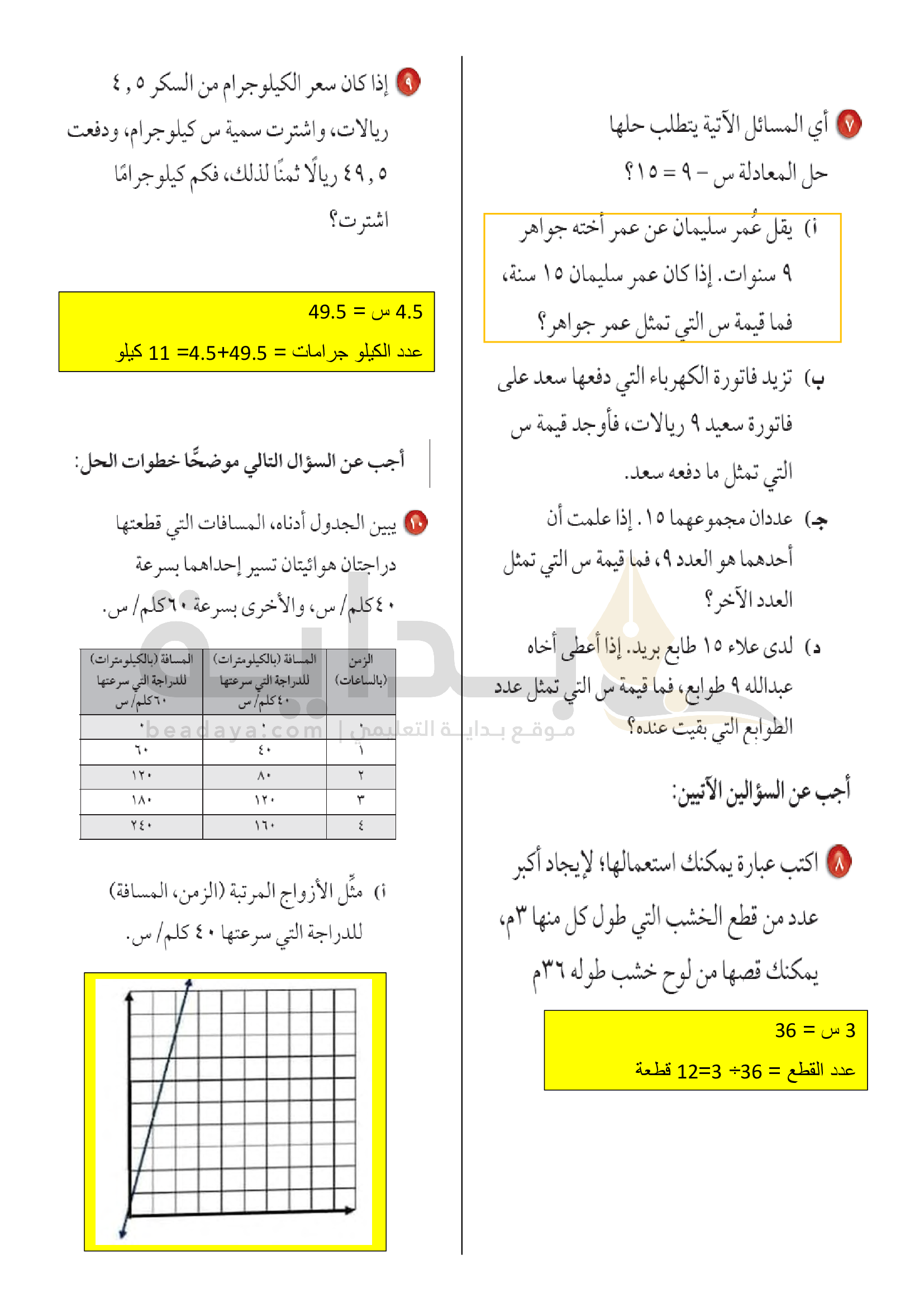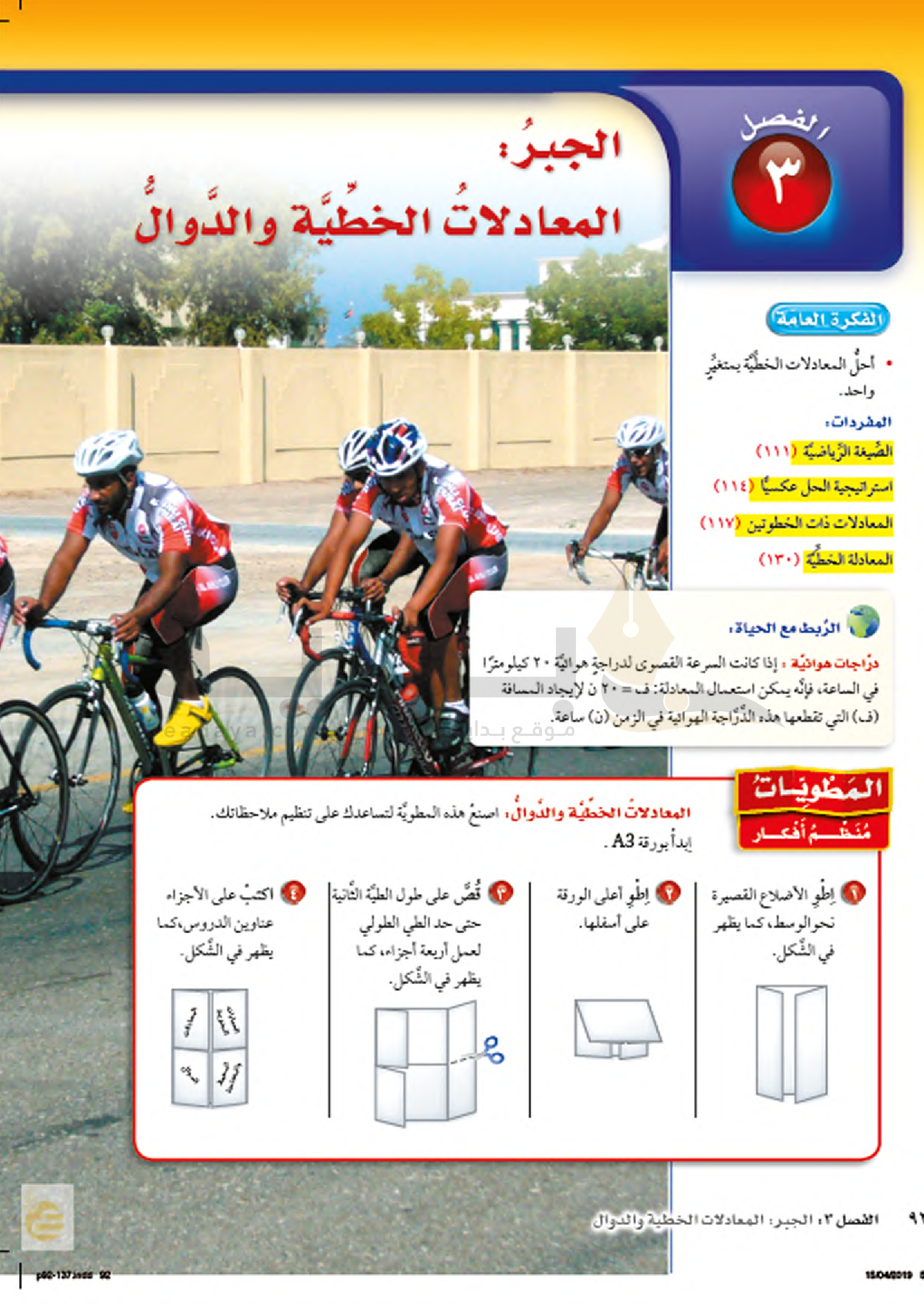 الفصل الثالث: الجبر: المعادلات الخطية والدوال