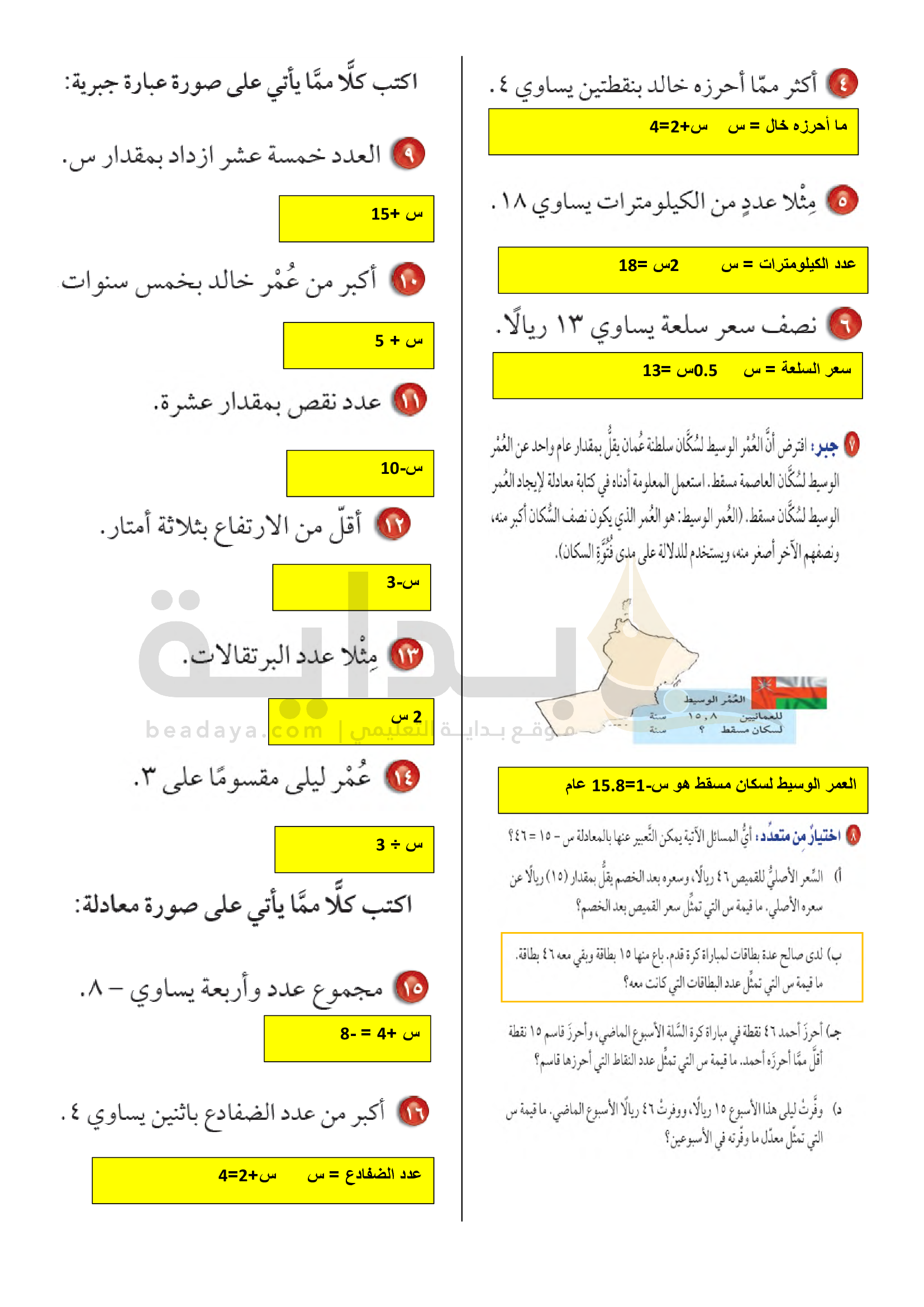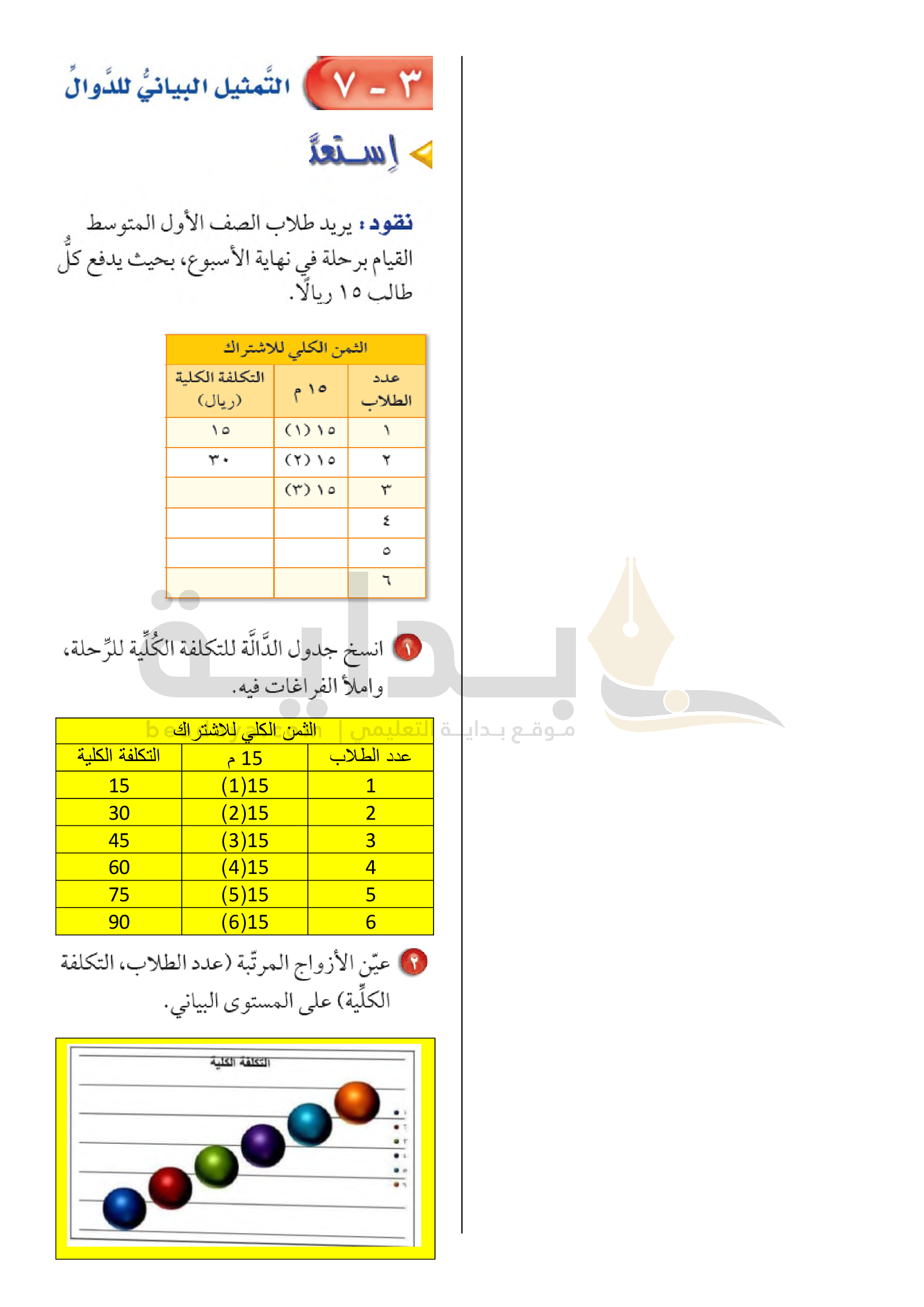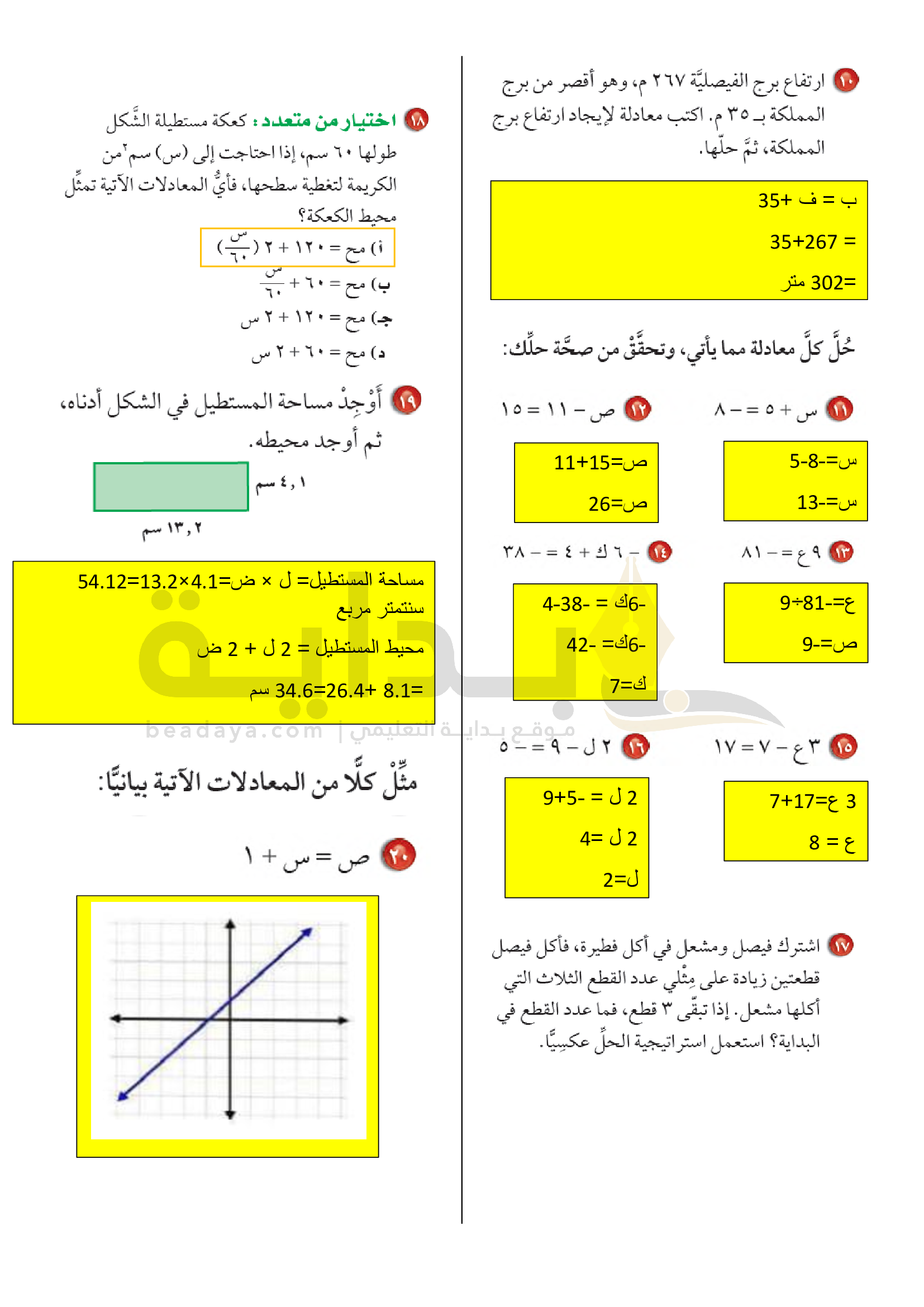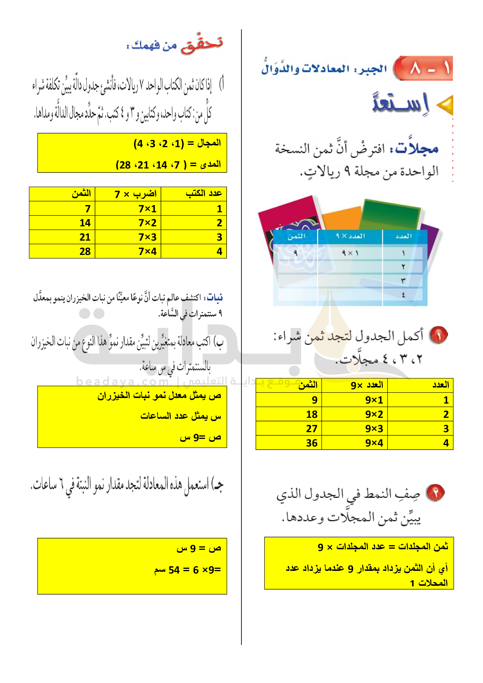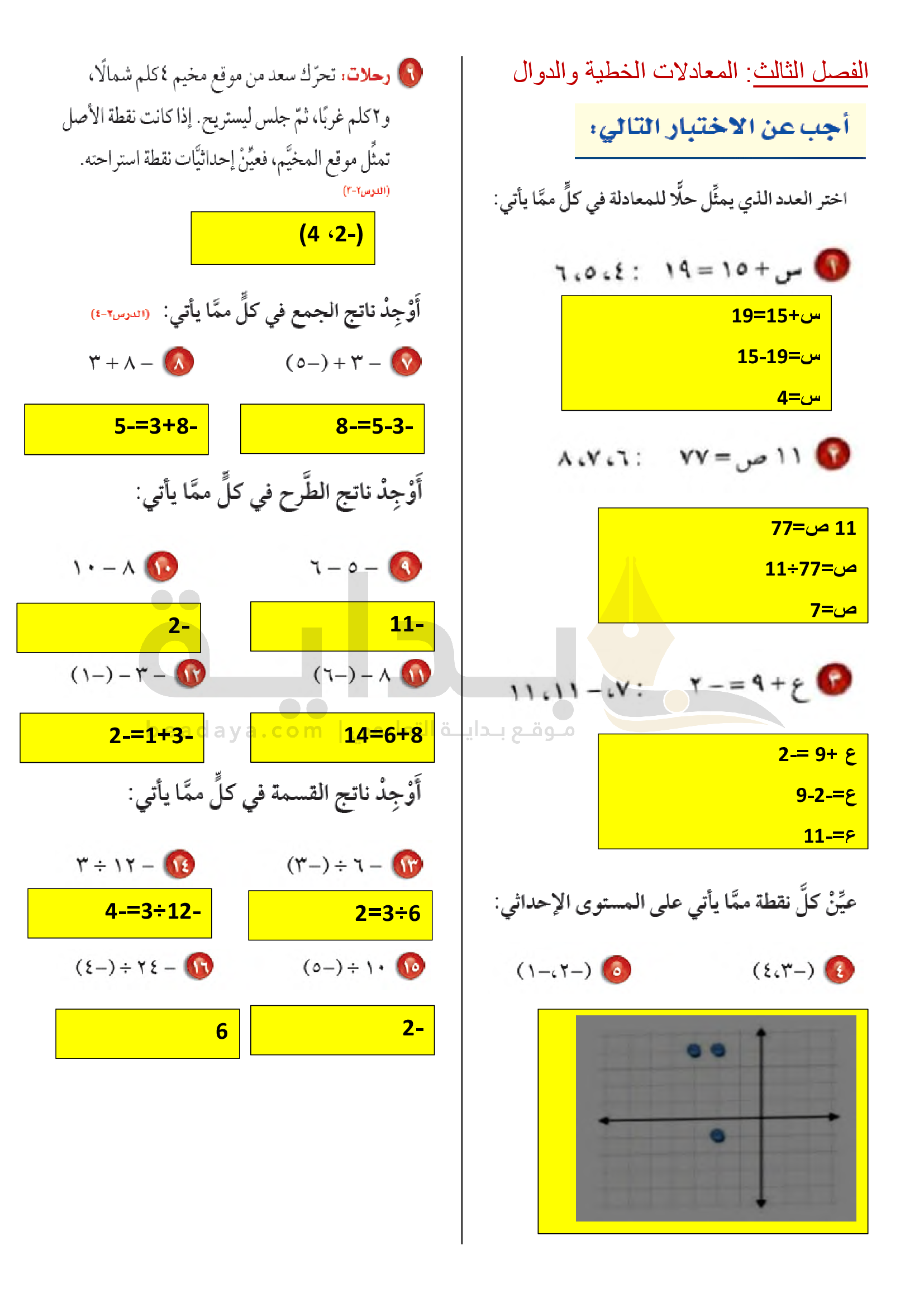 الفصل الثالث: الجبر: المعادلات الخطية والدوال
