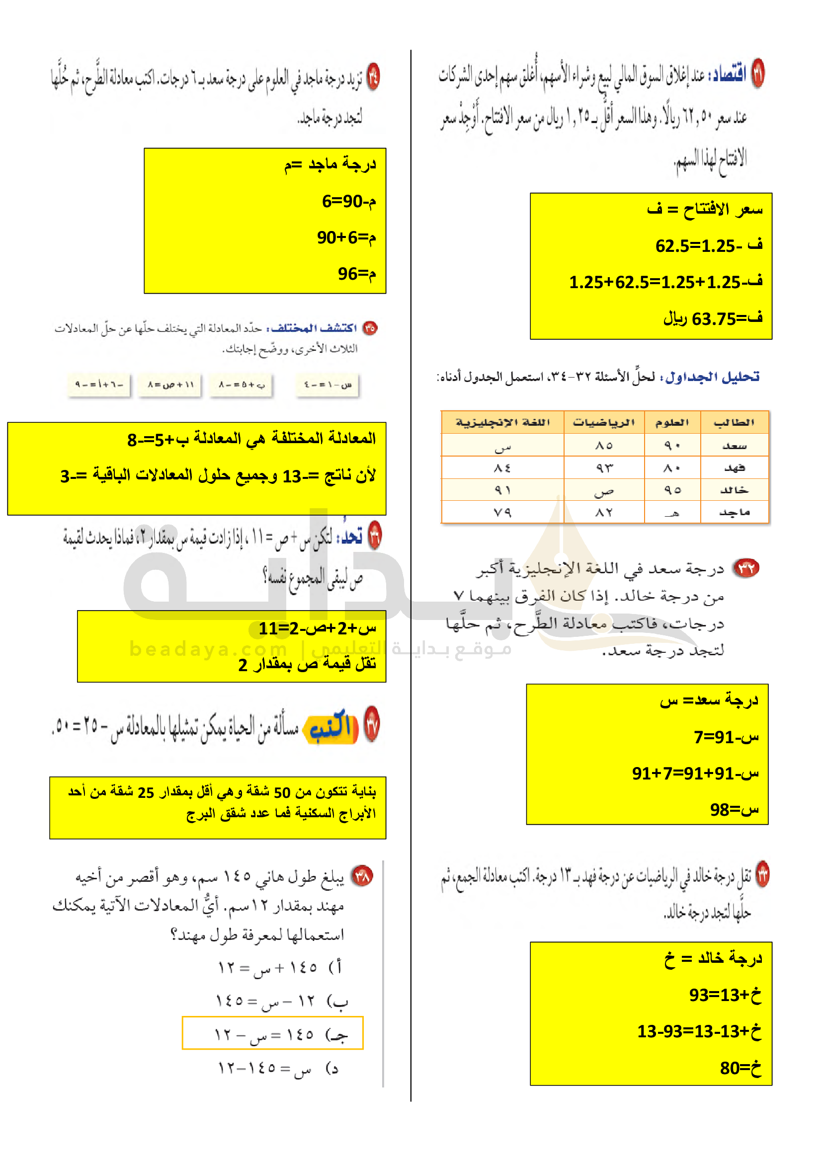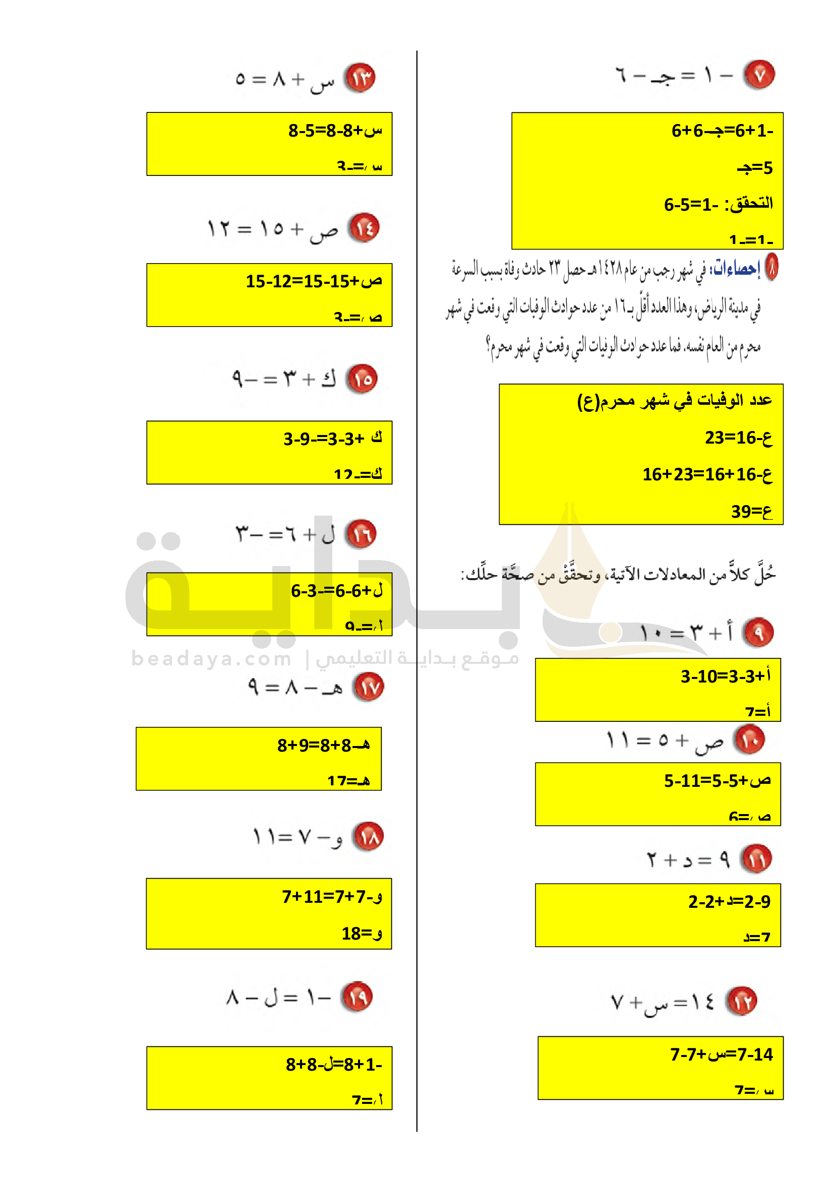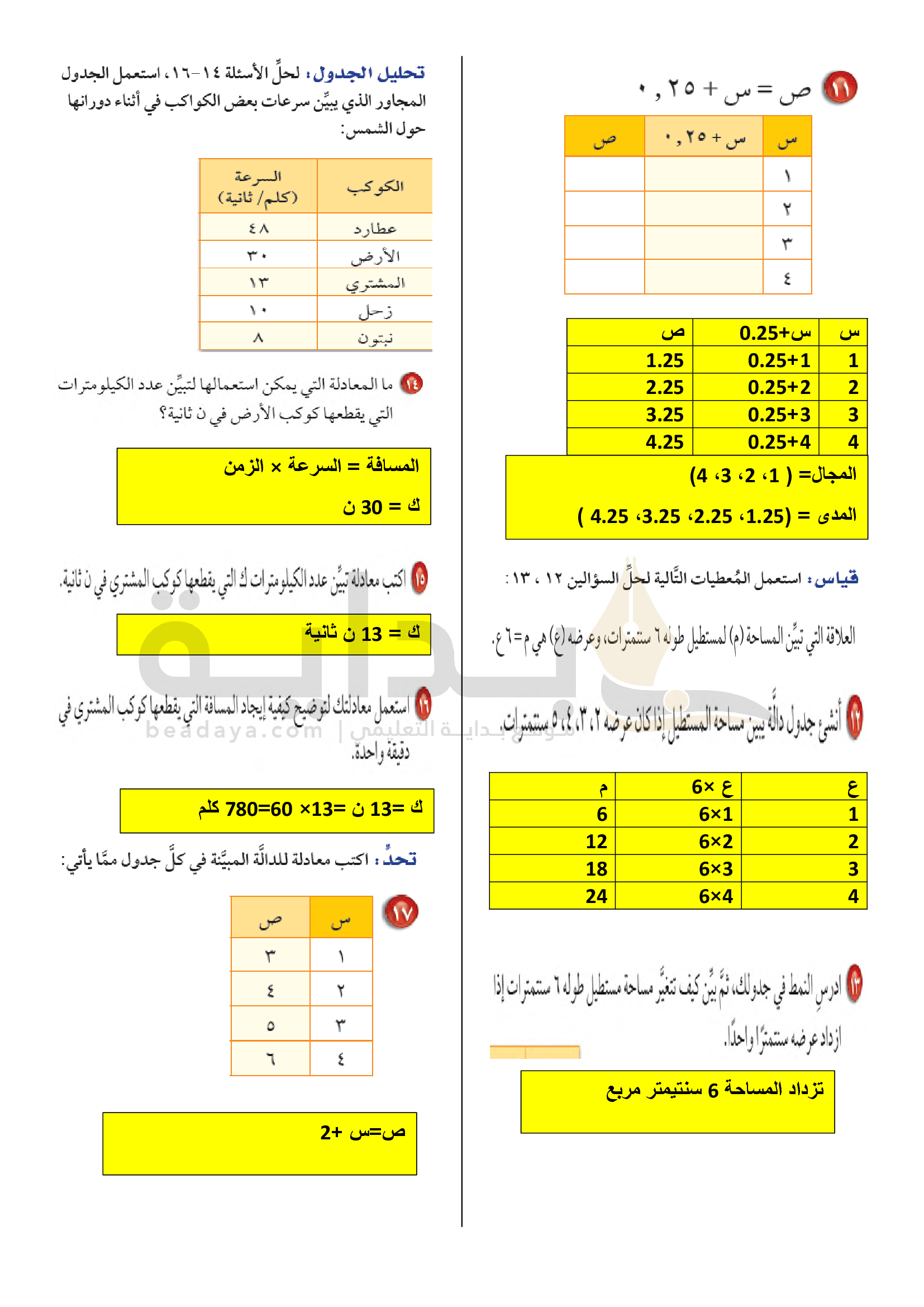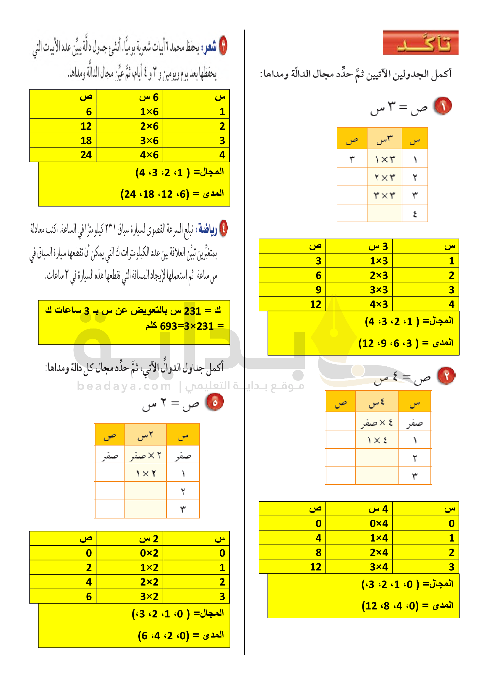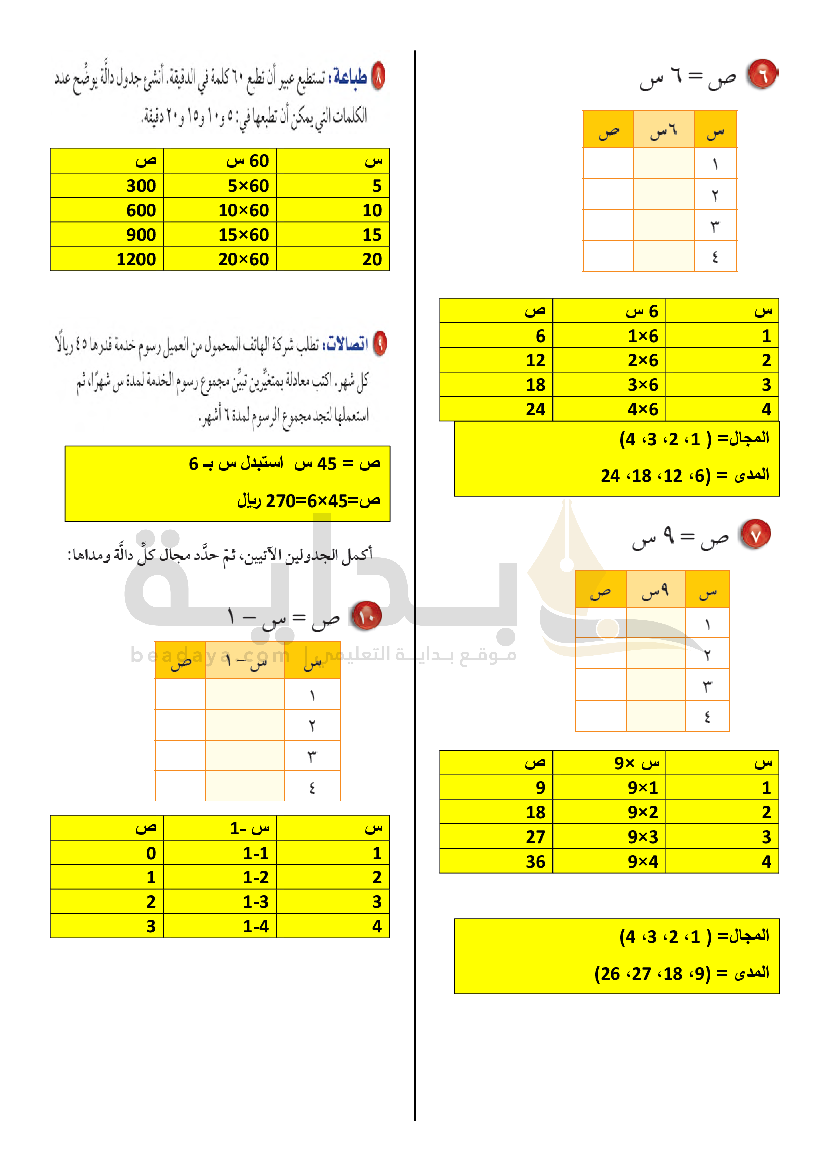 الفصل الثالث: الجبر: المعادلات الخطية والدوال