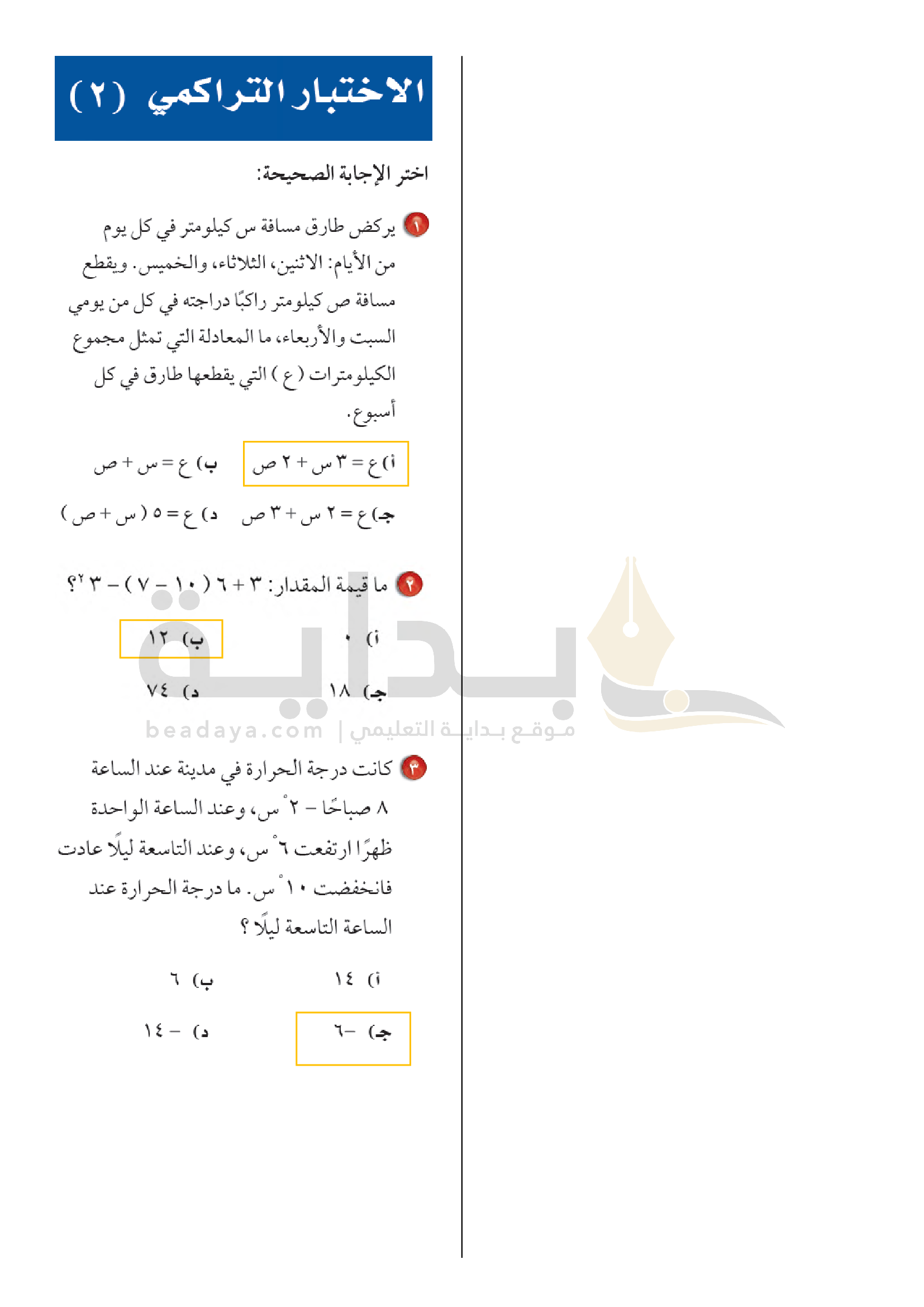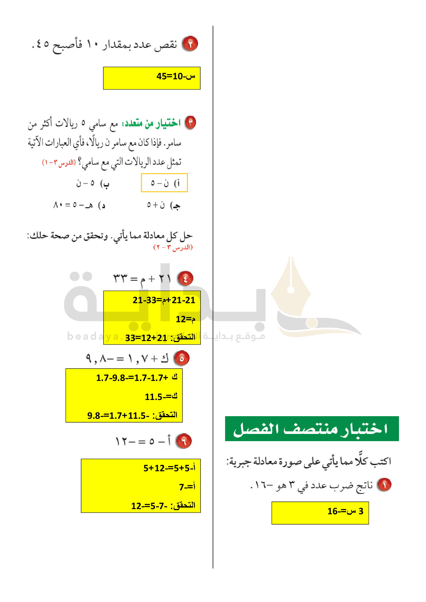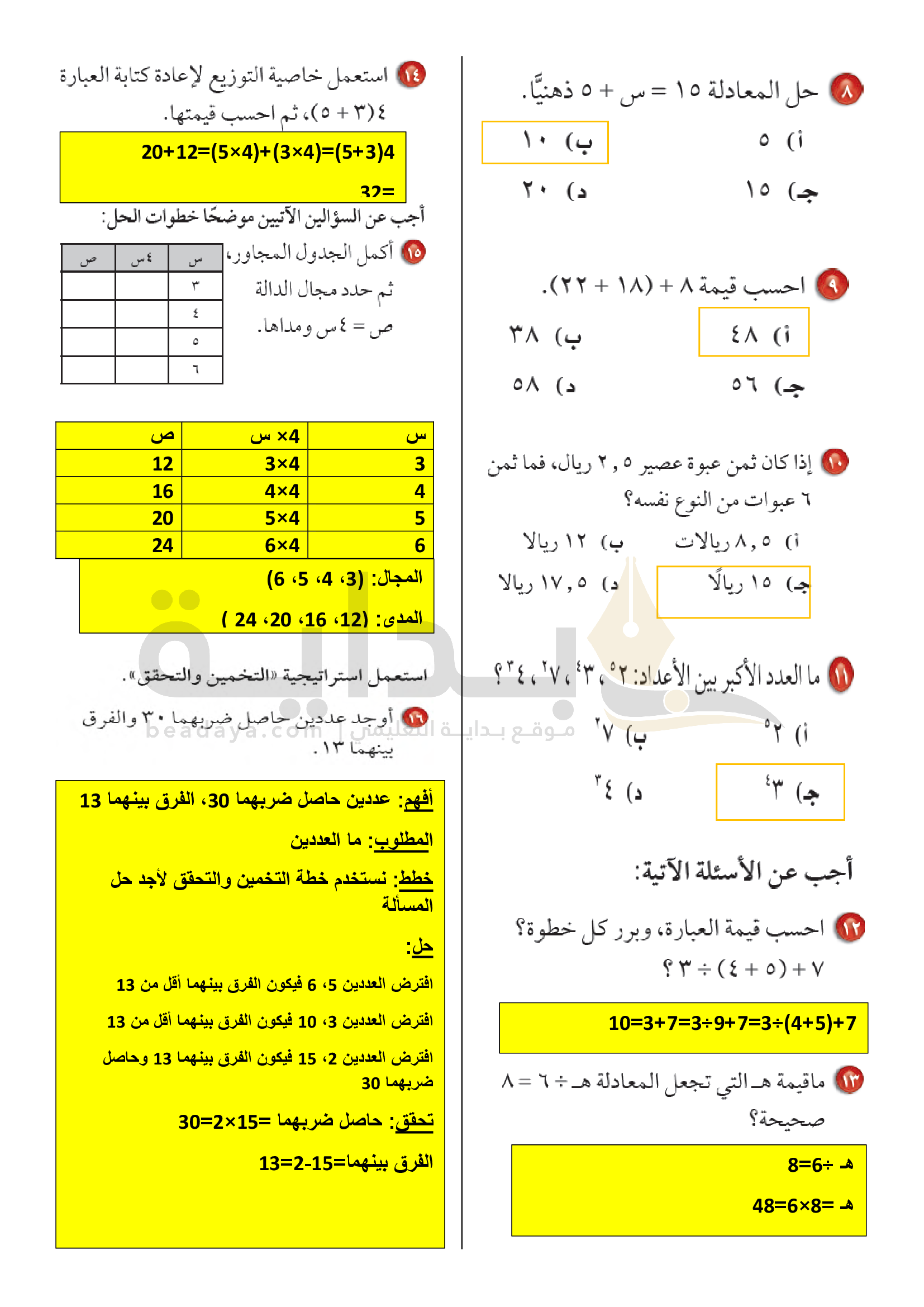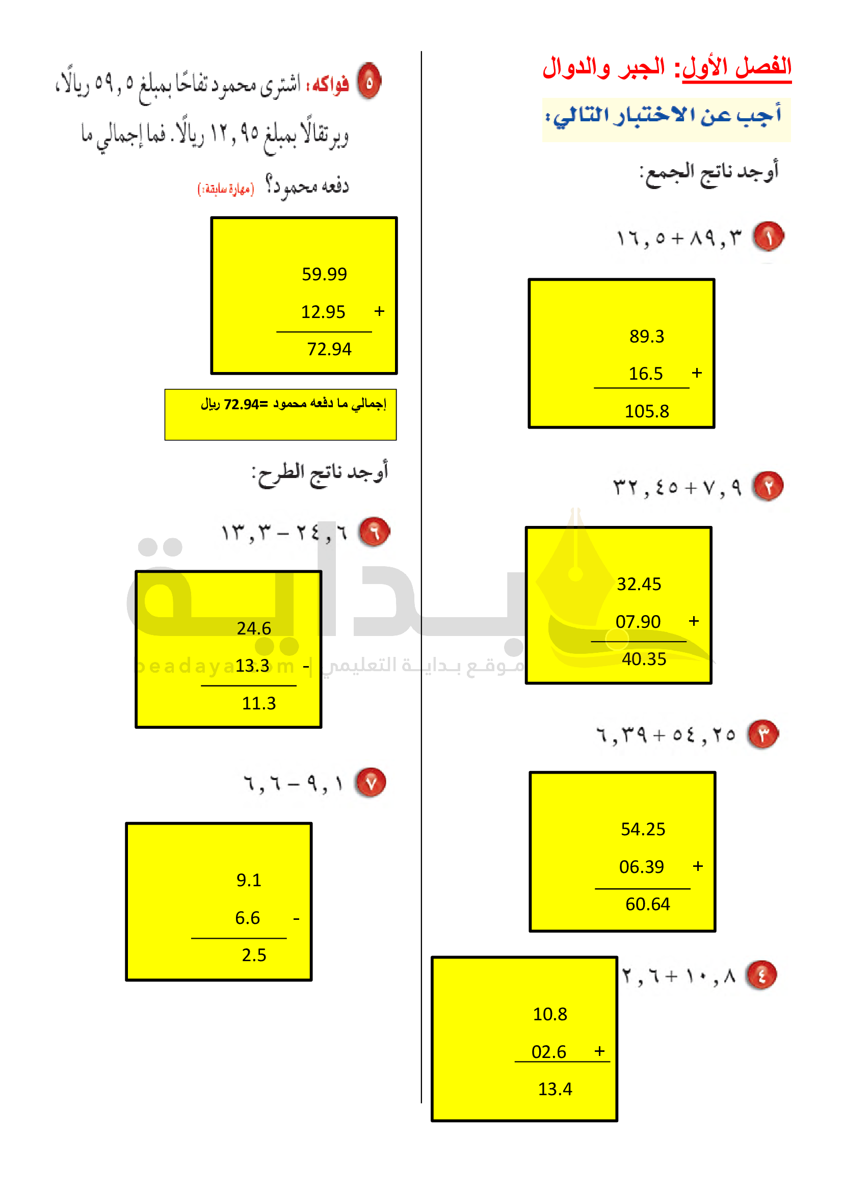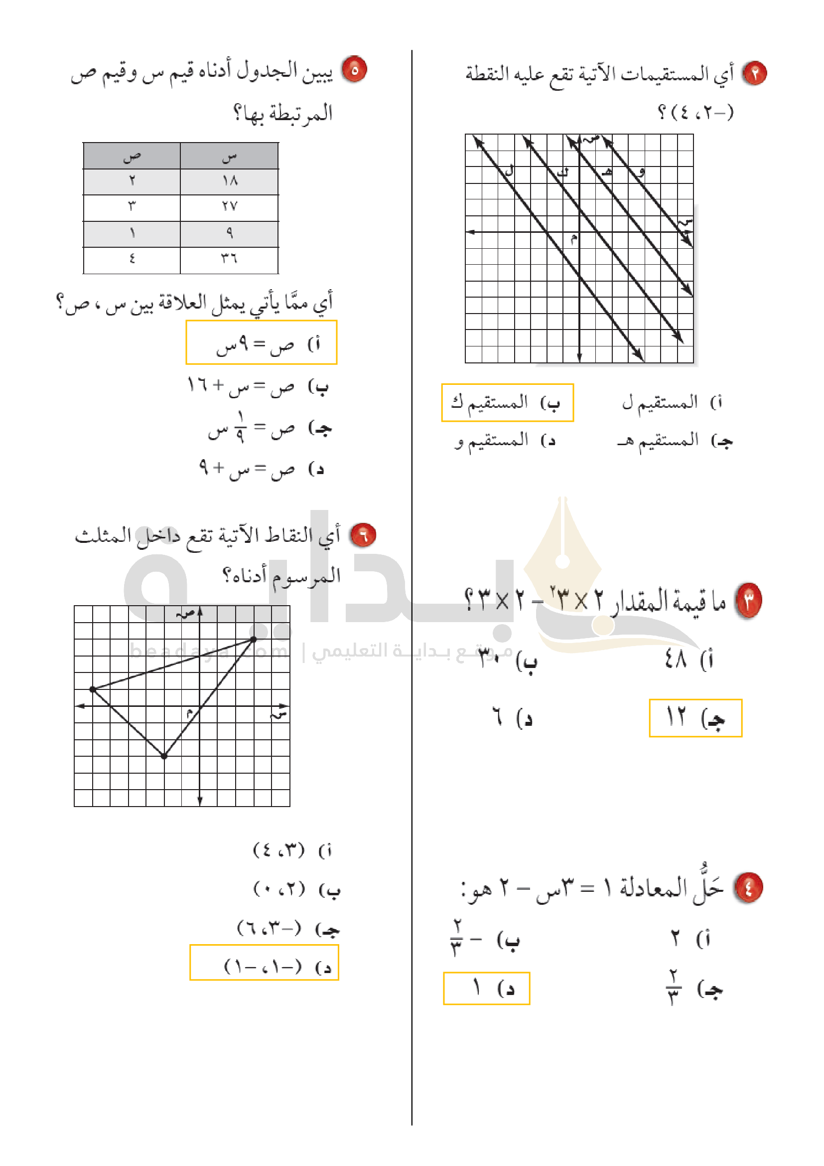 الفصل الثالث: الجبر: المعادلات الخطية والدوال