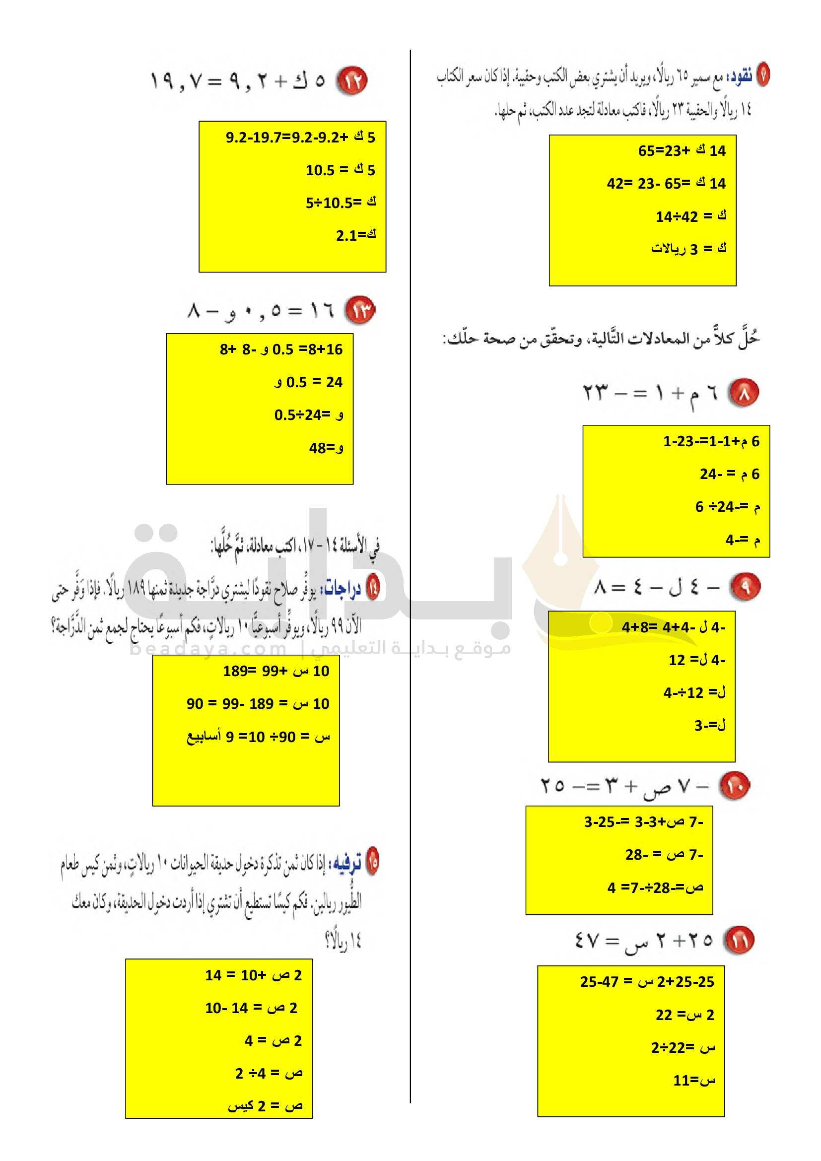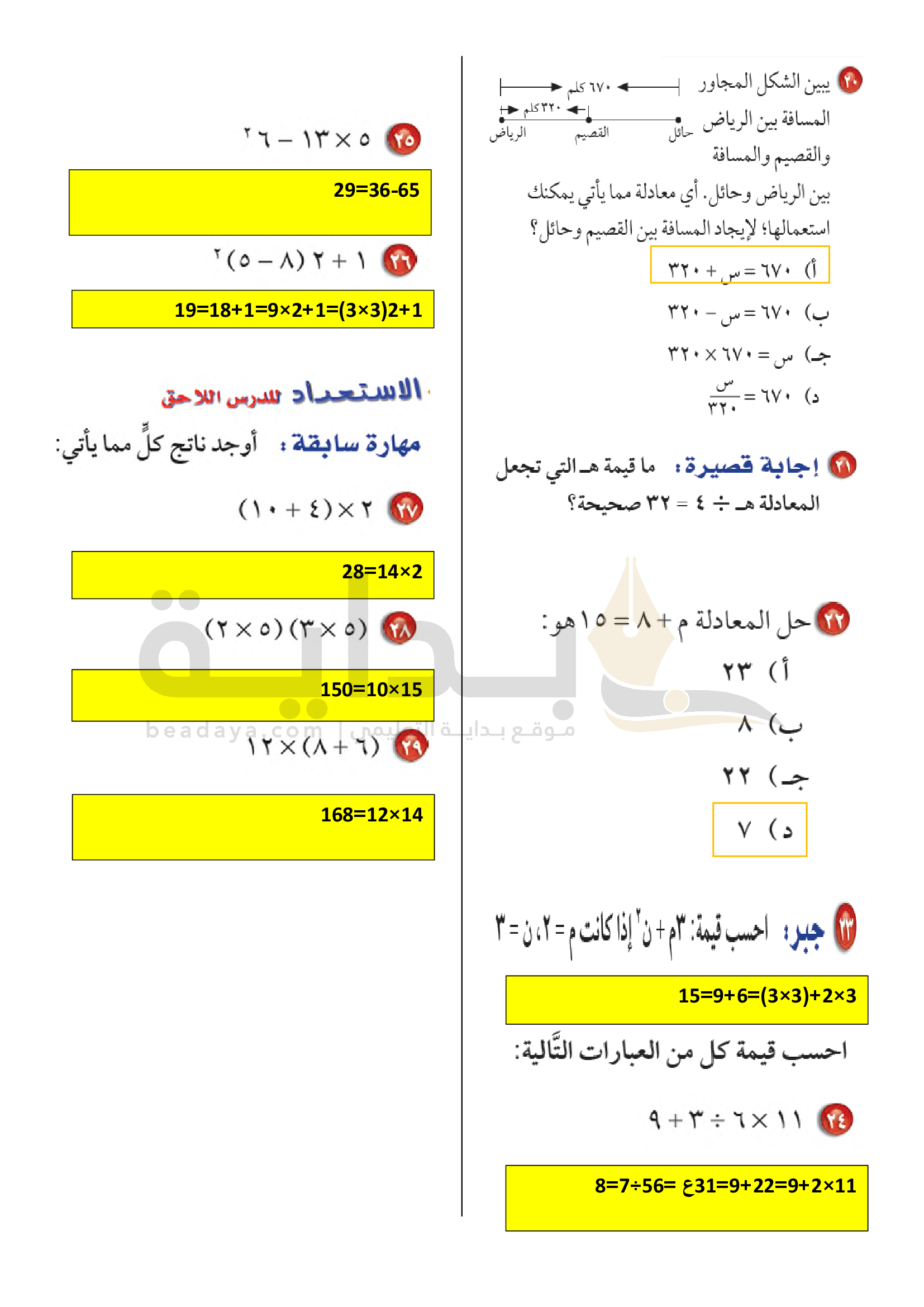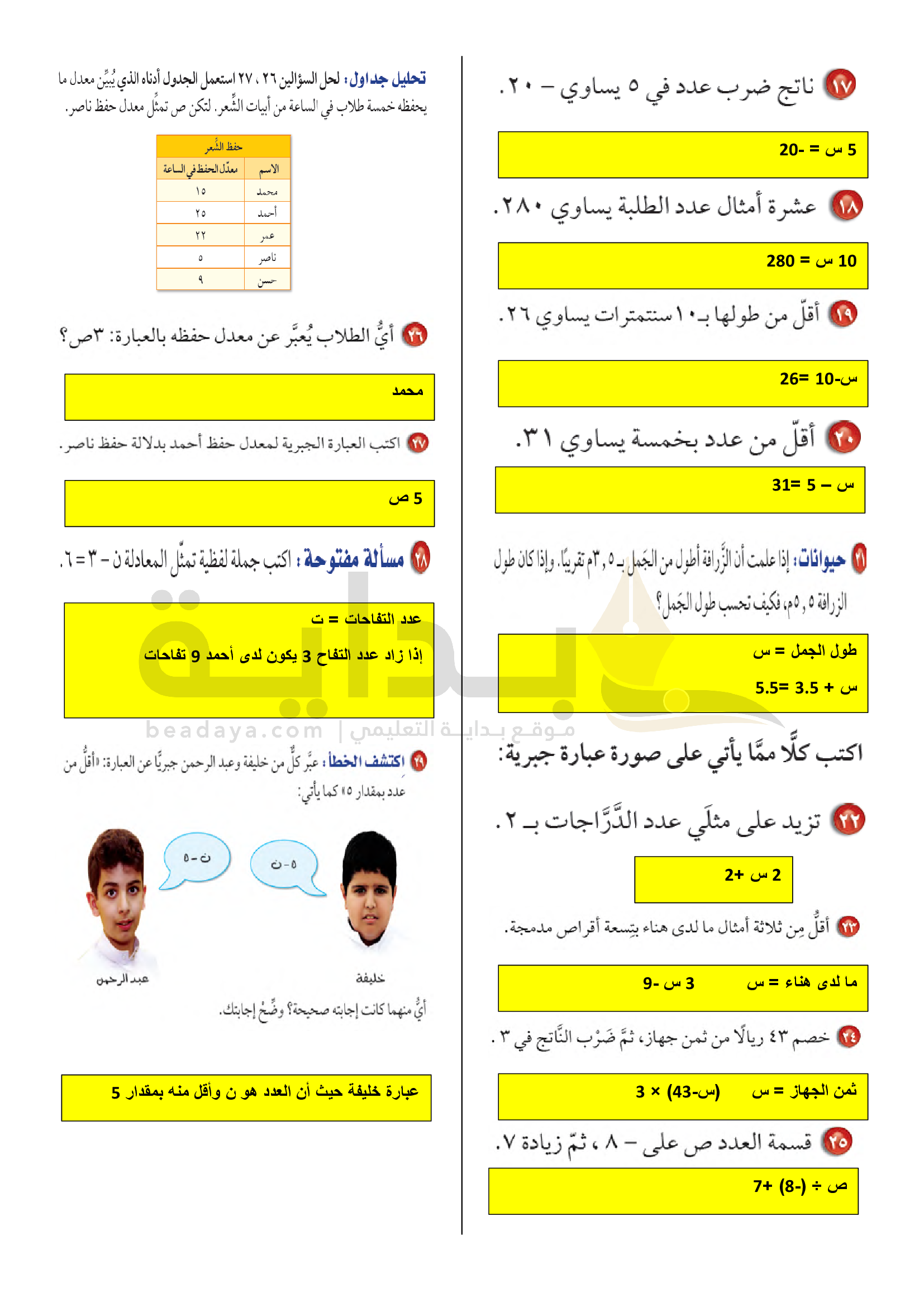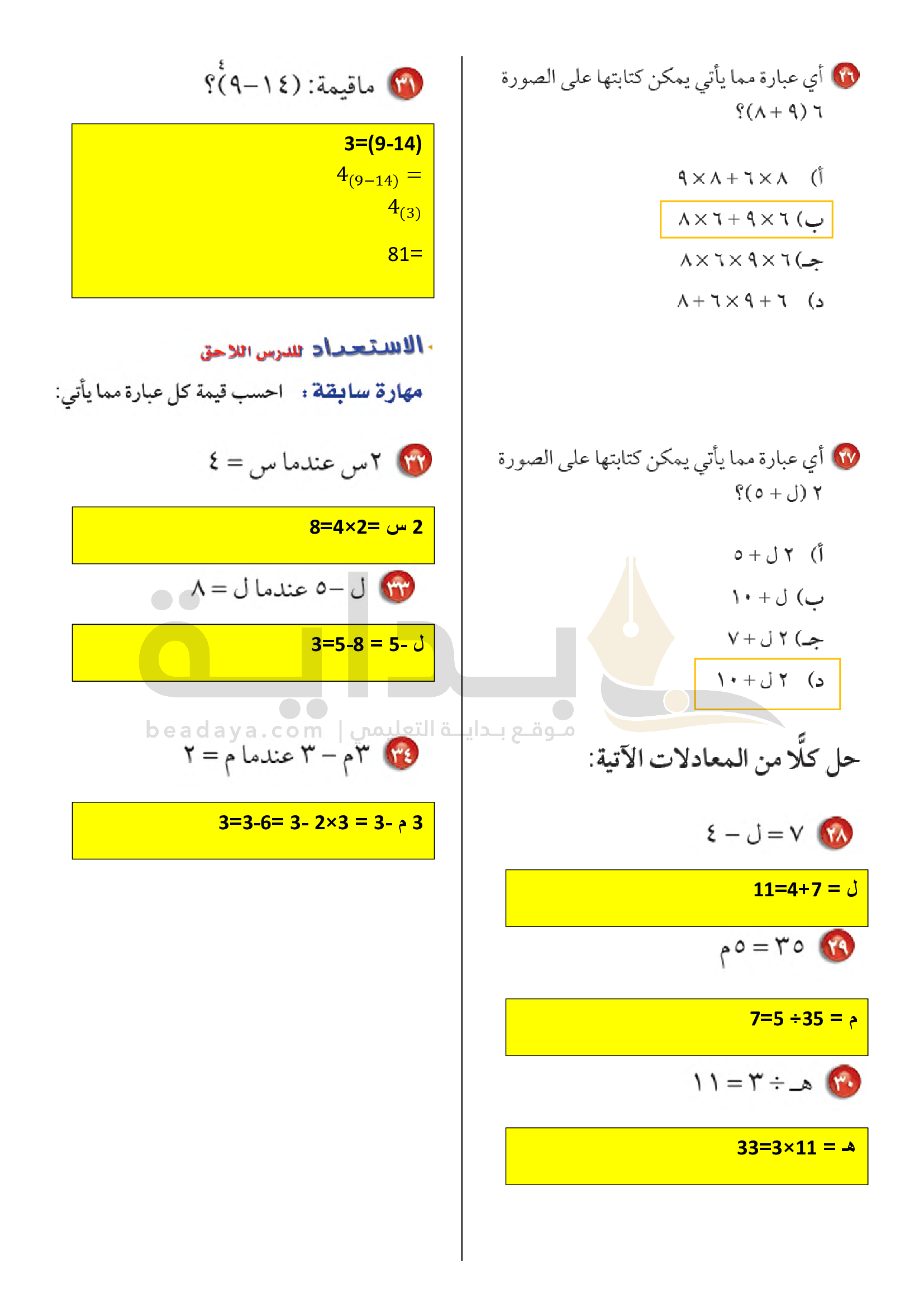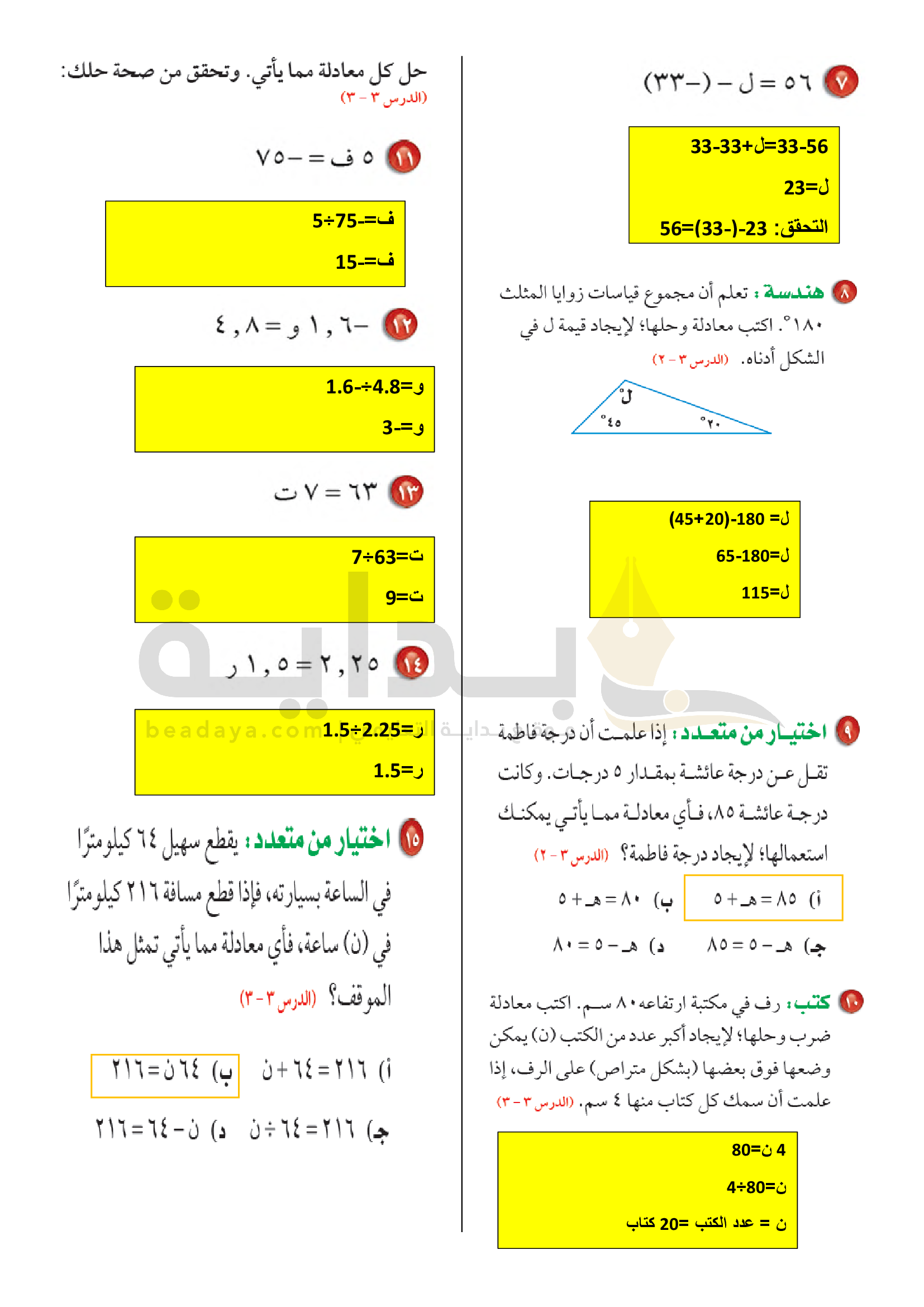 الفصل الثالث: الجبر: المعادلات الخطية والدوال