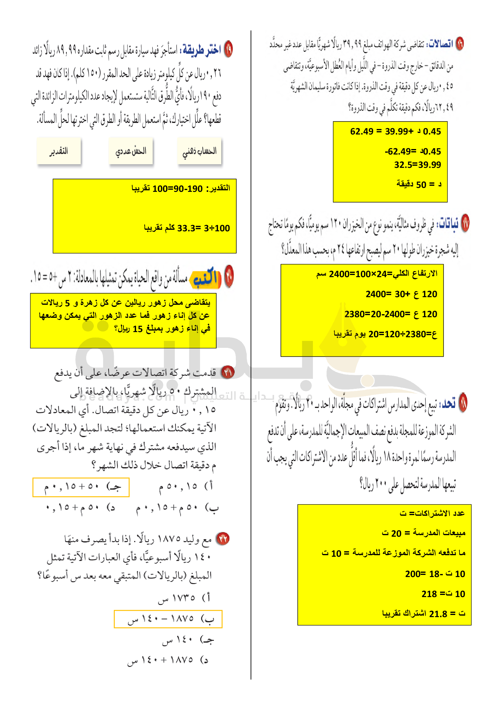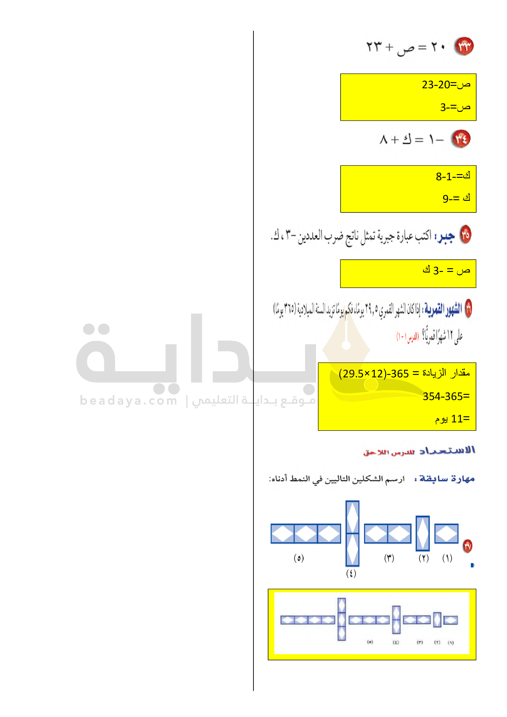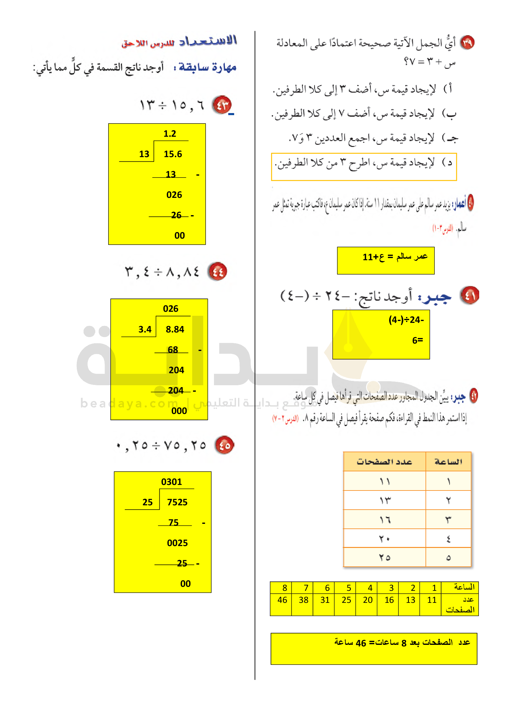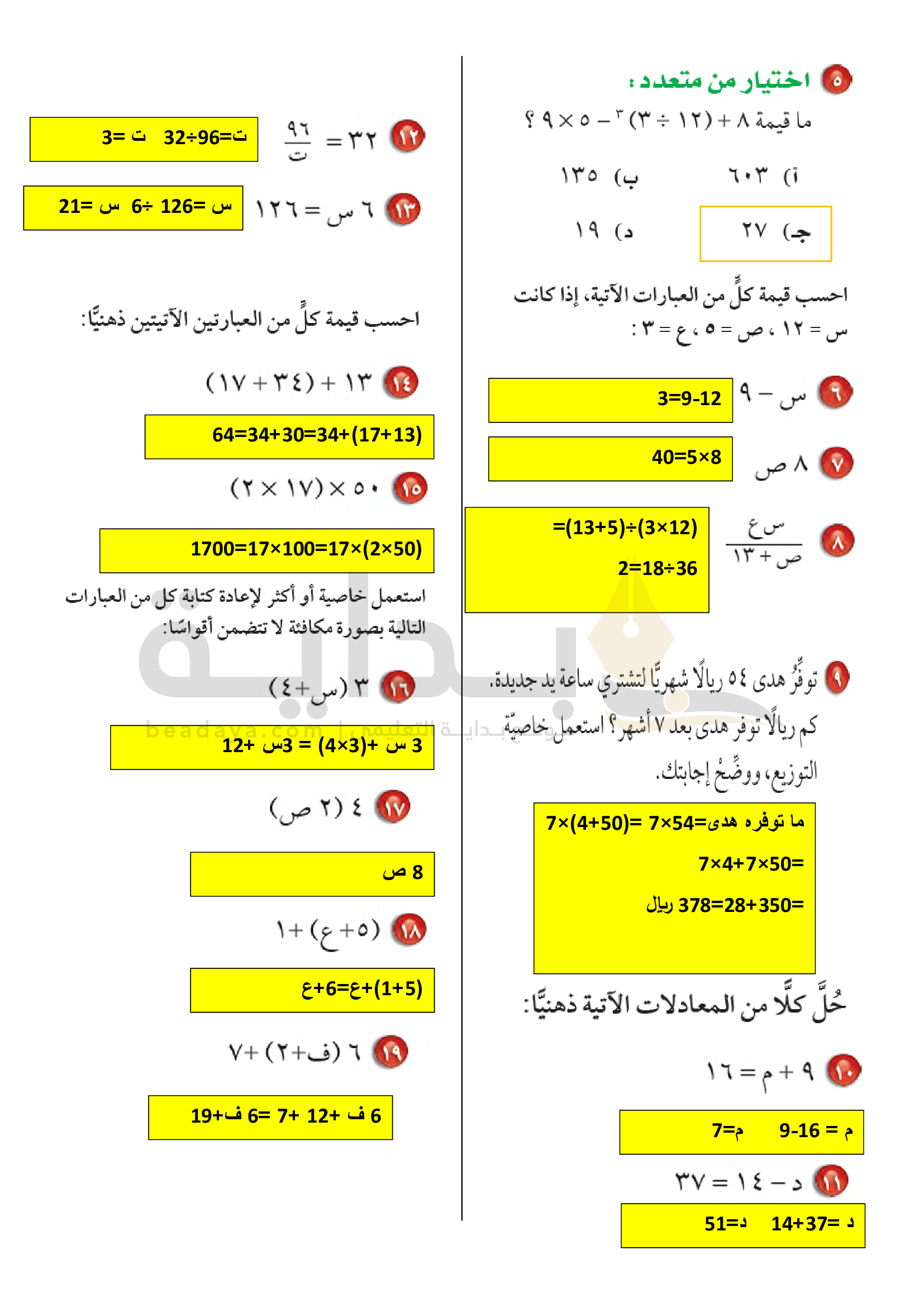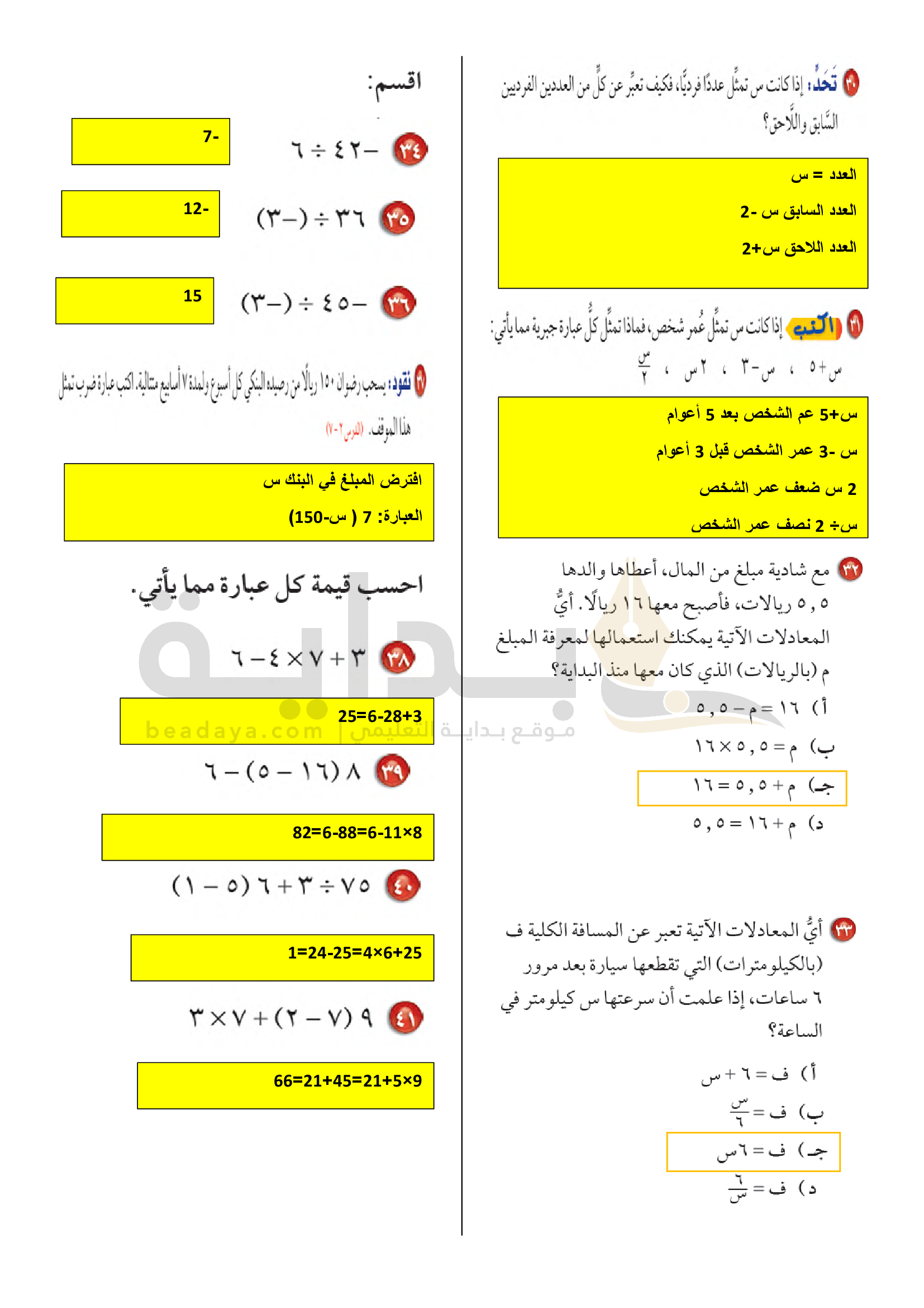 الفصل الثالث: الجبر: المعادلات الخطية والدوال