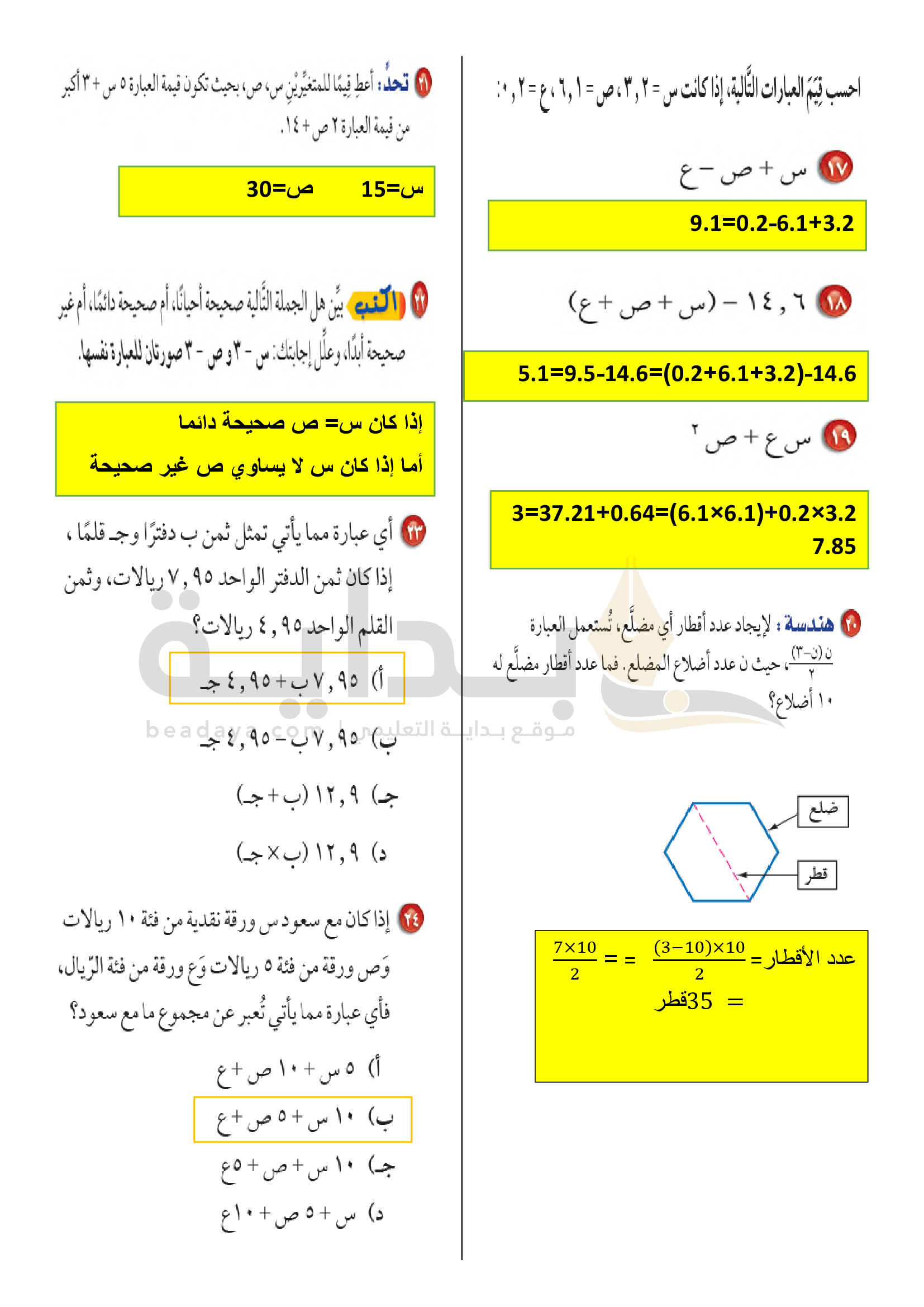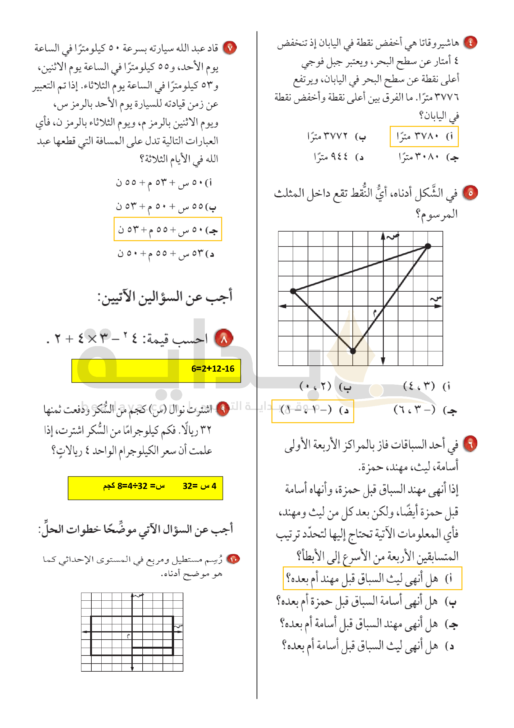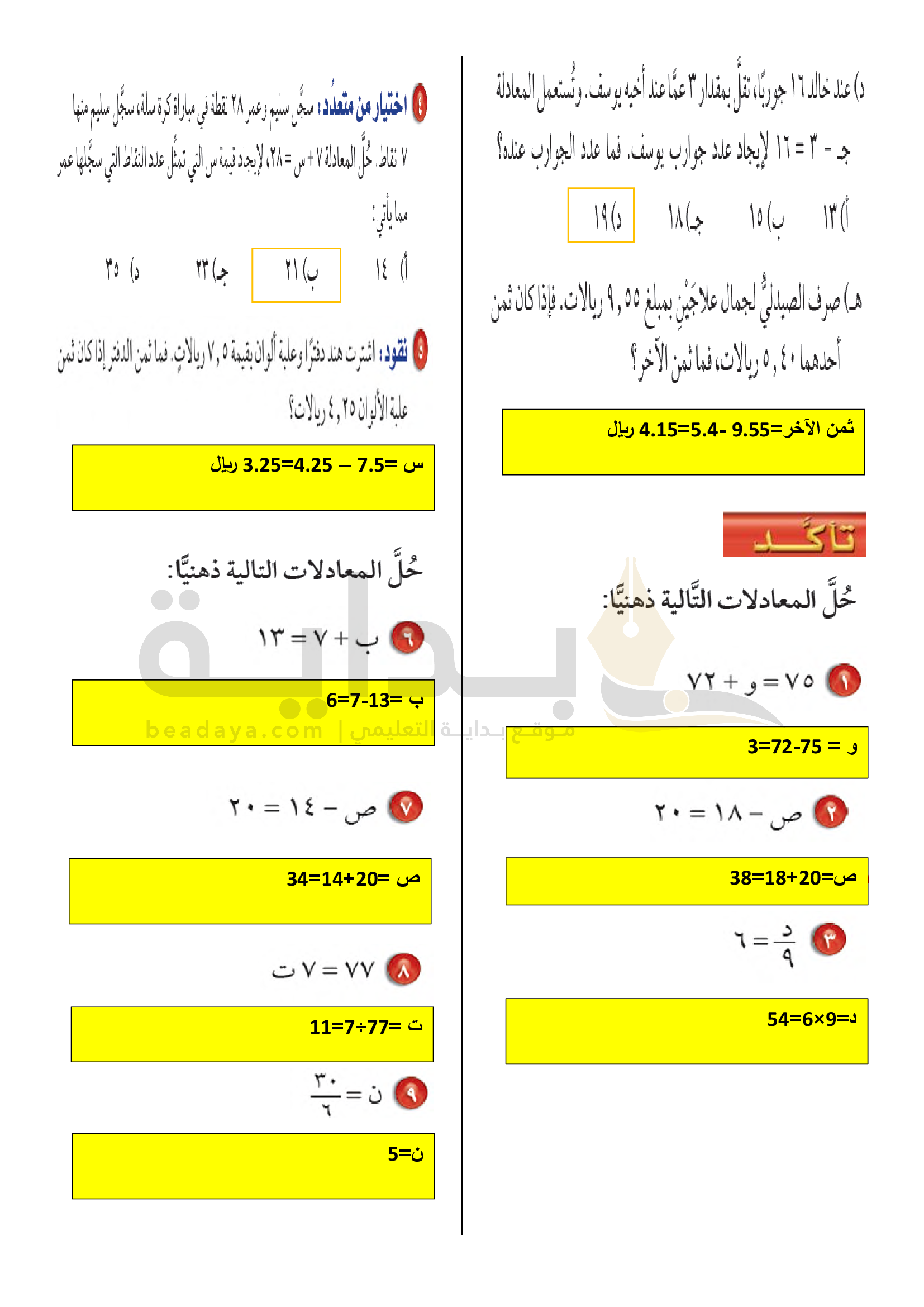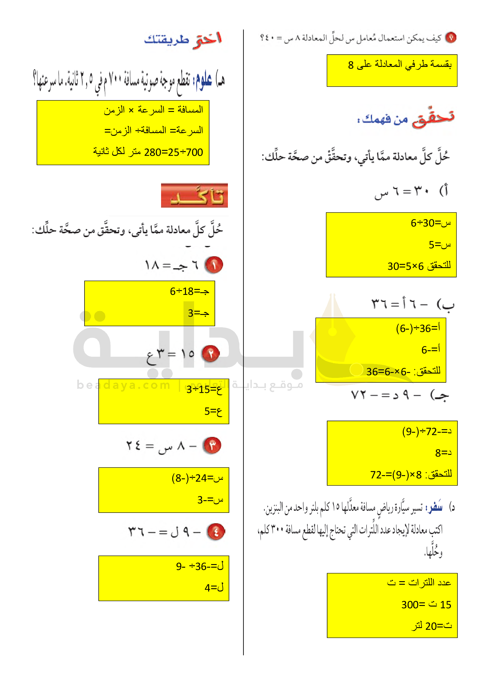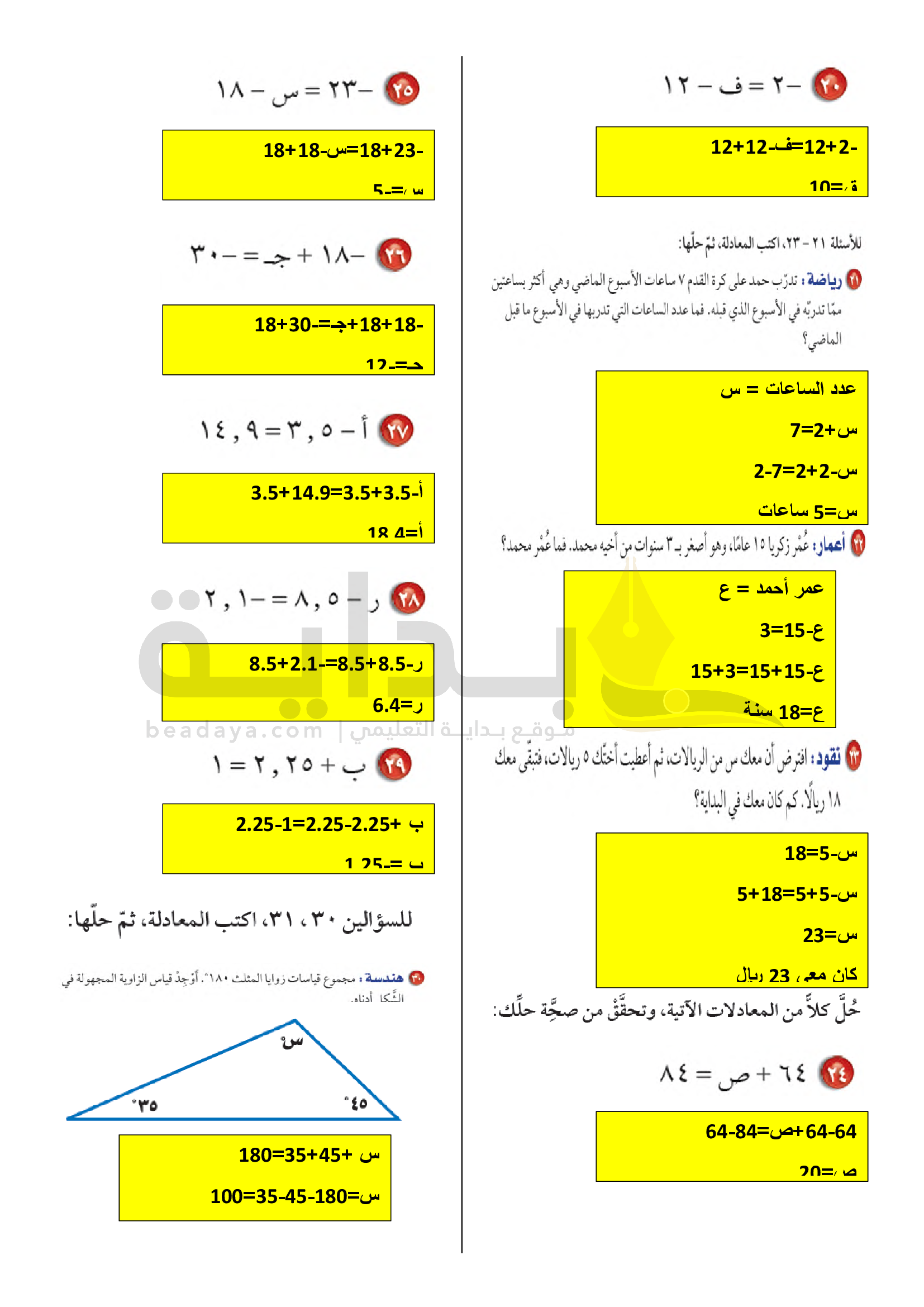 الفصل الثالث: الجبر: المعادلات الخطية والدوال