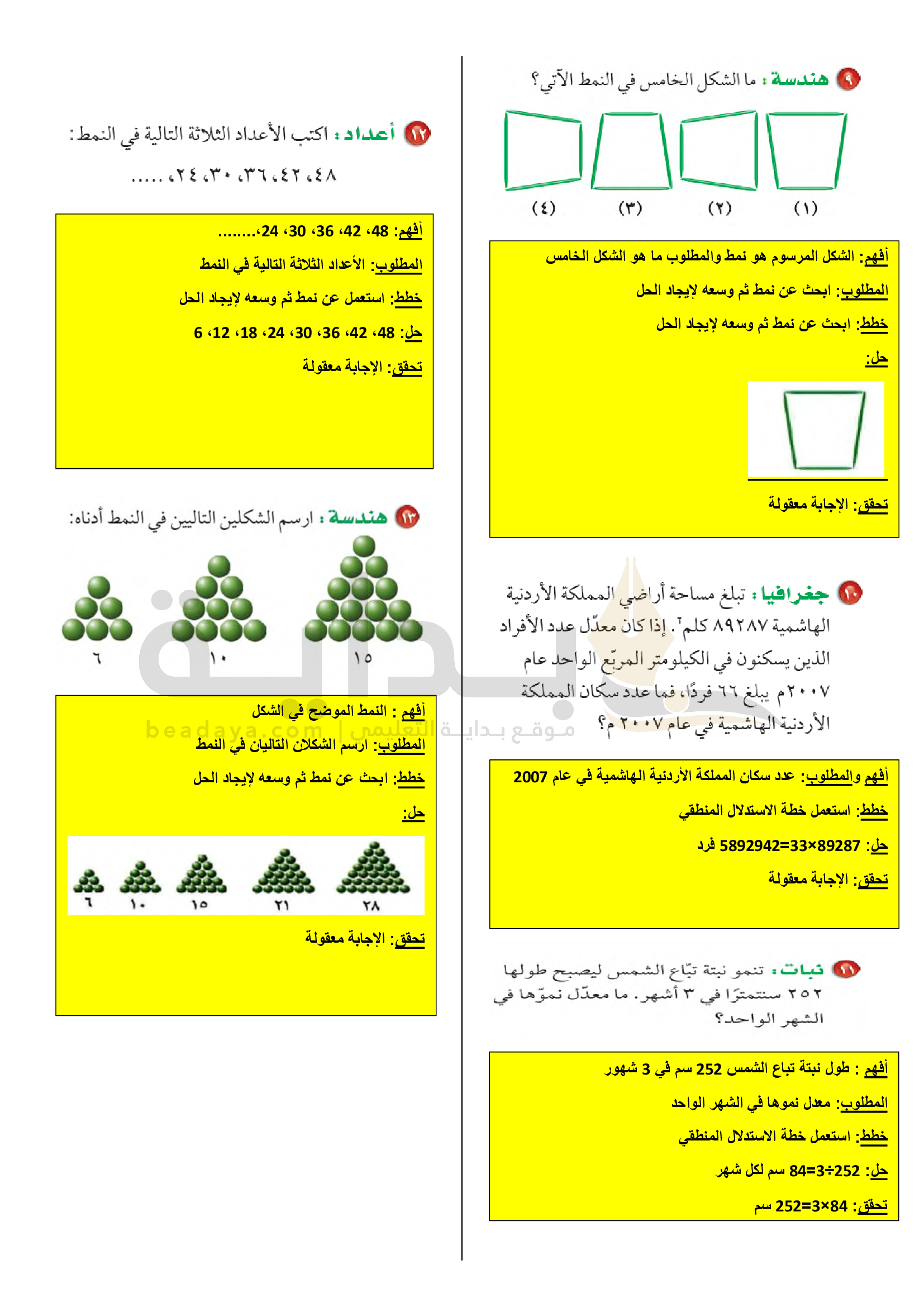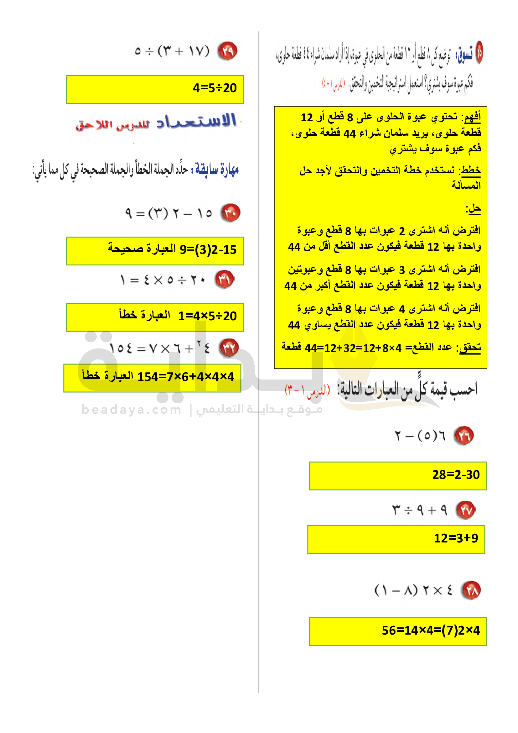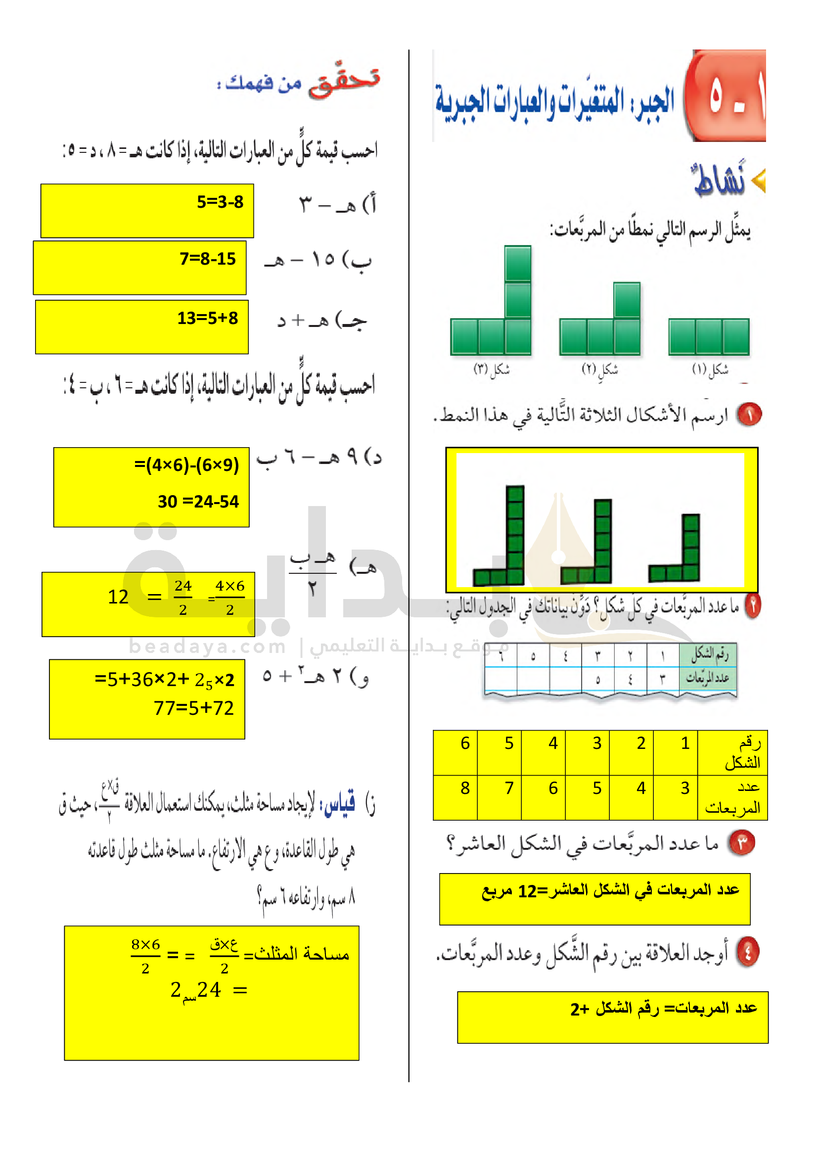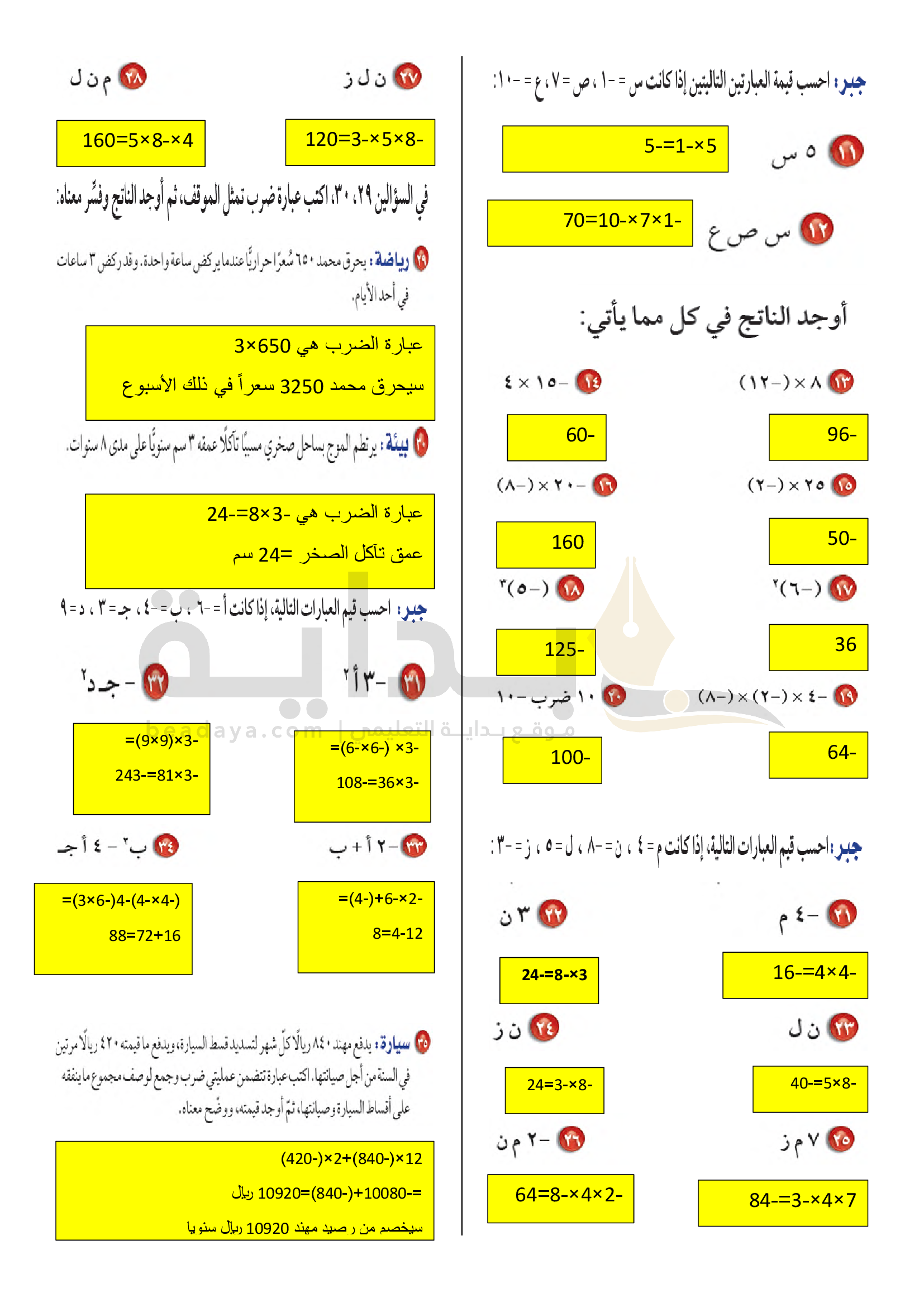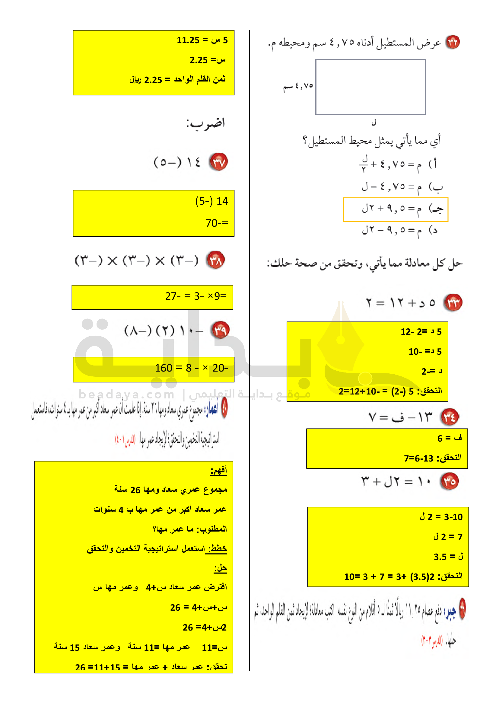 الفصل الثالث: الجبر: المعادلات الخطية والدوال