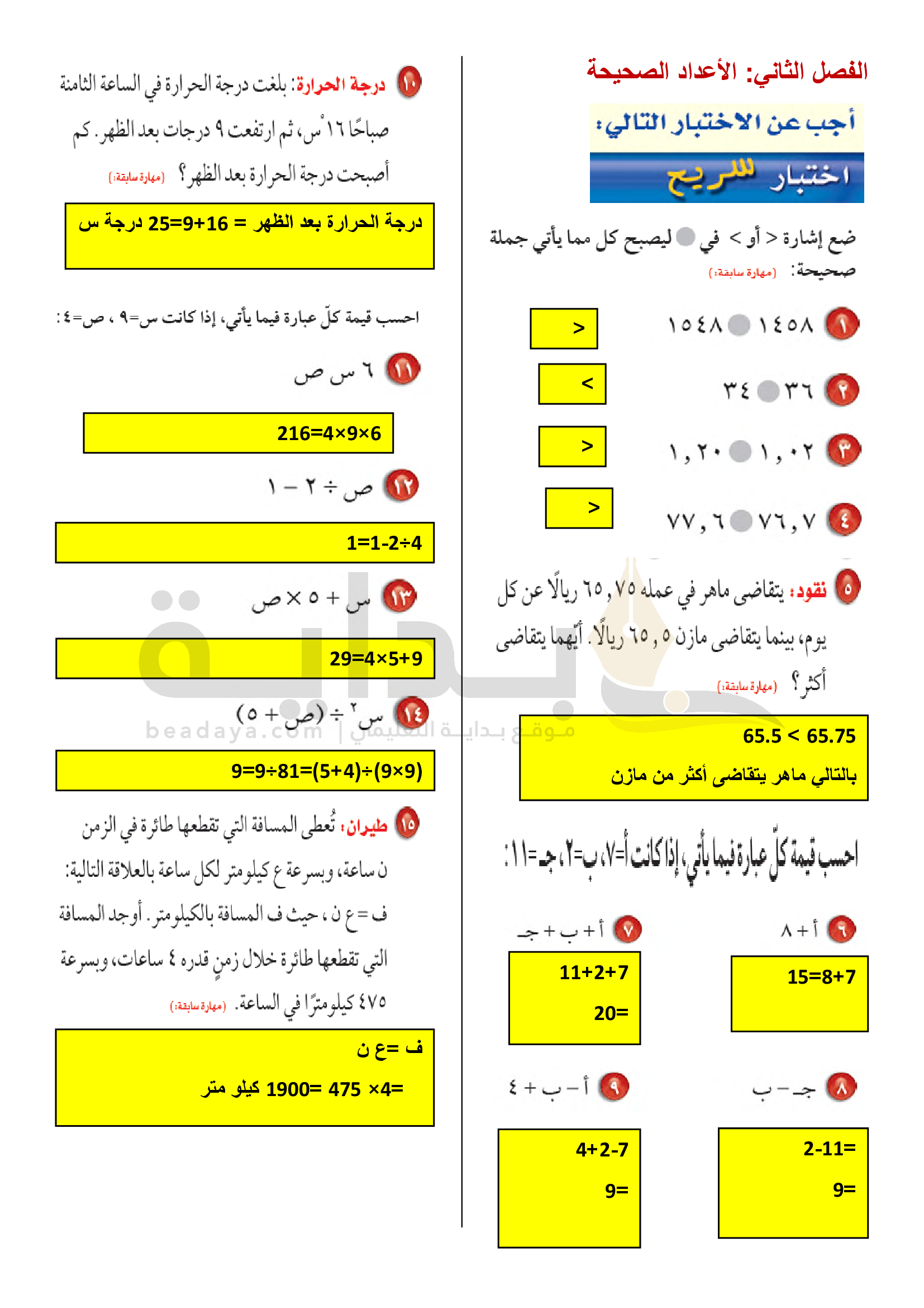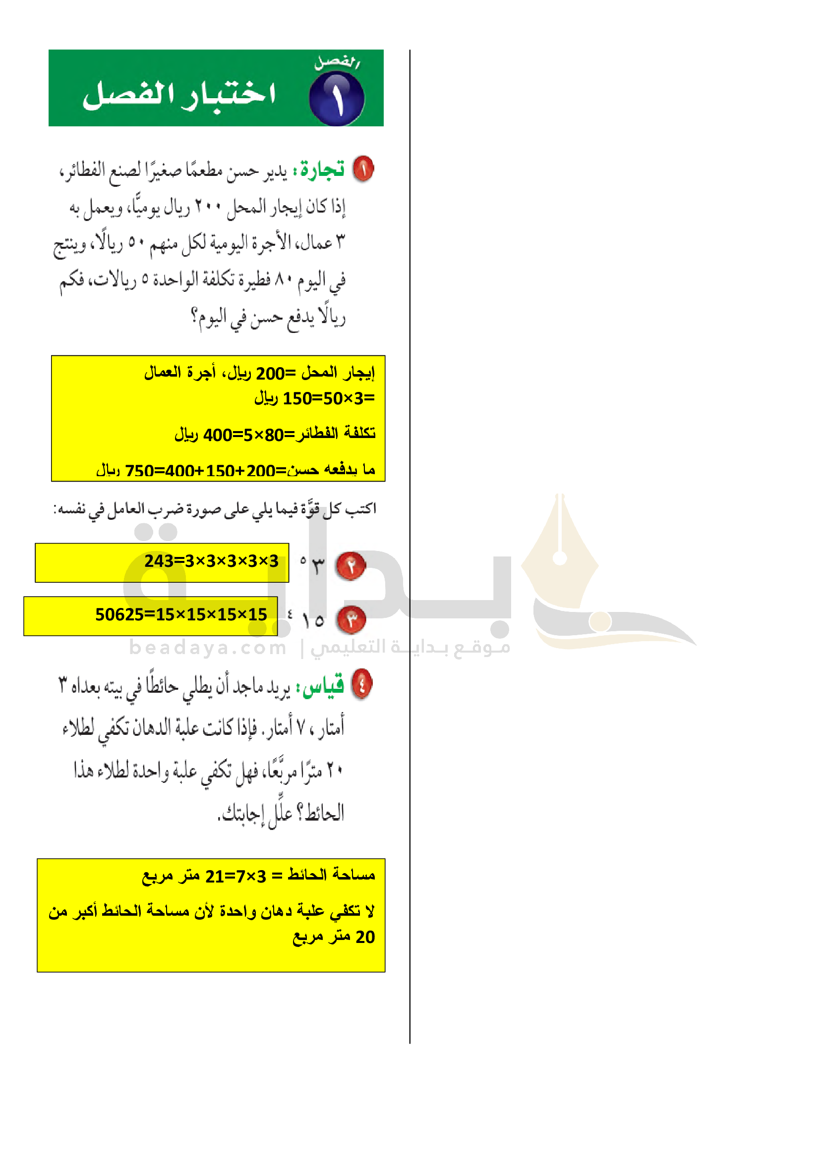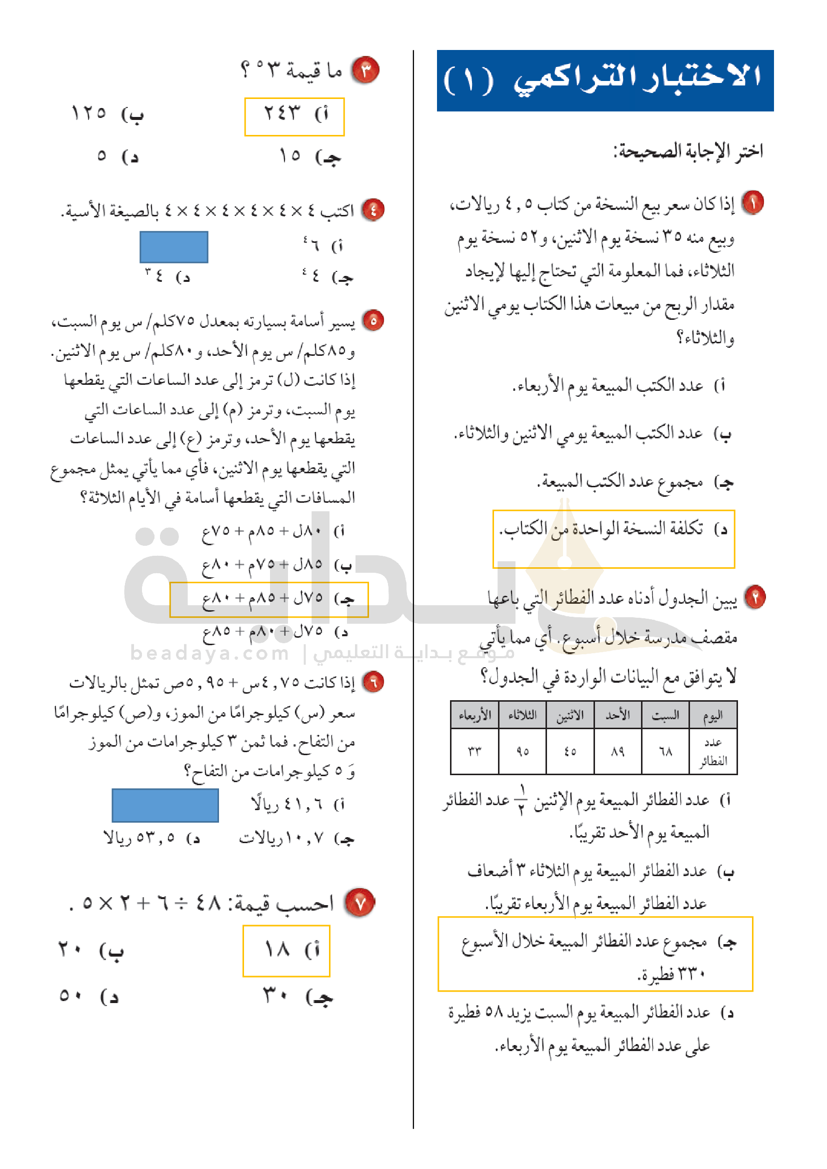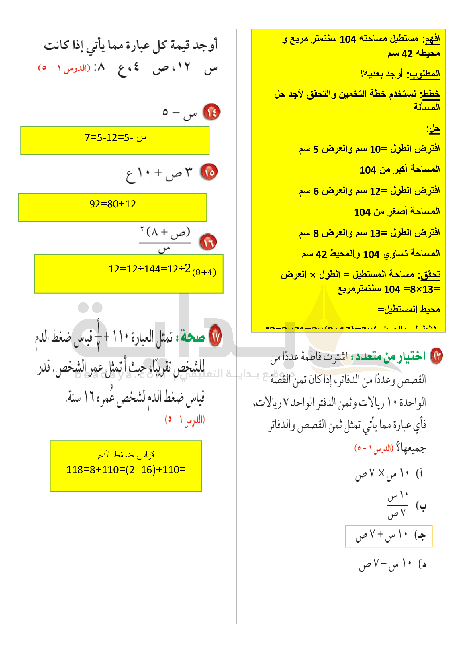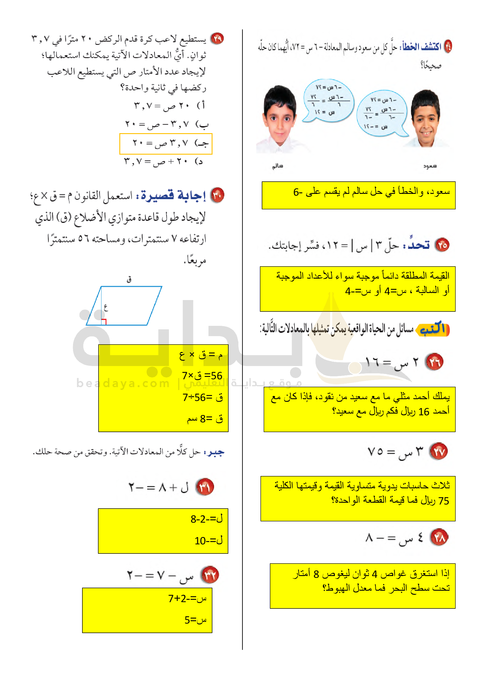 الفصل الثالث: الجبر: المعادلات الخطية والدوال