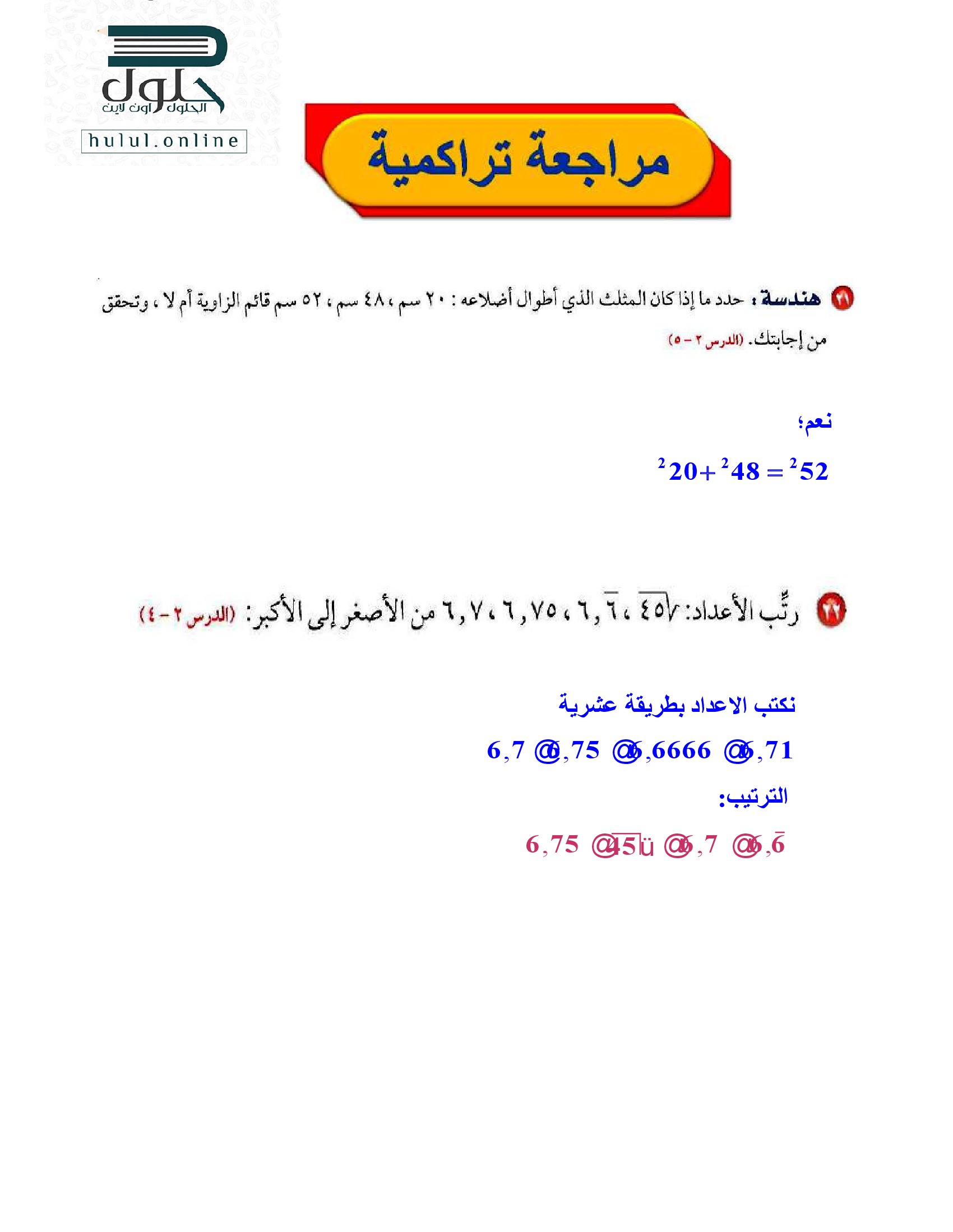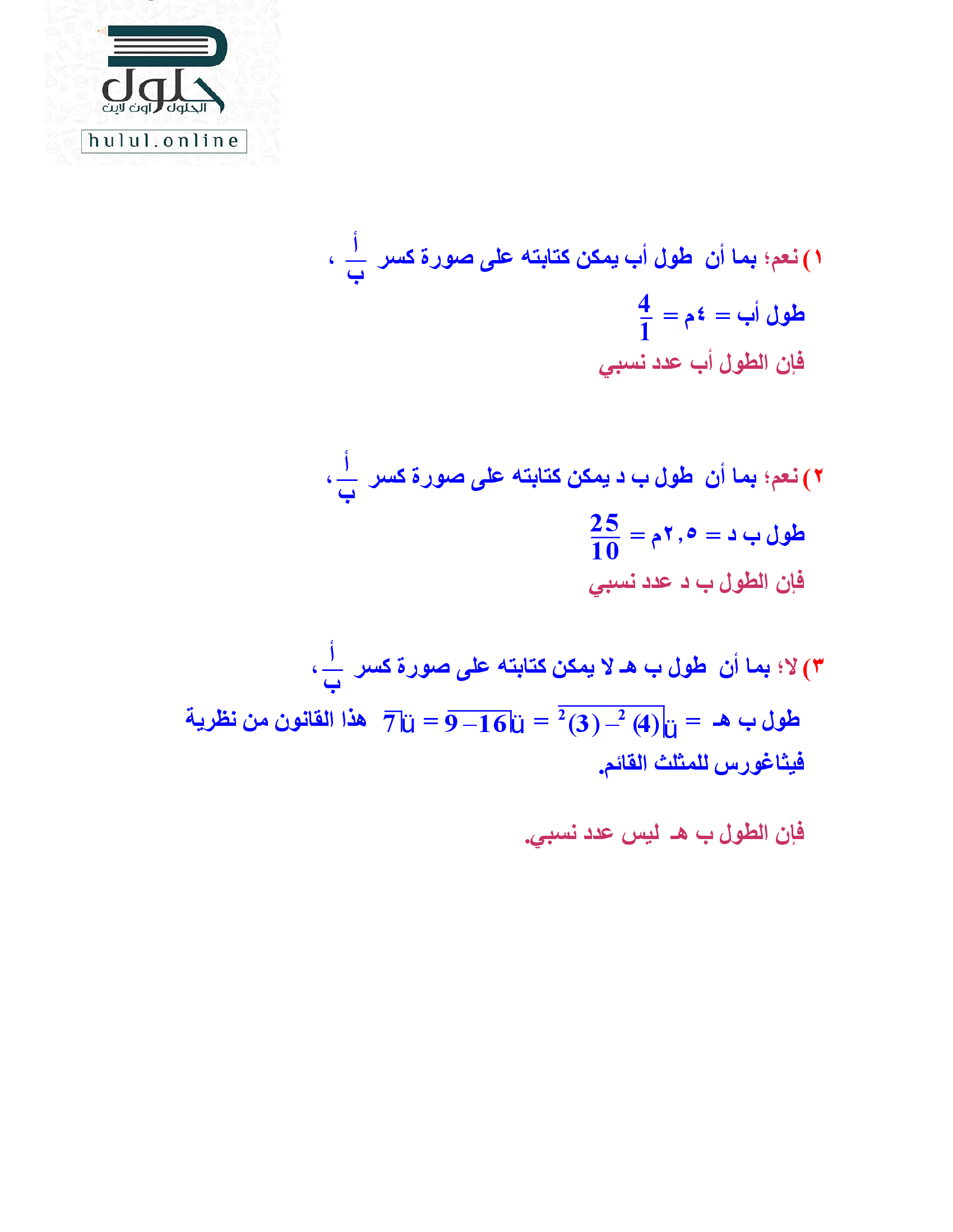 الفصل الثاني: الأعداد الحقيقية ونظرية فيثاغوس