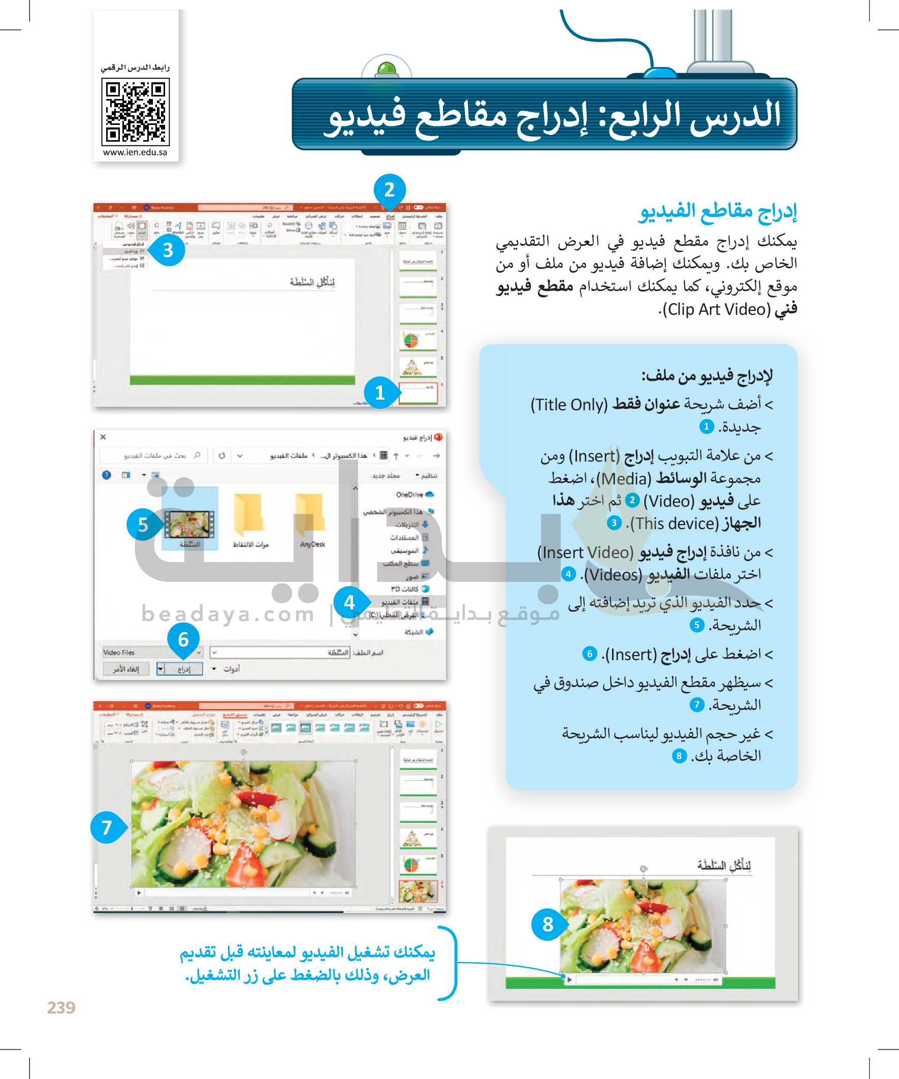 إدراج مقاطع فيديو