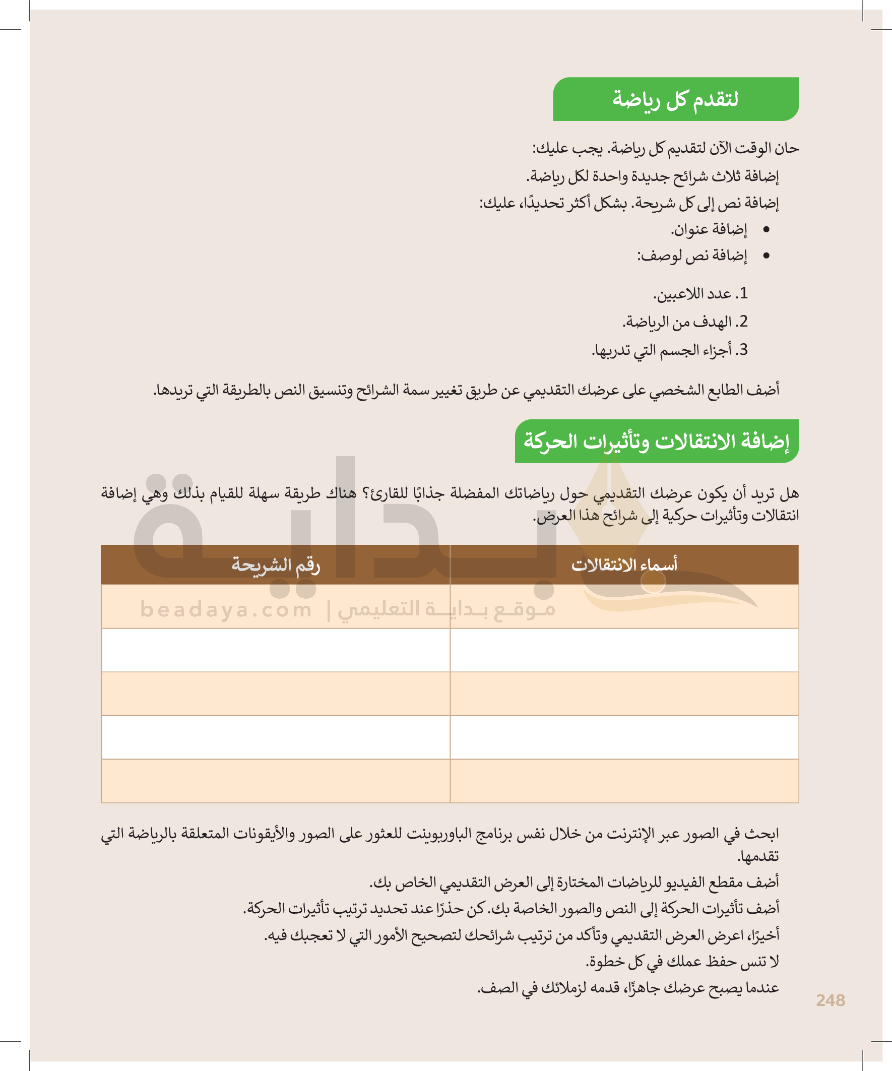 الانتقالات وتأثيرات الحركة