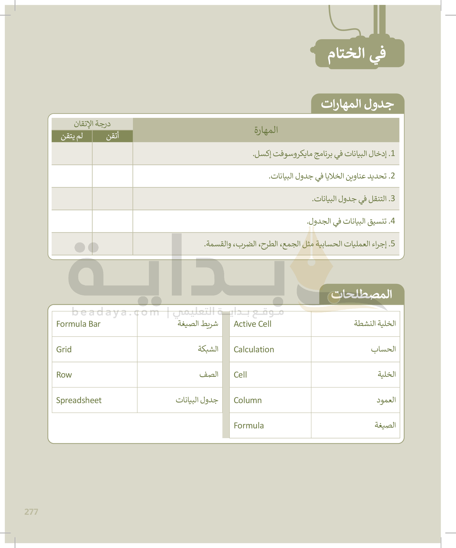 جداول البيانات