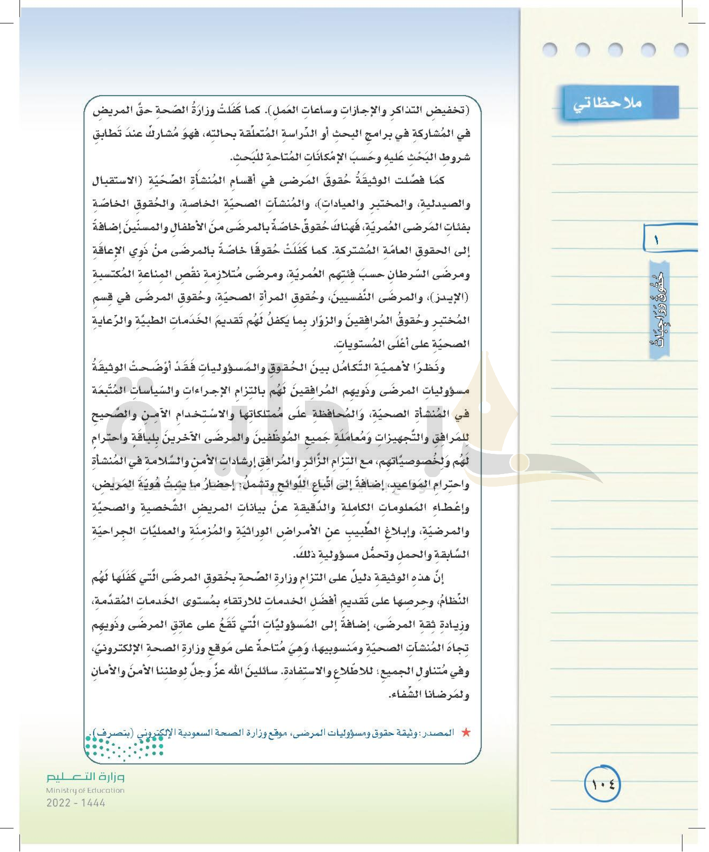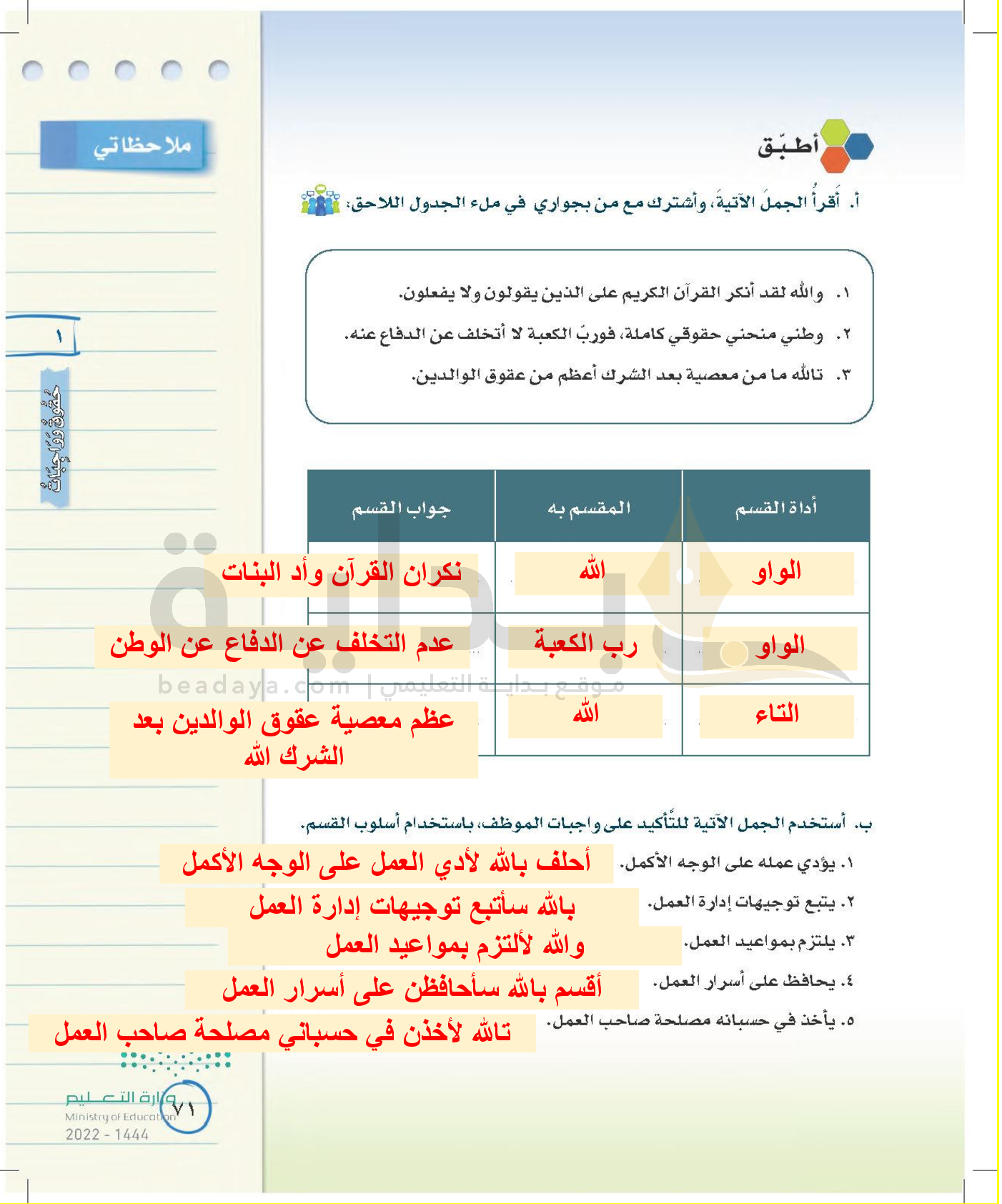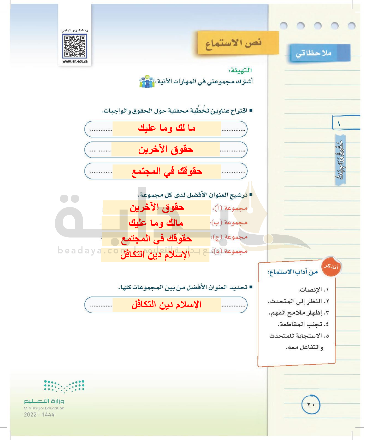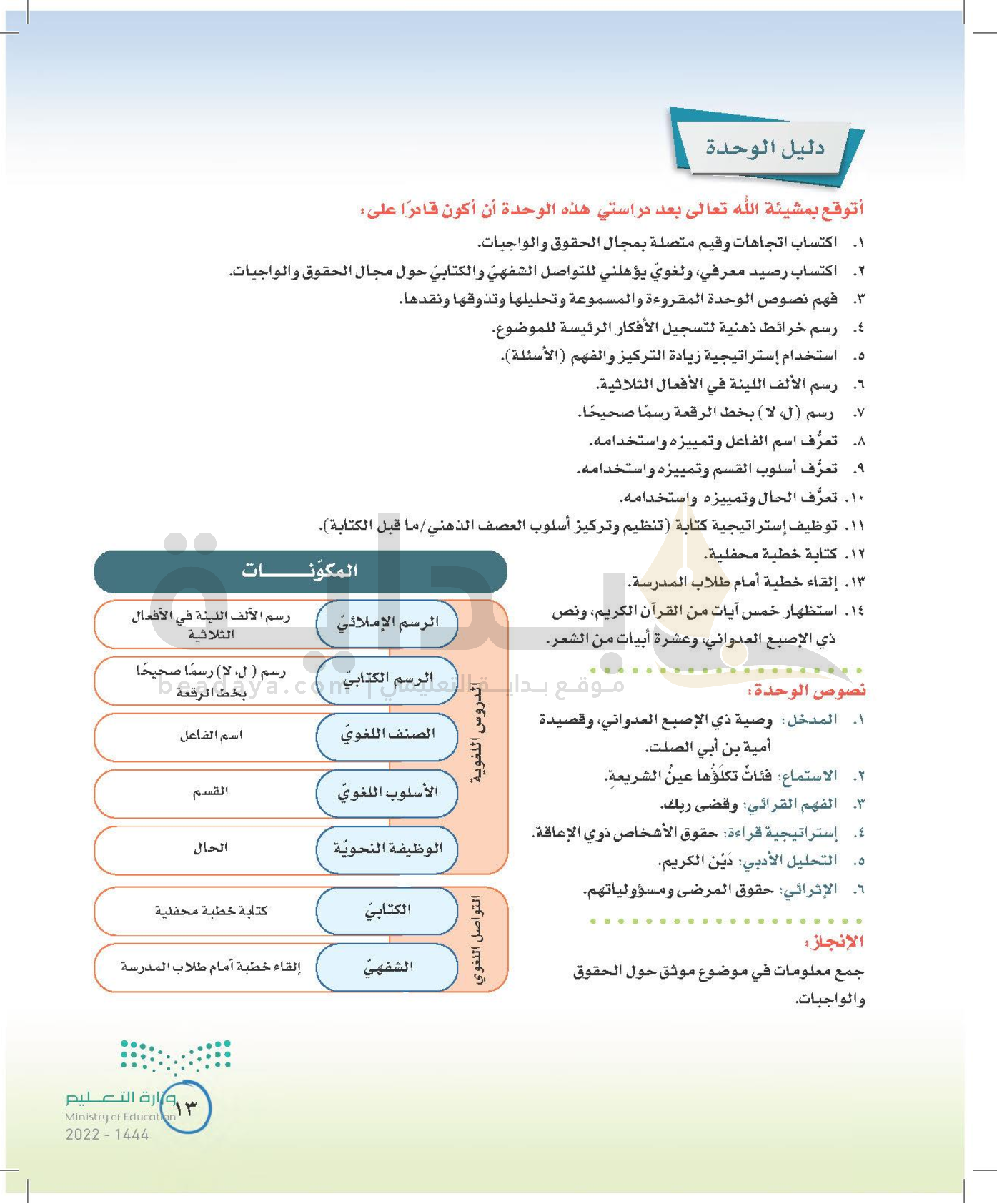 الوحدة الأولى: حقوق وواجبات