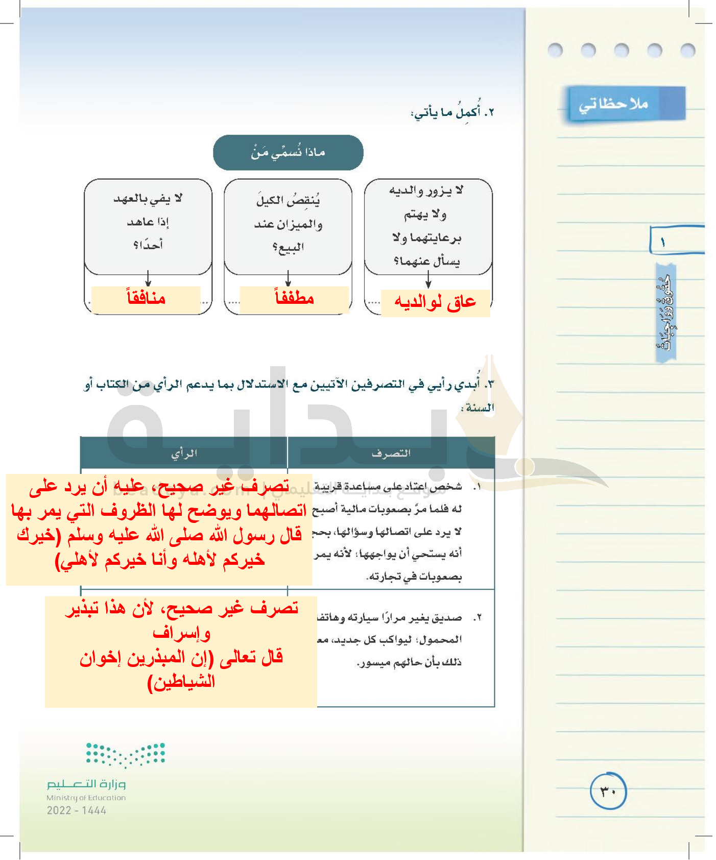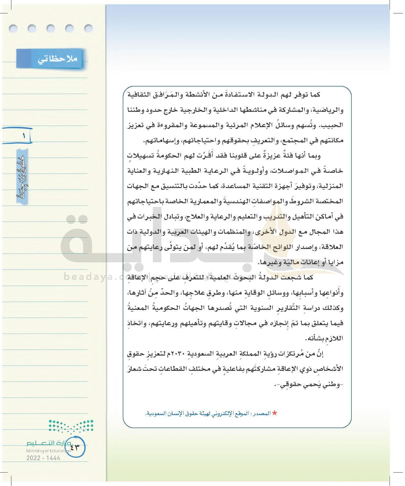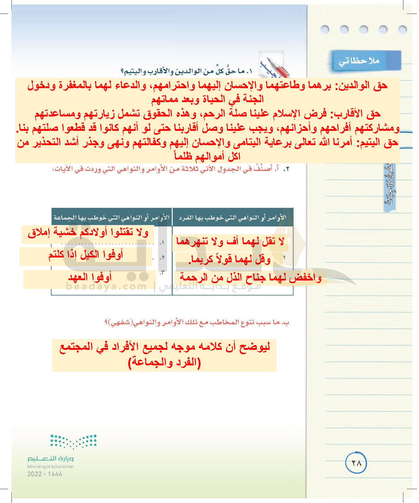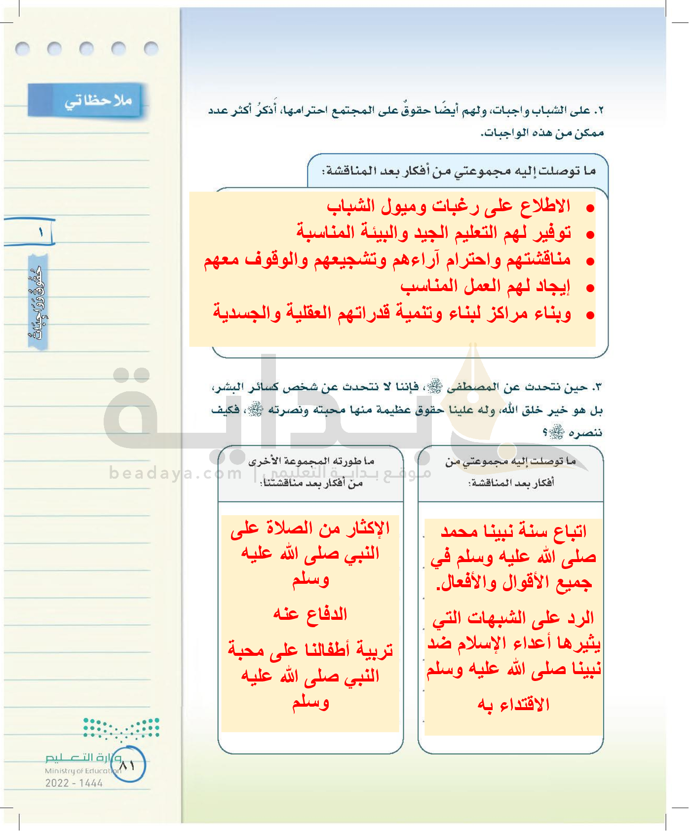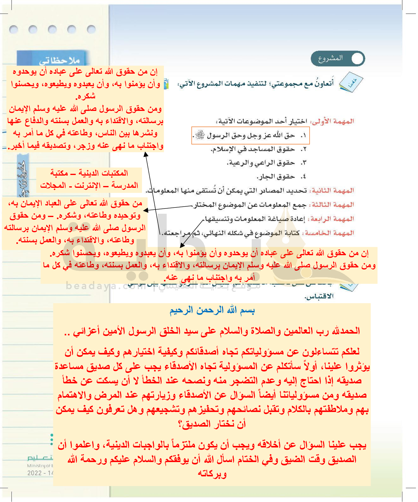 الوحدة الأولى: حقوق وواجبات