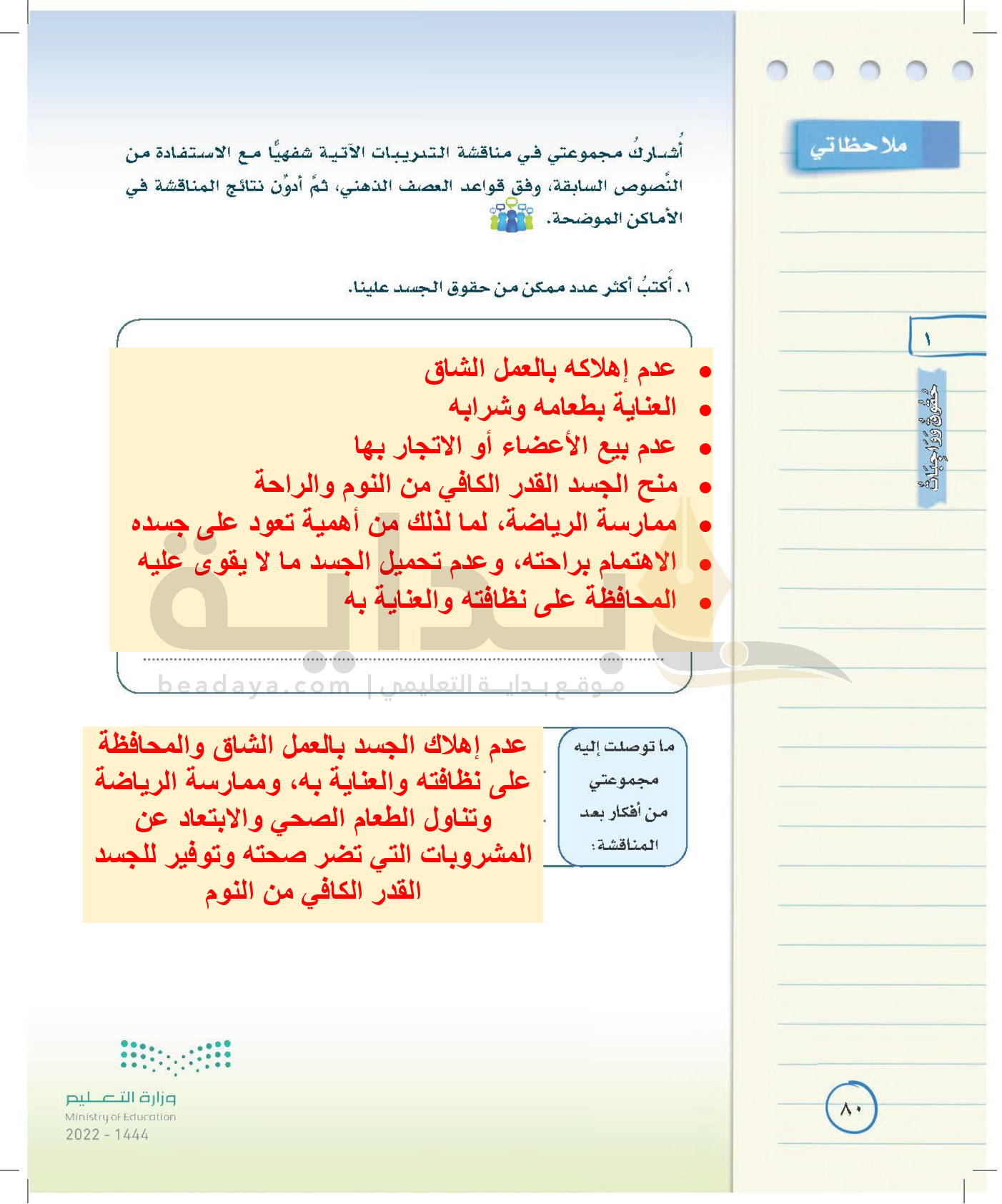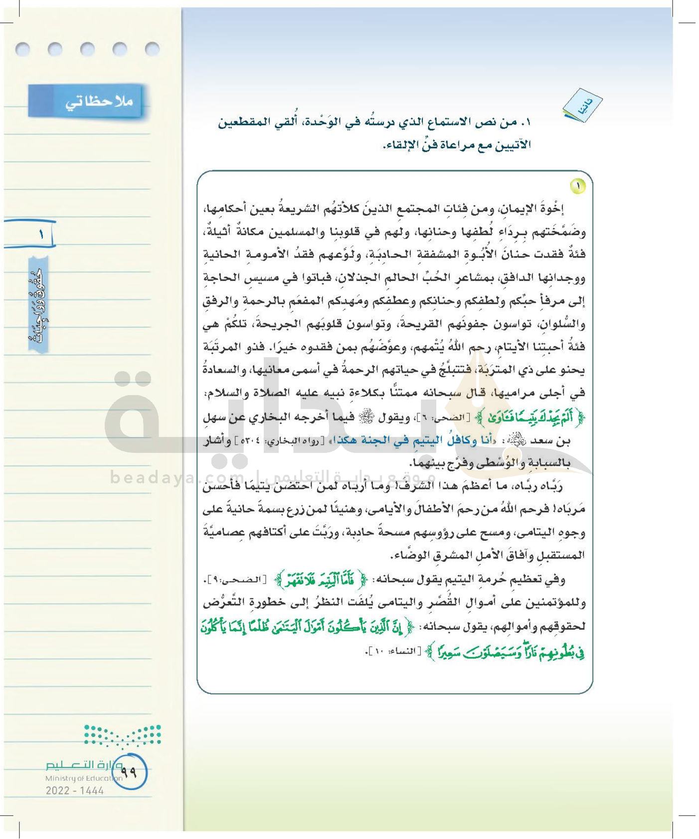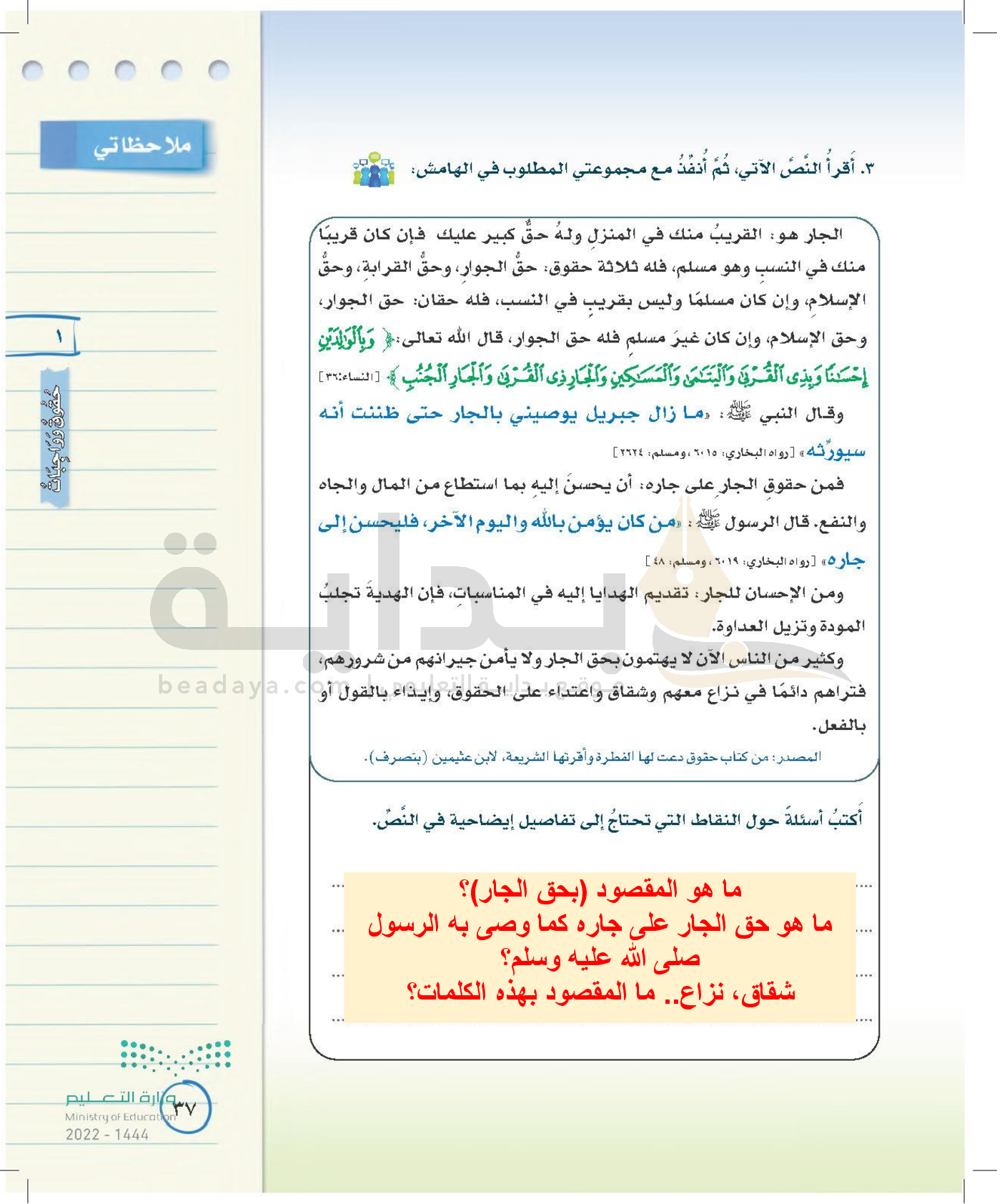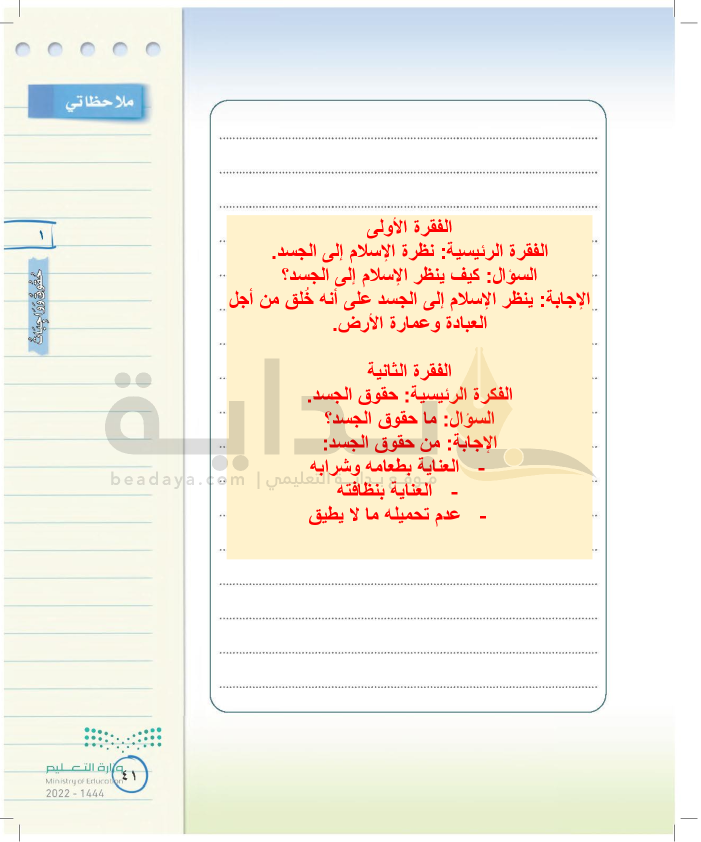 الوحدة الأولى: حقوق وواجبات