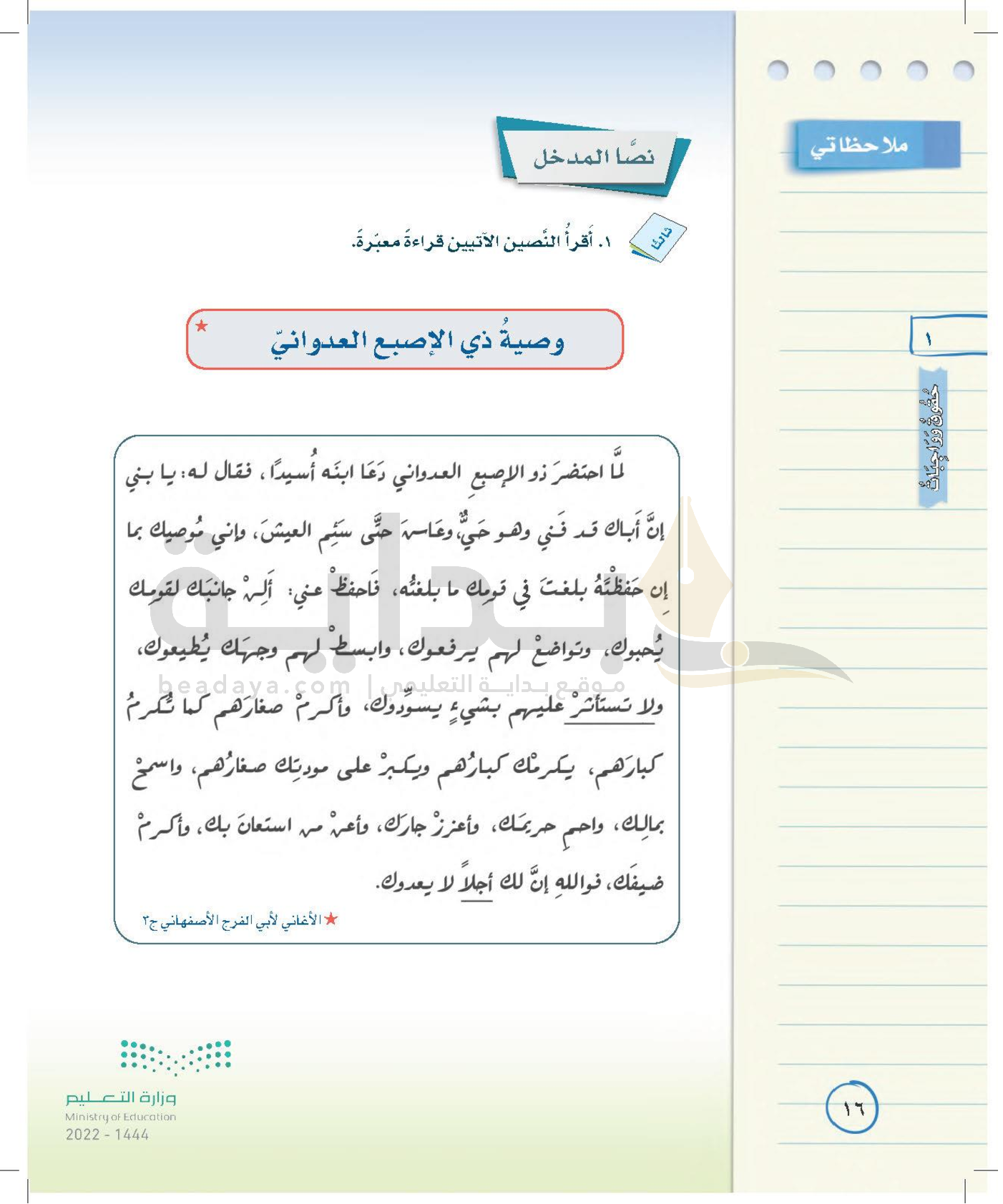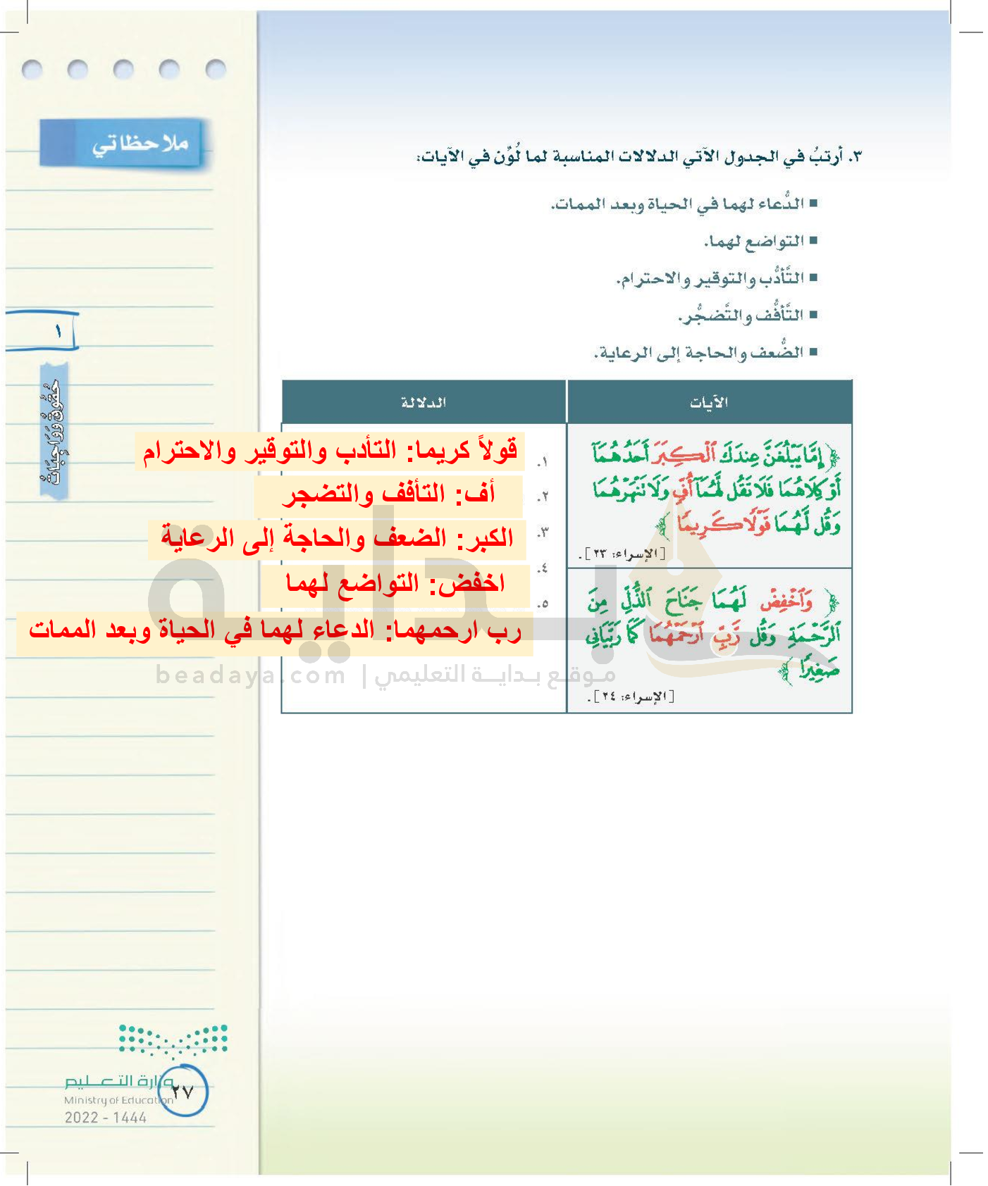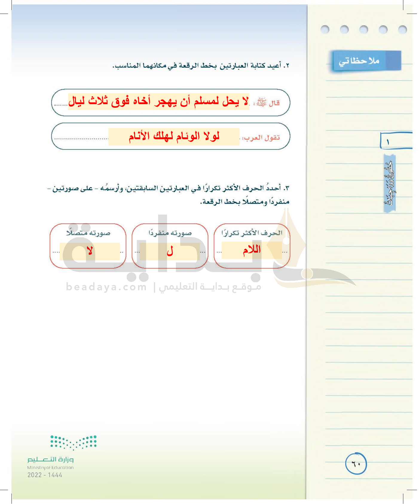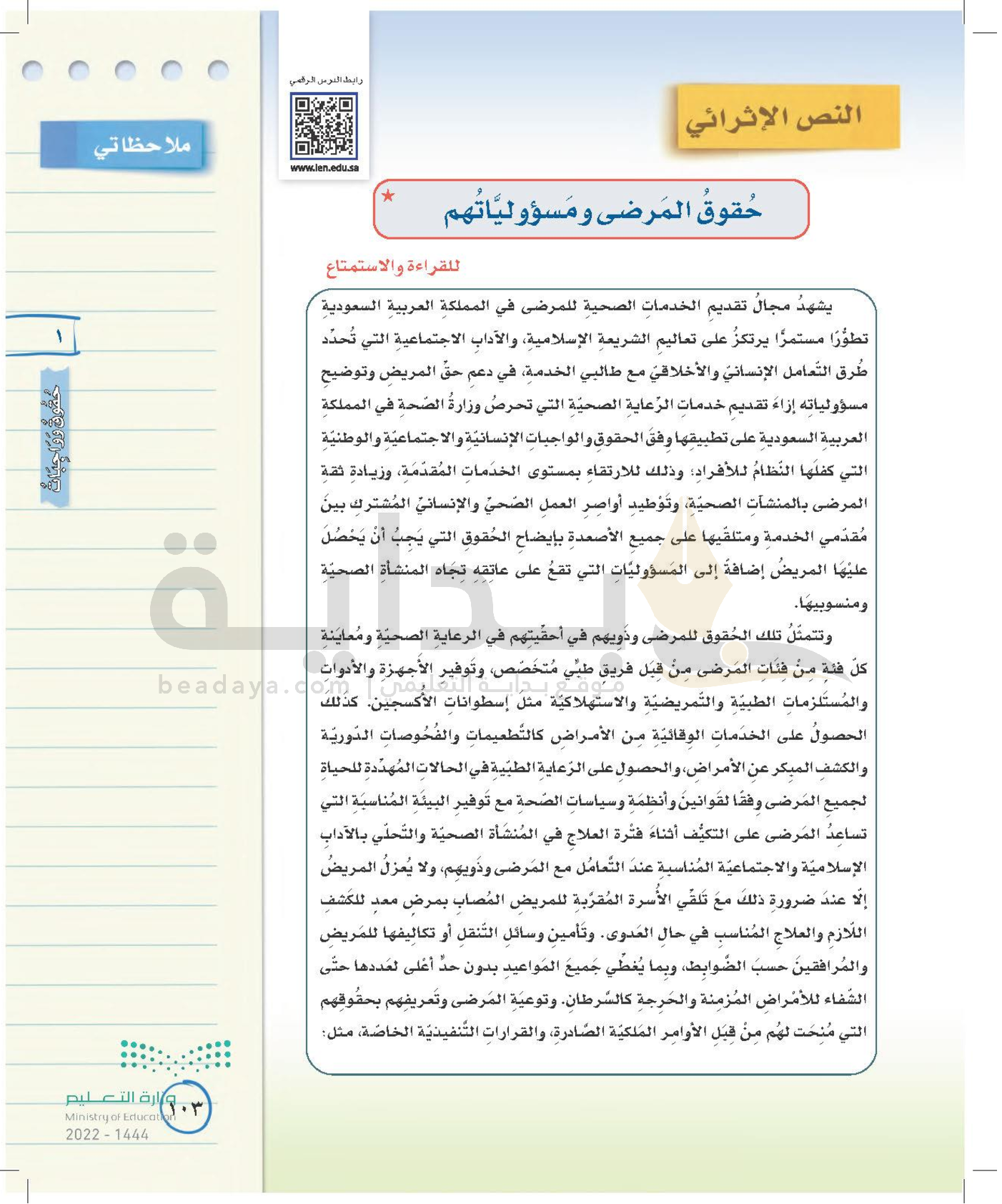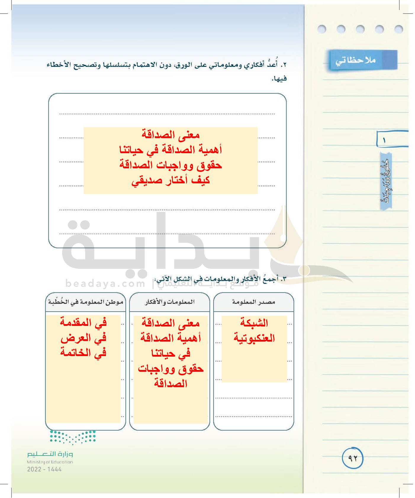 الوحدة الأولى: حقوق وواجبات
