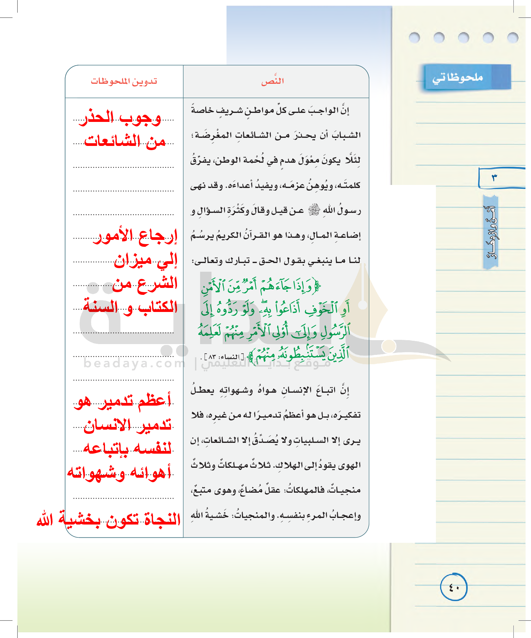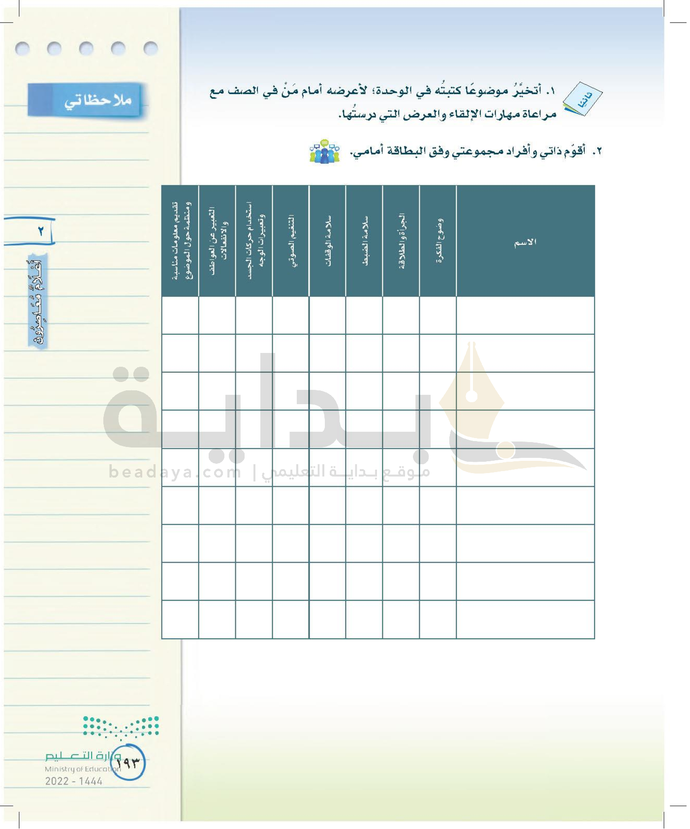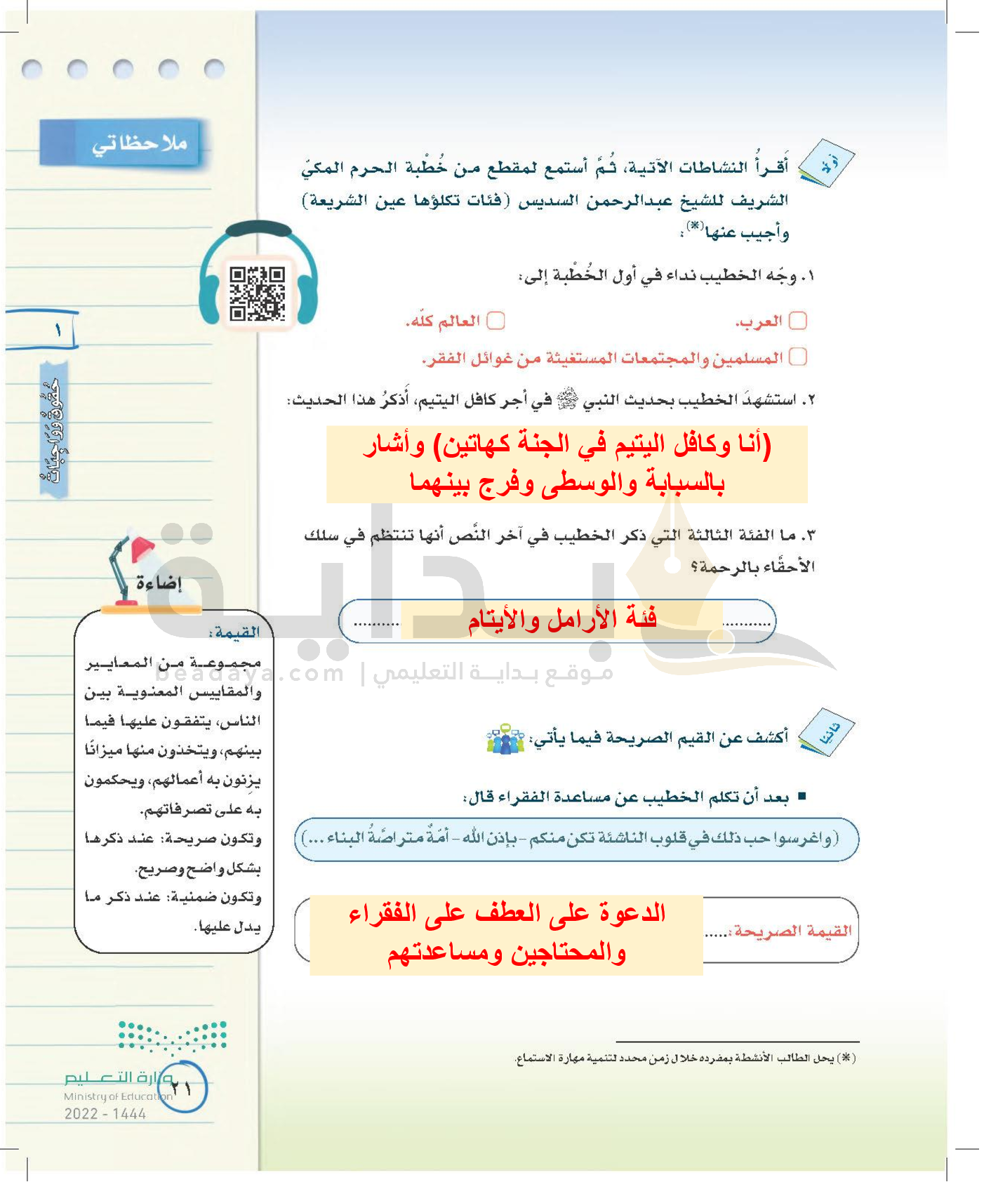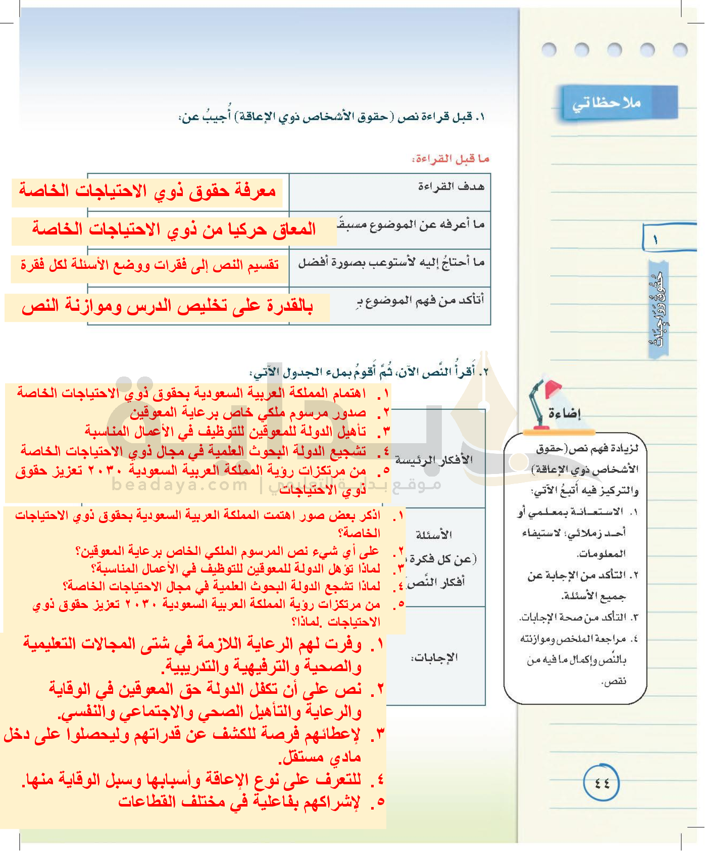 الوحدة الأولى: حقوق وواجبات