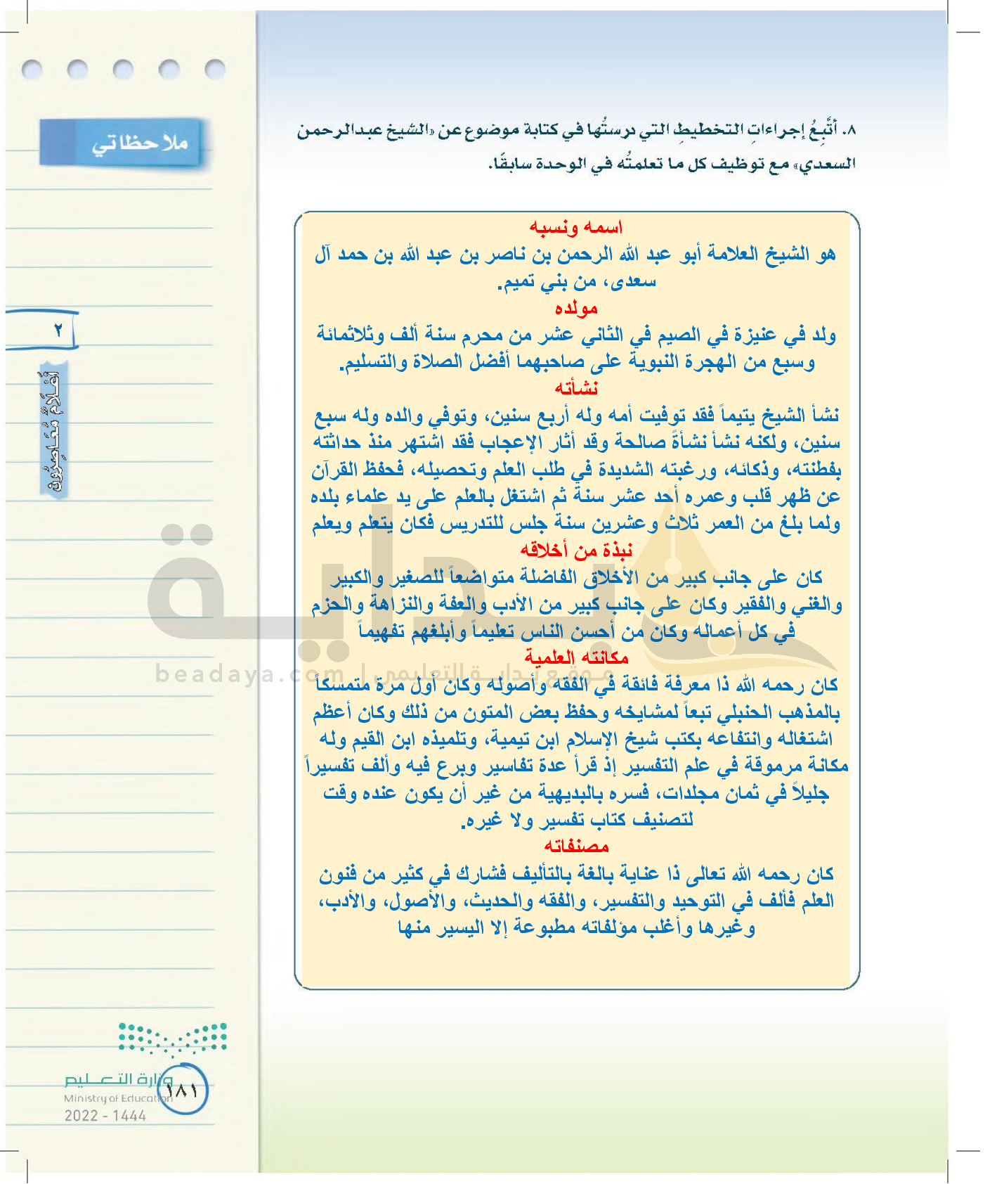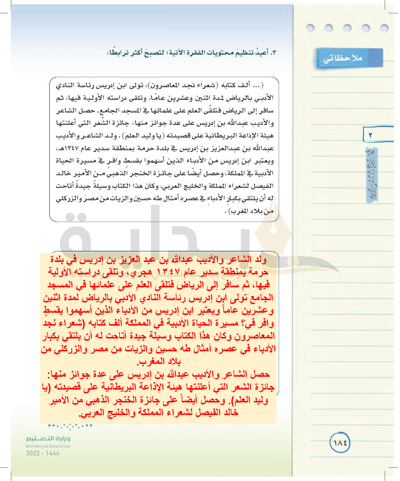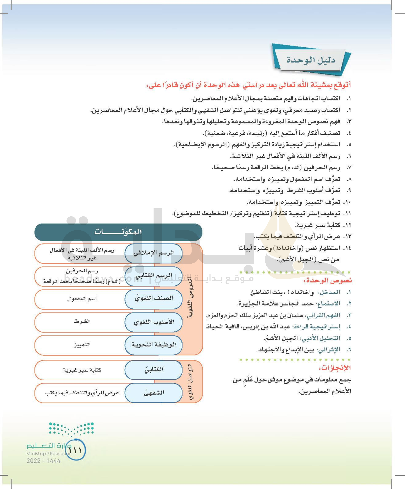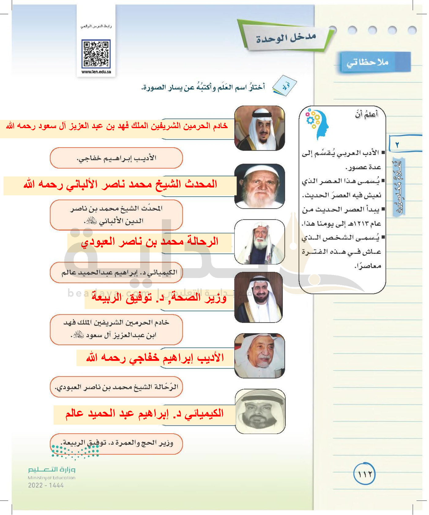 الوحدة الثانية: أعلام معاصرون