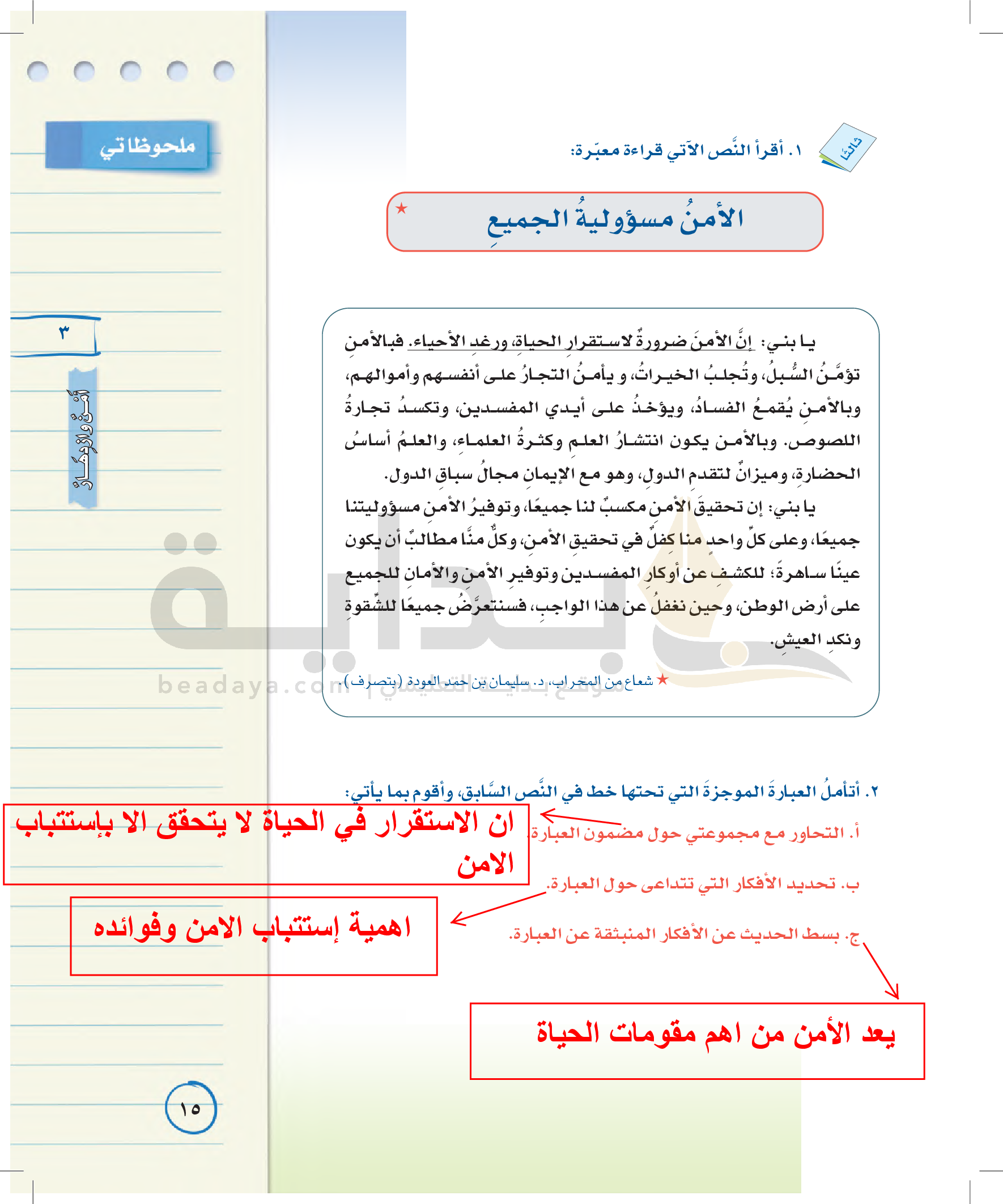 الوحدة الثالثة: أمن وازدهار