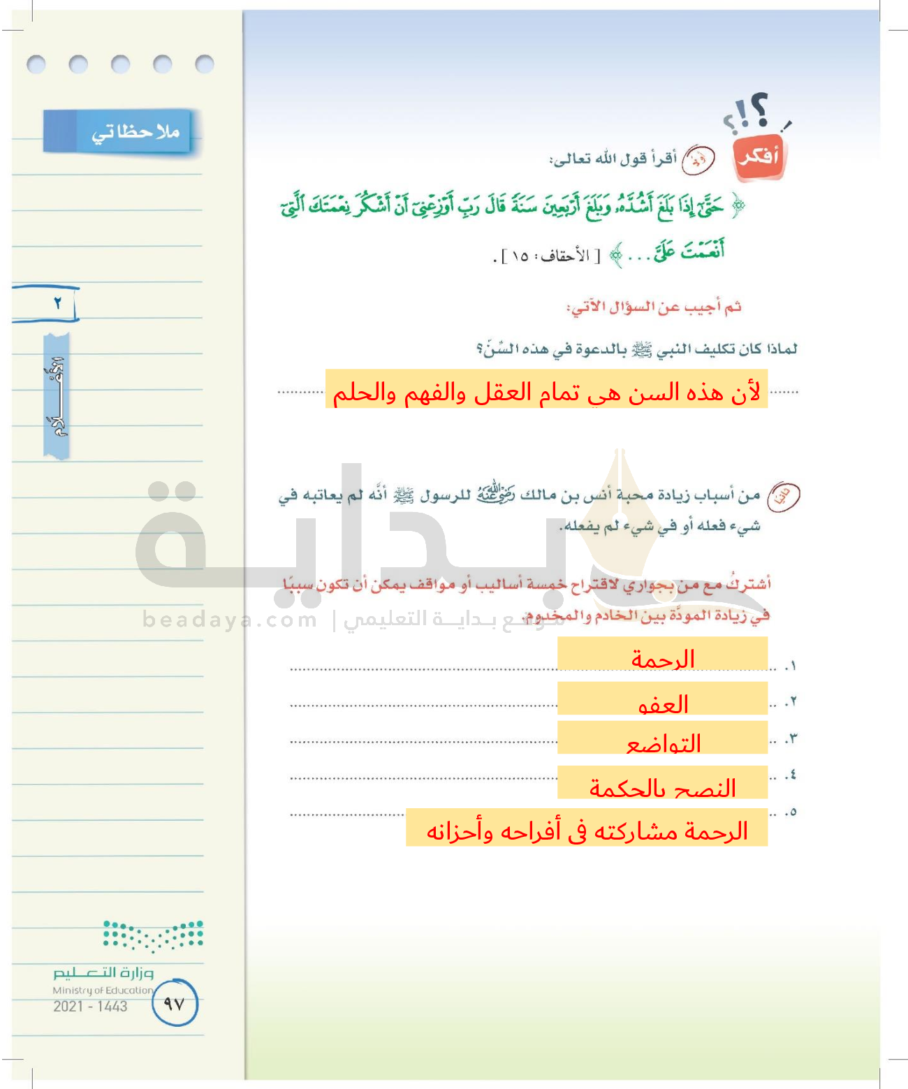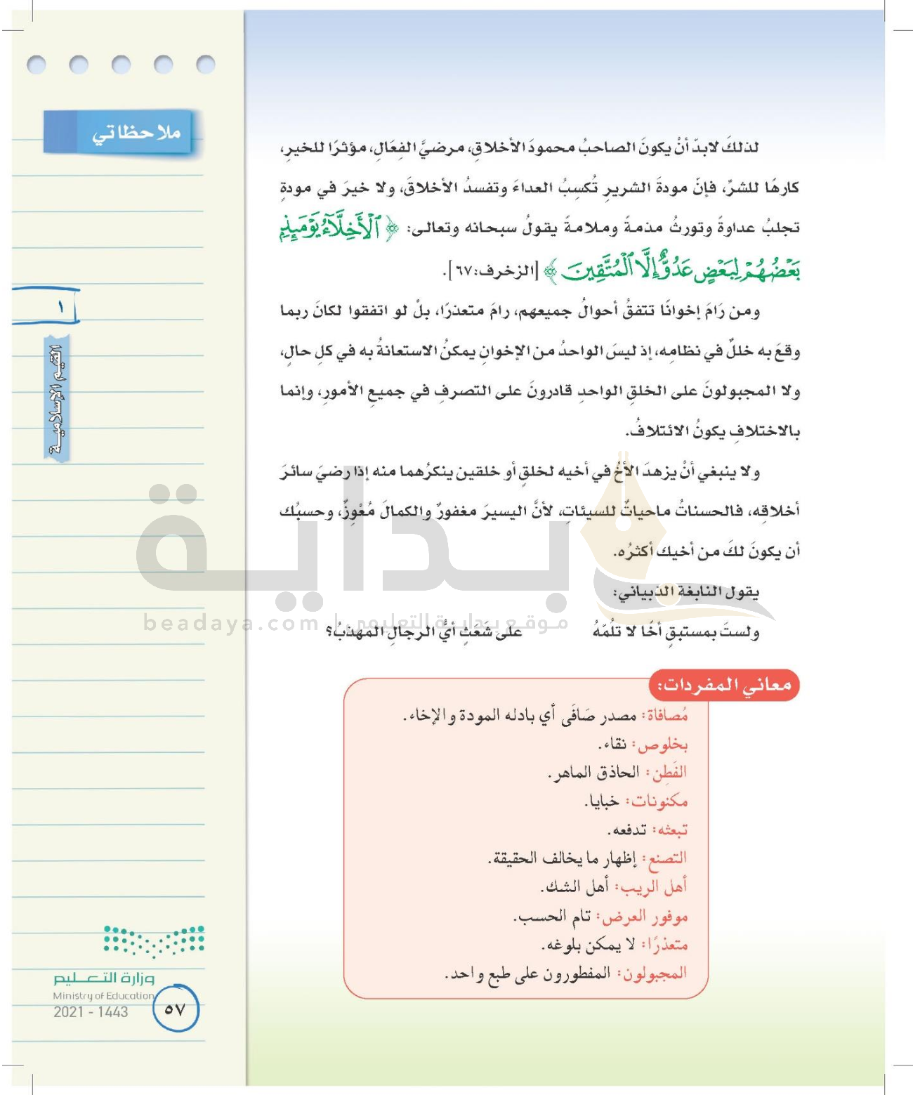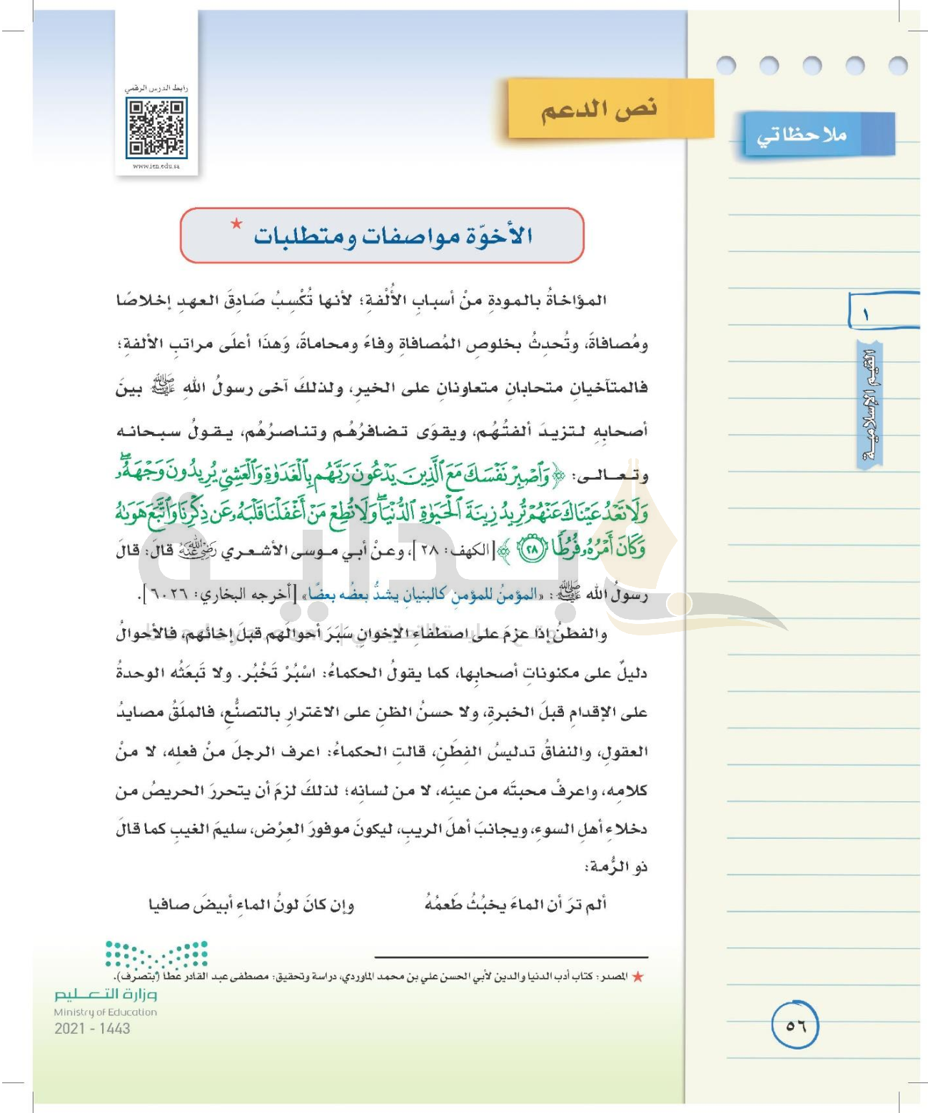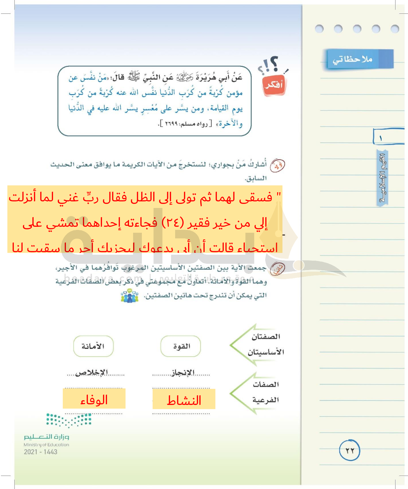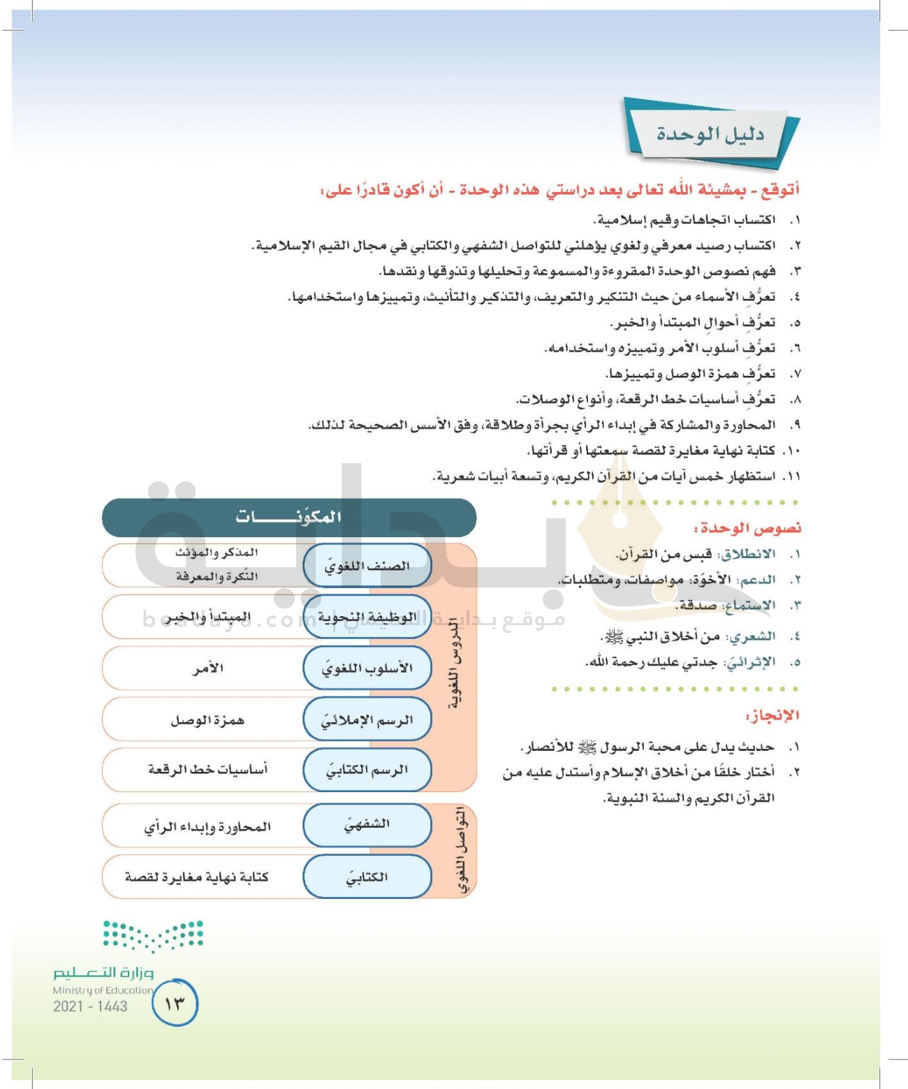 الوحدة الأولى: القيم الإسلامية