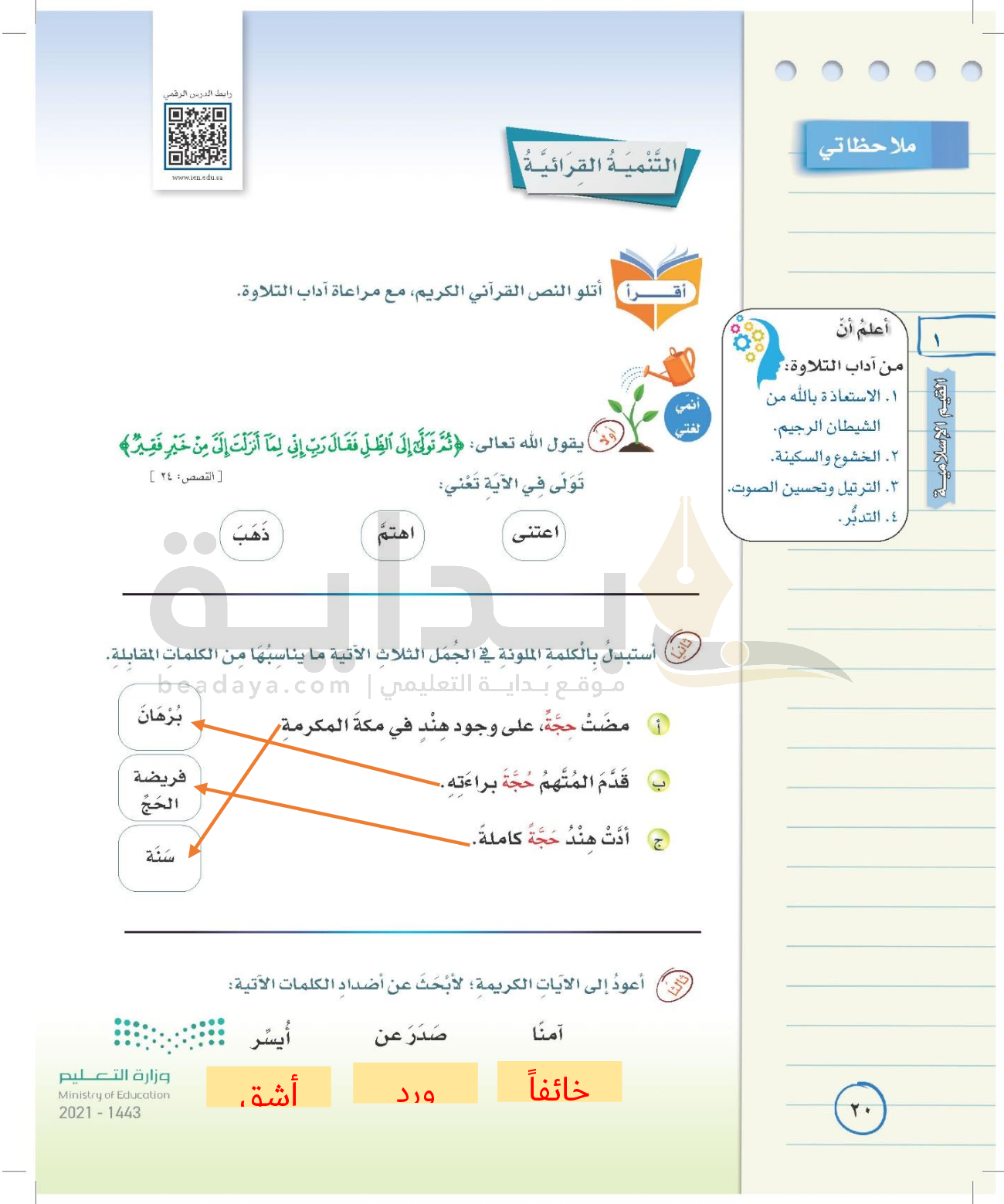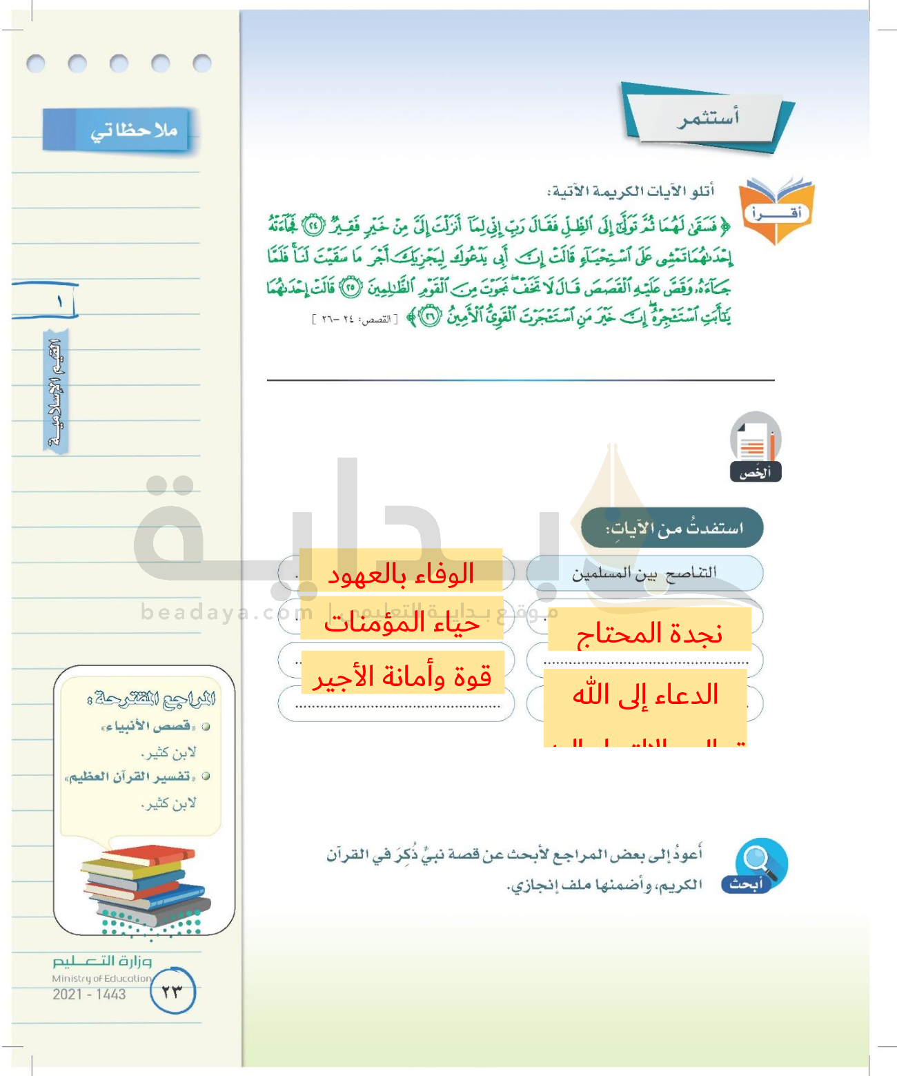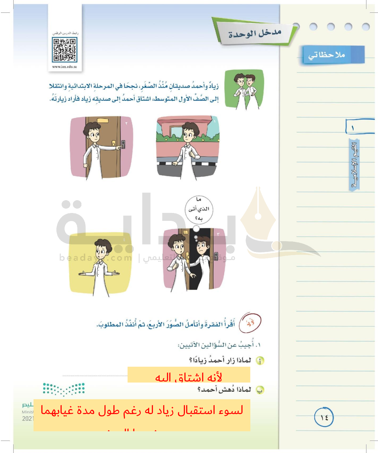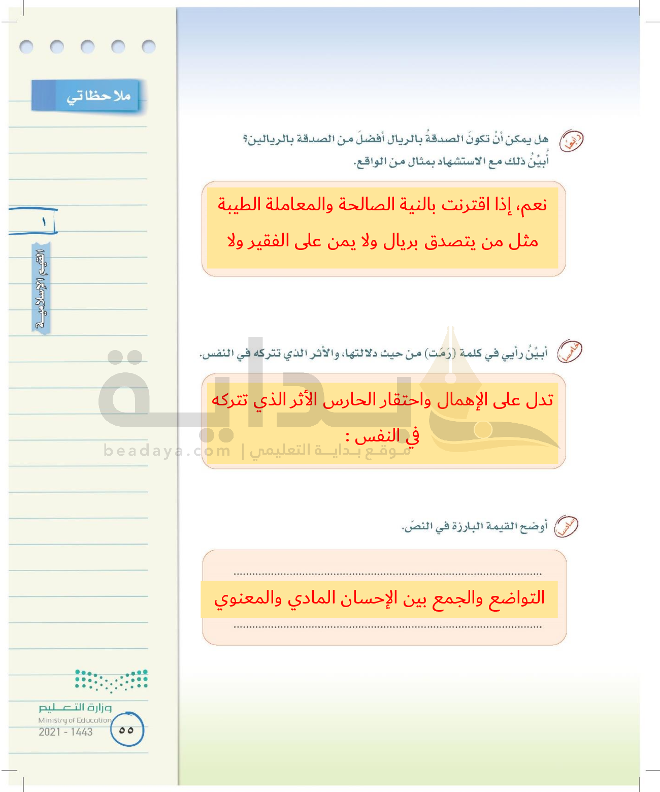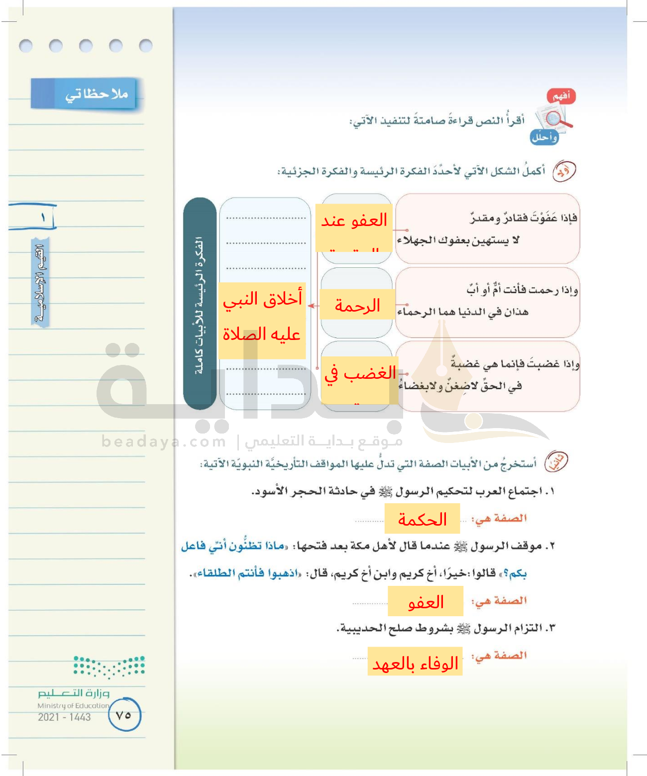 الوحدة الأولى: القيم الإسلامية
