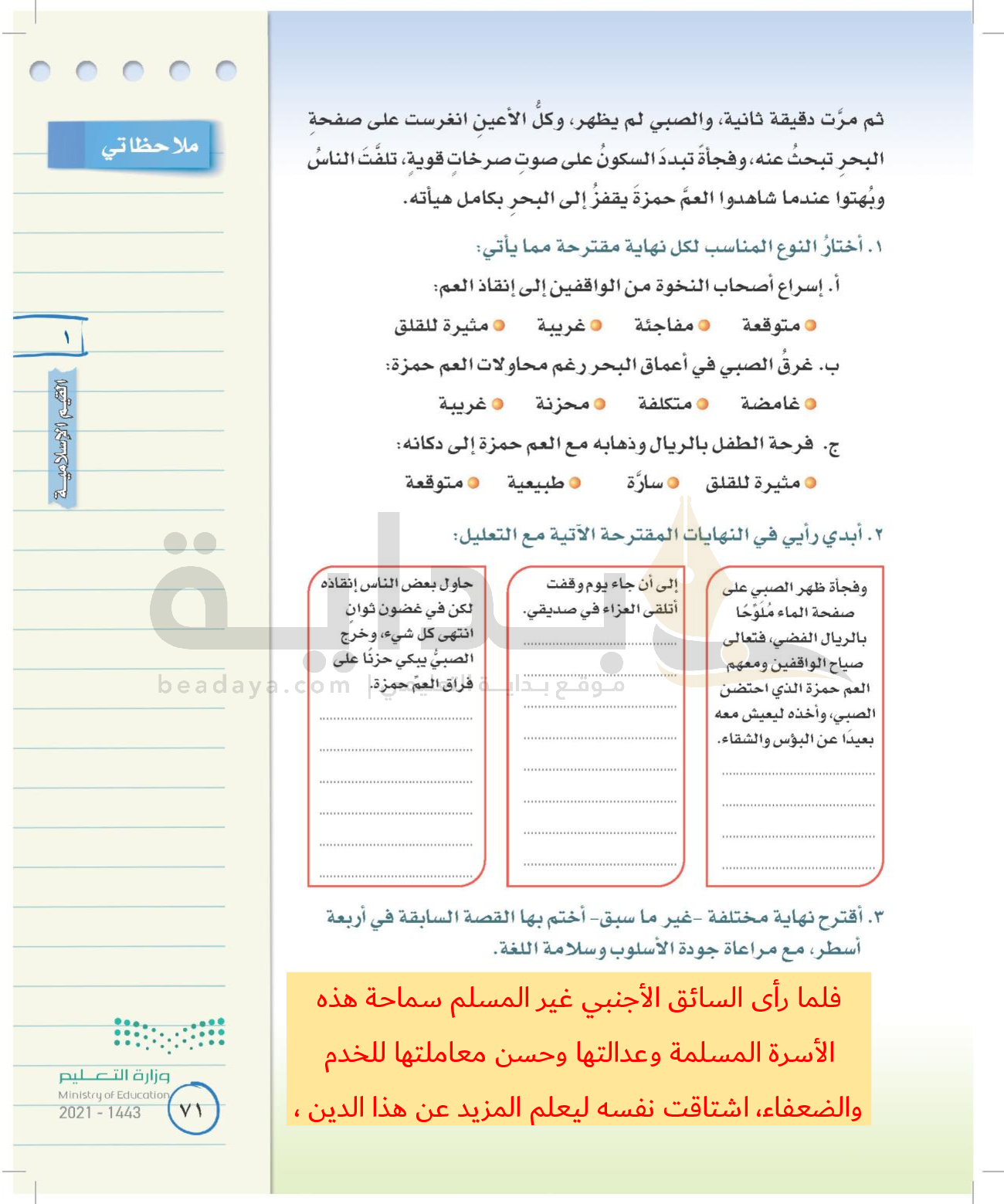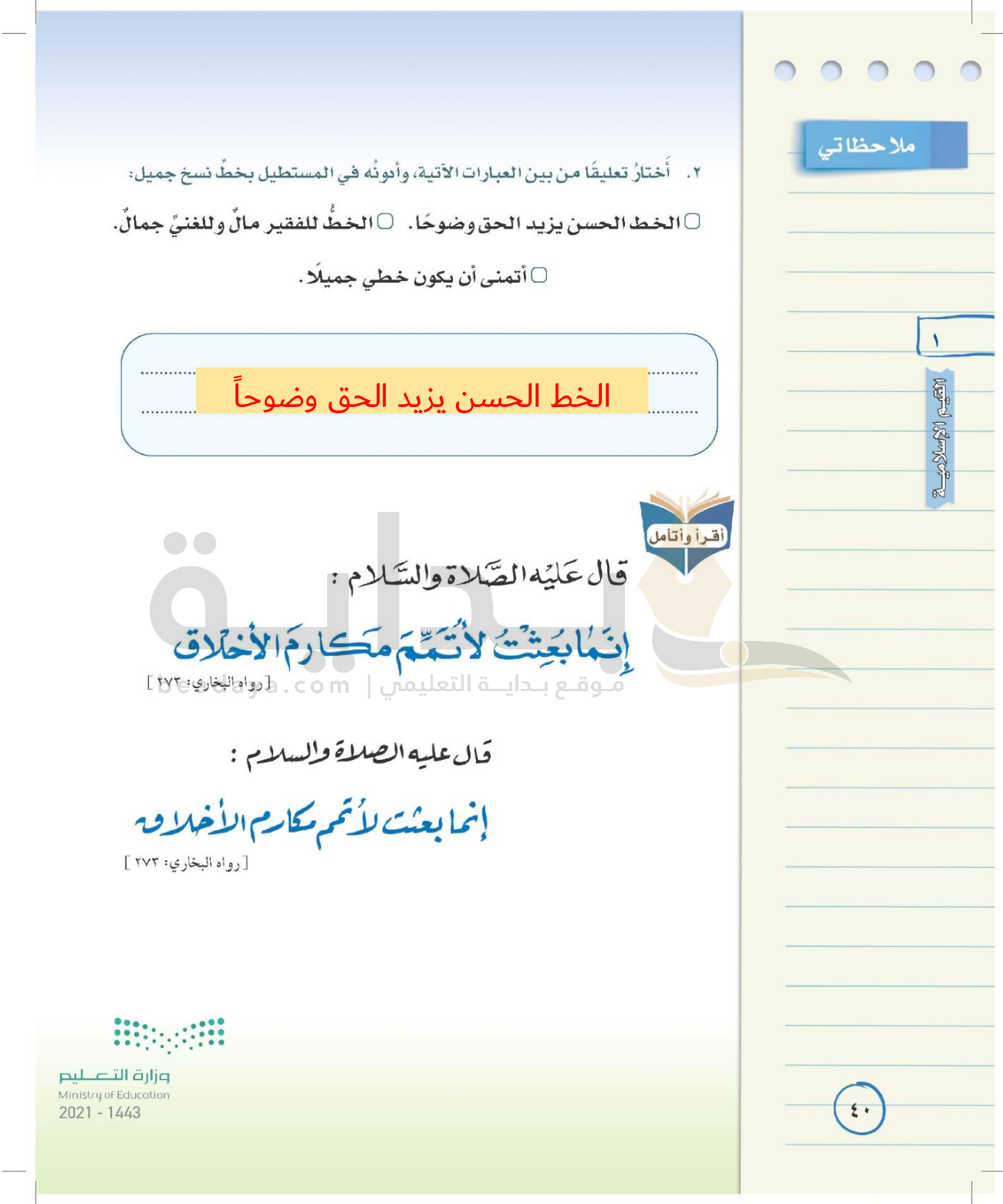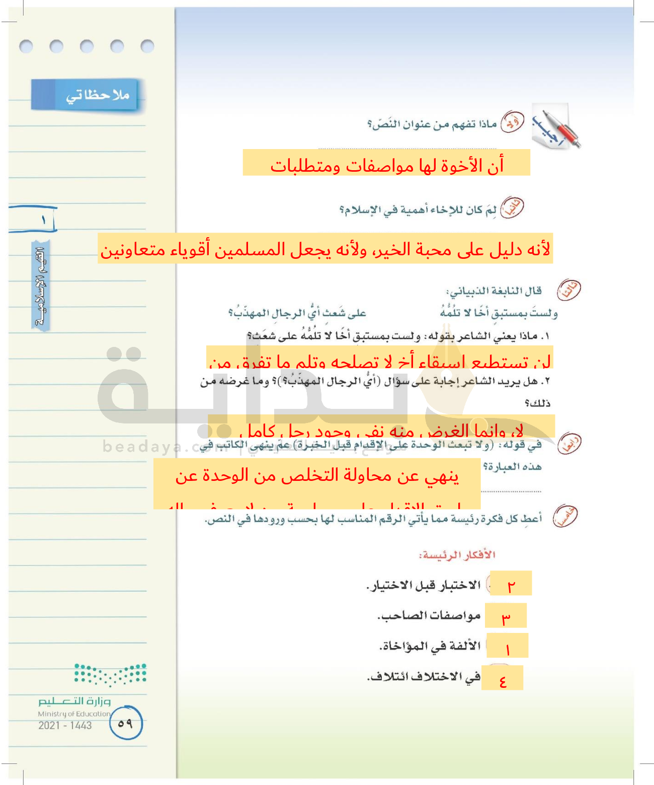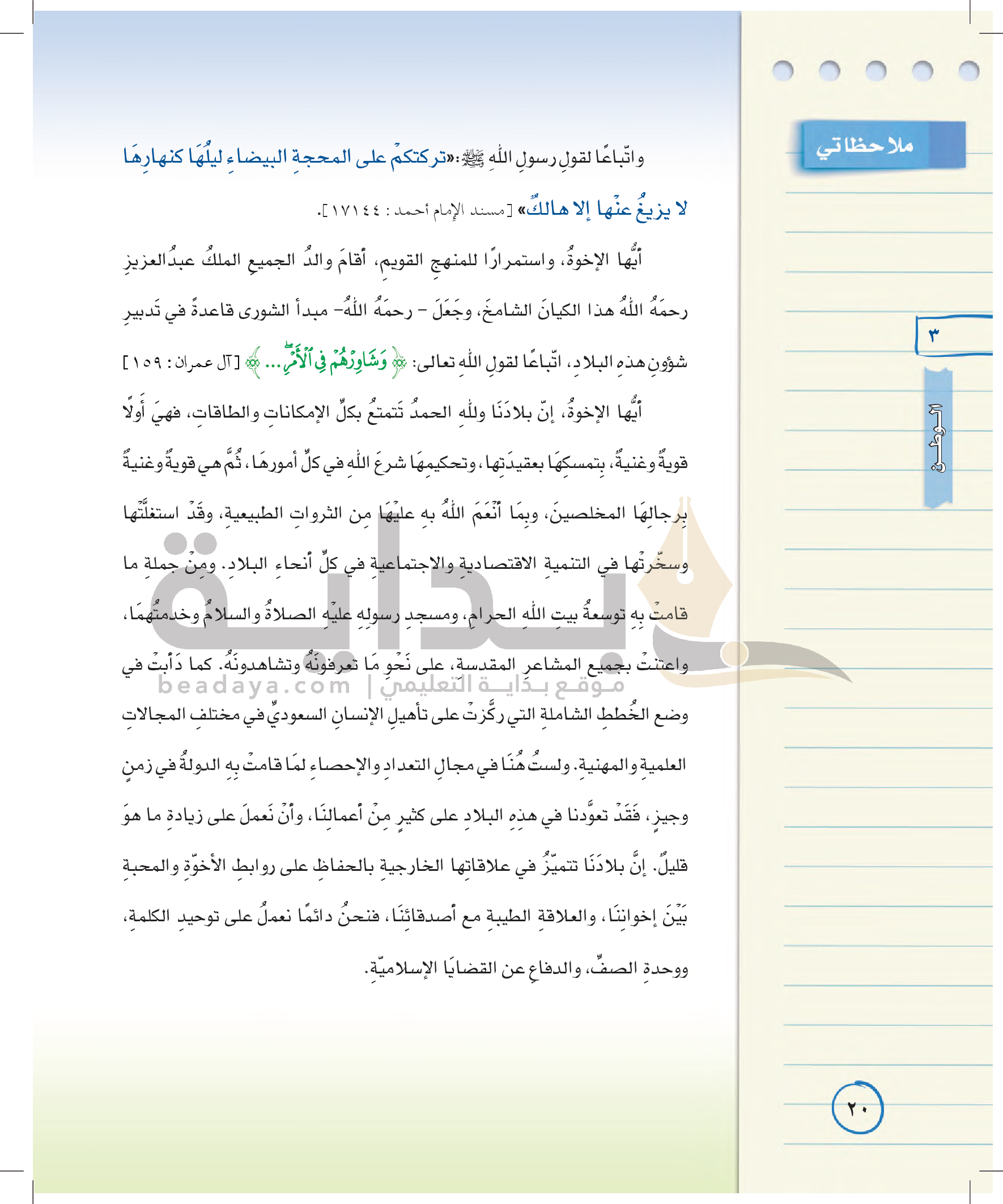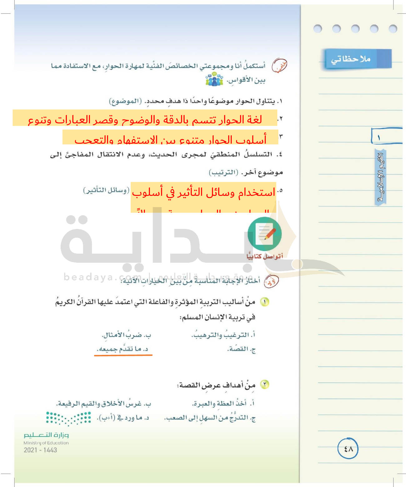 الوحدة الأولى: القيم الإسلامية