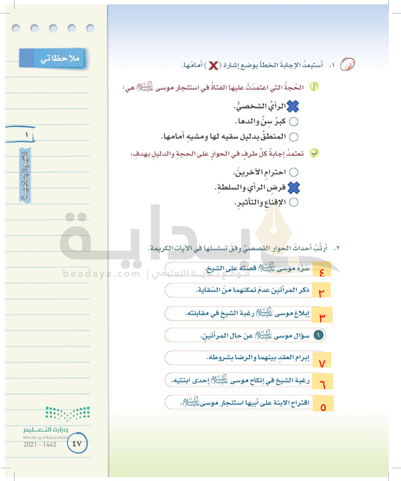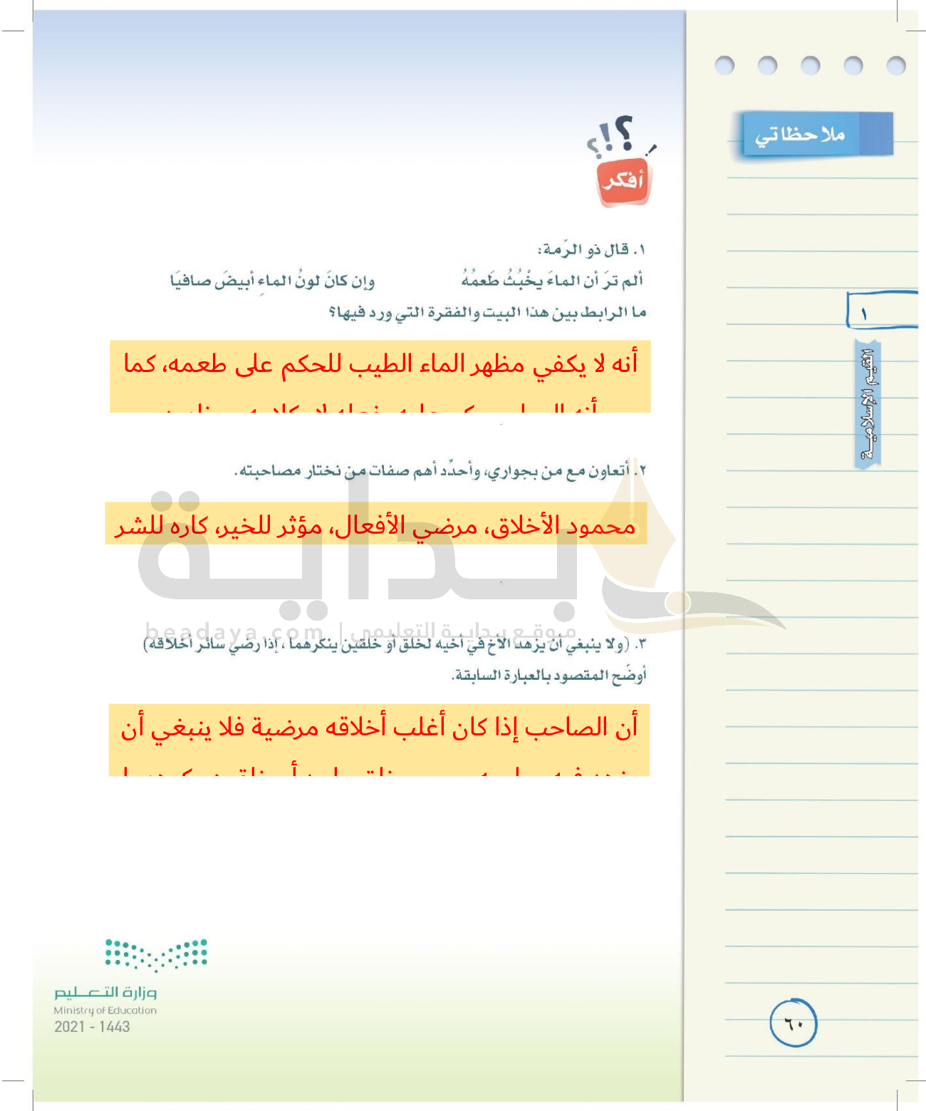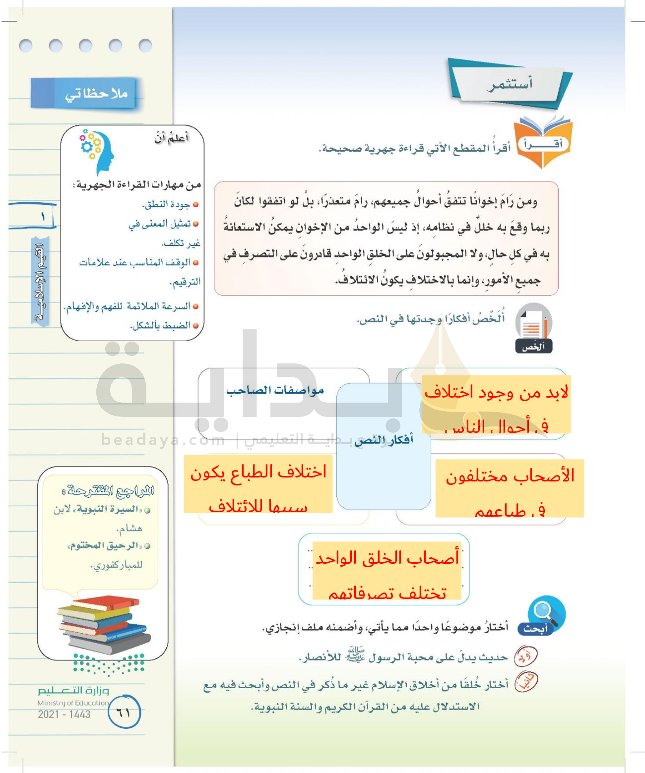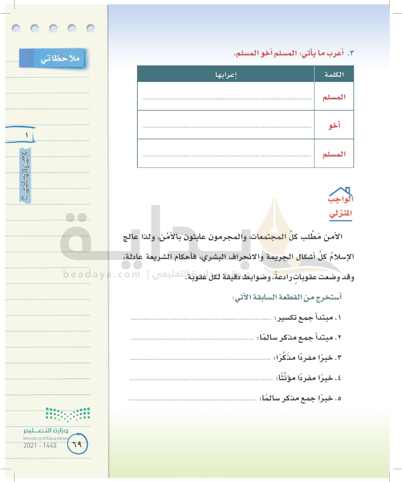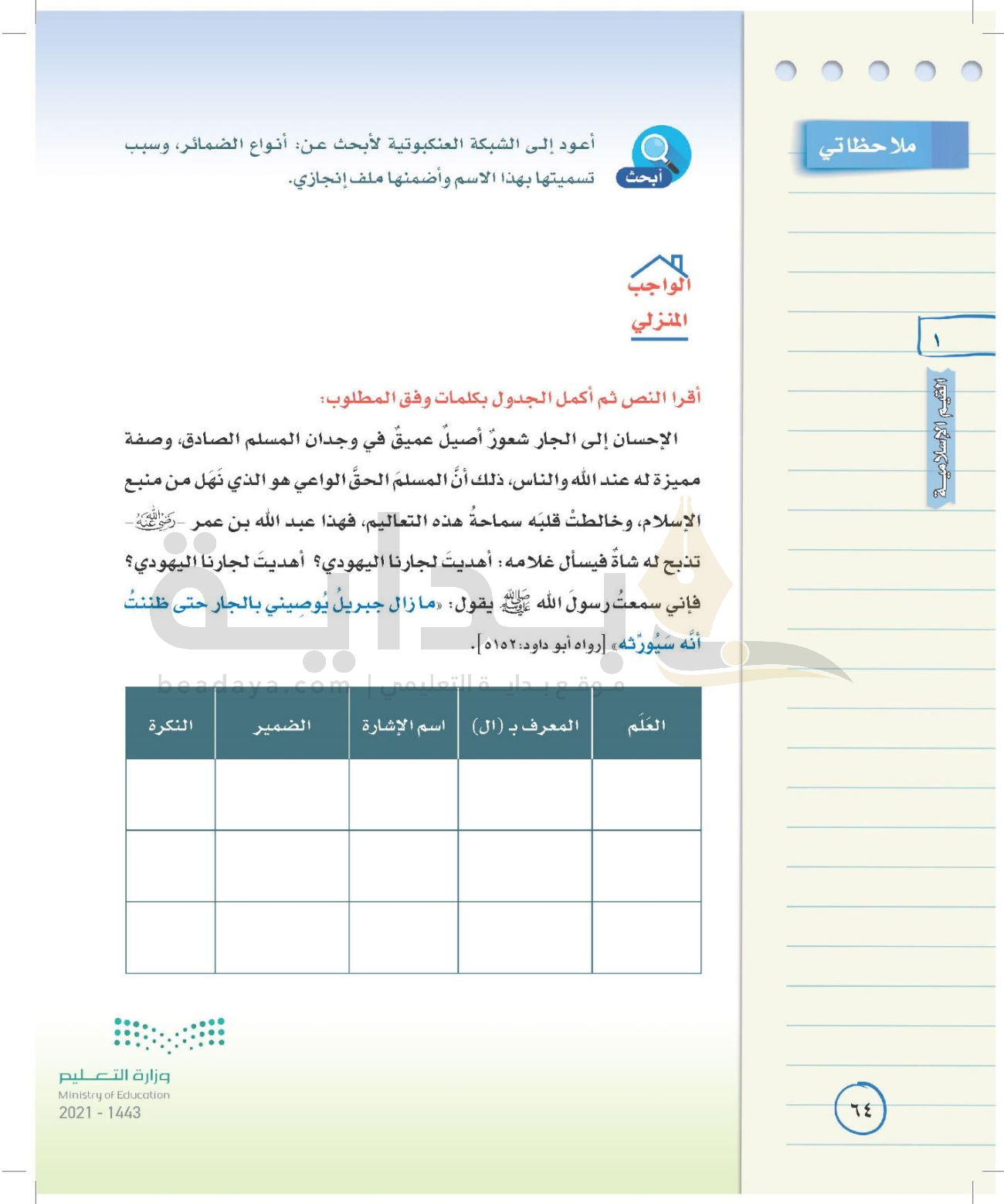 الوحدة الأولى: القيم الإسلامية