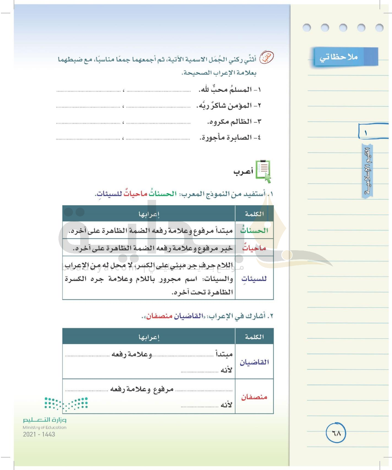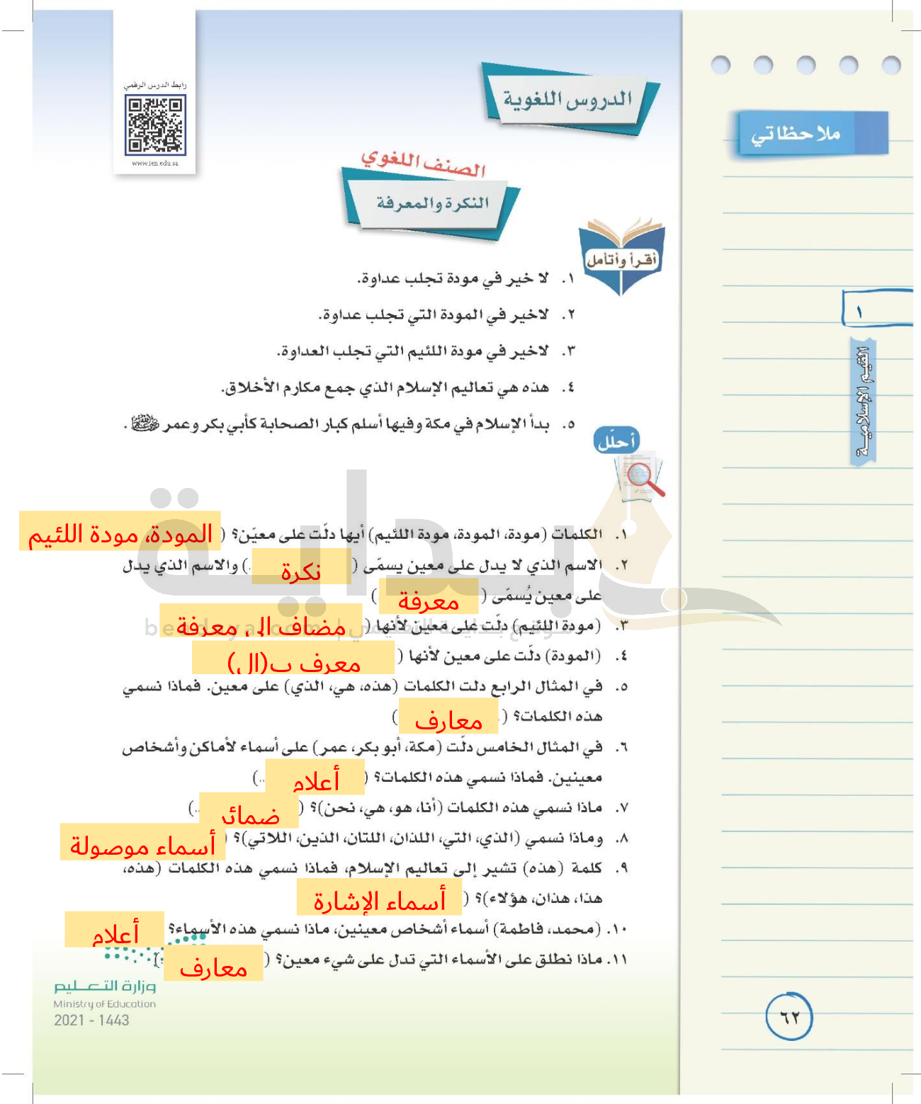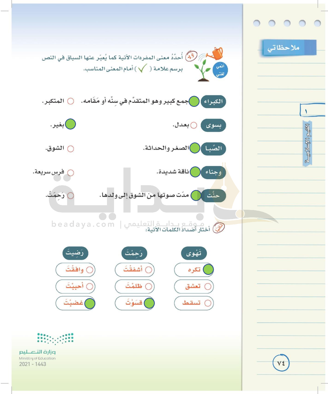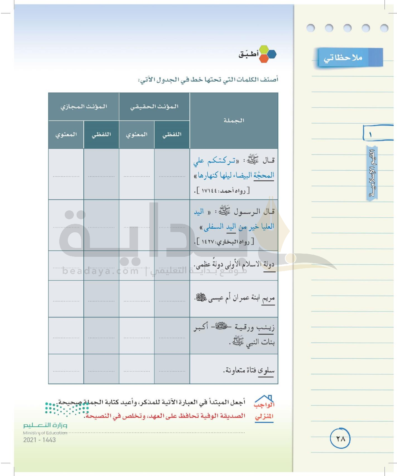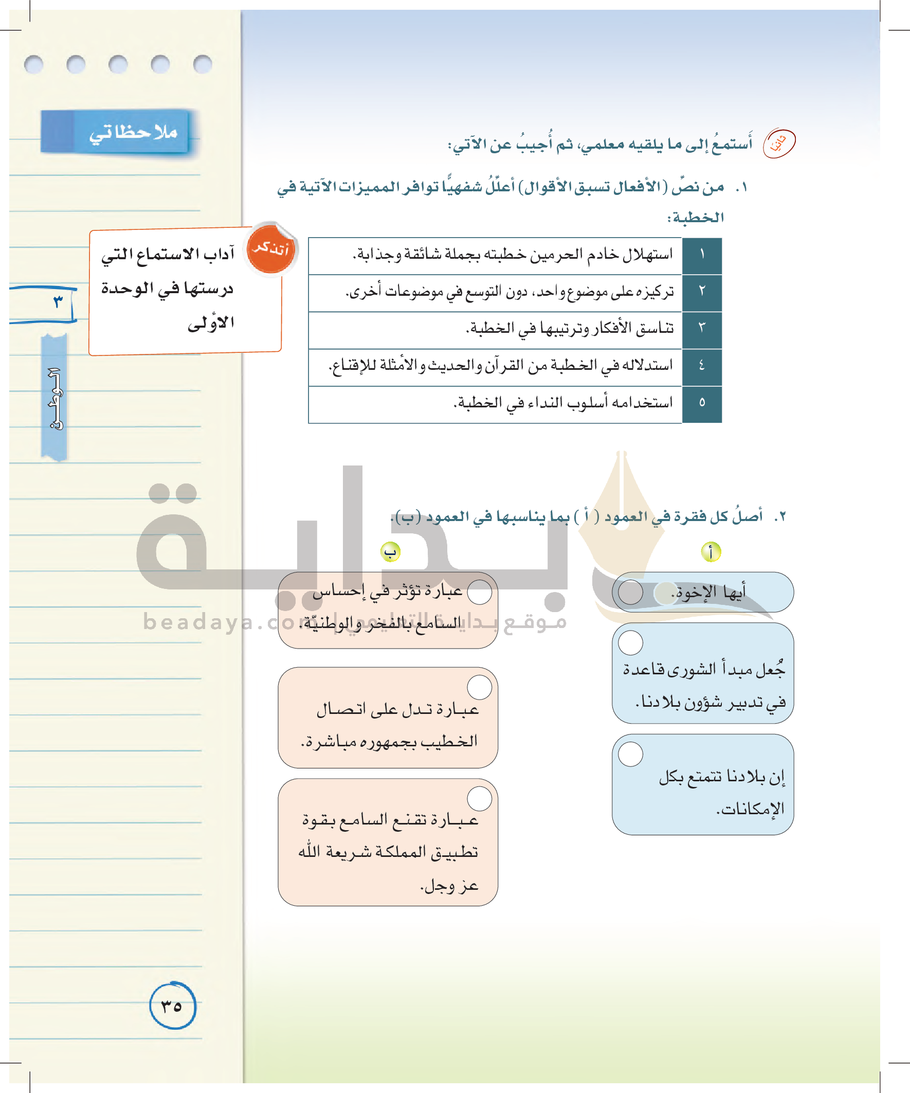 الوحدة الأولى: القيم الإسلامية