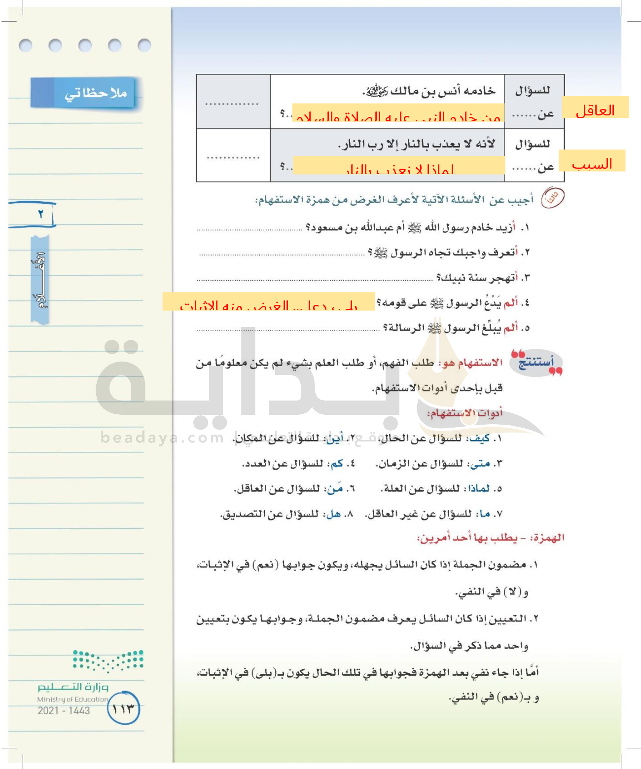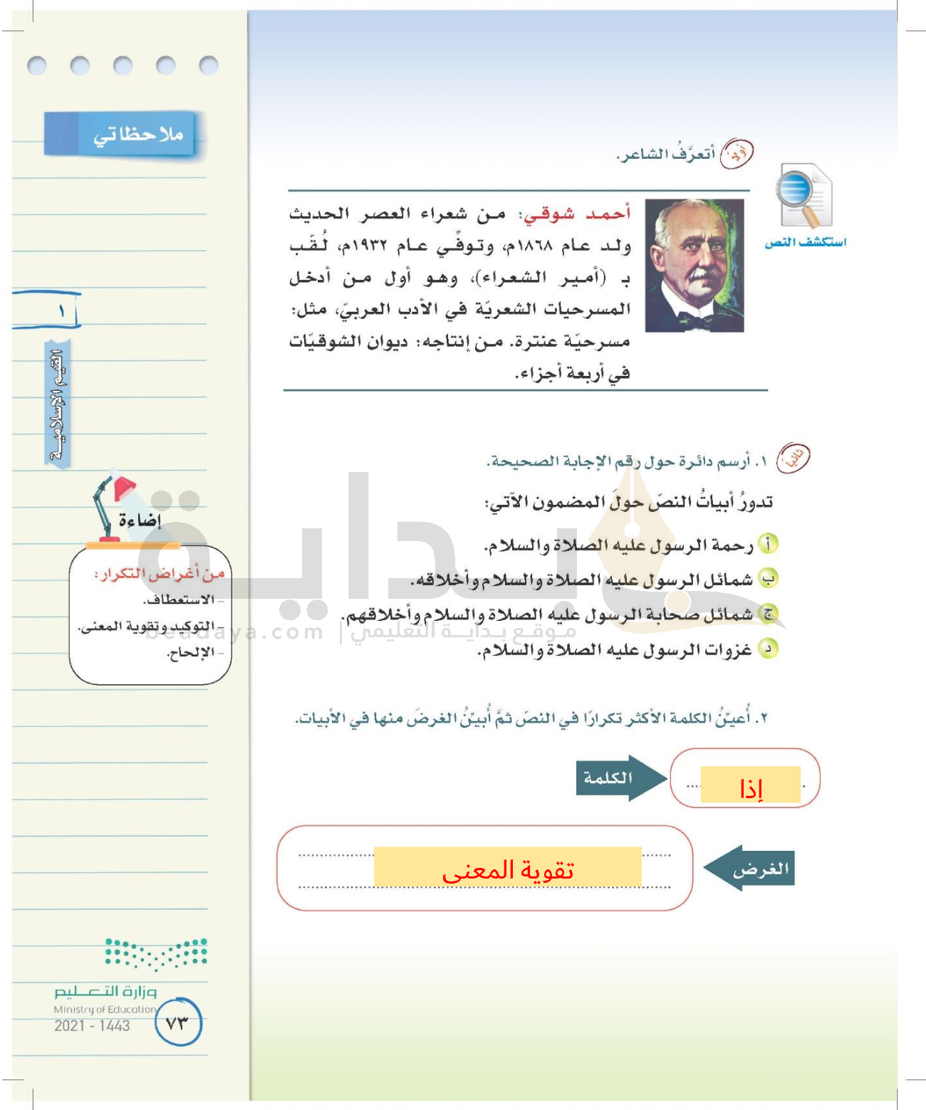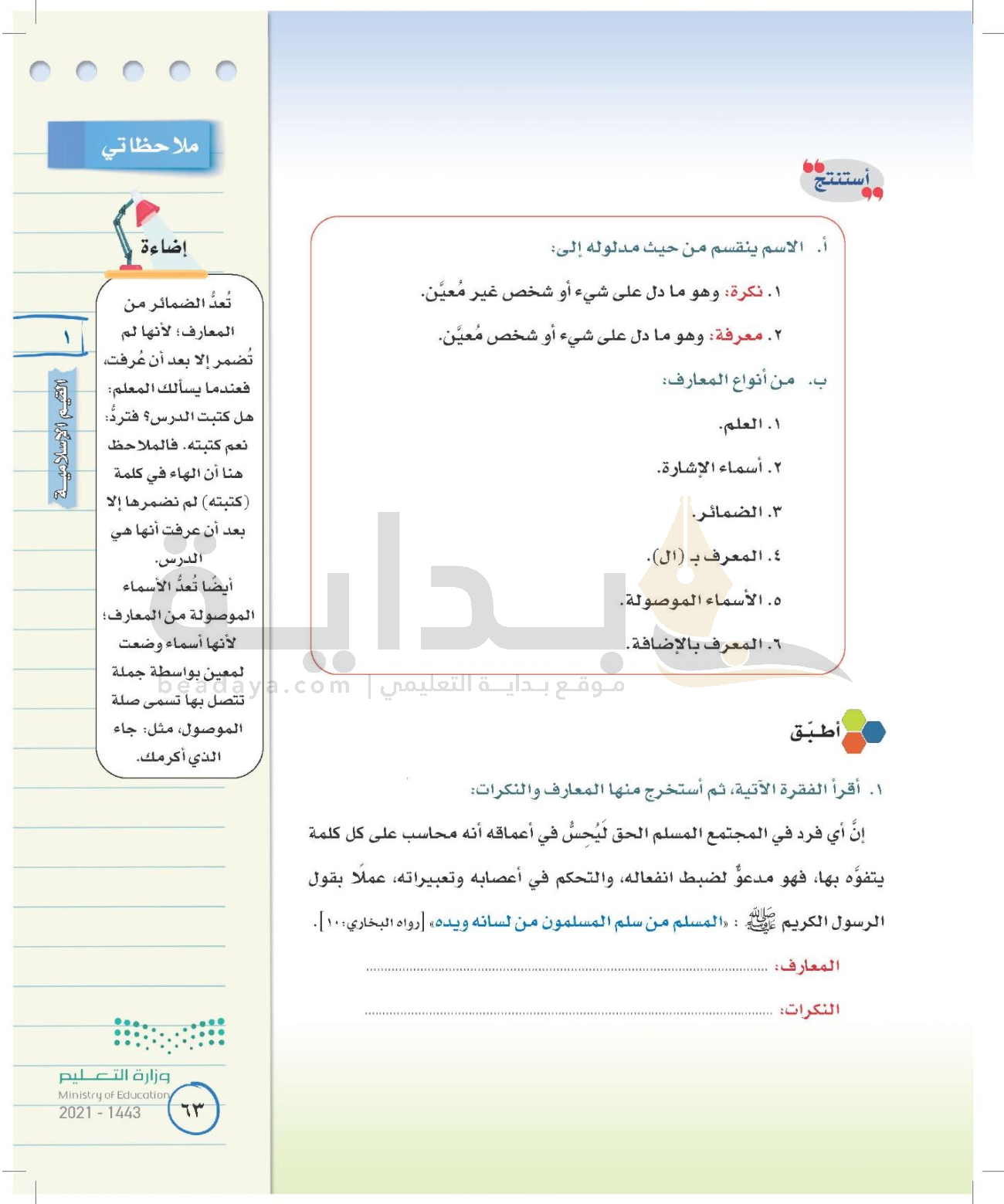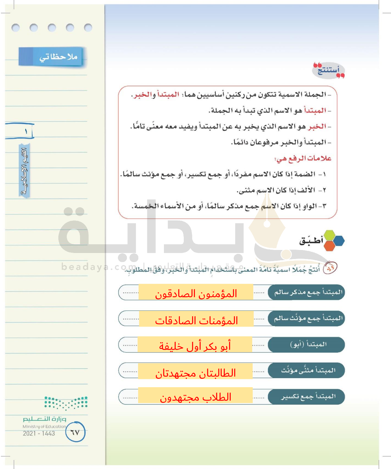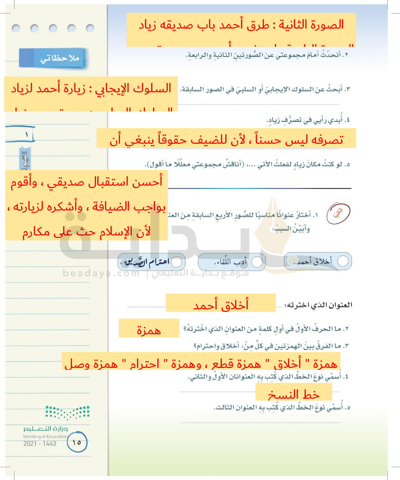 الوحدة الأولى: القيم الإسلامية