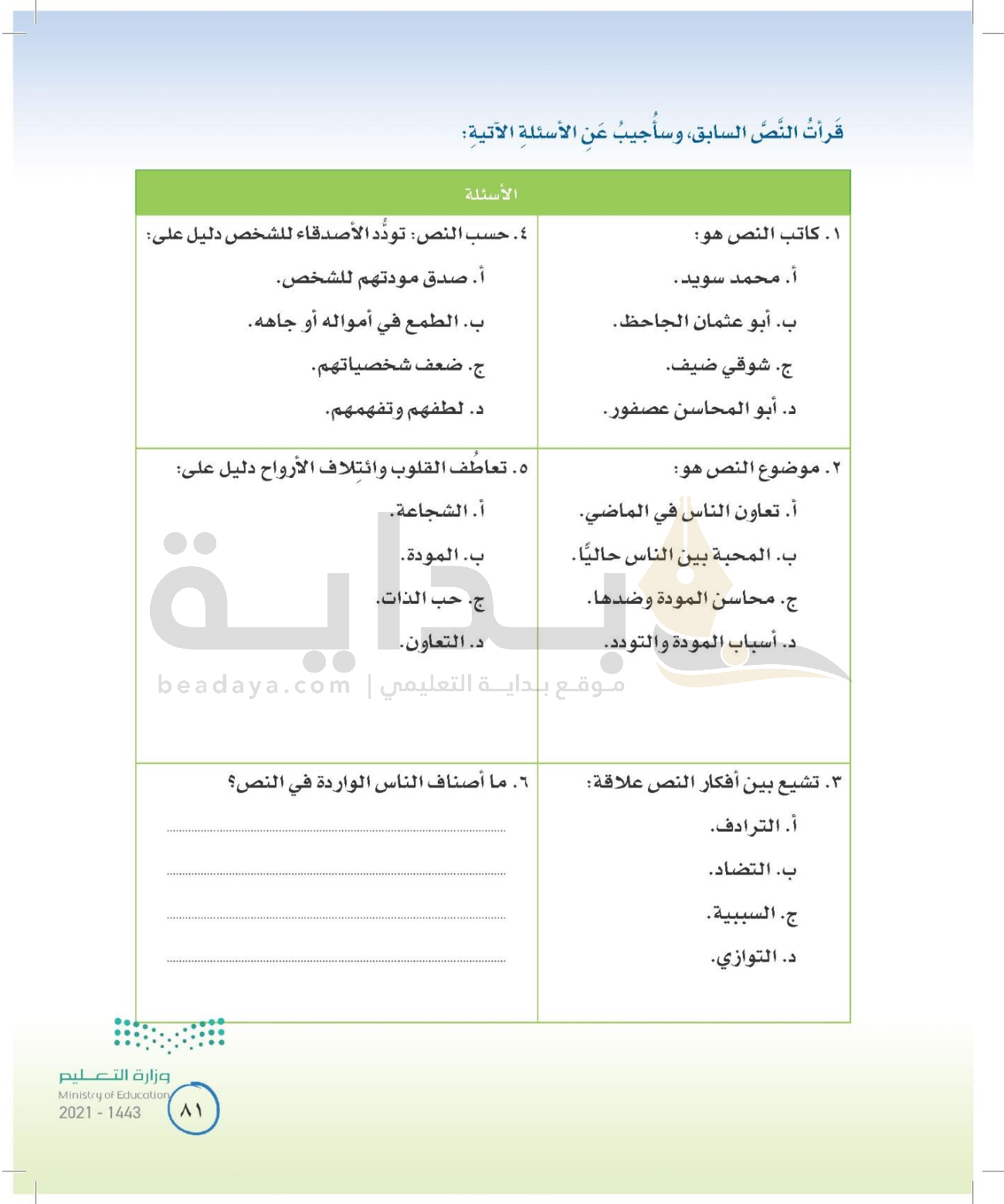 الوحدة الثالثة: الوطن