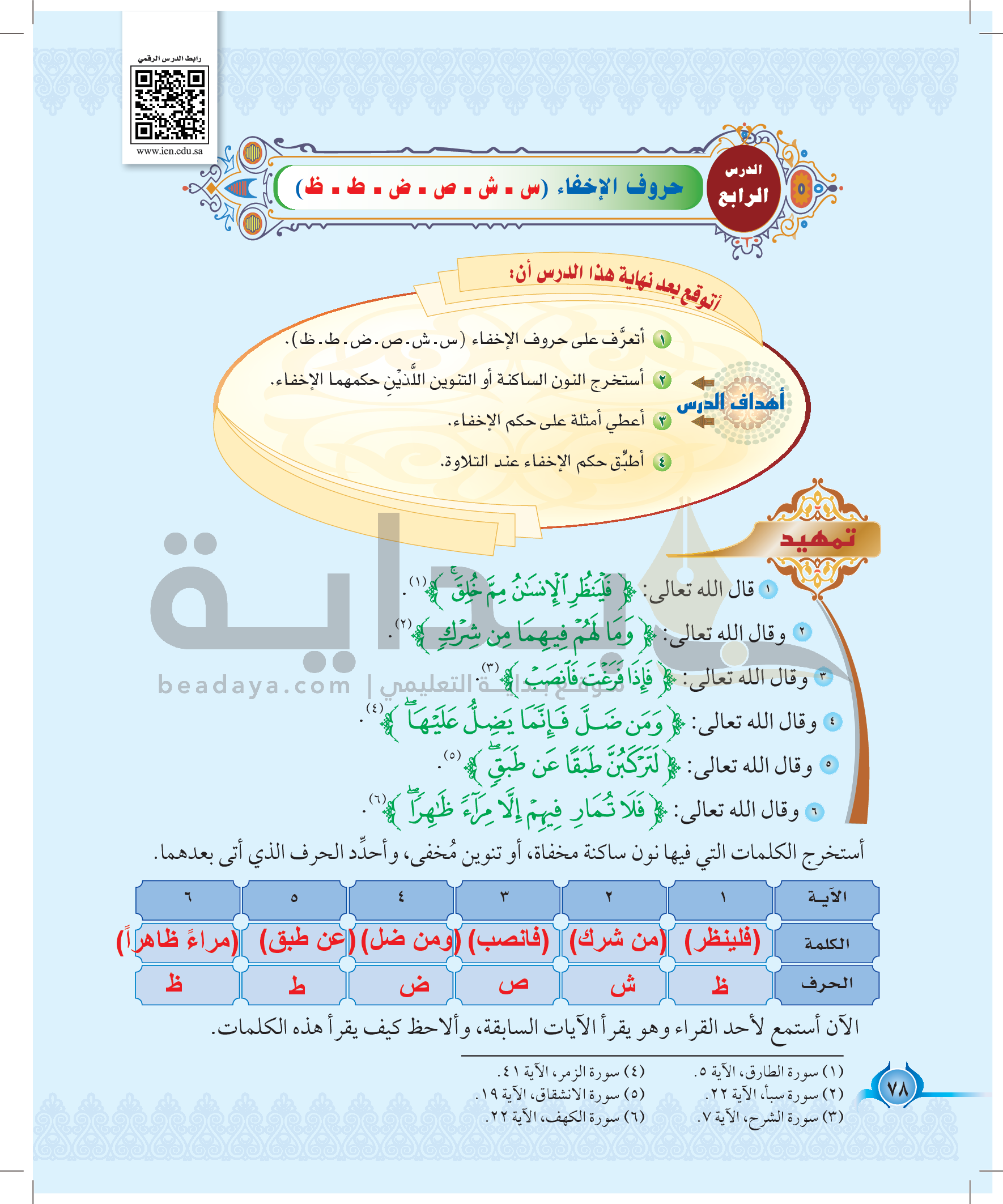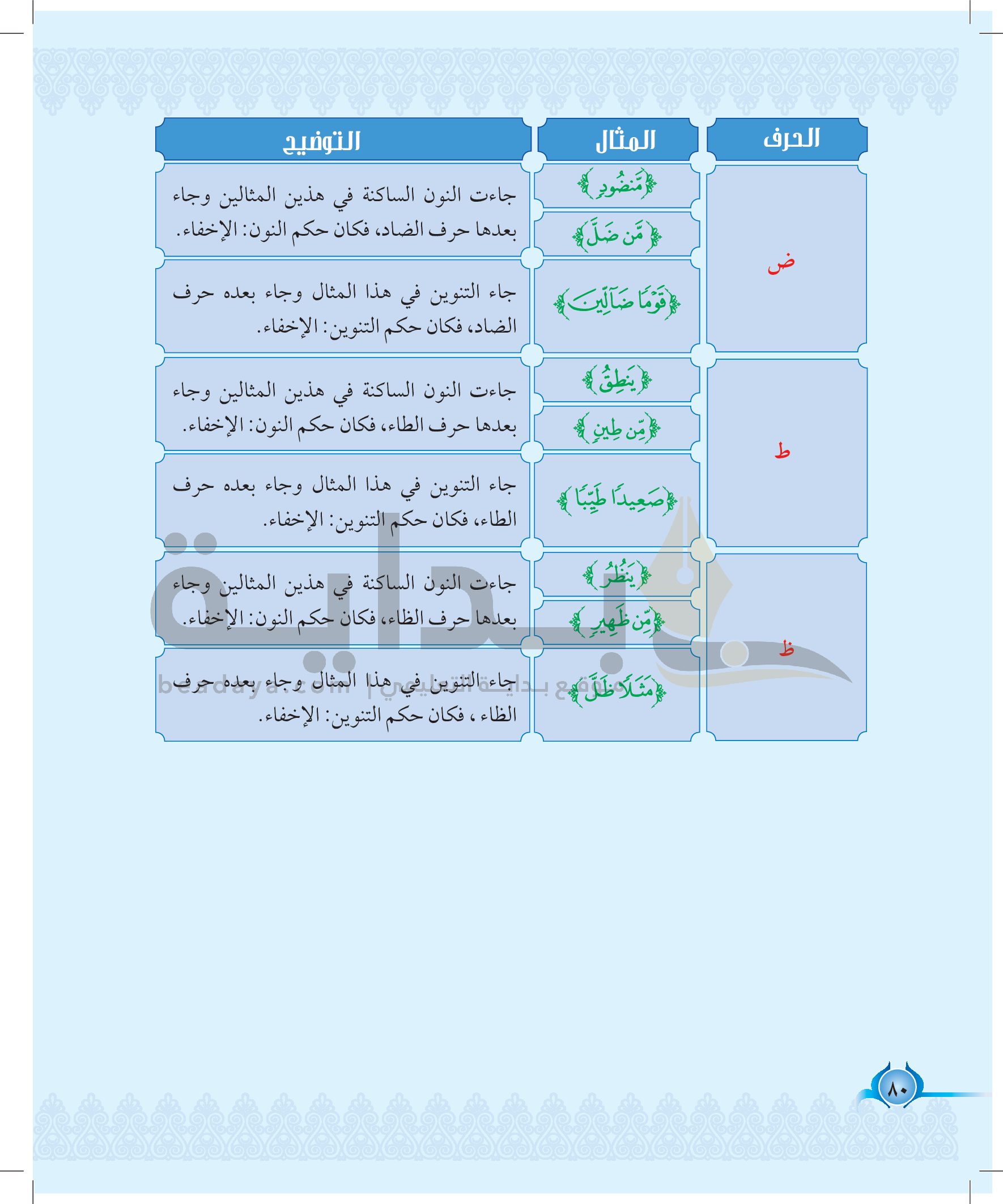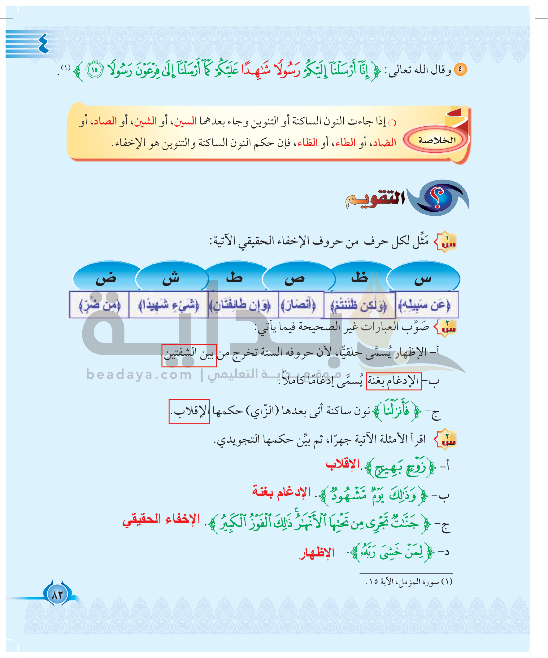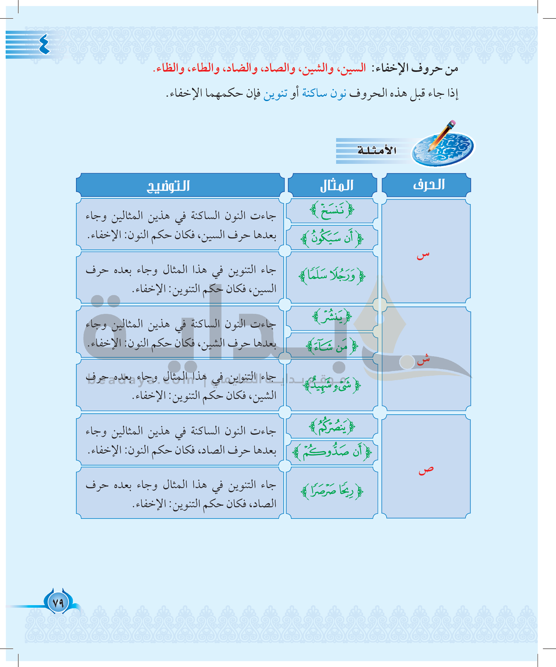 حروف الإخفاء (س - ش - ص - ض - ط - ظ)