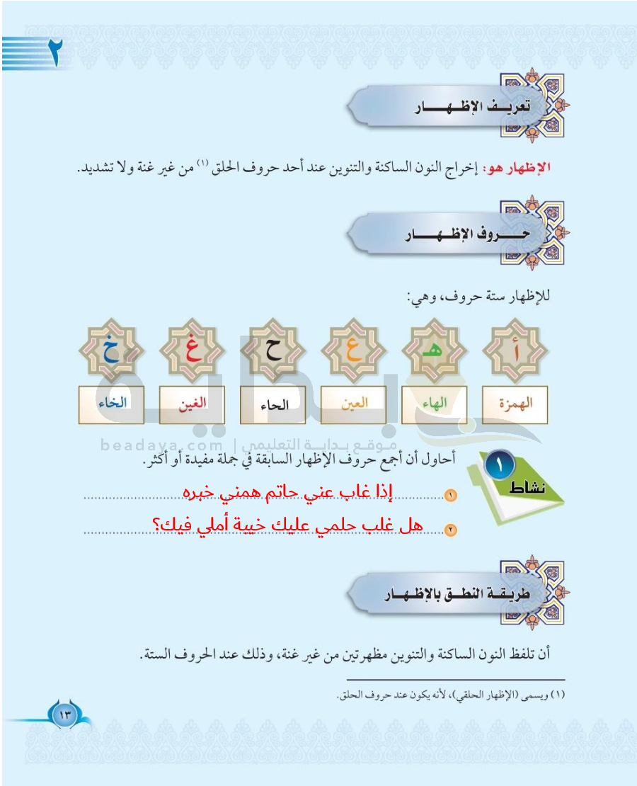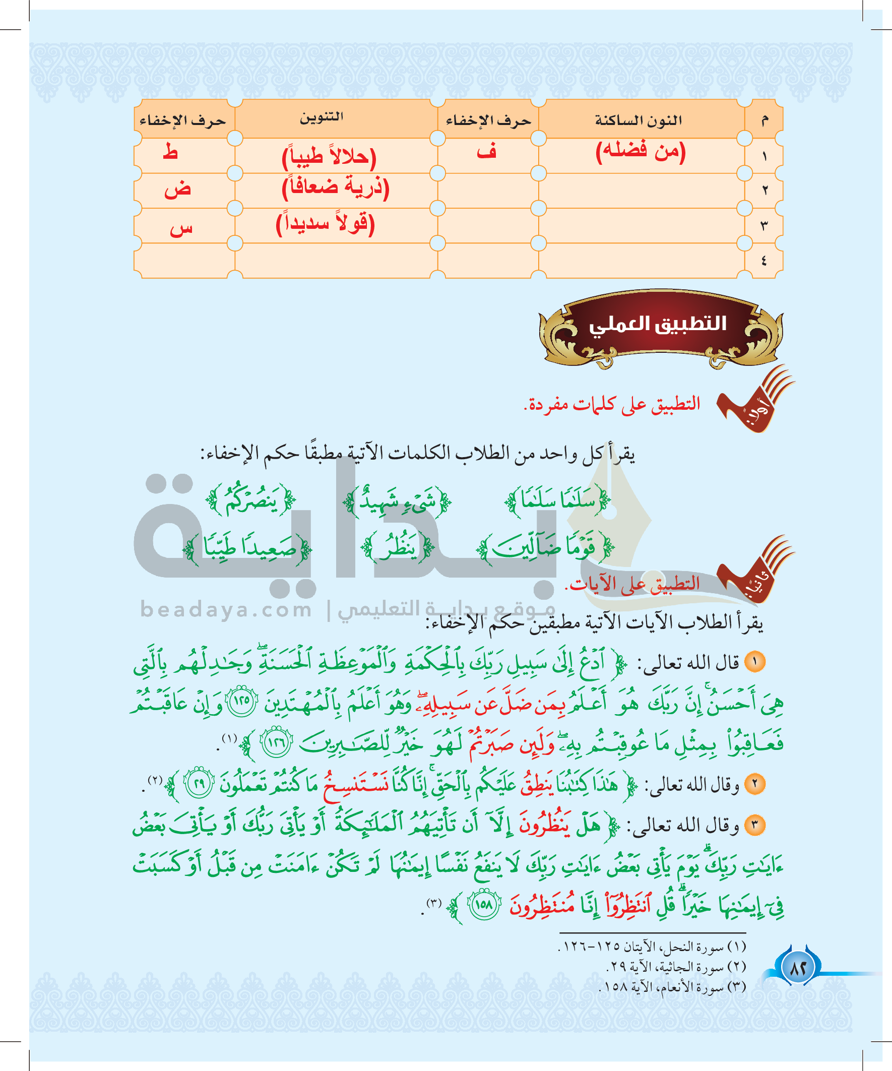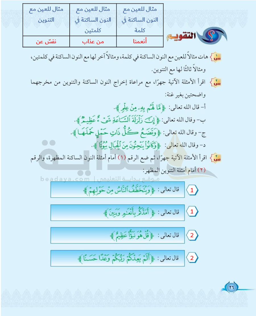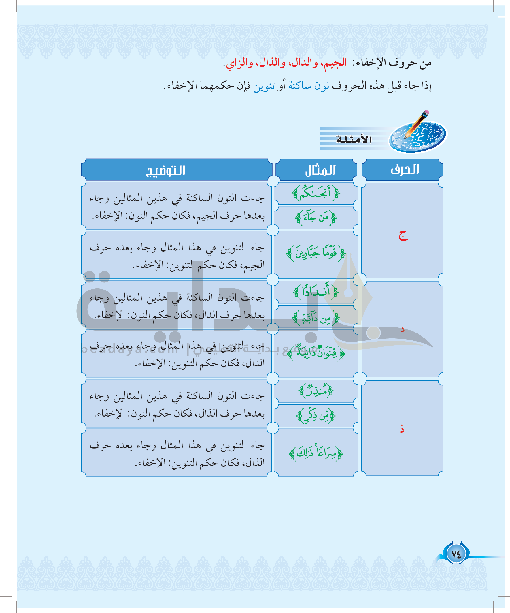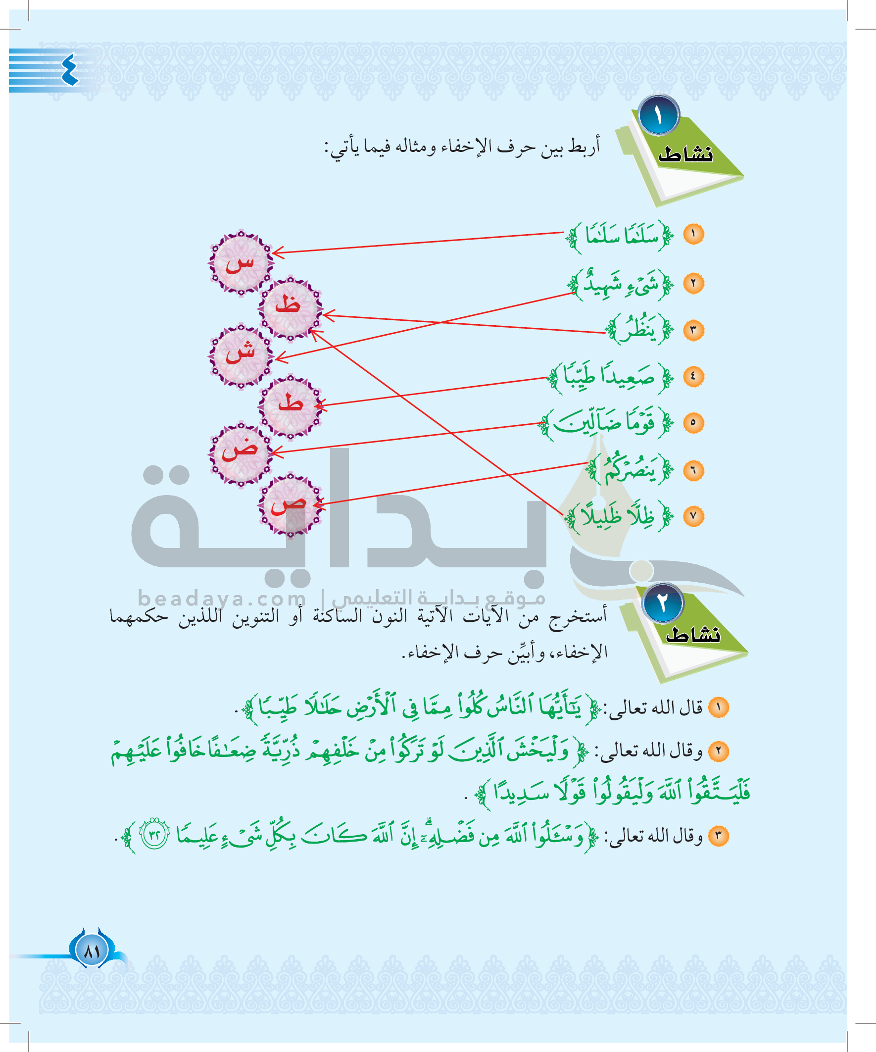 حروف الإخفاء (س - ش - ص - ض - ط - ظ)