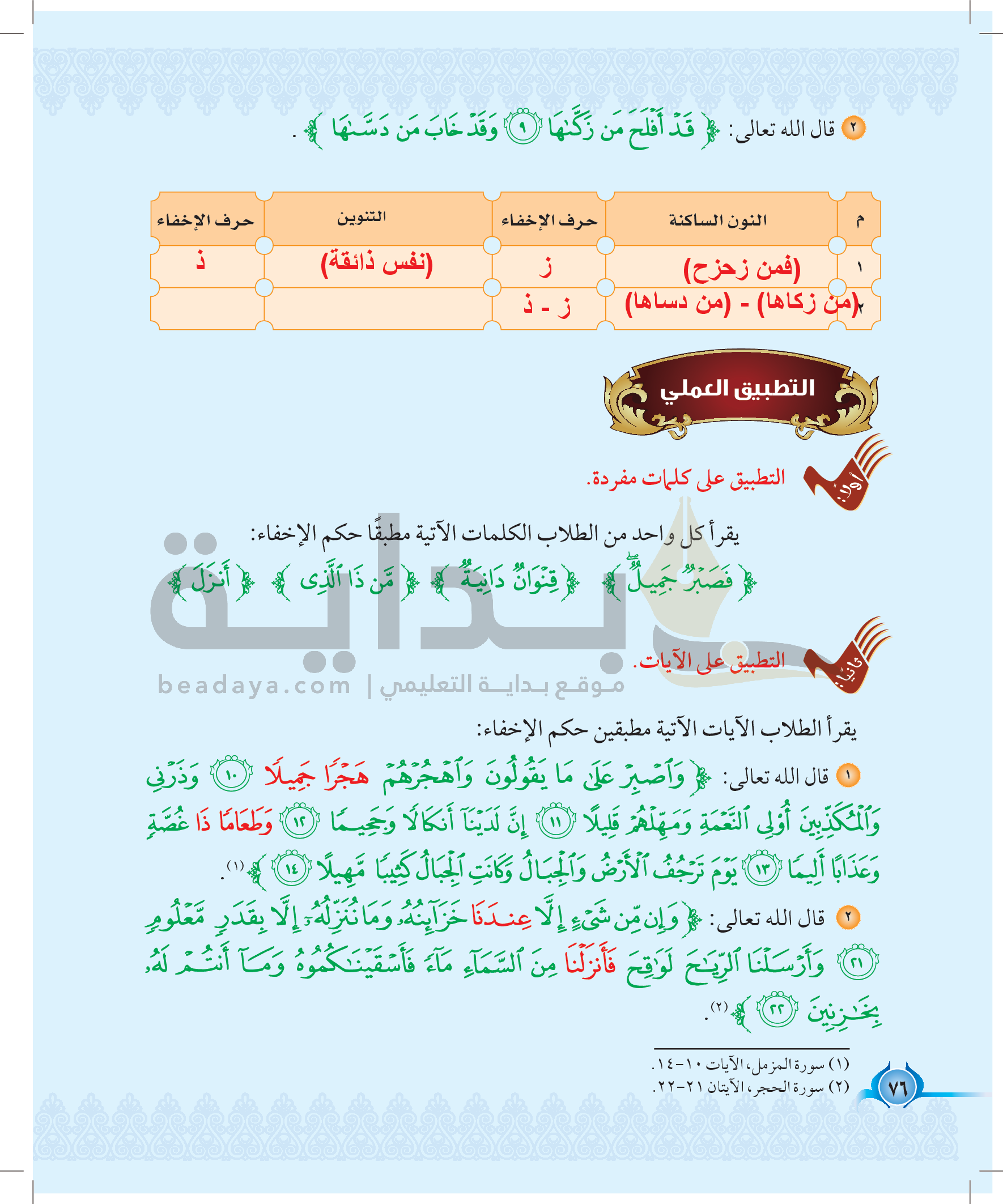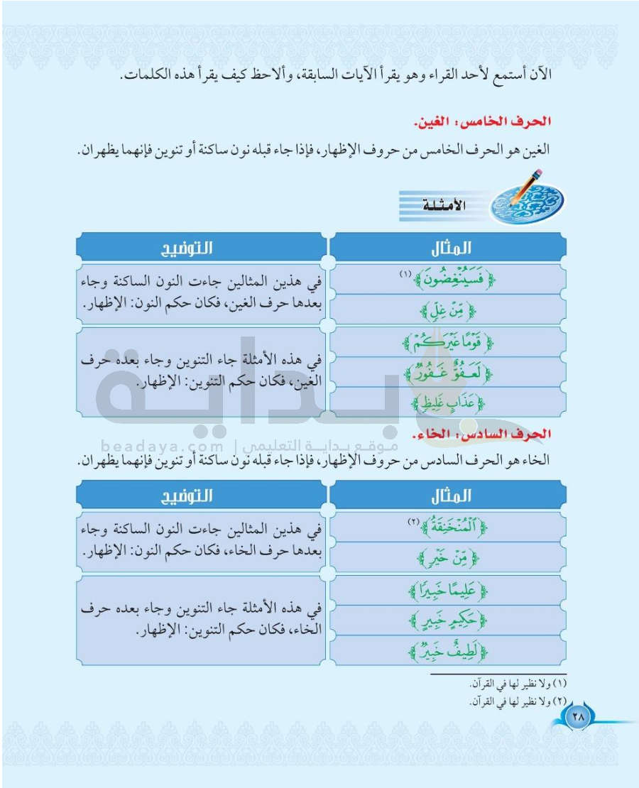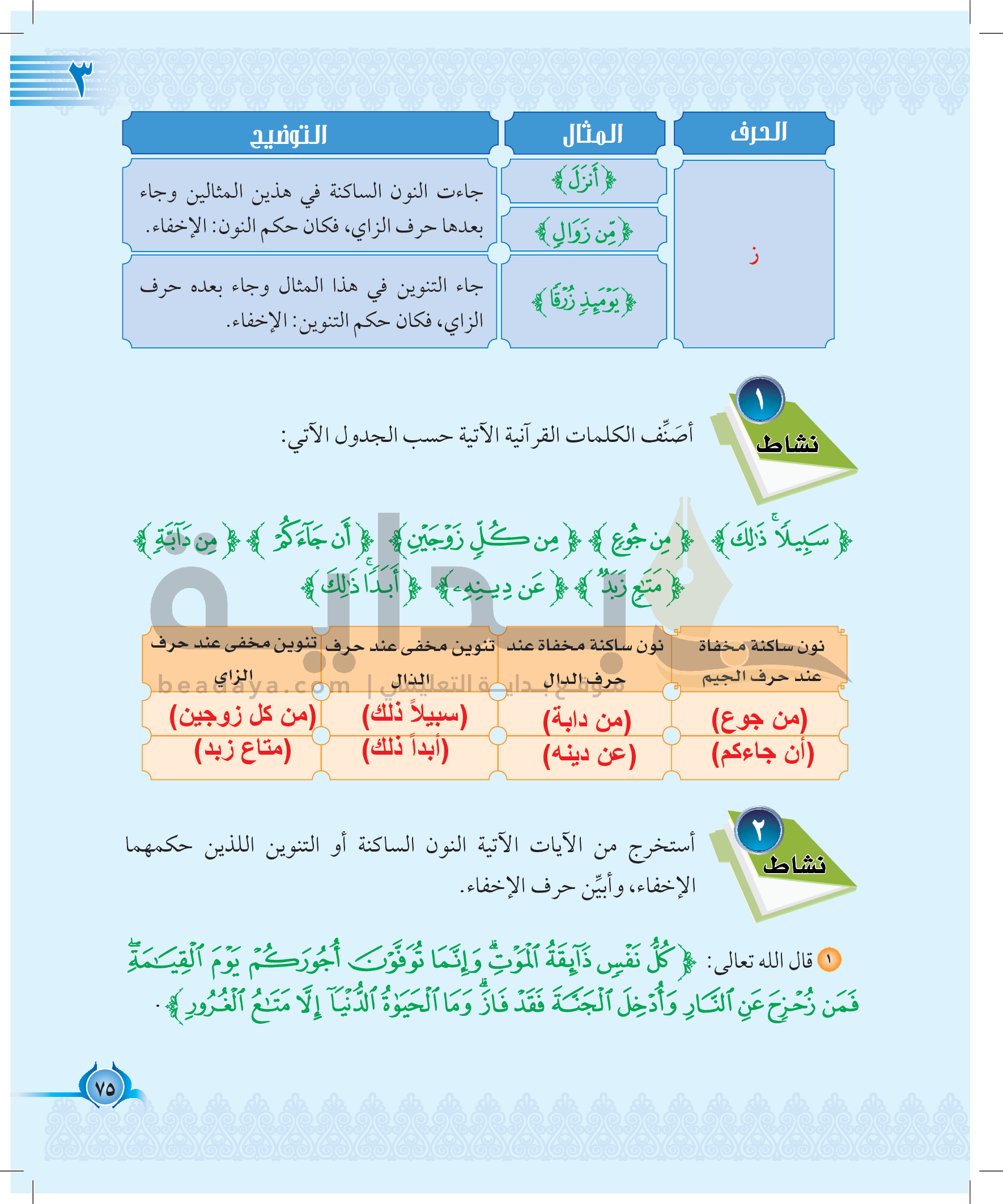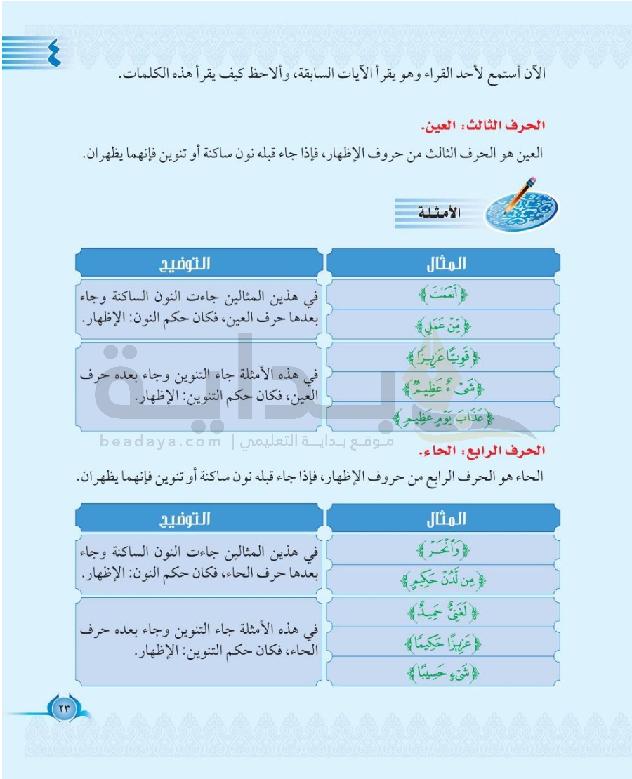 حروف الإخفاء (س - ش - ص - ض - ط - ظ)