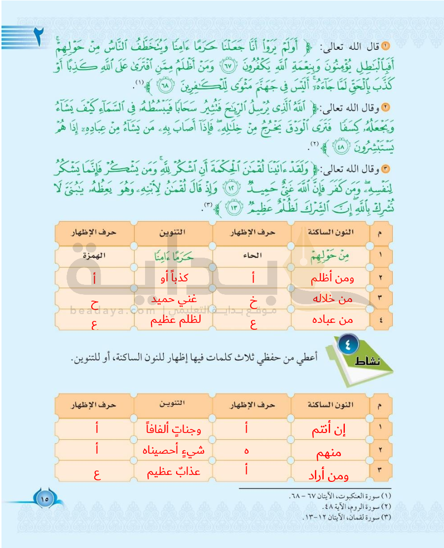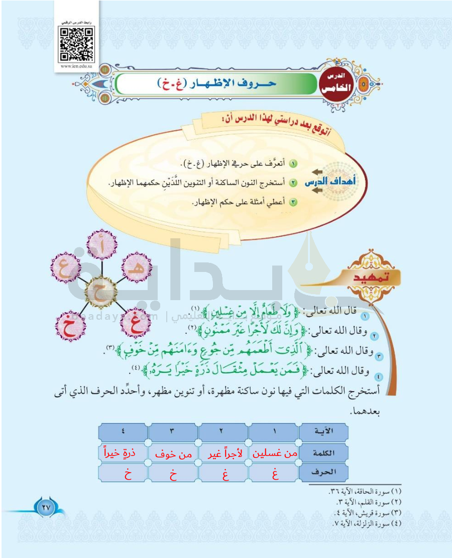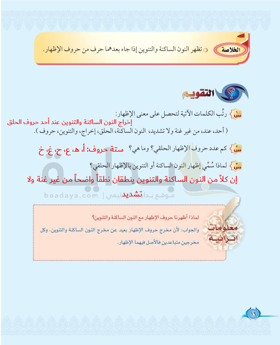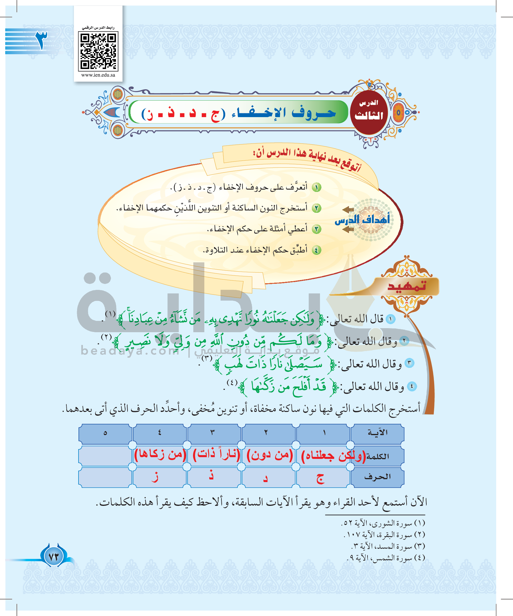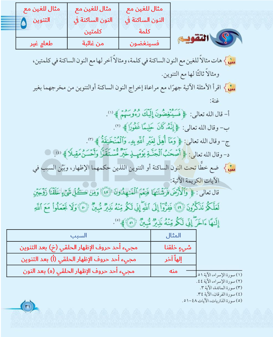 حروف الإخفاء (س - ش - ص - ض - ط - ظ)