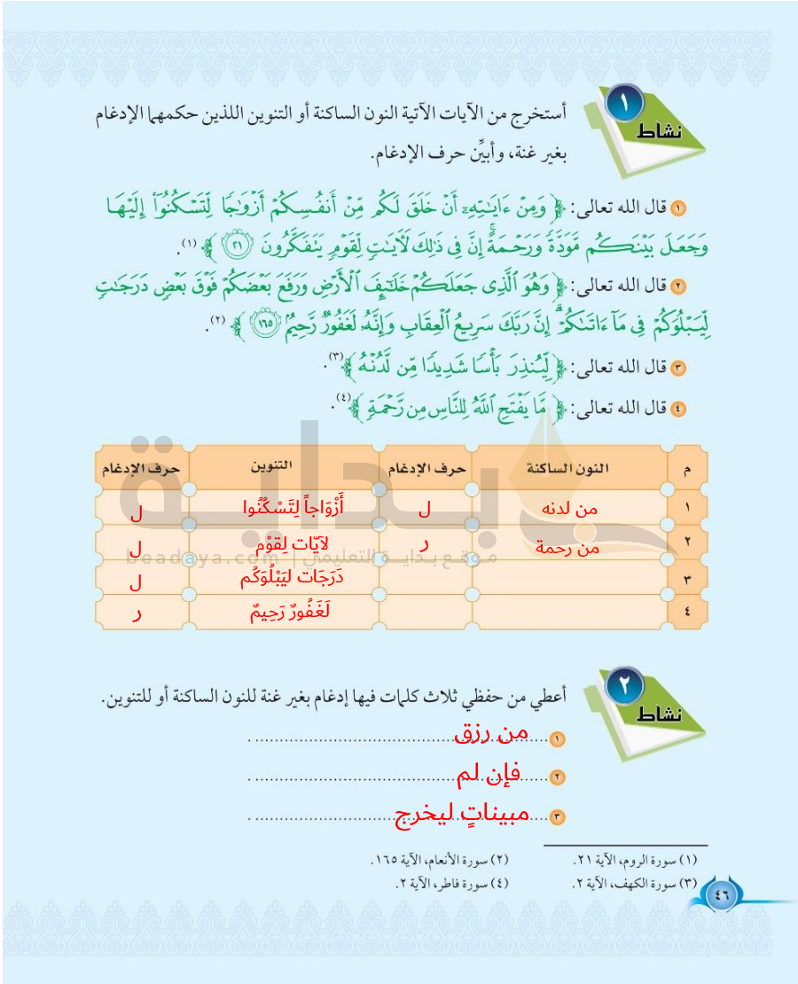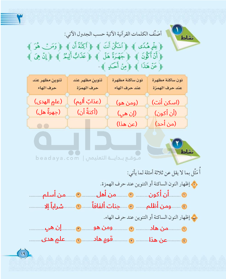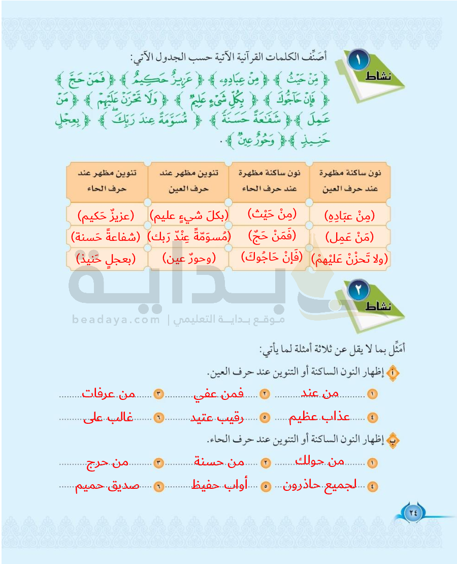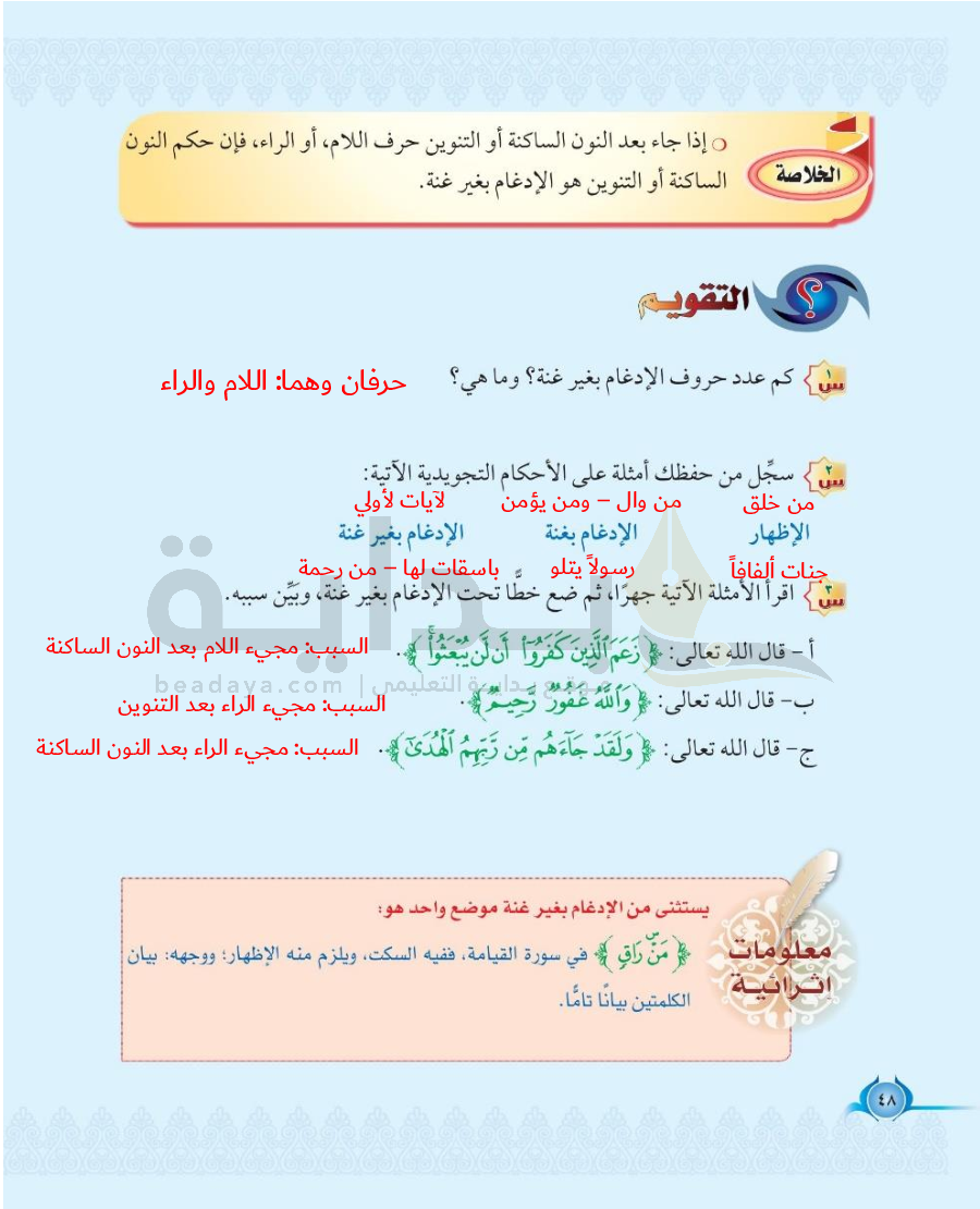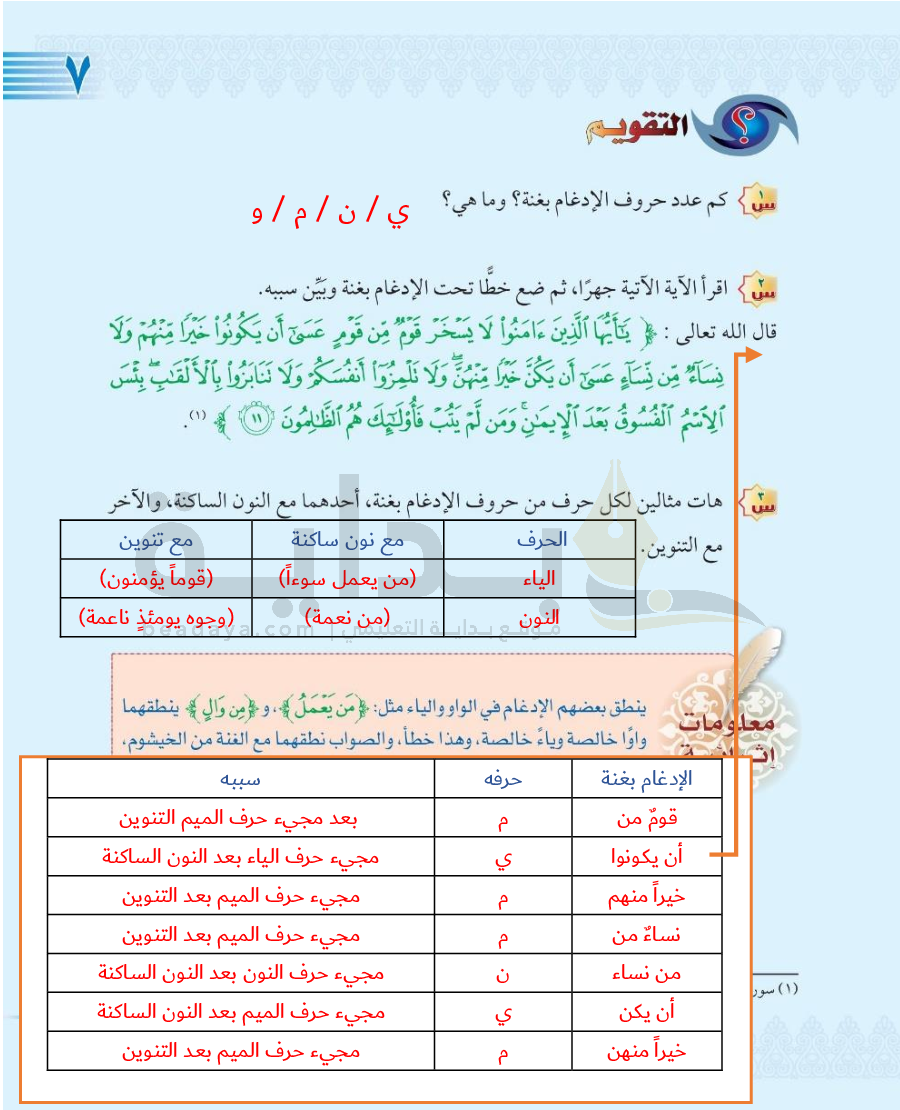 حروف الإخفاء (س - ش - ص - ض - ط - ظ)