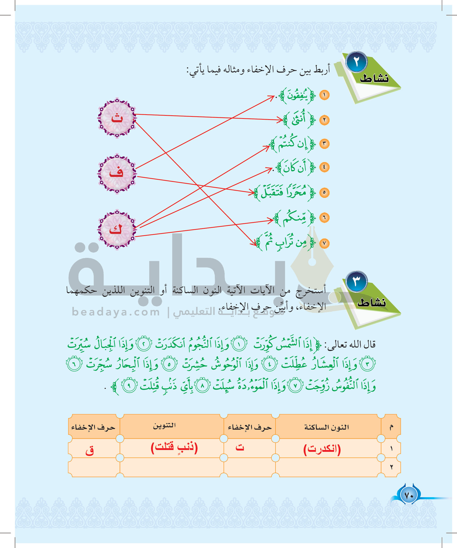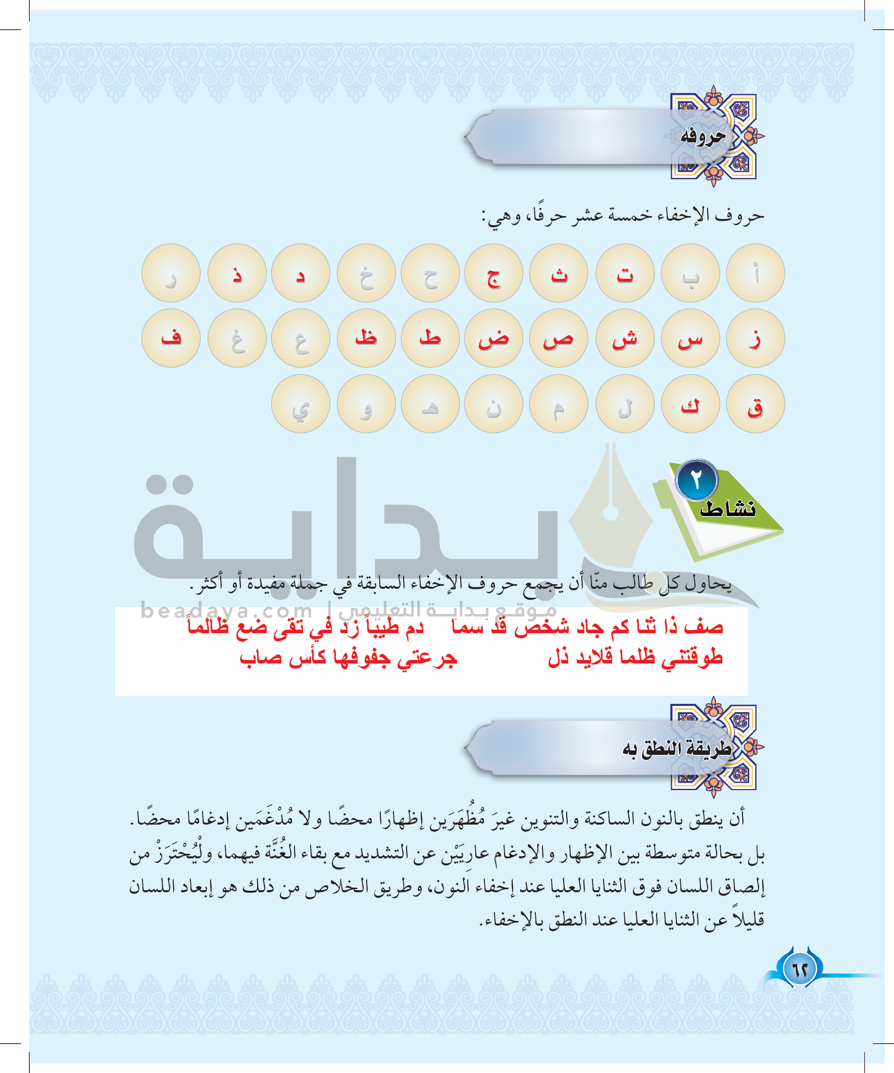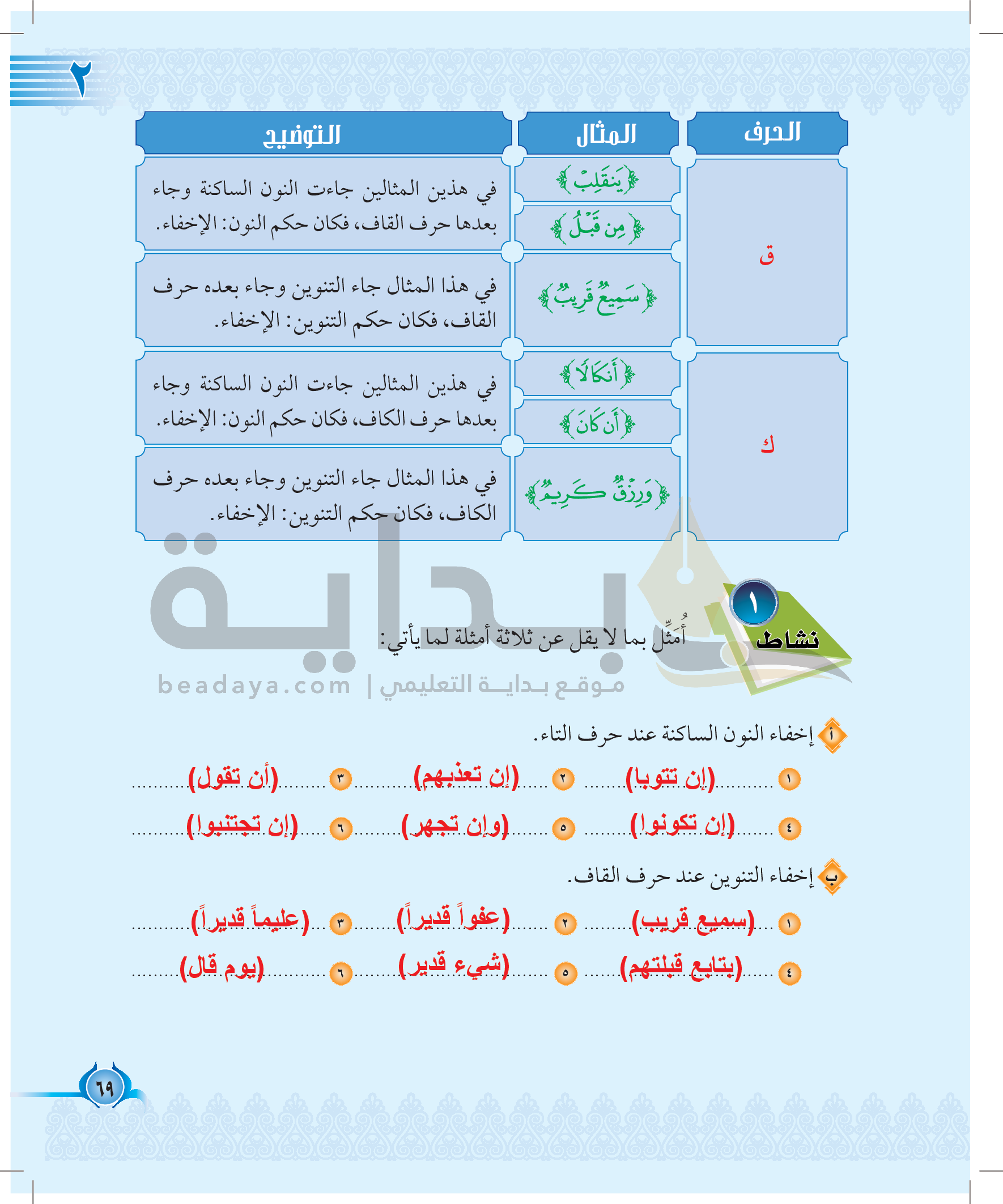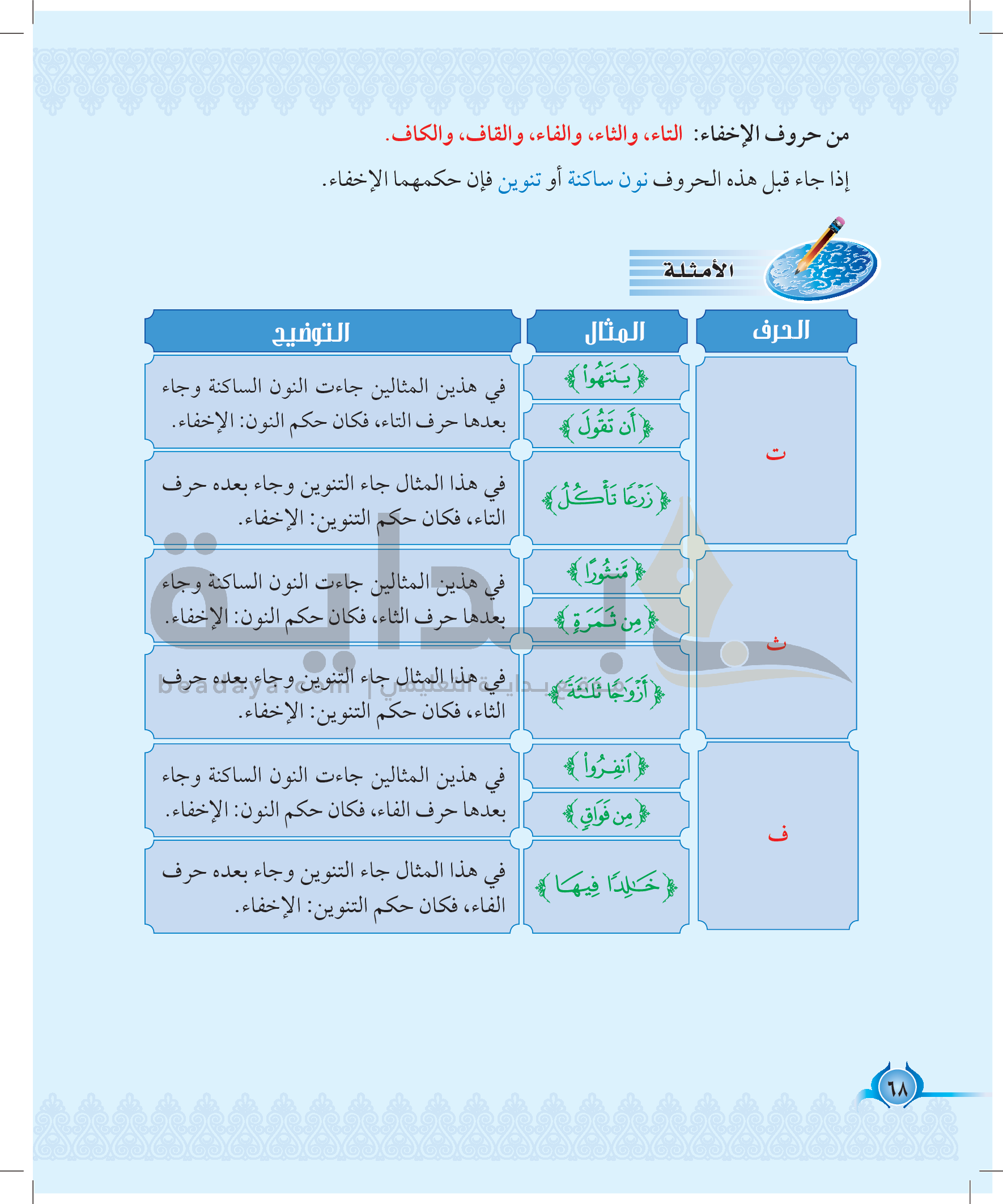حروف الإخفاء (ت - ث - ف - ق - ك)