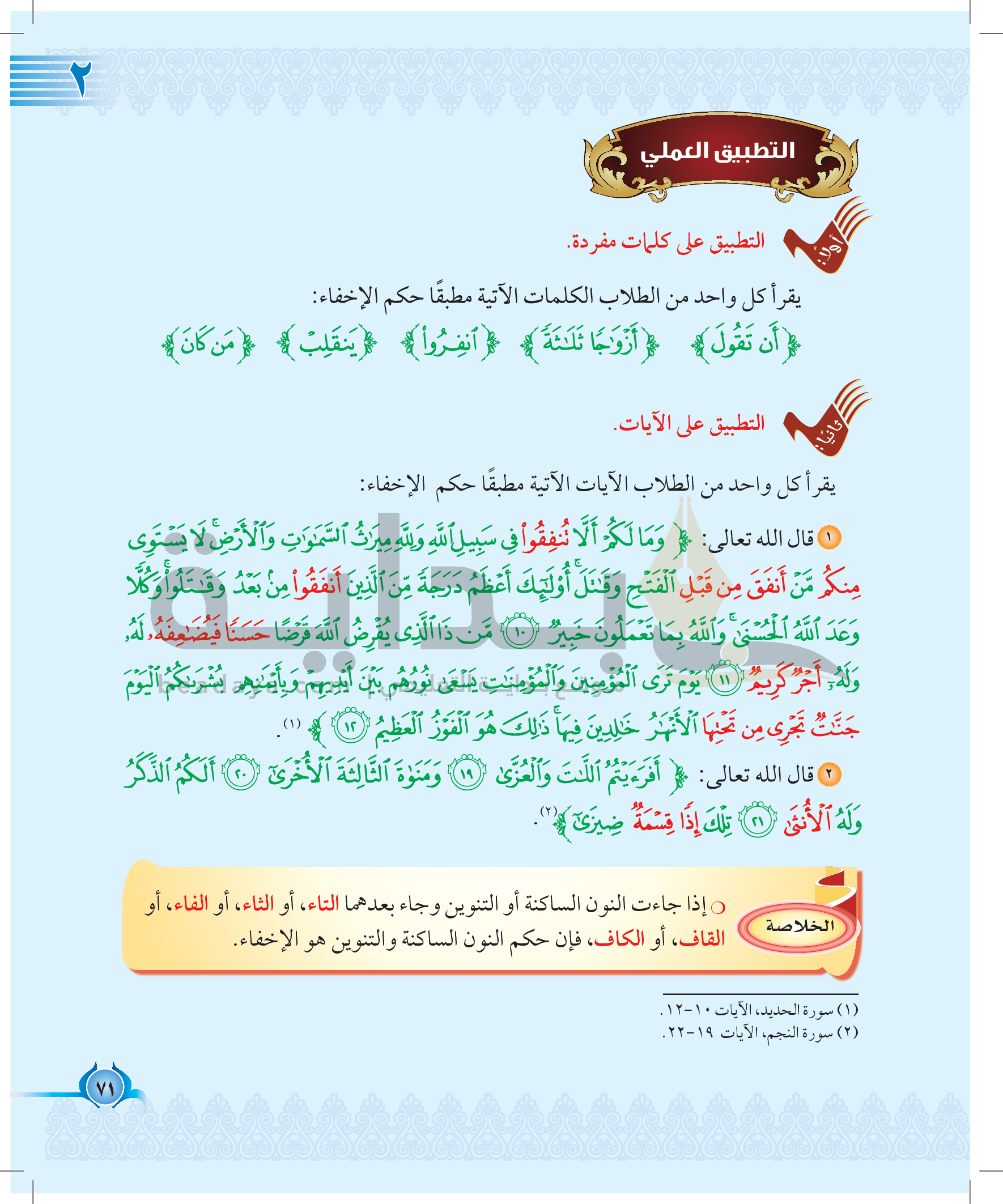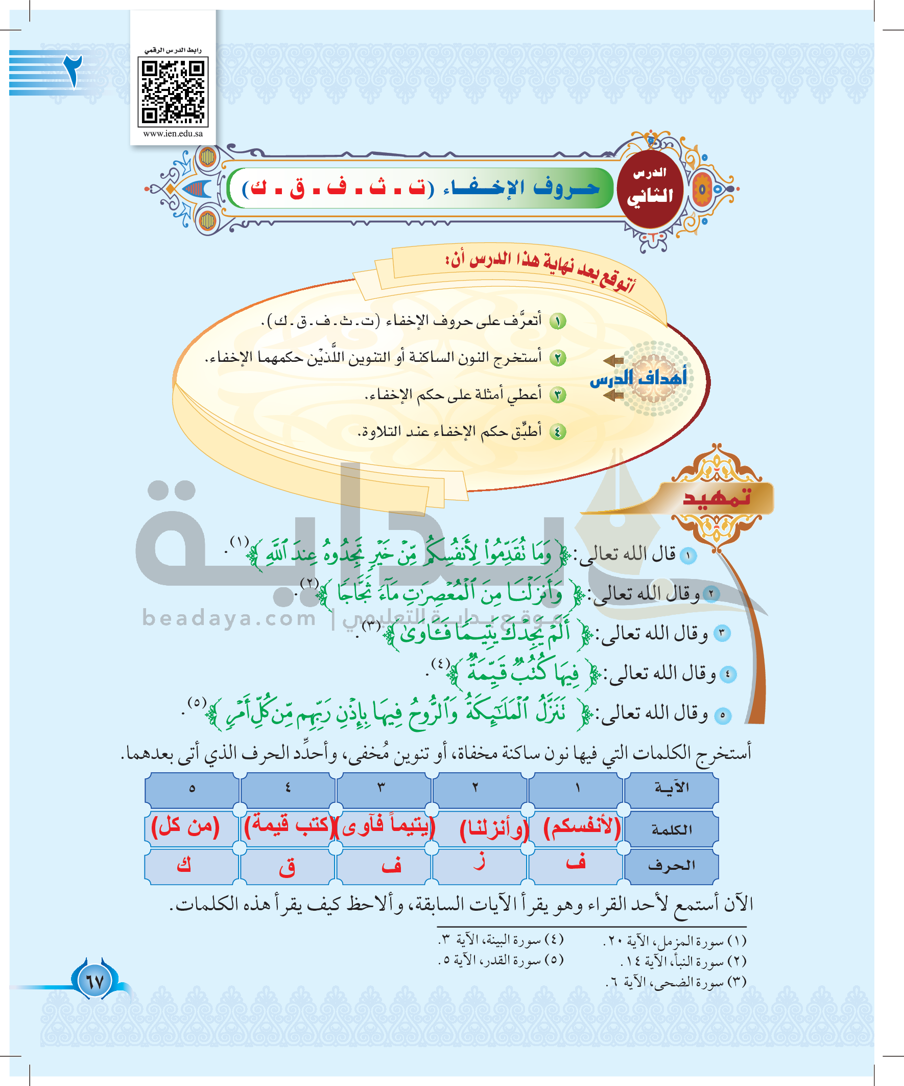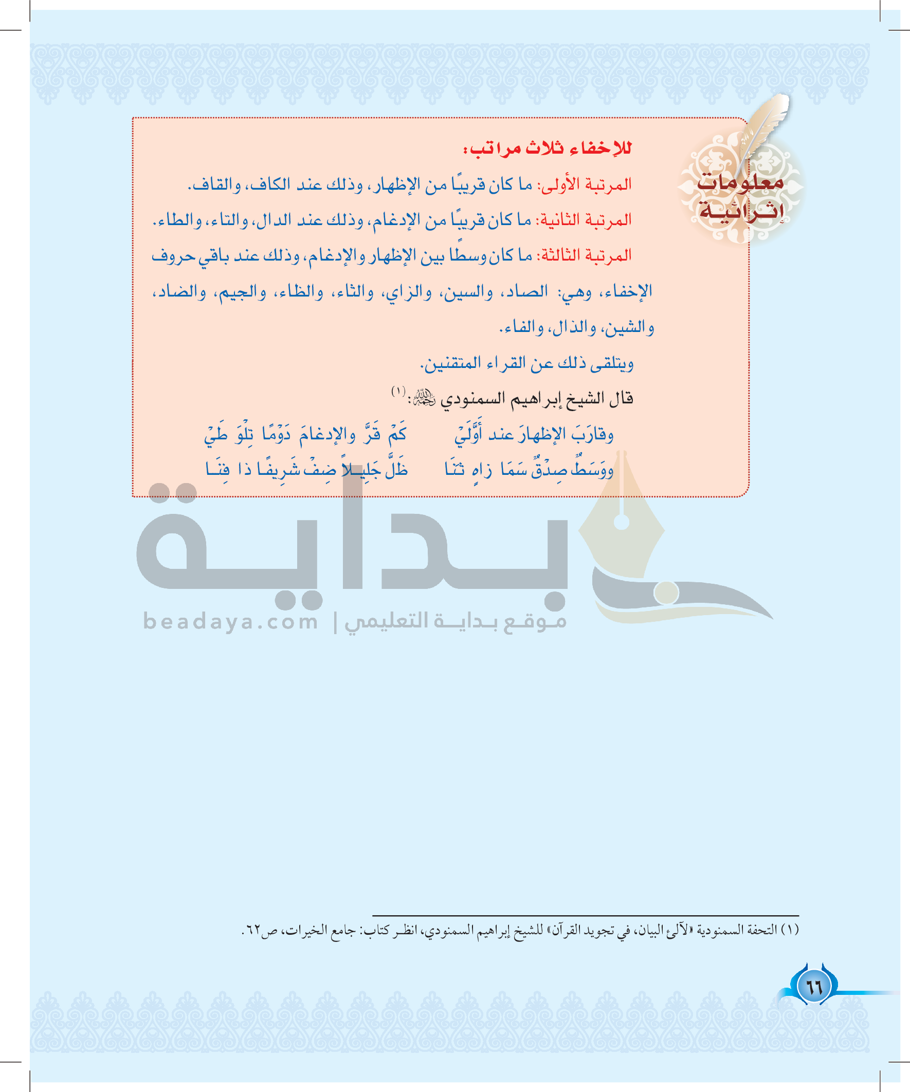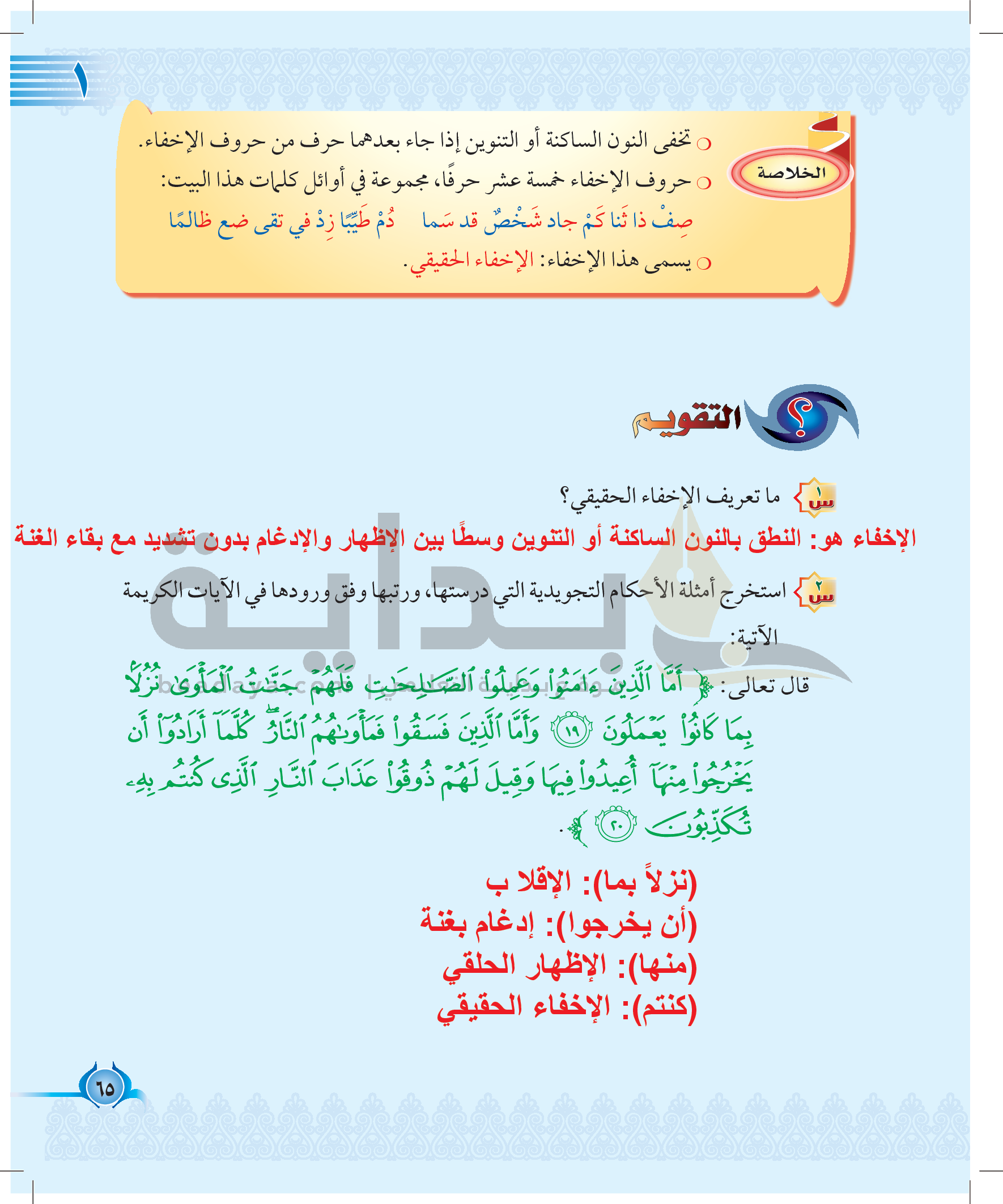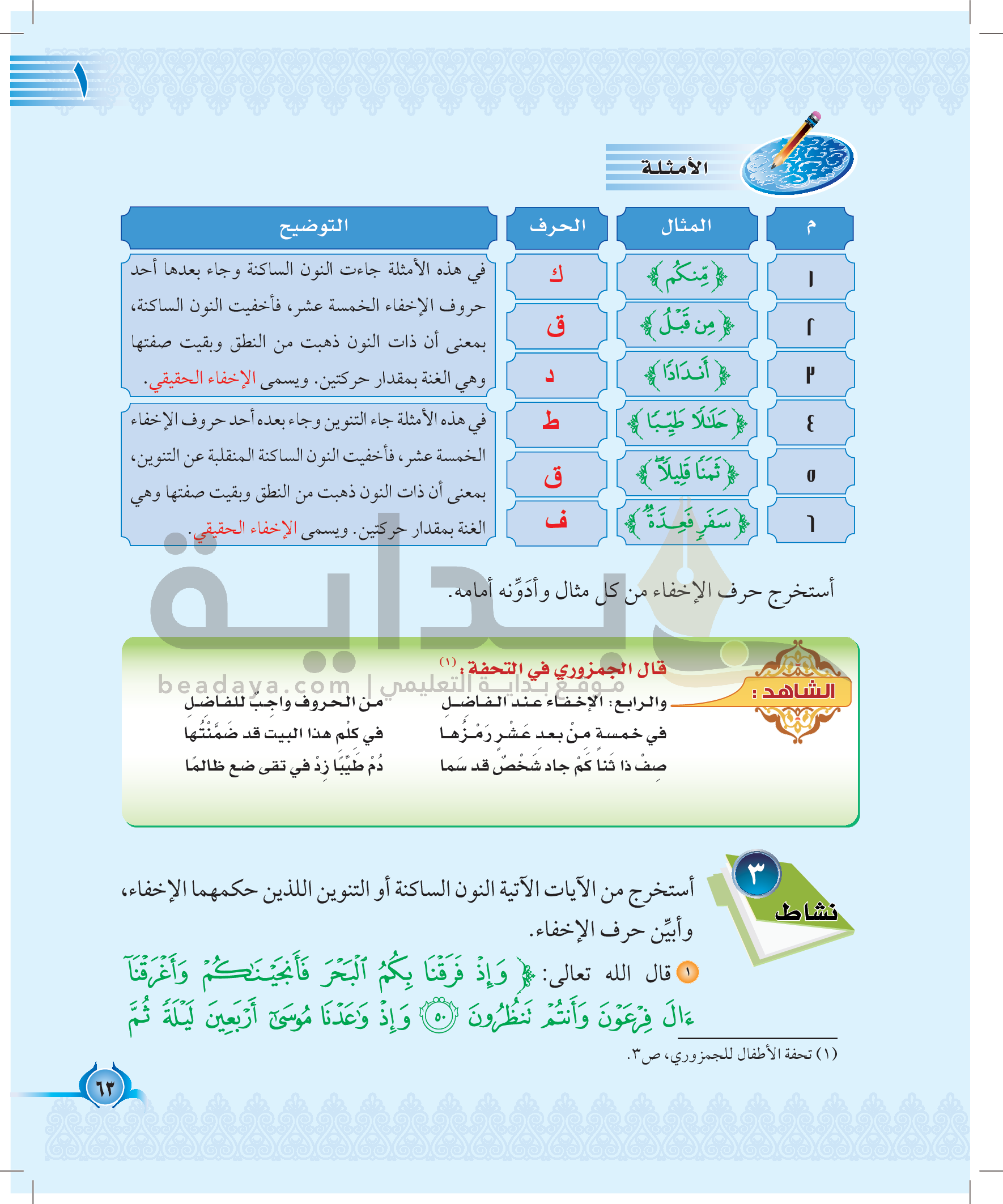 حروف الإخفاء (ت - ث - ف - ق - ك)